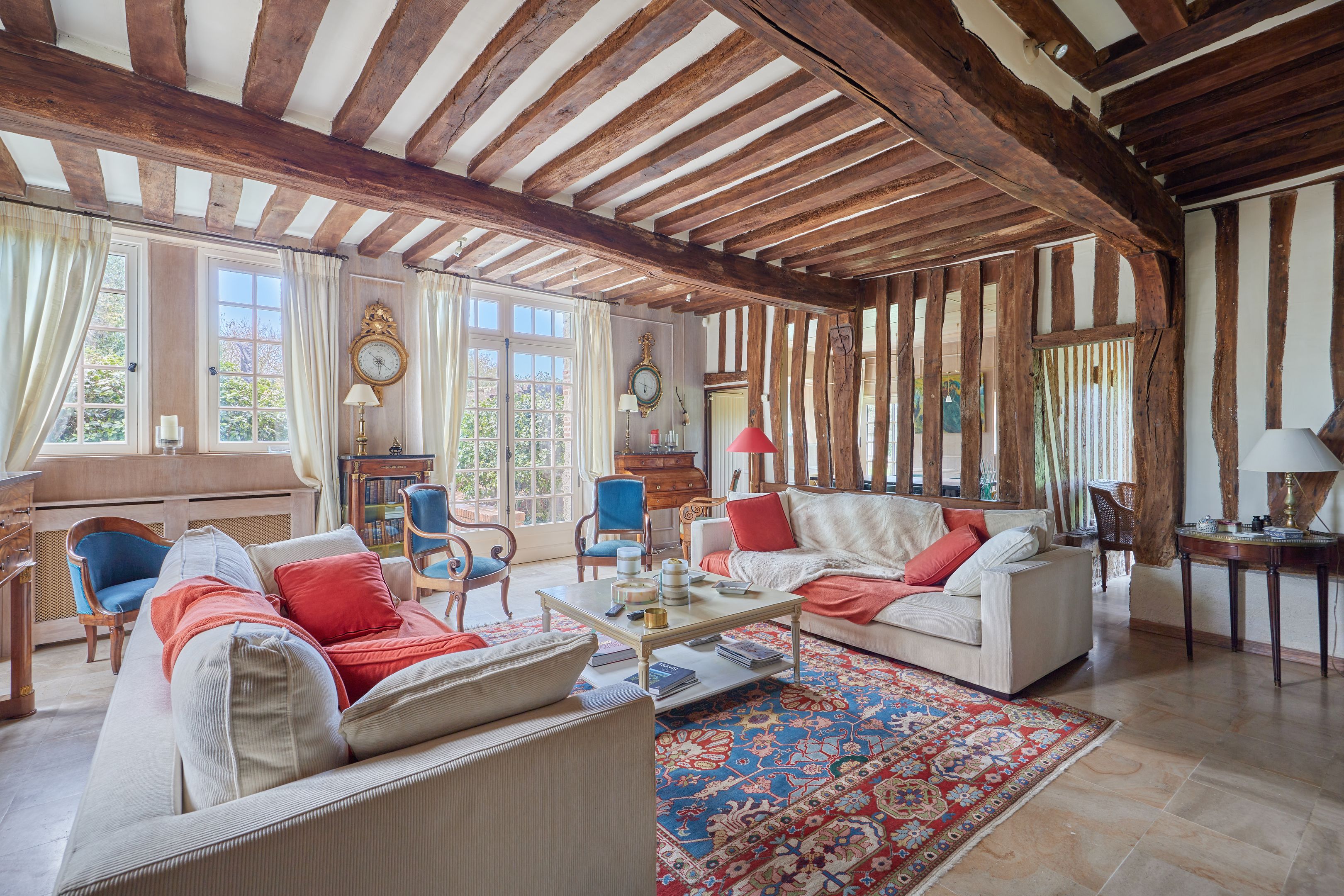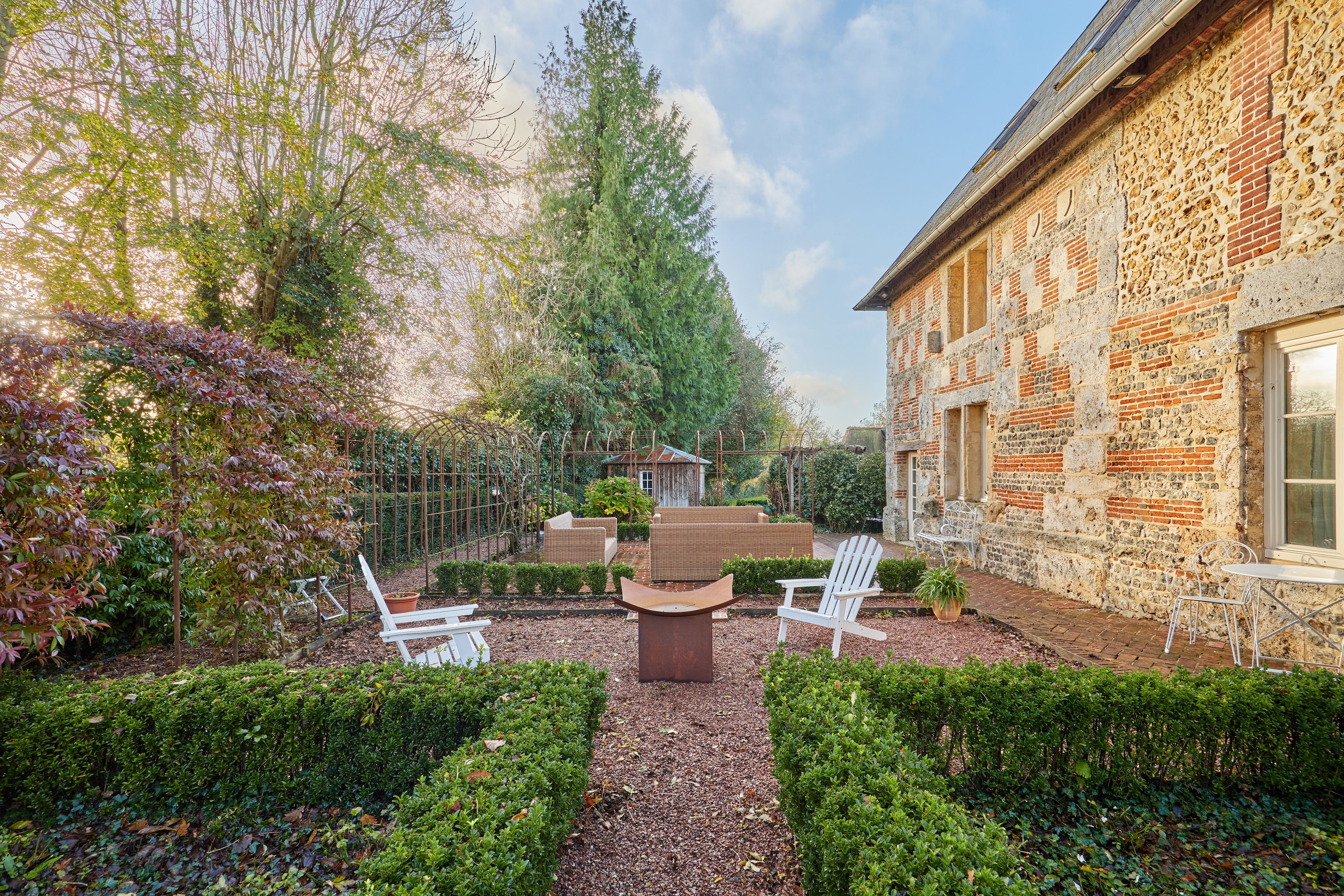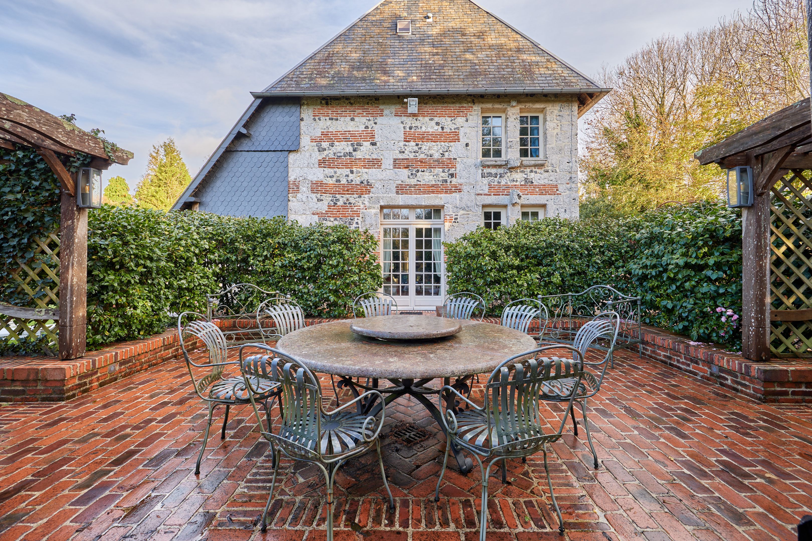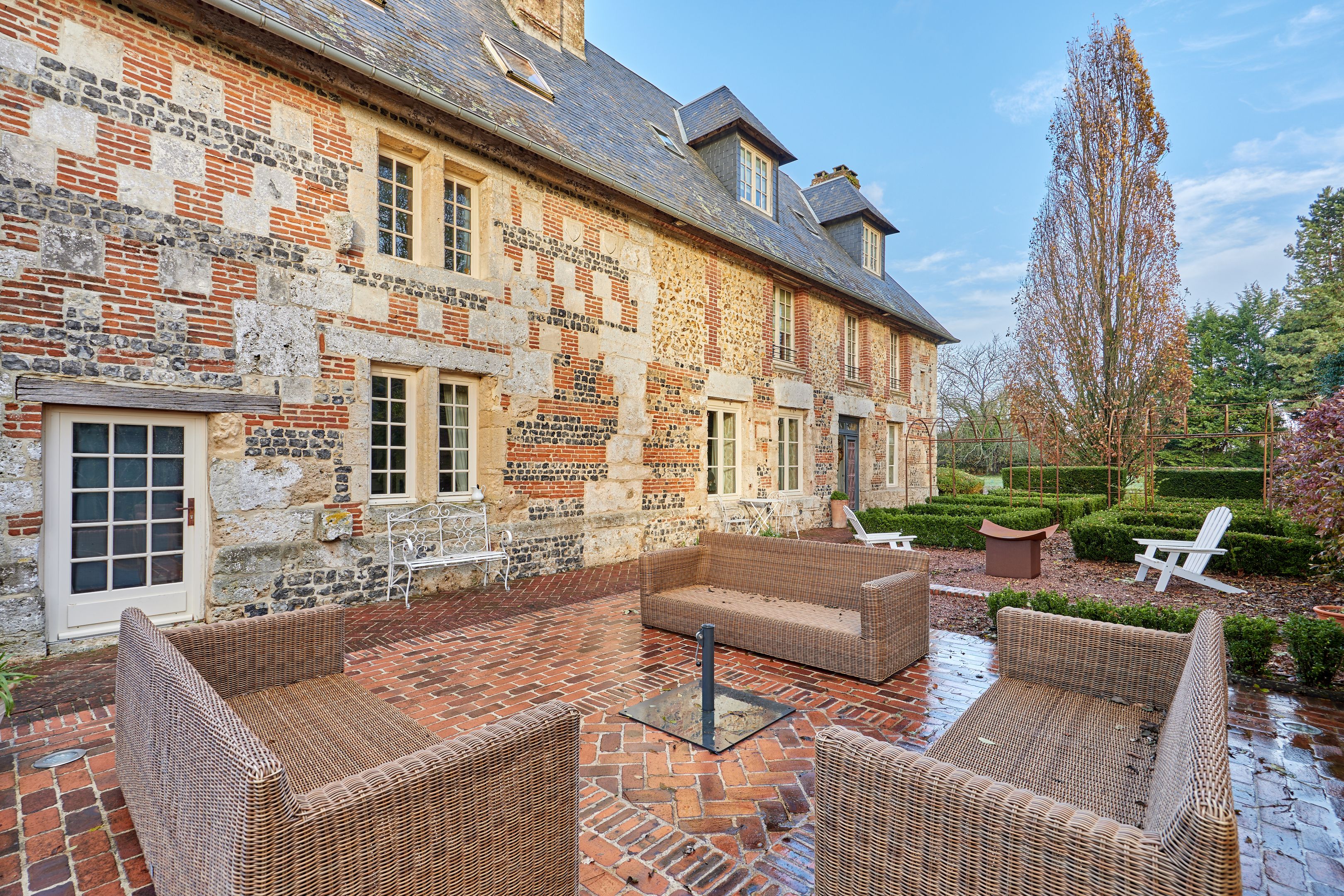 10 min from Honfleur, beautiful family property built in the 15th century on over 1.7 ha of fully enclosed grounds. Main manor house 320 m² on 3 levels in very good condition, comprising entrance hall, independent fitted kitchen with fireplace, scullery, two lounges each with period fireplace, dining area, laundry room, 5 bedrooms spread over the floors, each with bathroom and toilet, study, dressing room and linen room. Outbuildings: 51 m² guest house with two bedrooms, bathroom and toilet; double garage with first floor converted into office; former wine press of approx. 200 m² on 2 levels, suitable for conversion. On the wooded grounds: magnificent 15 x 4 m swimming pool in the center of the estate, pétanque court and 7,000 m² of pasture.