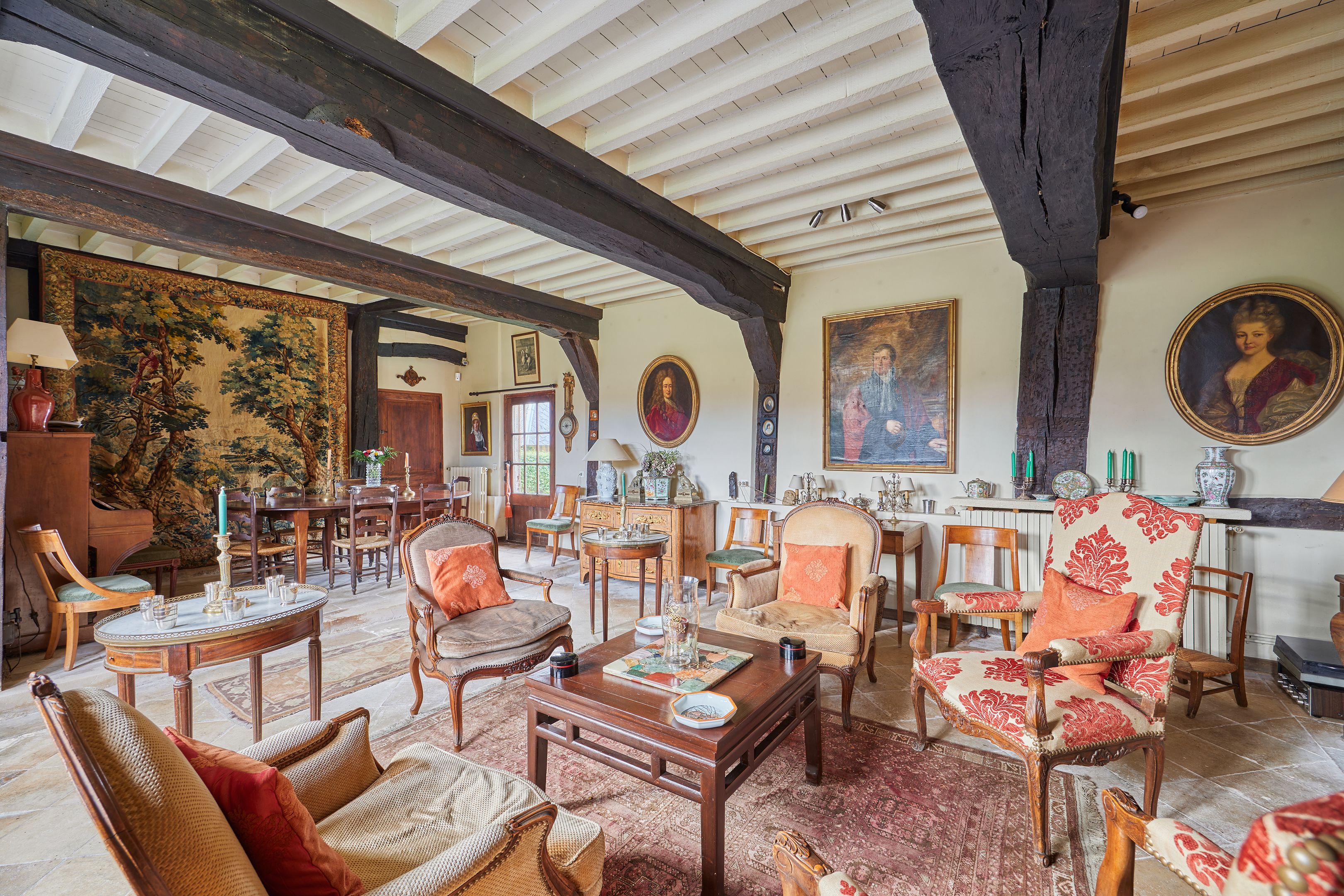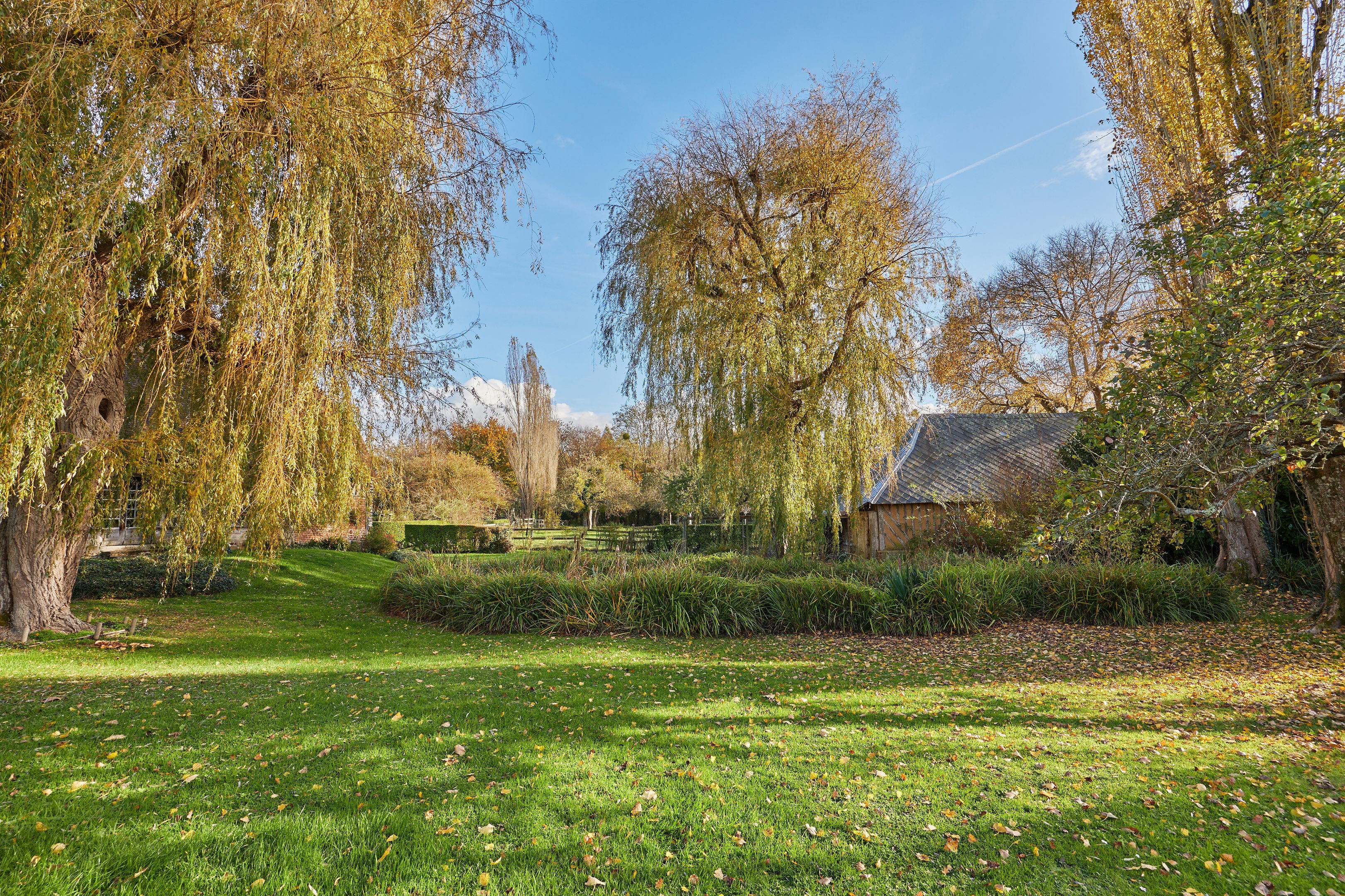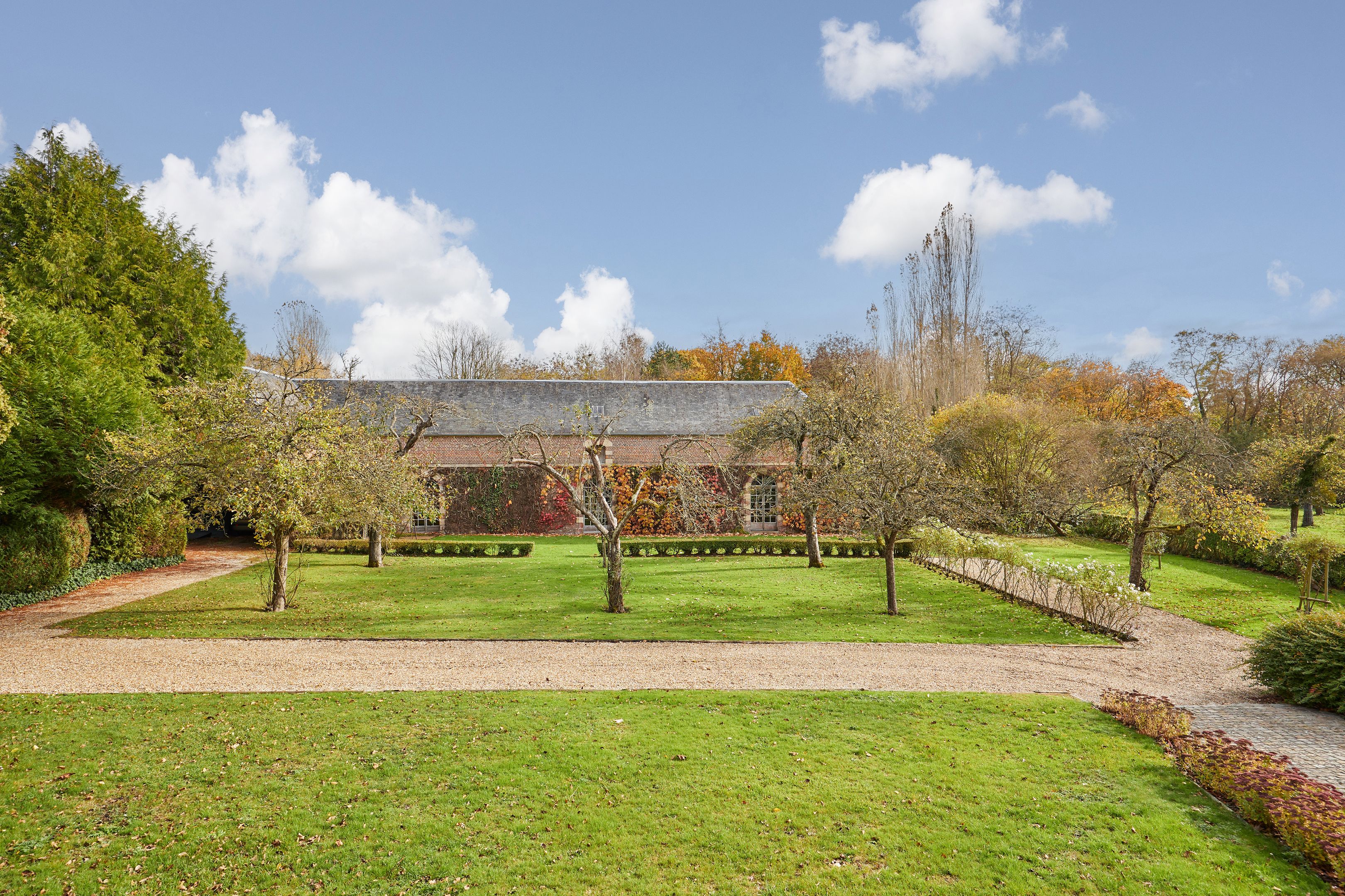 Less than 10 min from Deauville, listed historic monument, beautiful 15th-century property set in wooded grounds. Main manor house of approx. 200 m² on 3 levels with 7 bedrooms, complemented by a former farm building housing a 17th-century cider press. Outbuildings include a small 2-storey manor house with 4 bedrooms, orangery and two sheepfolds. The Manoir des Évêques is one of the oldest manor houses in the Pays d'Auge, with its emblematic Auge architecture of stone foundations and half-timbering.