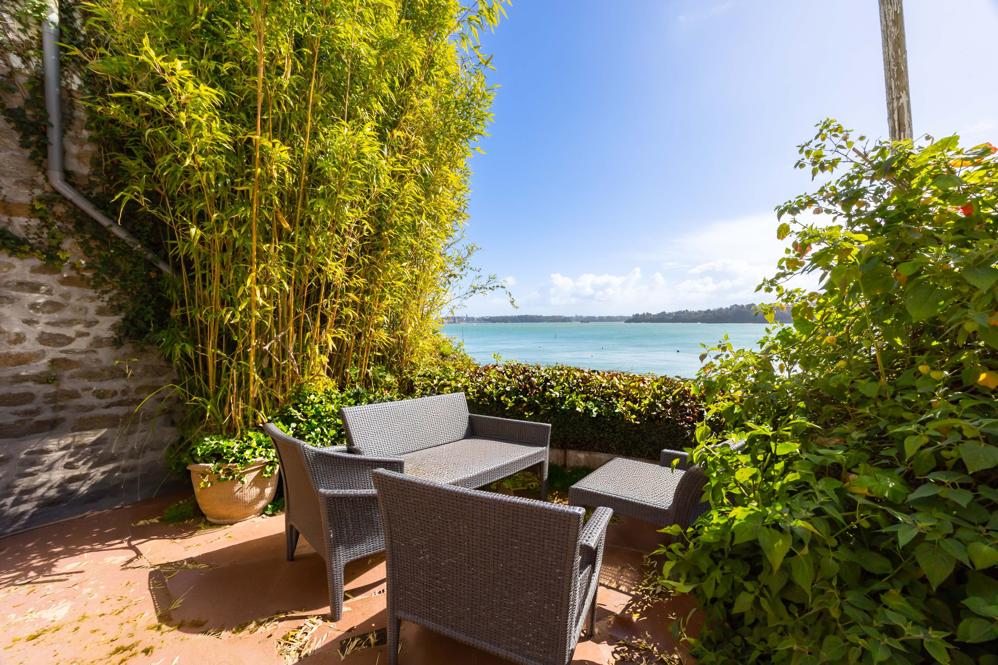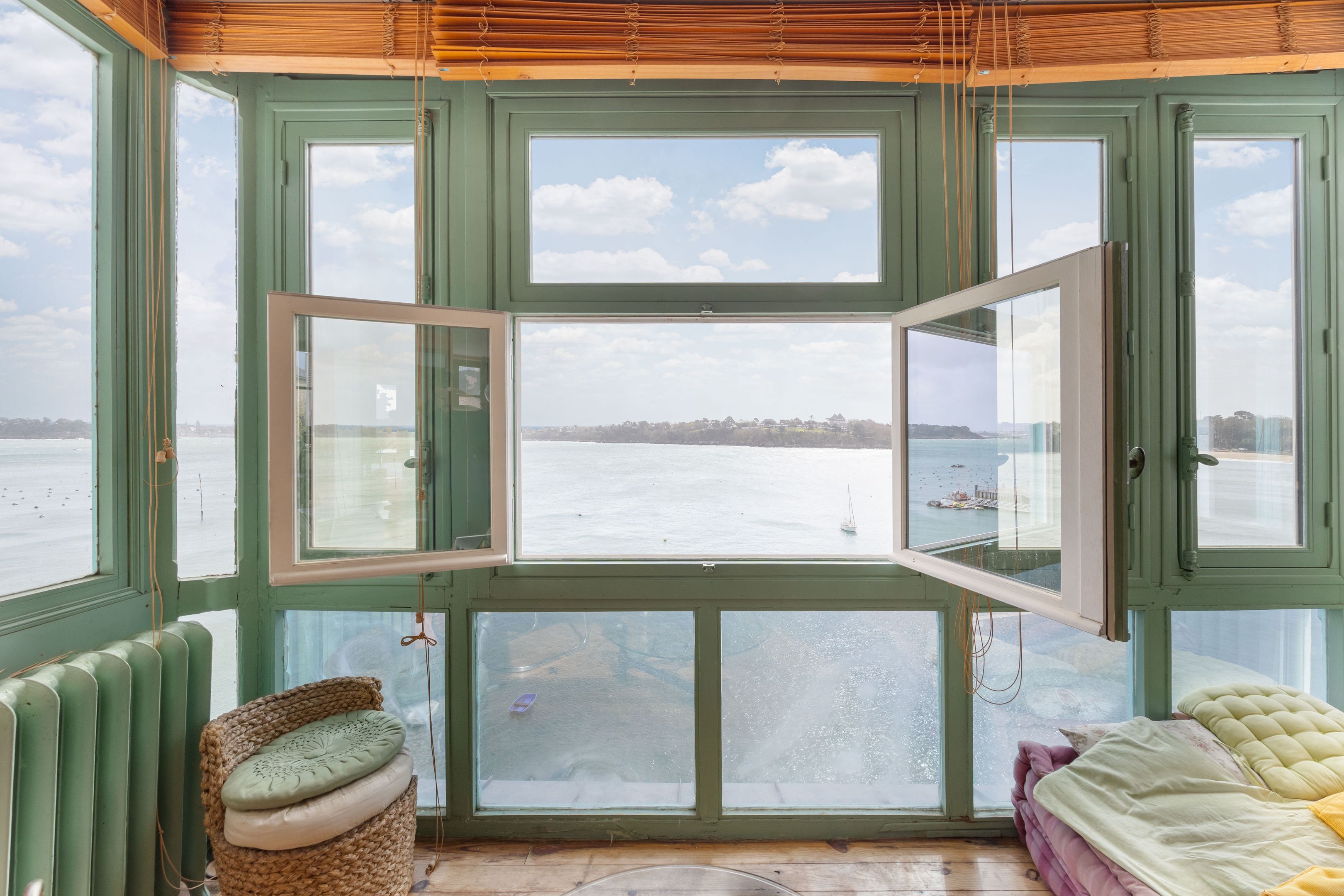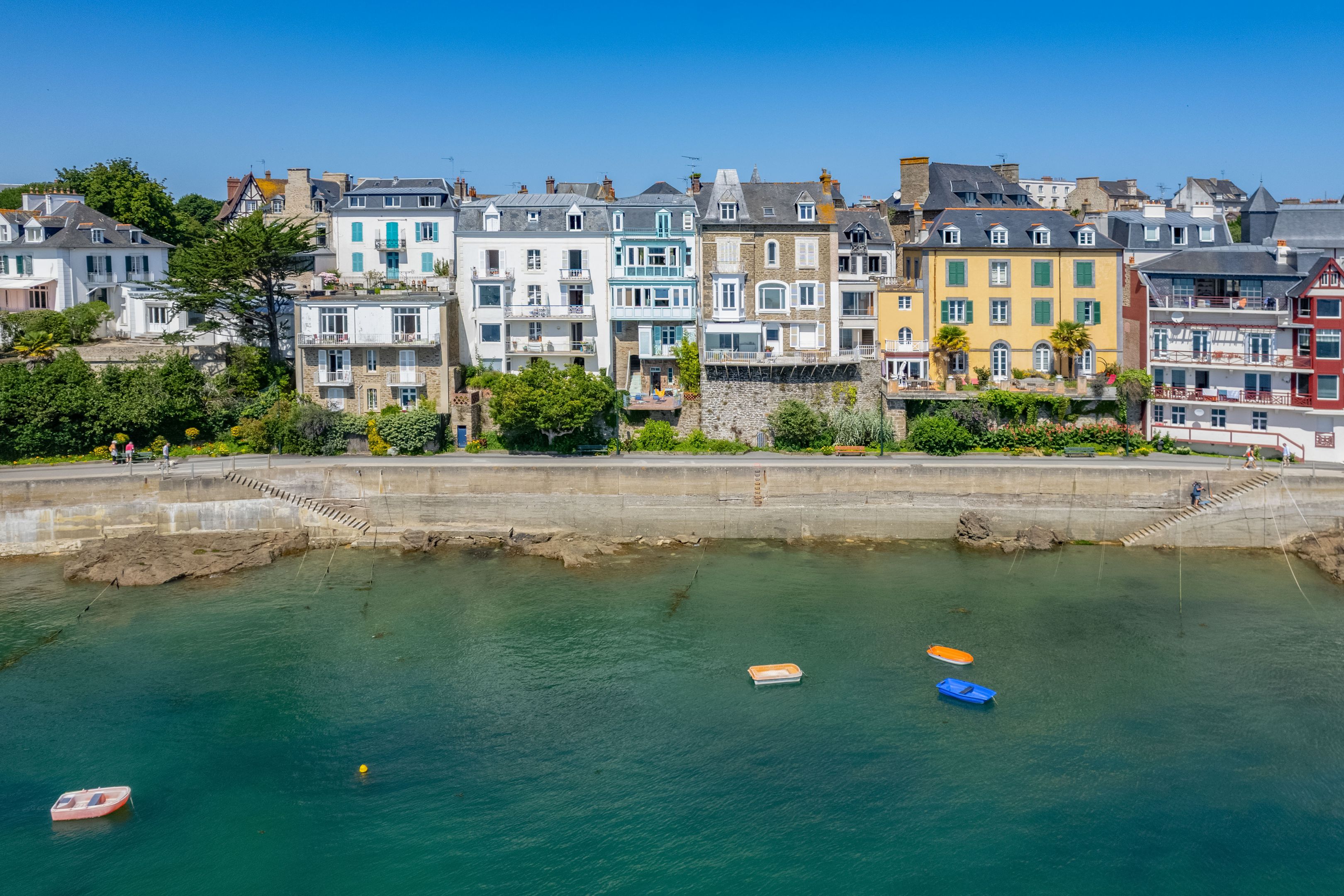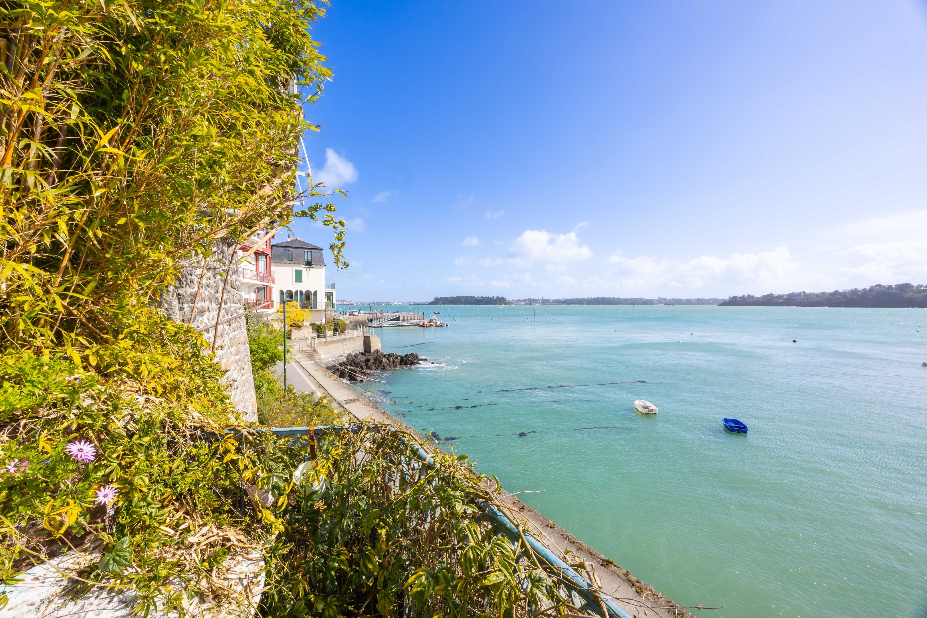 Close to the marina, downtown shops and beaches, overlooking the Clair de Lune promenade. Rare 1890 Dinard seafront villa boasting a privileged location, superb views over the Baie du Prieuré and pleasant exteriors. The 144 m² living space is divided over 5 levels (3 with elevator access): entrance hall, light-filled east-west through living room with bow window, open kitchen, 4 or 5 bedrooms, some with extended balconies, study, 3 bathrooms, one with bathtub, study, summer kitchen. Exceptional sunny terrace of approx. 35 m² offering extraordinary views and peace and quiet.