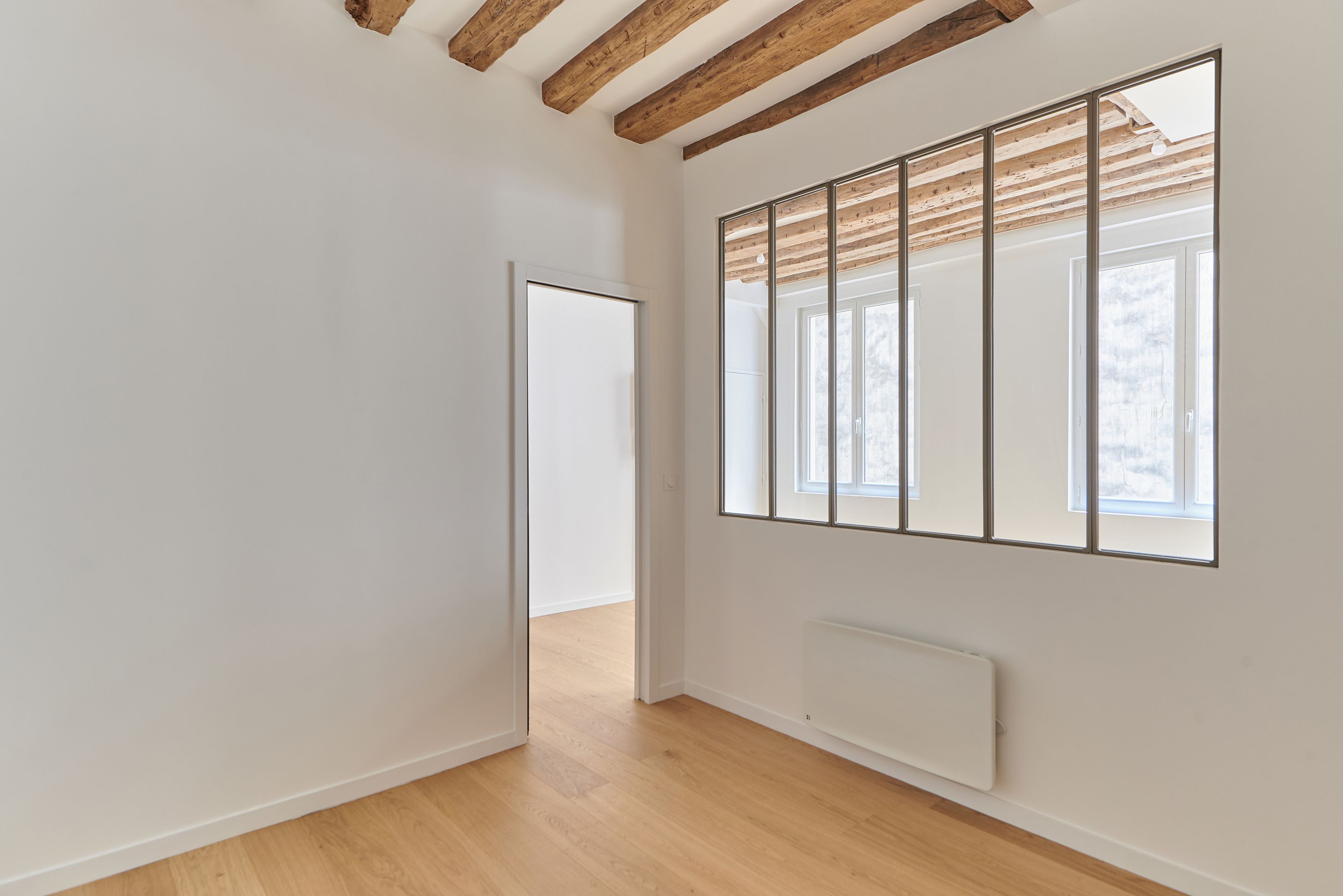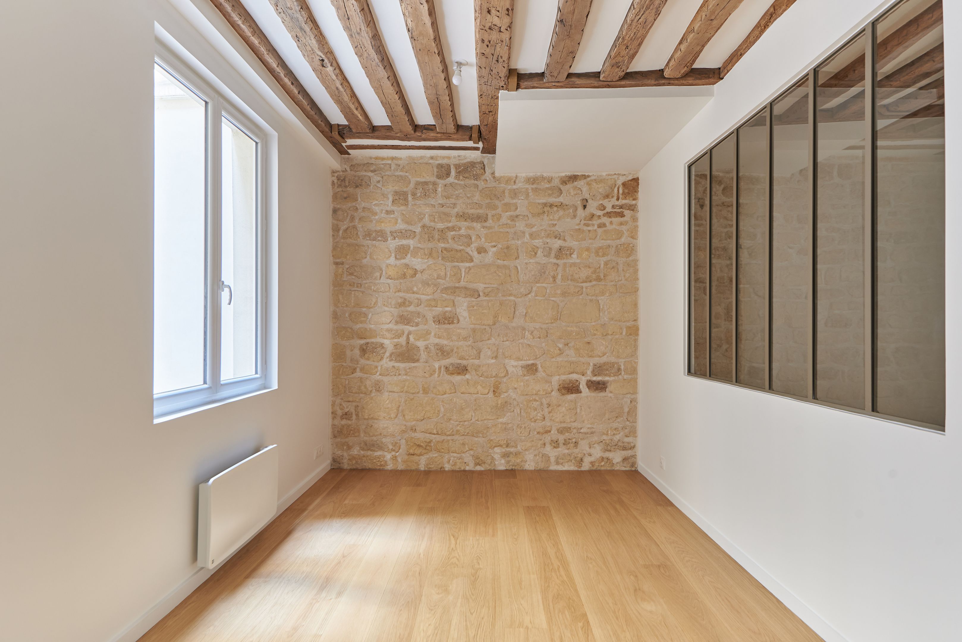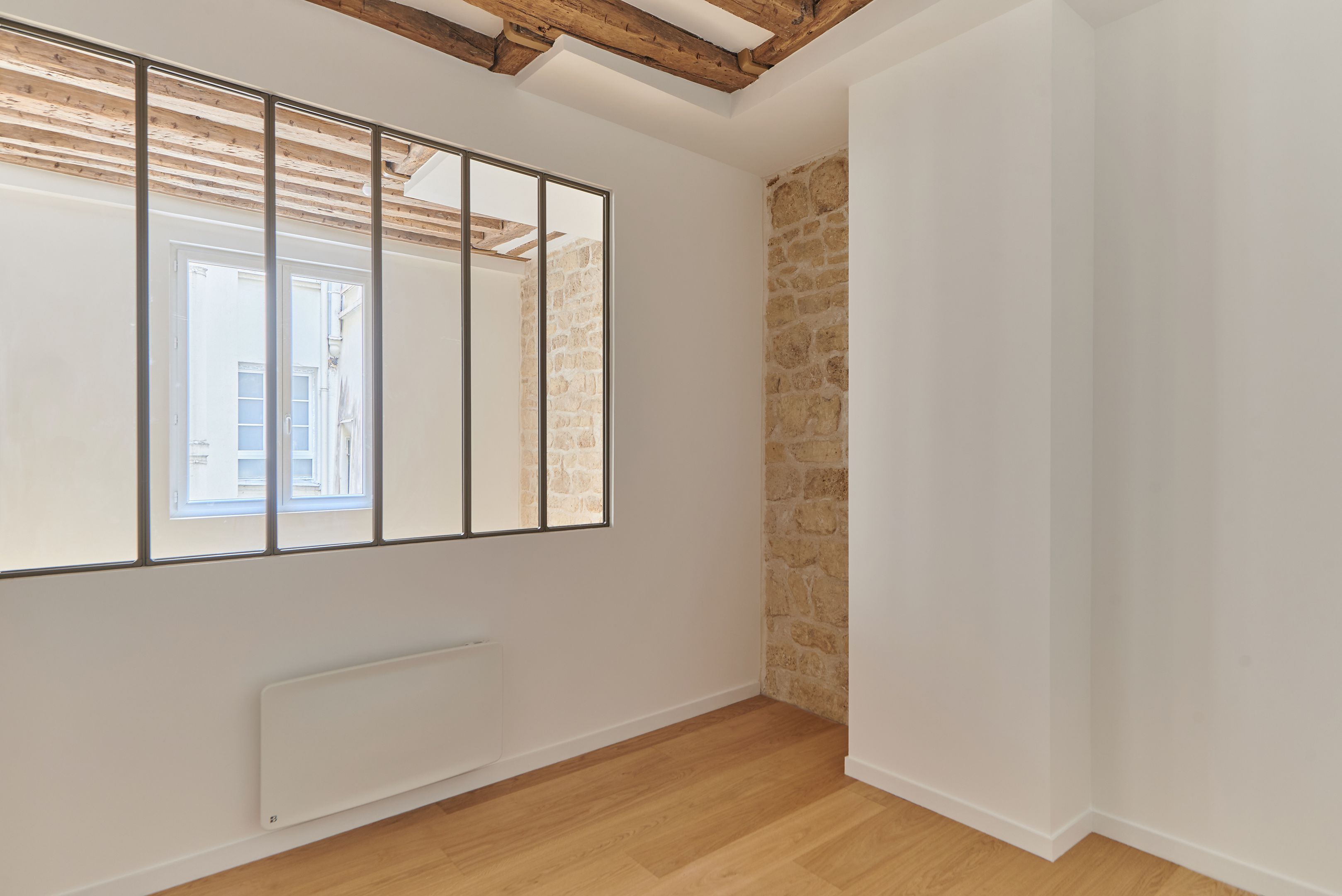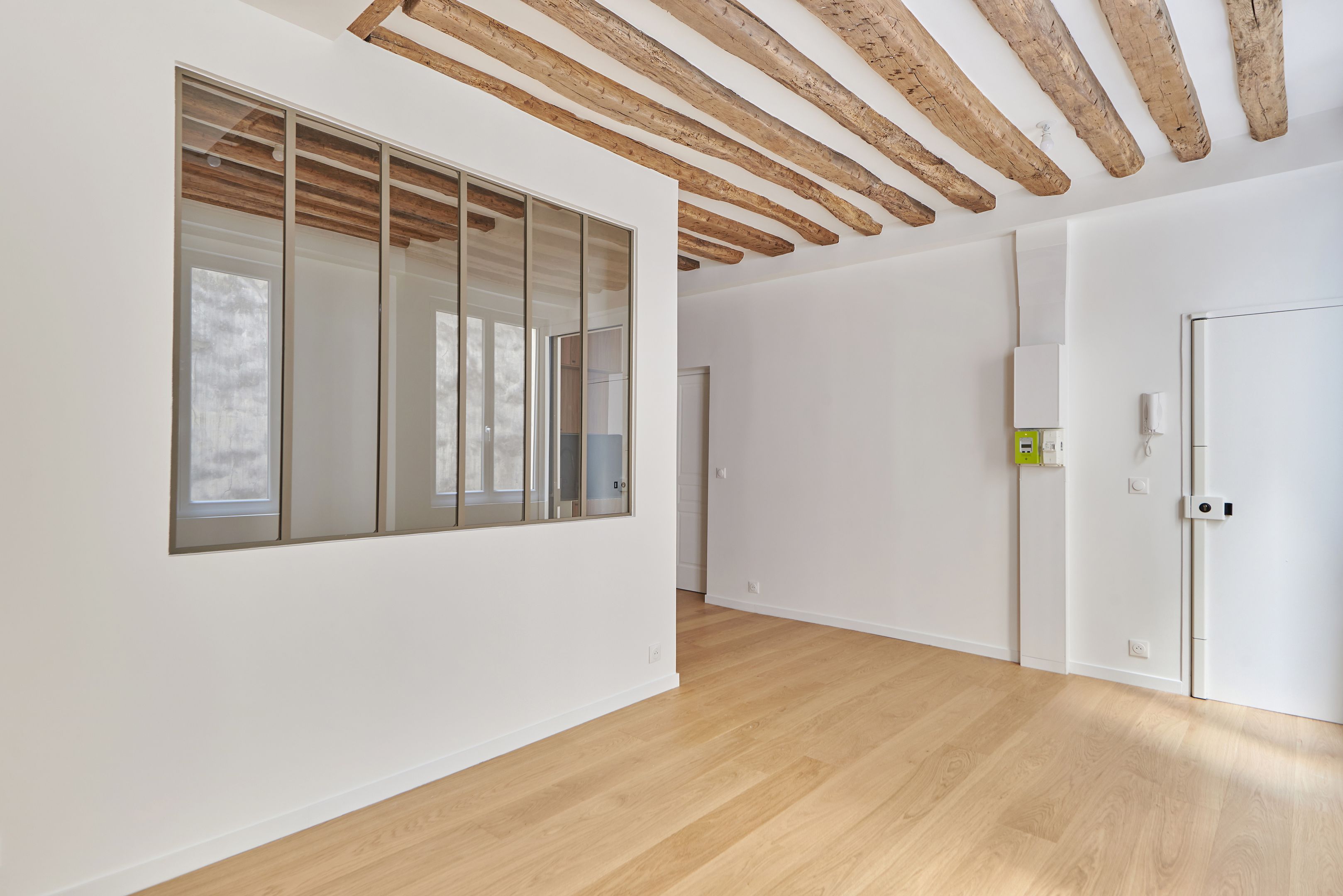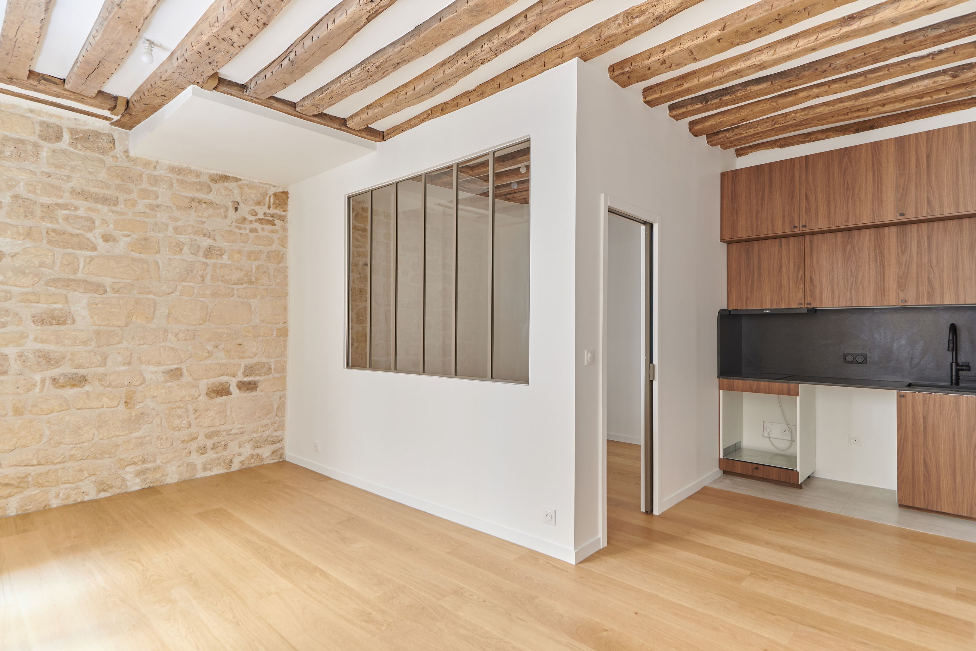 Newly refurbished 33.68 m² Loi Carrez apartment located on the 2nd floor, served by a staircase. Living room with open kitchen, bedroom, shower room with toilet, storage space. Quiet location.
