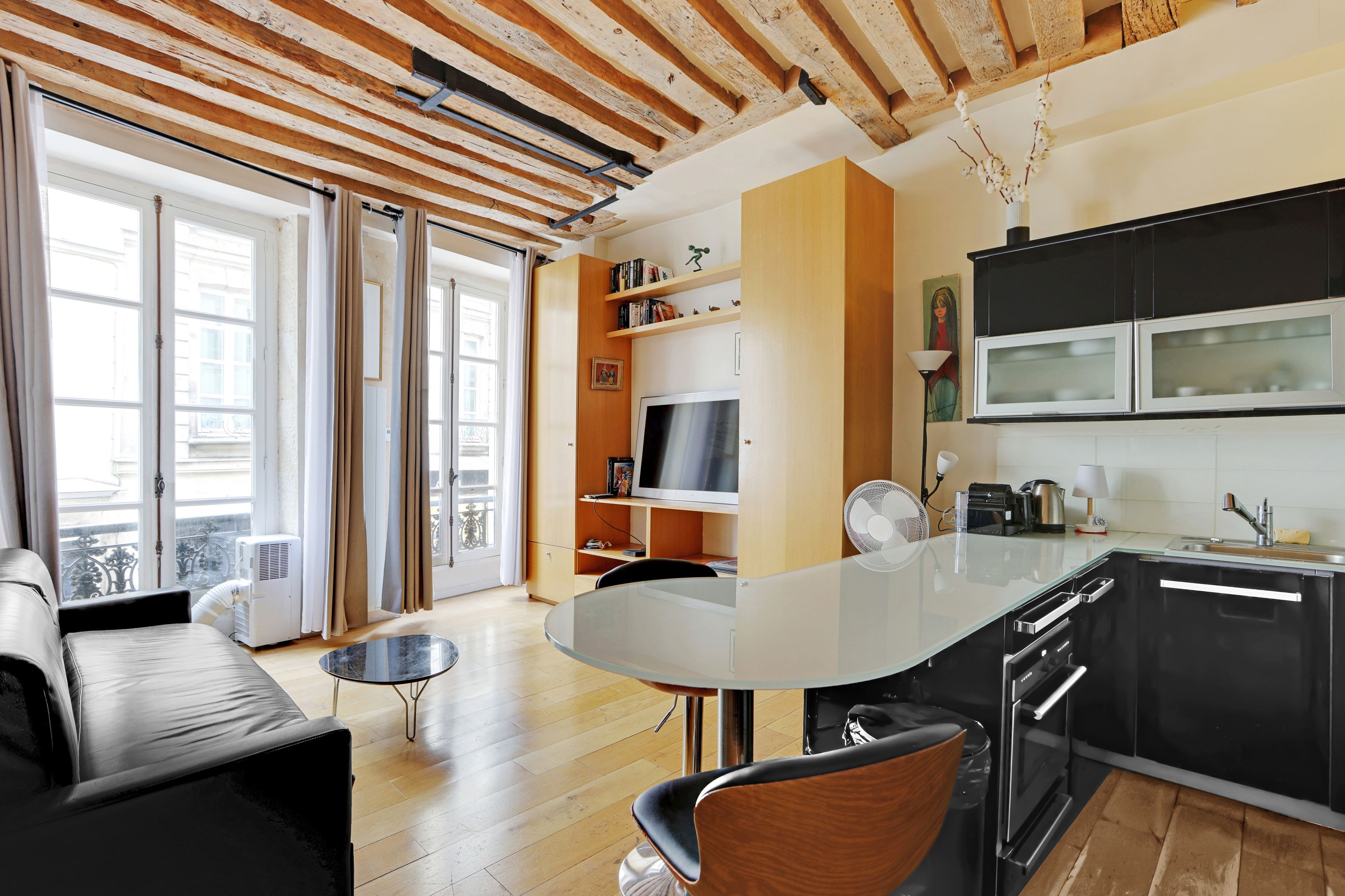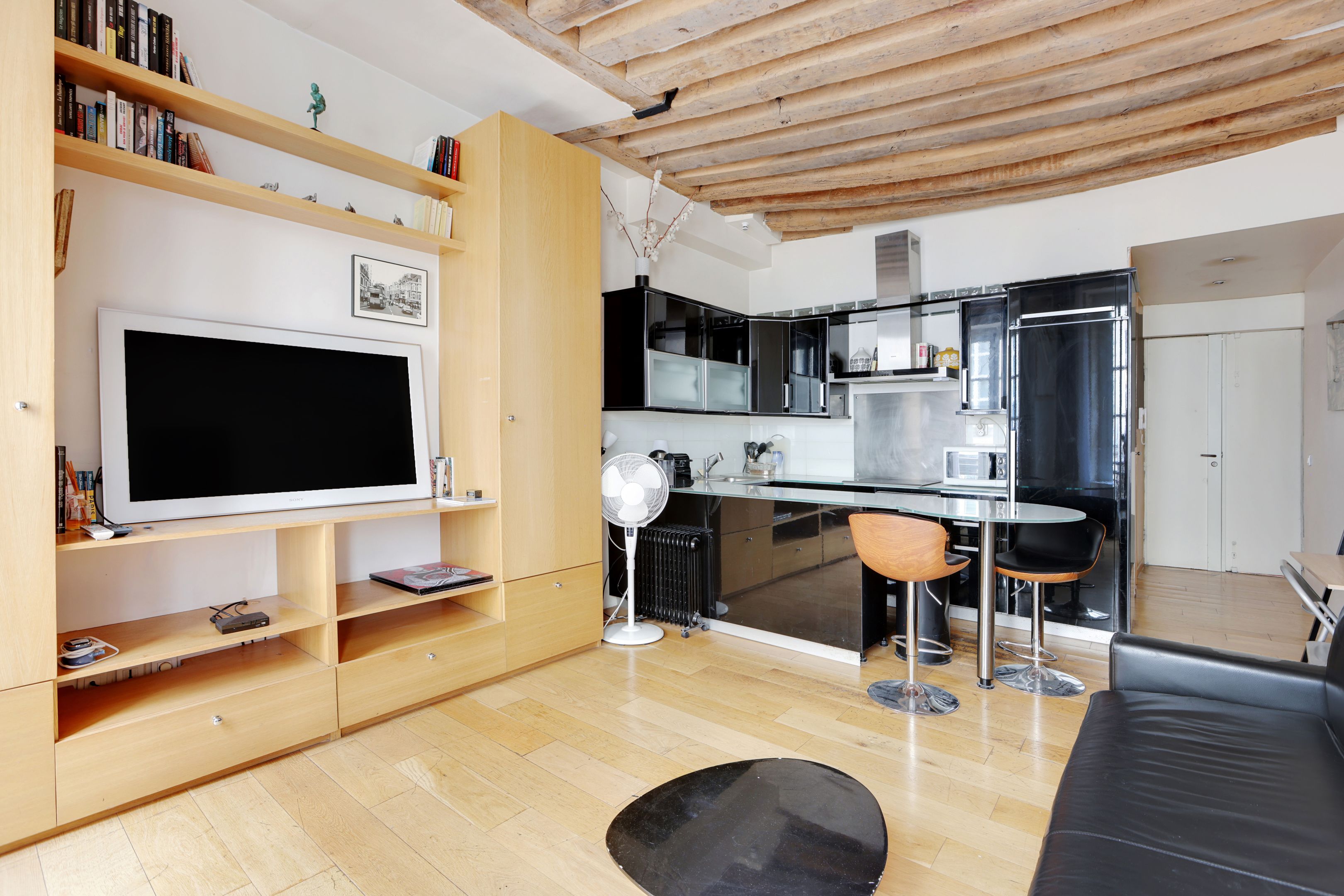 Ideally located between Place de l'Odéon and Place Saint-Sulpice, in a beautiful 18th-century building with renovated common areas, 31 m² loi Carrez studio in good condition, benefiting from the charm of the past and spaciousness thanks to 3.50 m high ceilings. Spacious main room with storage space, furnished and equipped open kitchen, bathroom with toilet. Sold with furniture.