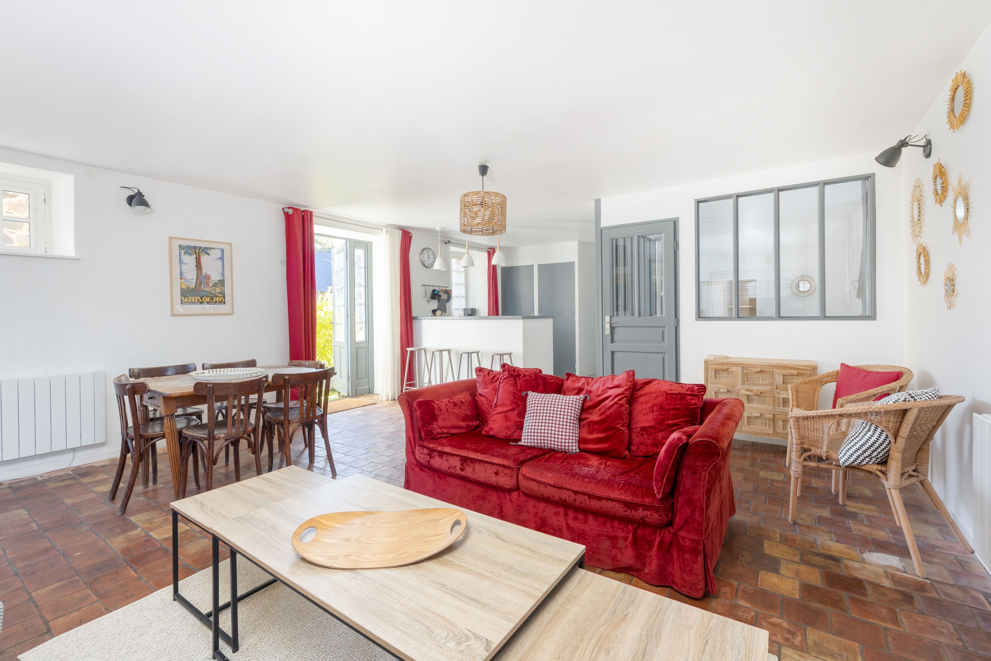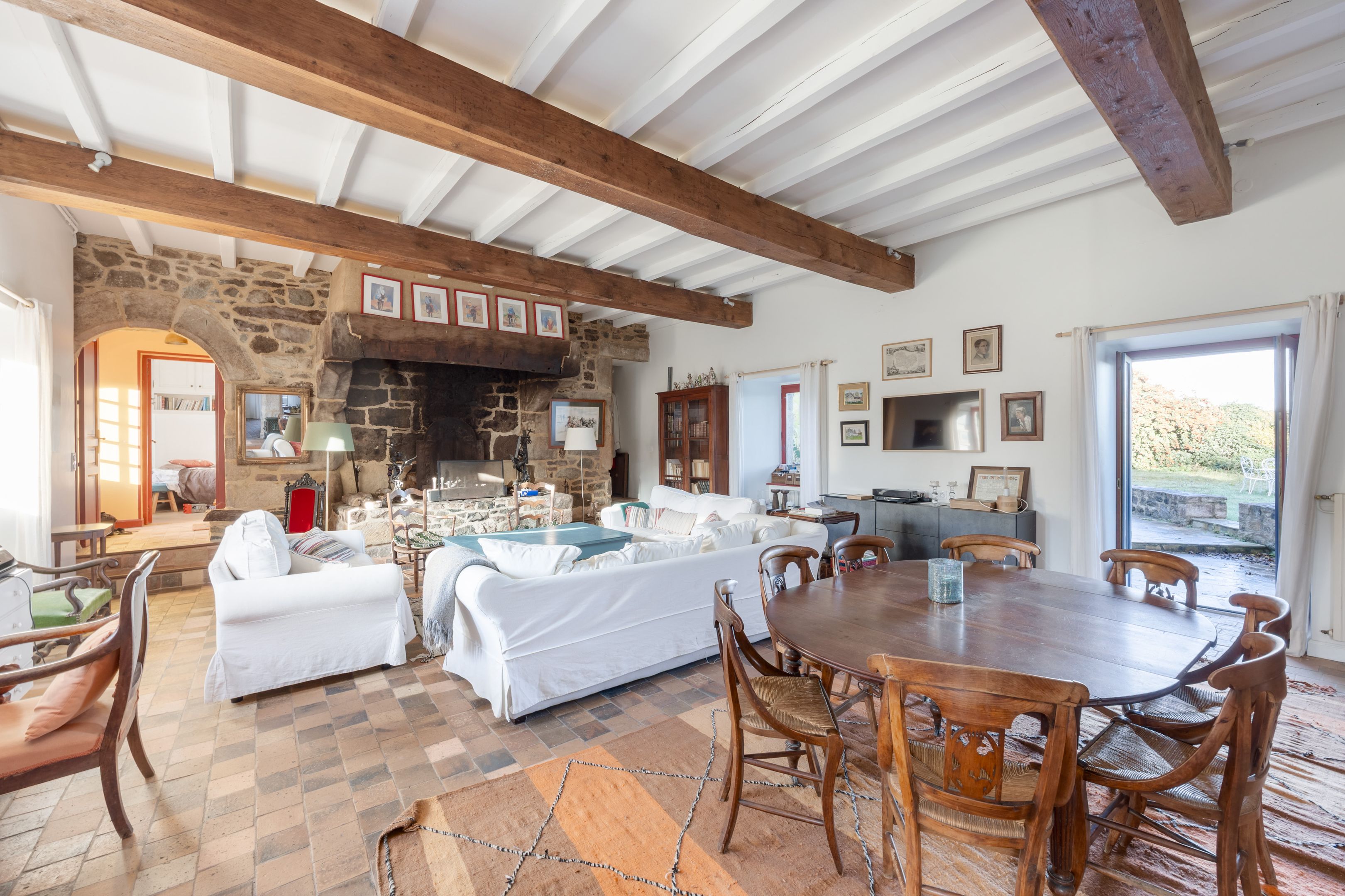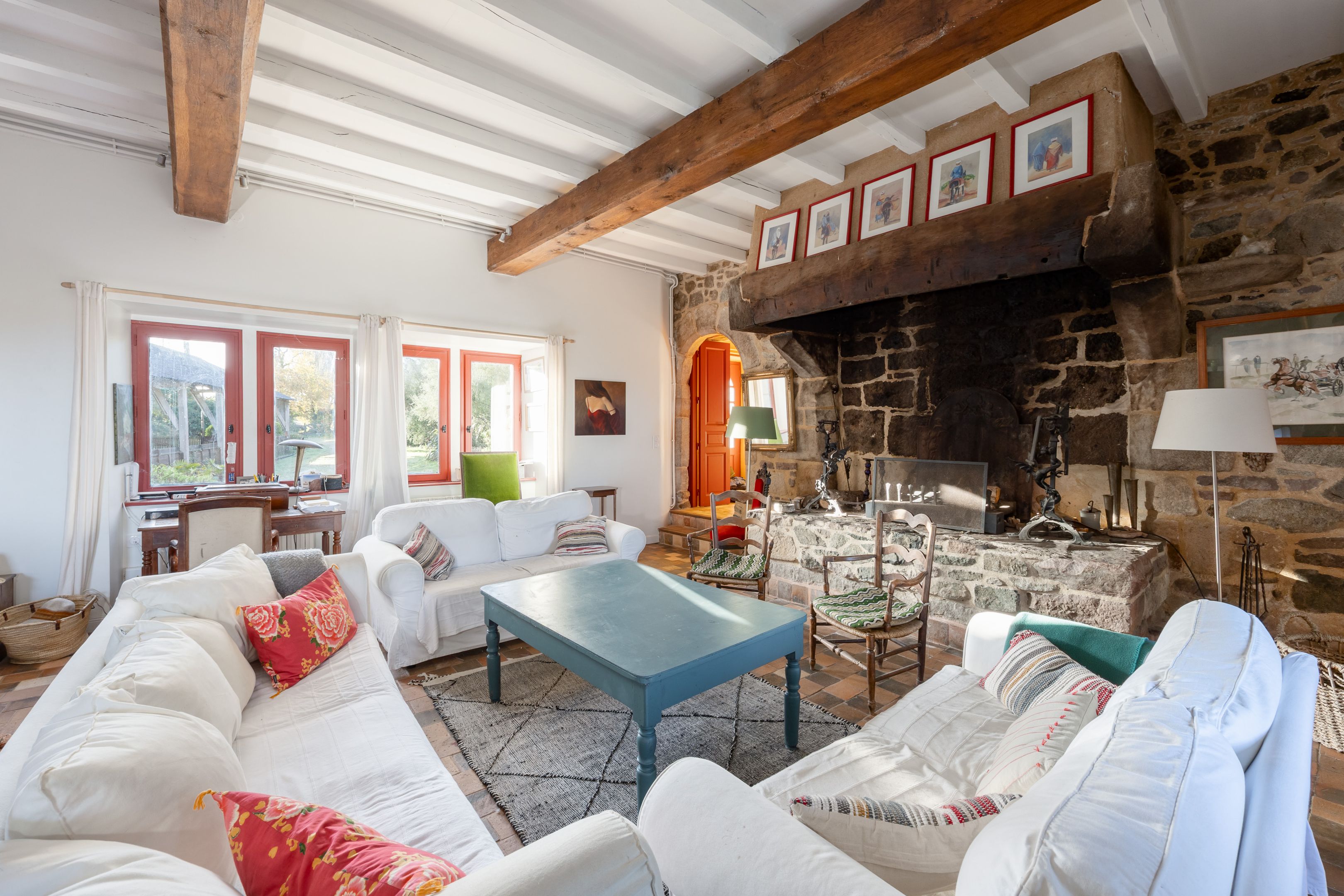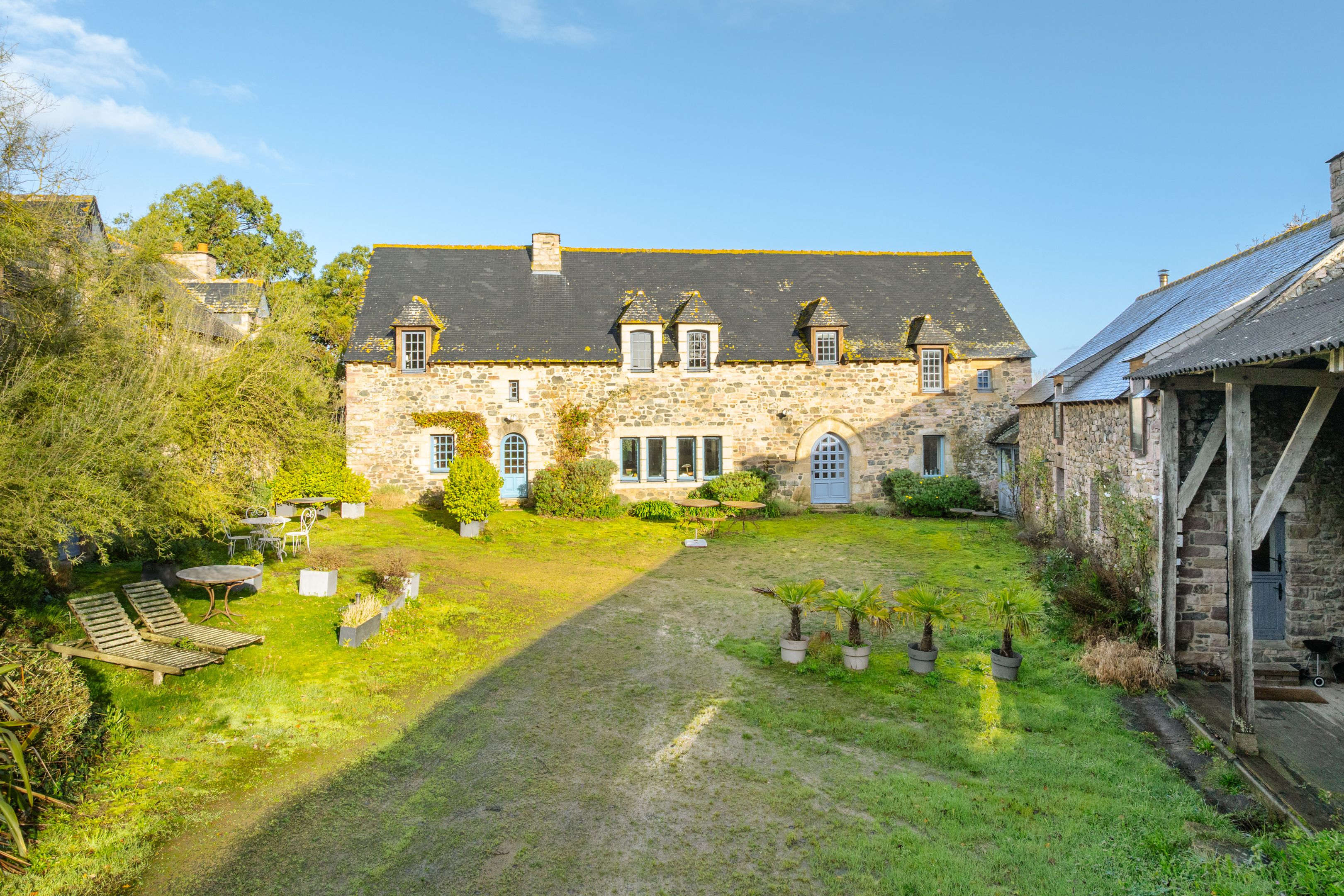 Sables-d'Or-les-Pins, in the heart of an environment between land and sea, 800m from the beach. Spacious, typically Breton family property of approx. 600m², dating from the 16th century and benefiting from a privileged location, a large reception capacity and excellent general amenities. The main house offers 215m²: living room with fireplace and sea view, fitted kitchen, 5 bedrooms, 4 bathrooms. Two adjoining longères, comprising 6 charming gîtes, offer a total of 12 bedrooms and 9 additional shower rooms. Large sunny courtyard and sea-view garden surrounded by vast meadows. Outbuildings.