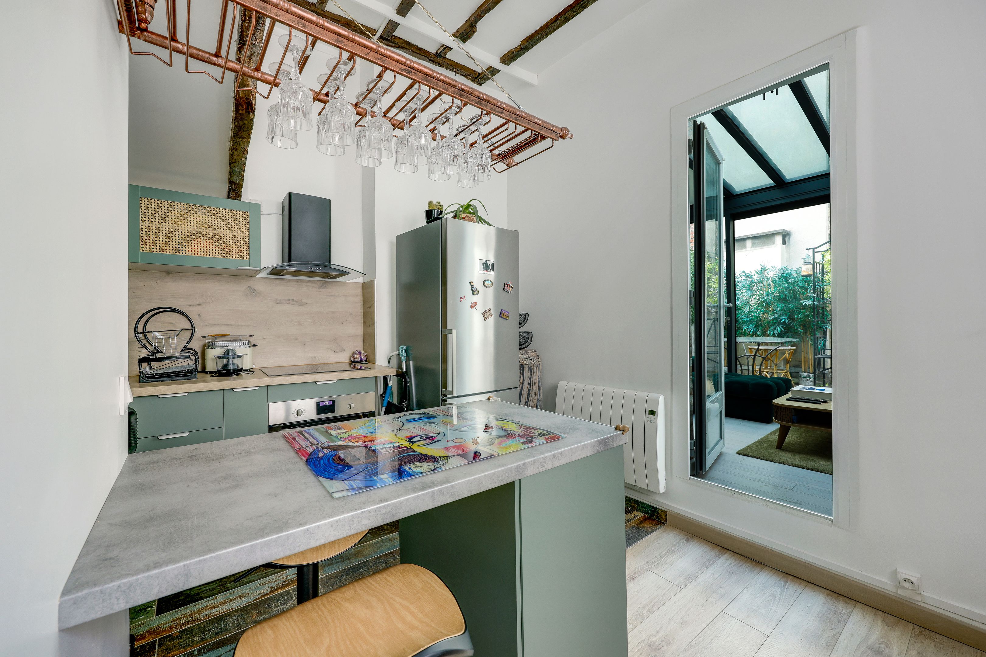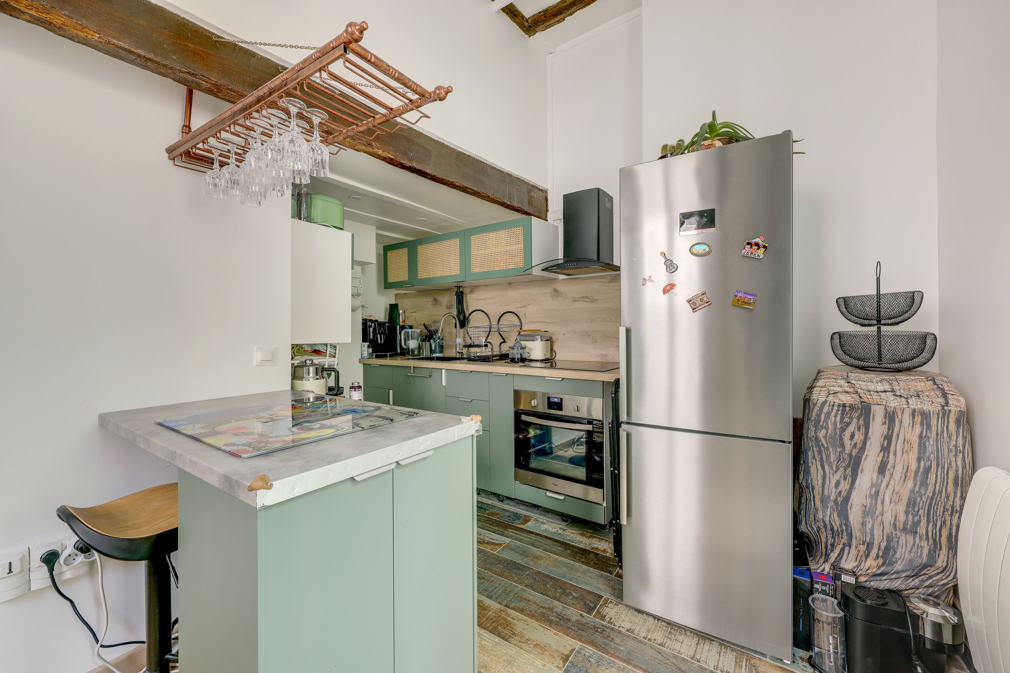 Facing the Jussieu faculty, close to the quays of the Seine, in a highly sought-after neighborhood. Beautiful, well-maintained condominium, a fully renovated 45m2 carrez apartment with terrace on the fourth floor served by elevator.