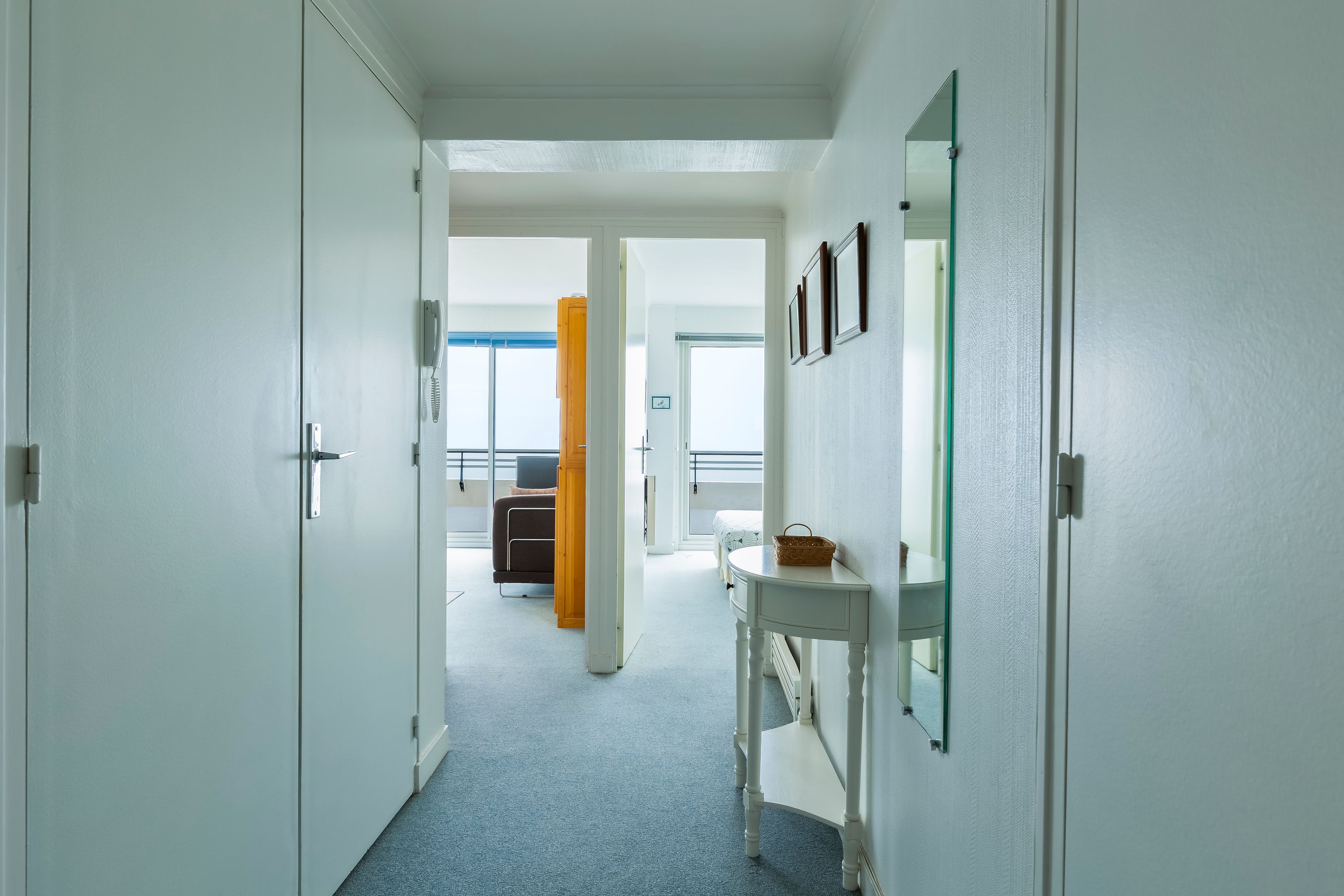 Entrance hall, reception room opening onto a sea-facing terrace, separate fitted kitchen, bedroom overlooking the bay, shower room, storage space. Enclosed garage and secure basement parking space, cellar. Highly profitable for seasonal rental.