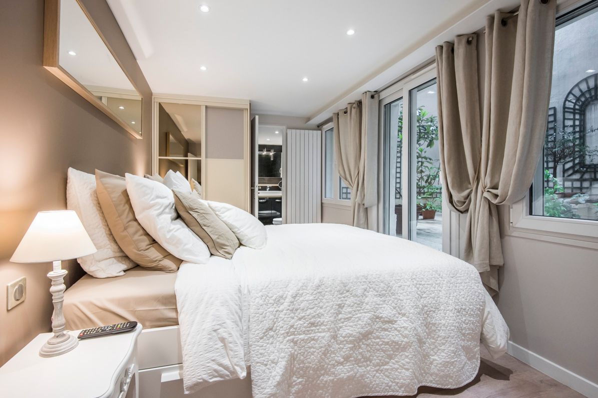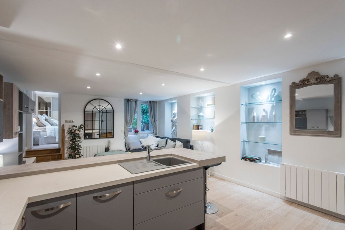 Beautiful 17th-century building with well-kept communal areas. Quiet, very pleasant ground-floor apartment overlooking a lovely planted courtyard. Living room with modern, fully fitted and equipped kitchen, bedroom with storage space, shower room with toilet. Cellar.