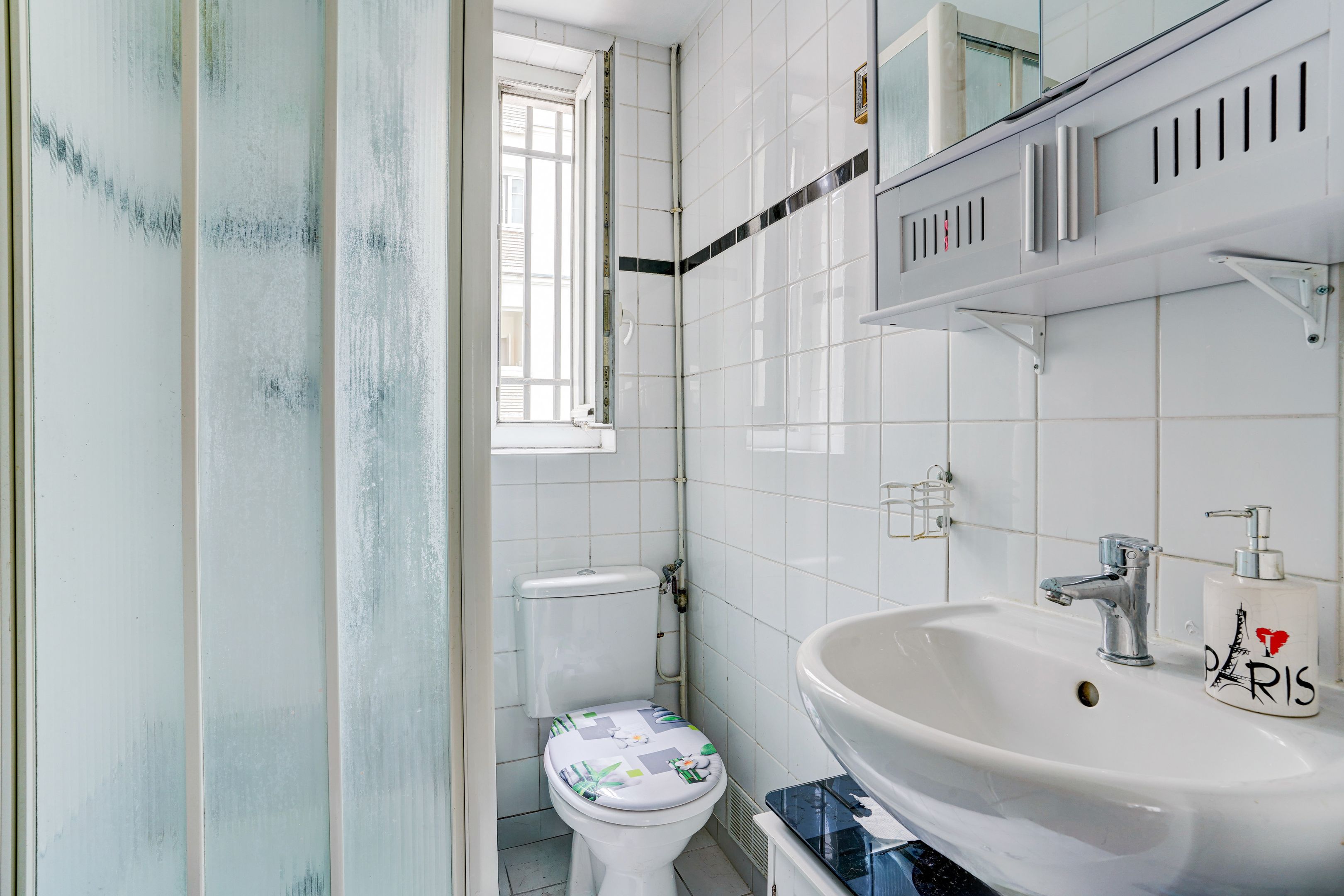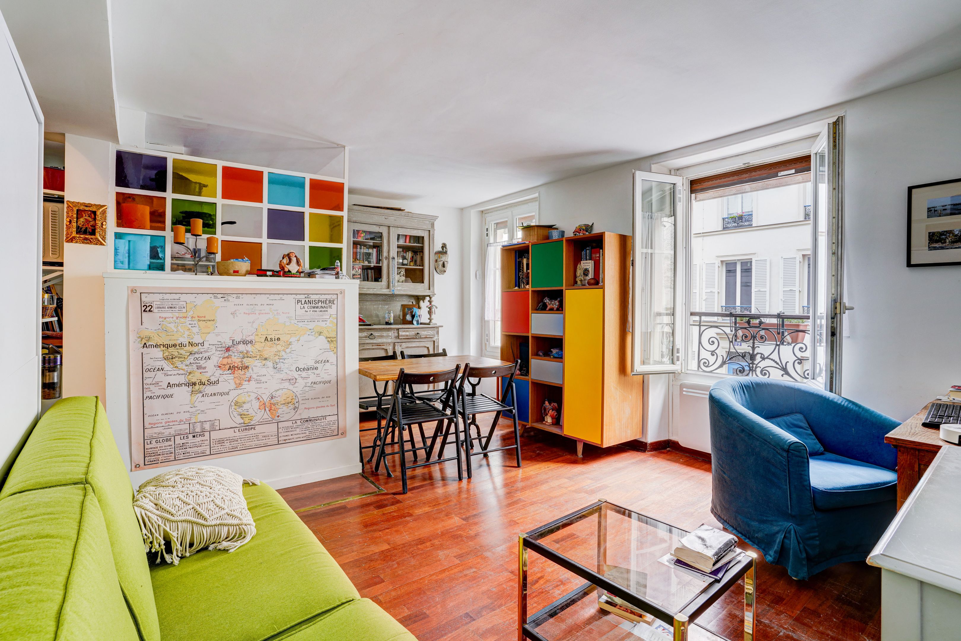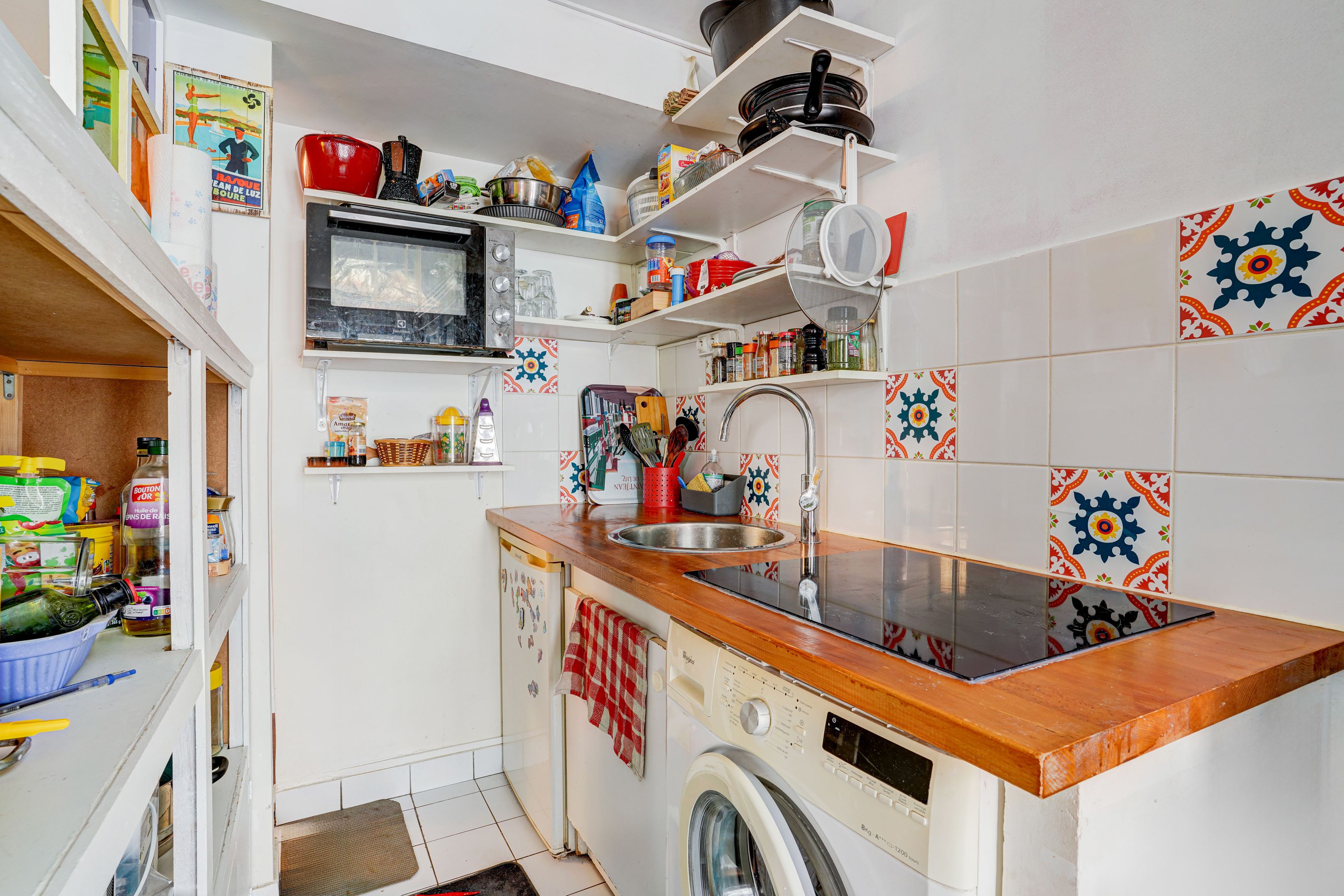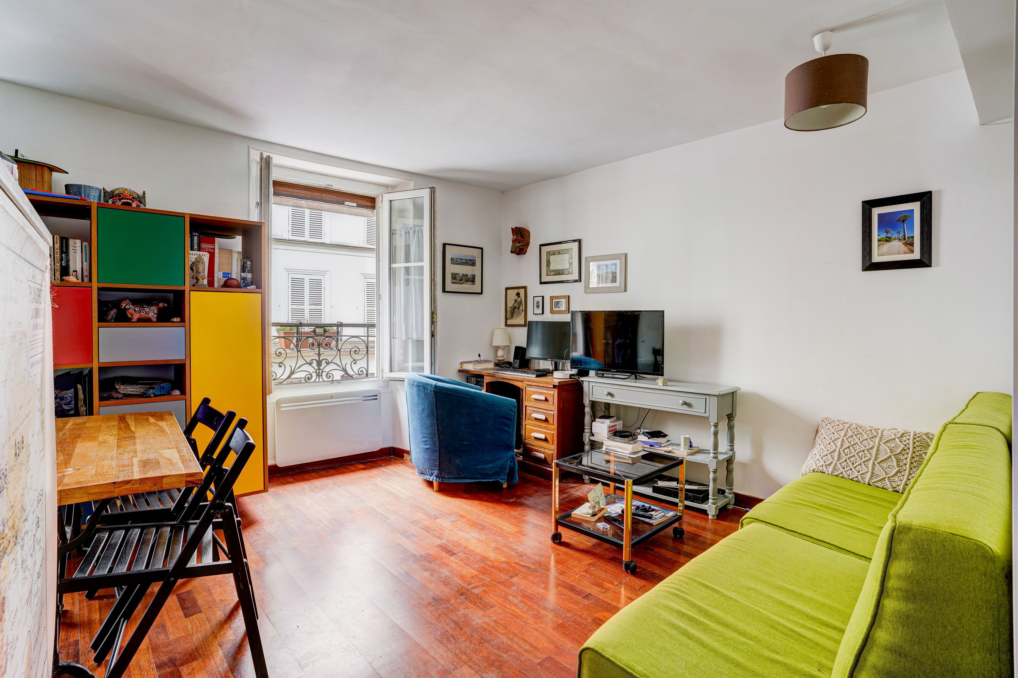 In a quiet street between rue des Plantes and rue Didot, well-maintained old building. Pleasant, through-plan apartment on 1st floor with staircase. Entrance hall, living room, open-plan kitchen, bedroom, shower room, toilet. Cellar