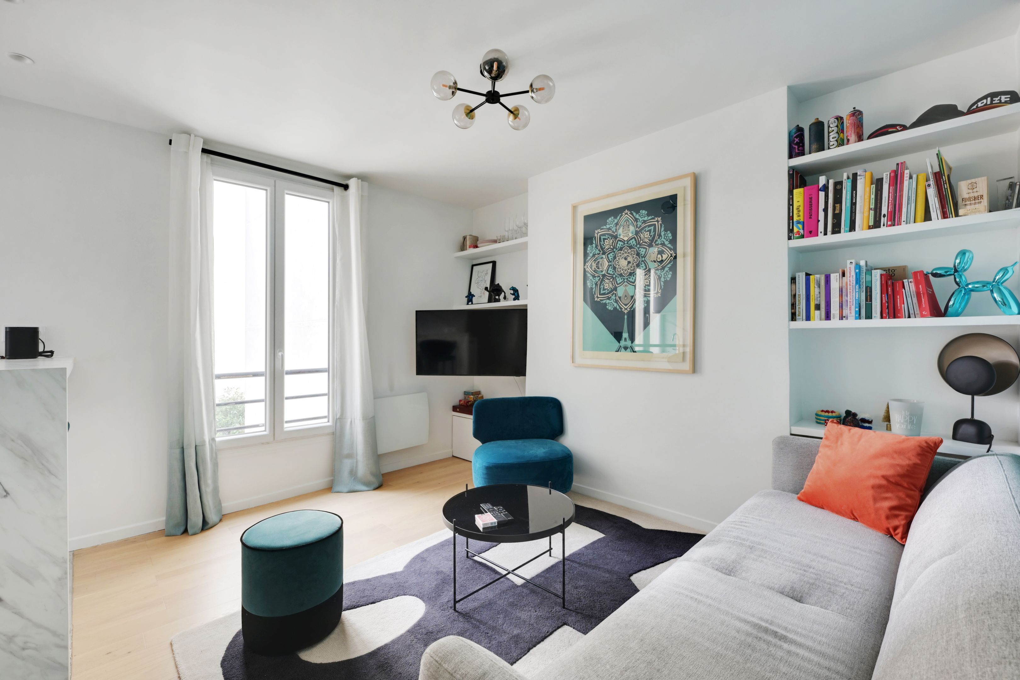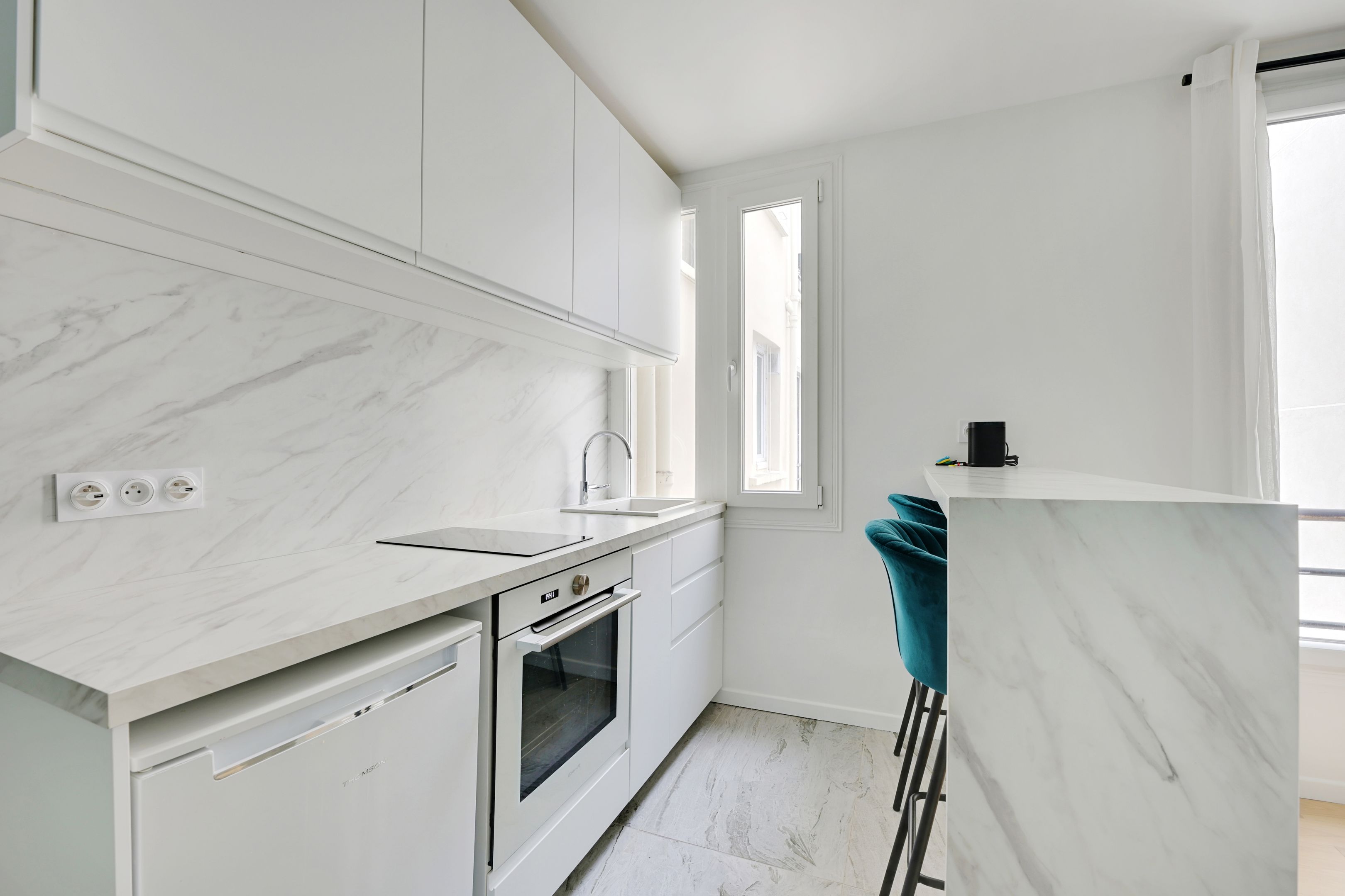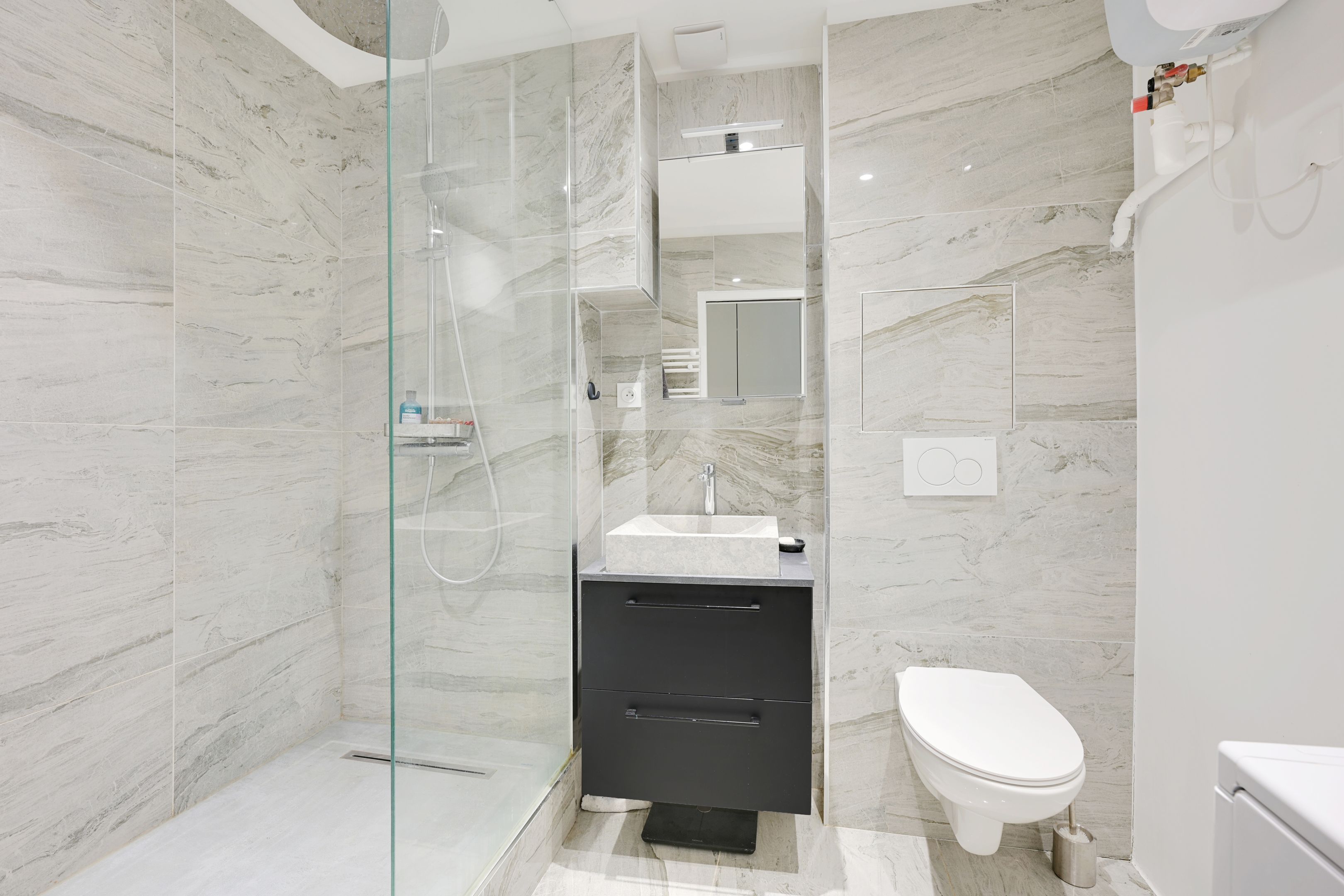 Well-maintained old building, 37.84 m² loi Carrez apartment in perfect condition, located on the 3rd floor with access by staircase, benefiting from plenty of light thanks to its south-western exposure and space-saving layout. Entrance hall, living room opening onto courtyard with open-plan fitted kitchen, spacious bedroom with made-to-measure cupboards, shower room with toilet. Cellar