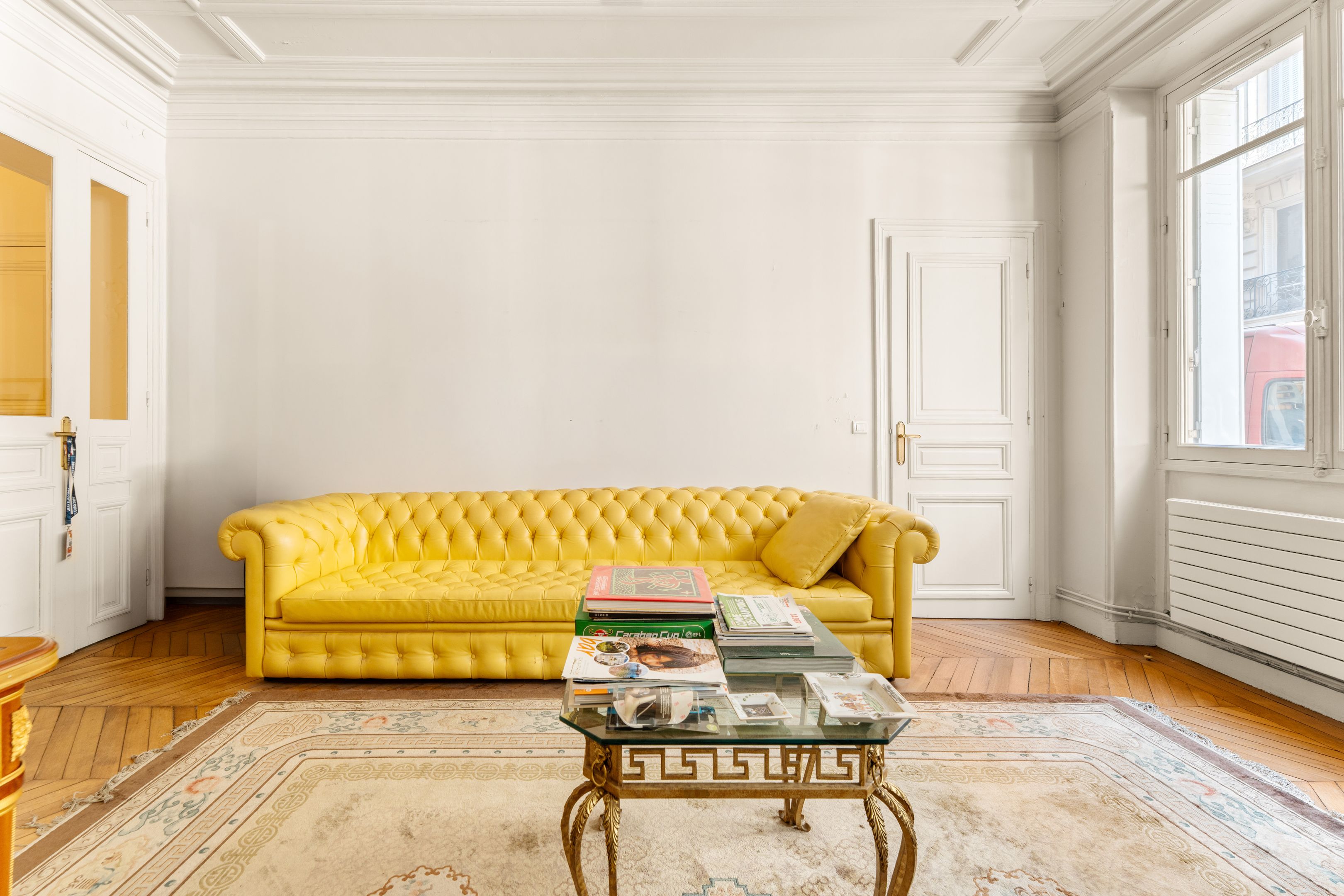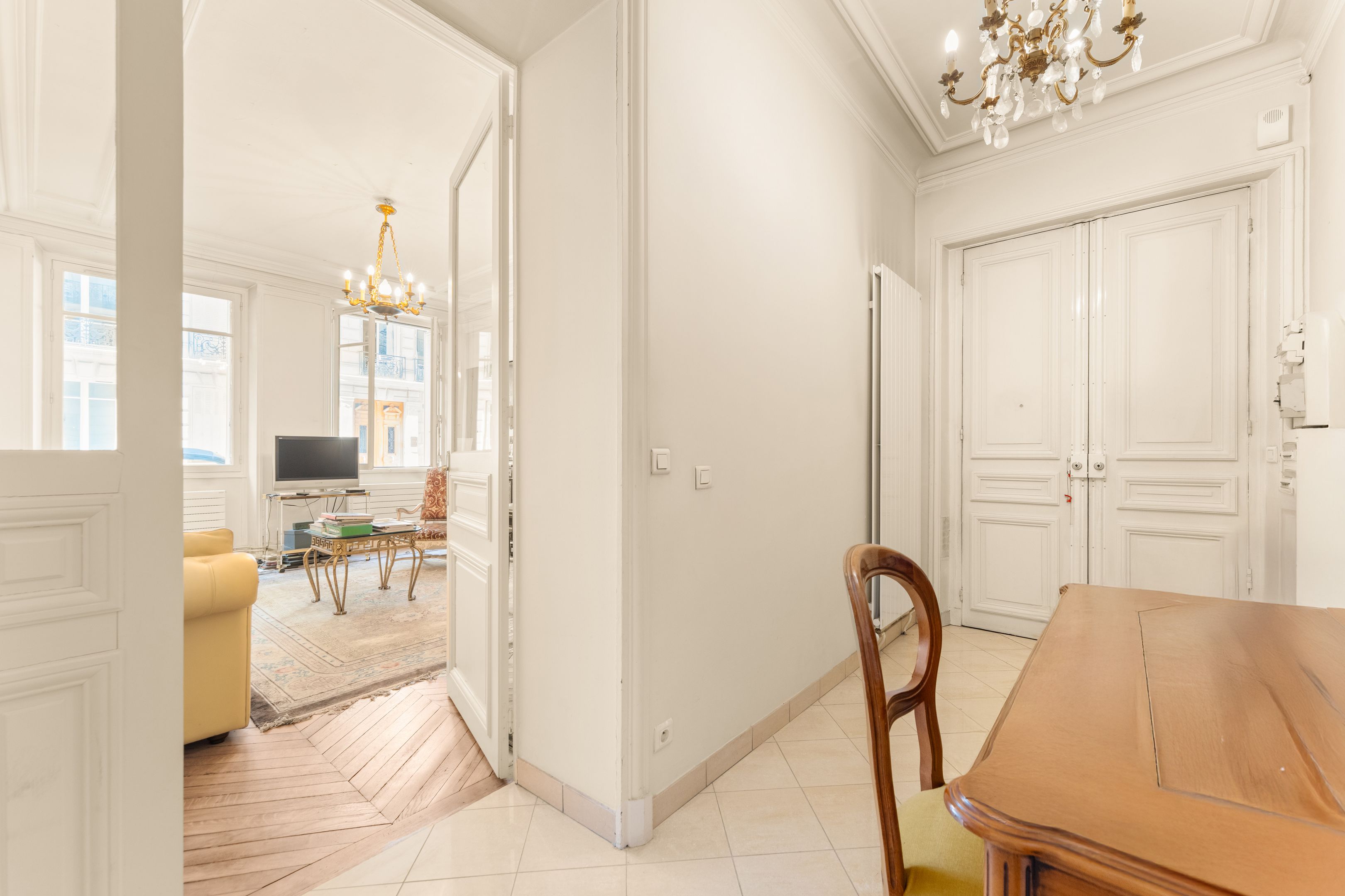Just a stone's throw from the Plaza Athénée, Champs Elysées and Alma, in a luxury Haussmann-style building, 65m2 apartment with parquet flooring, moldings and fireplaces, ideal for a pied-à-terre or a liberal profession.
