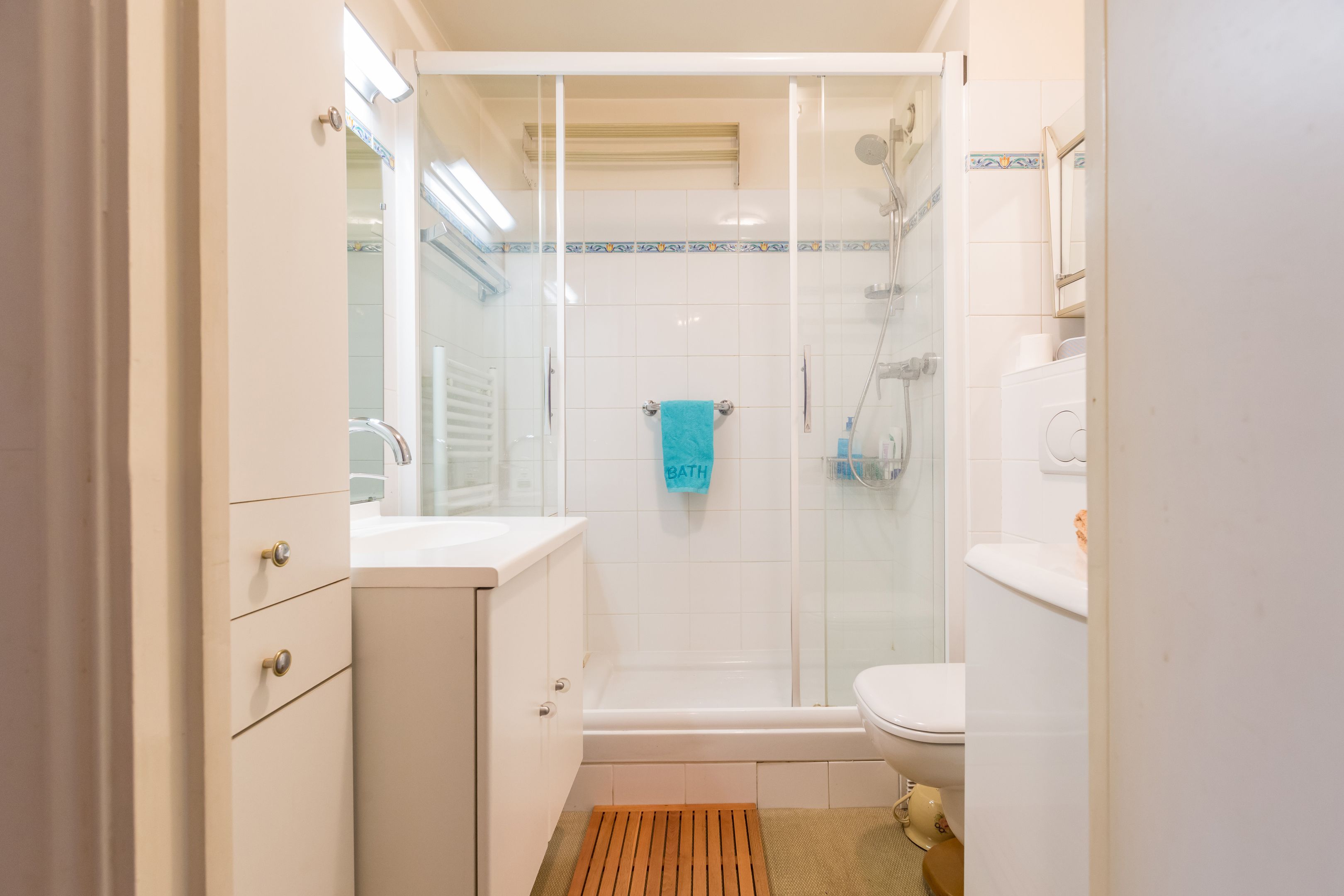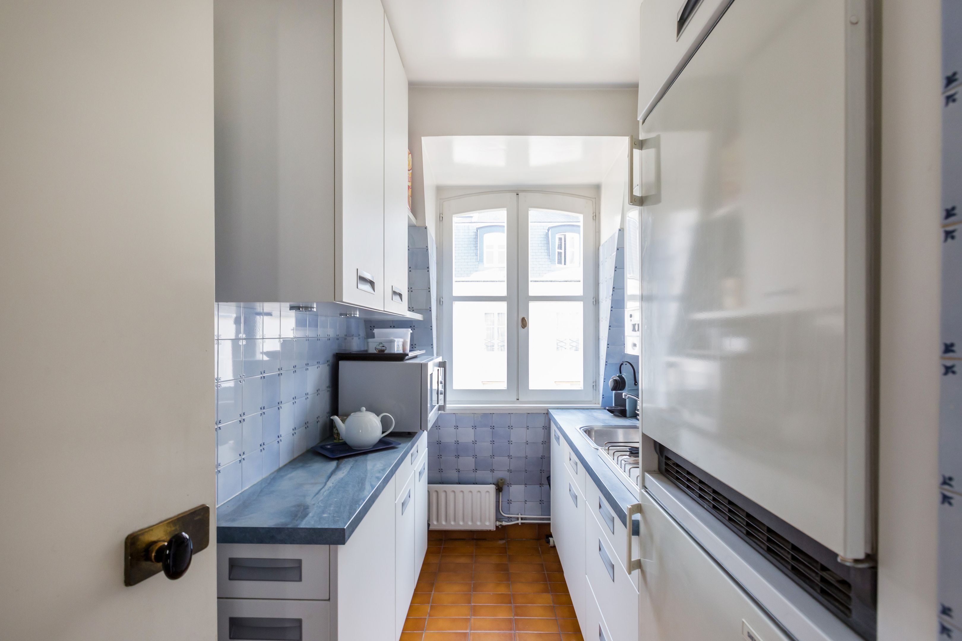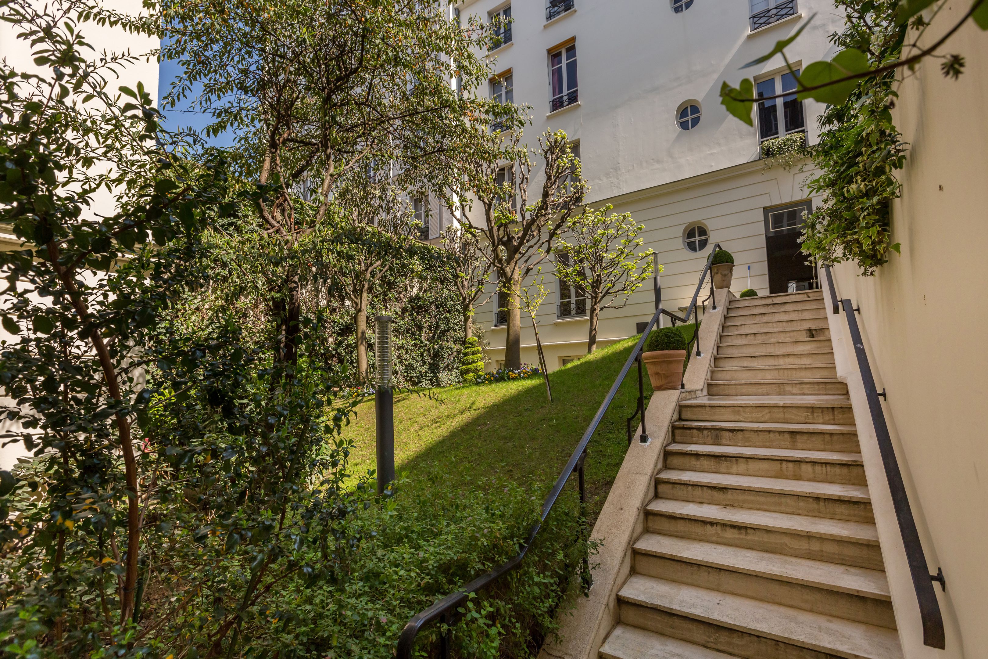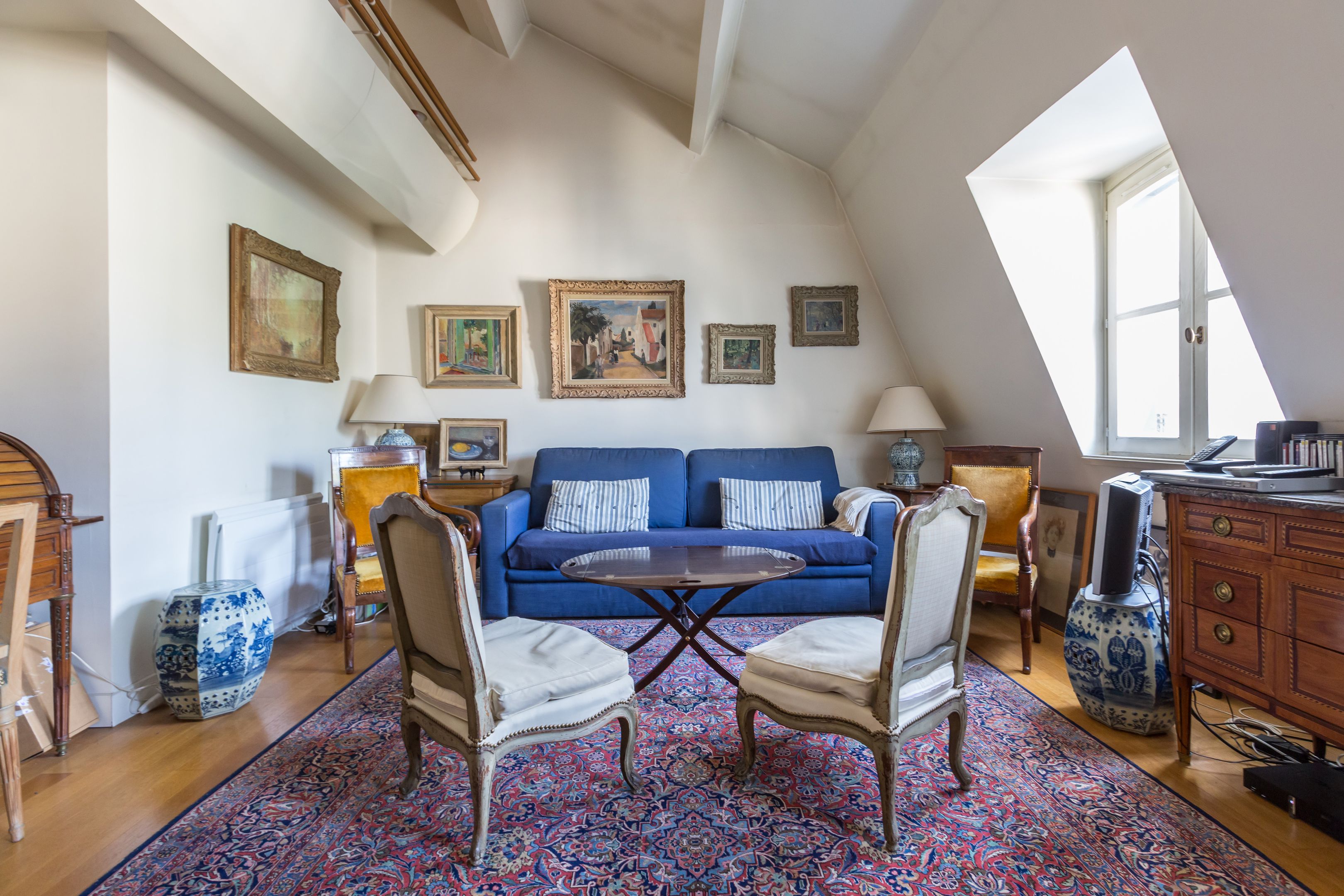 At the foot of the Catherine-Labouré garden, in a perfectly maintained middle-class building, luxury 57.72 m² (41.71 m² Loi Carrez) apartment on the 5th and top floor, served by elevator, with views over the roofs of Paris, unoverlooked and enjoying absolute calm. Entrance hall, living room, mezzanine office, separate kitchen, bedroom, shower room, storage space, toilet. Cellar. Parking space in 1st basement in addition to sale price.