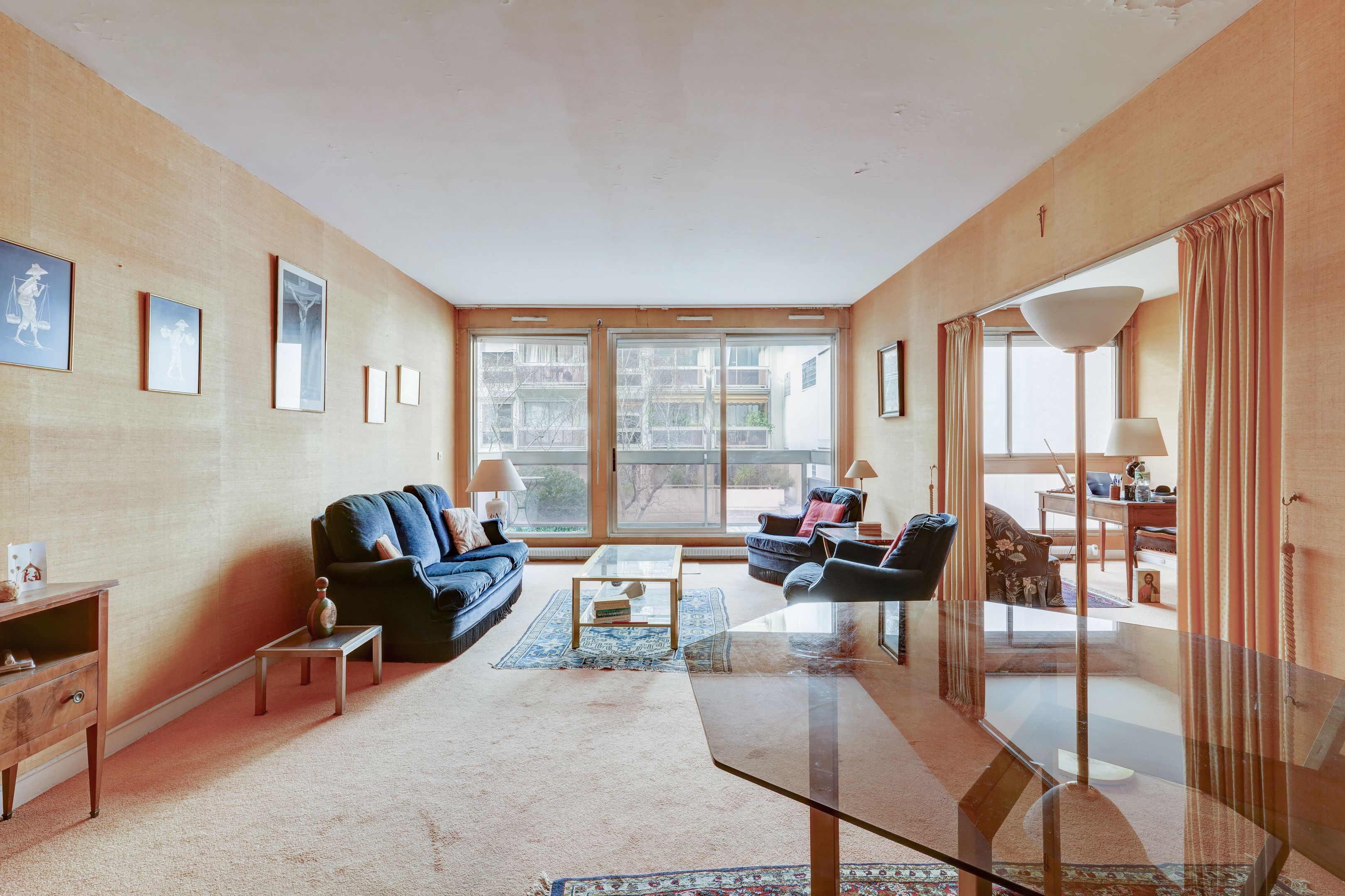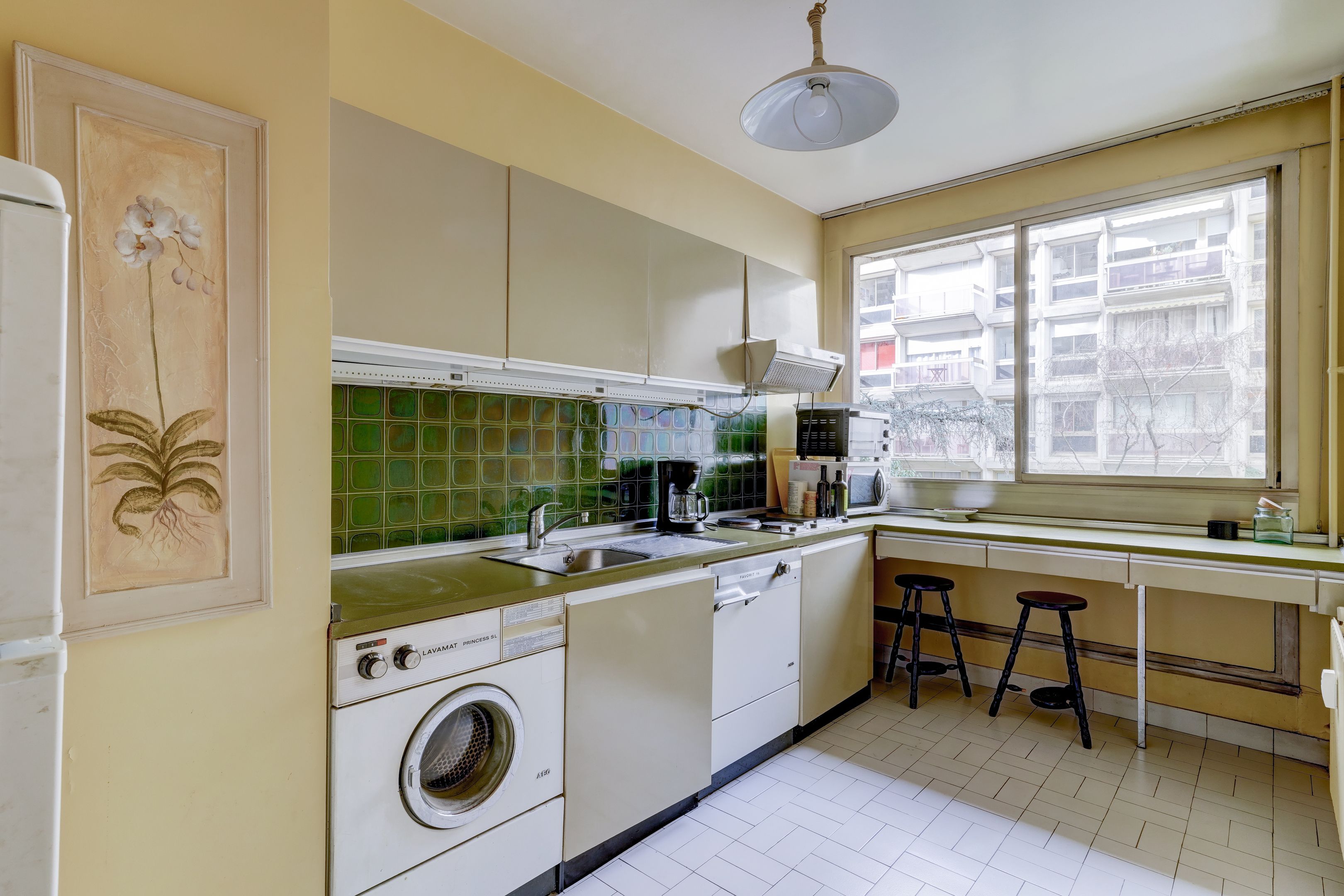 Close to shops and transport on rue de Sèvres, in a recent high-end condominium with janitor services, 65.5 m² apartment to renovate, overlooking garden, on 3rd floor served by elevator. Entrance hall, living room opening onto a large balcony, separate kitchen, bedroom, bathroom and separate toilet. Cellar. Large shared terrace overlooking all Parisian monuments on the 9th floor served by elevator.