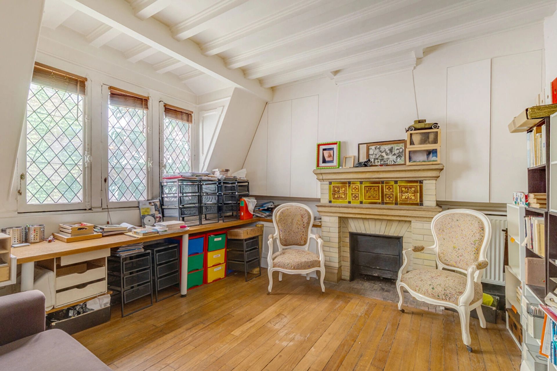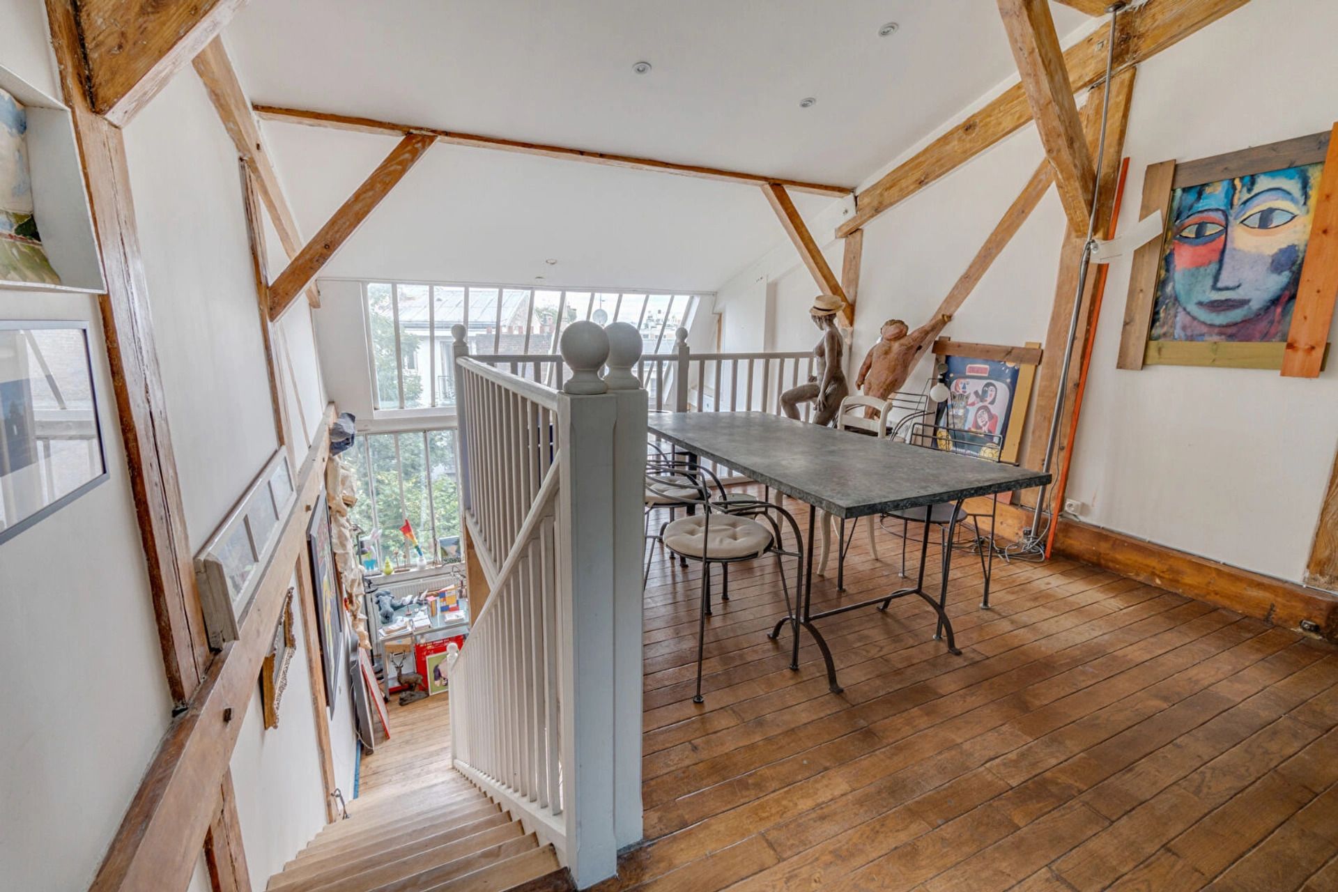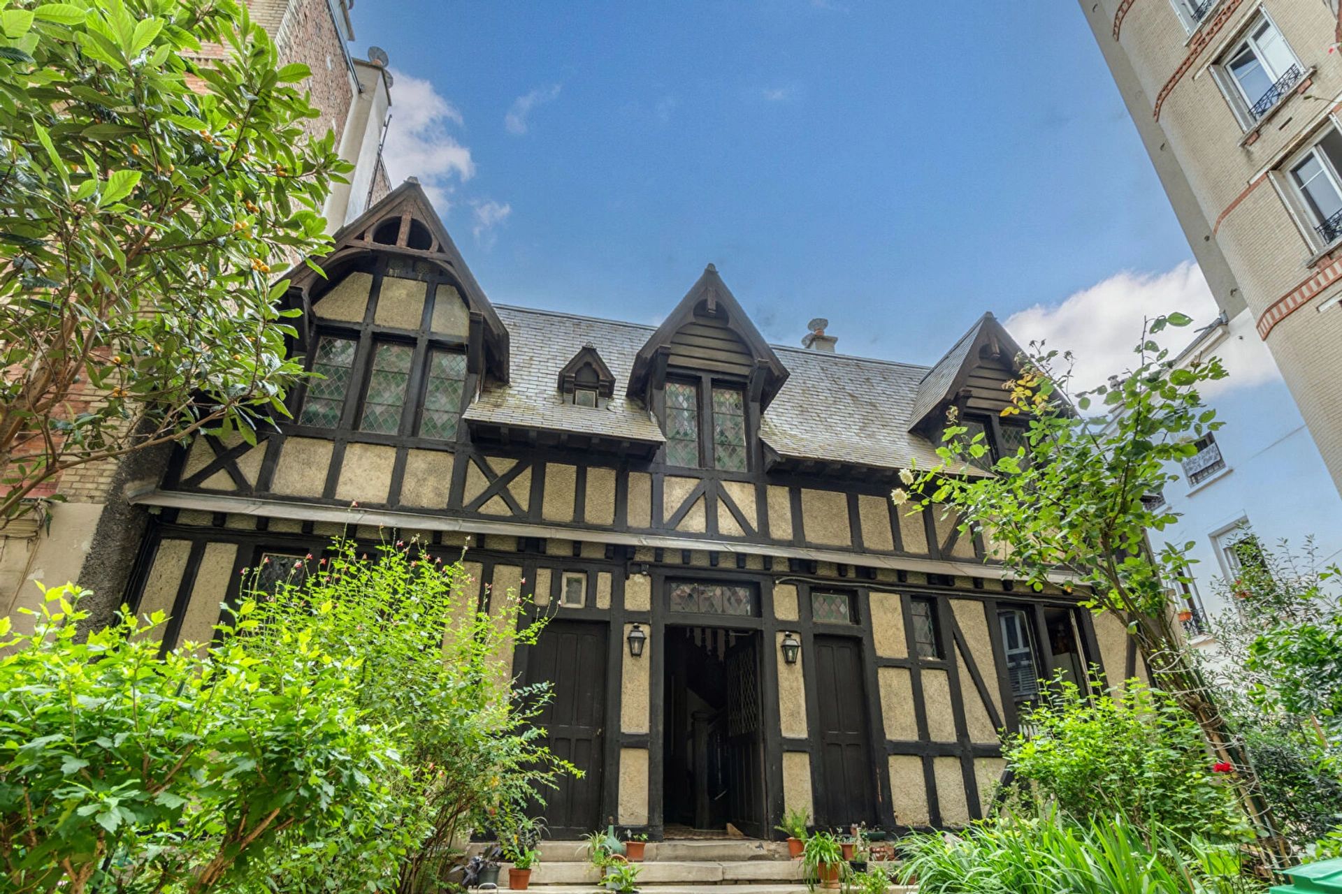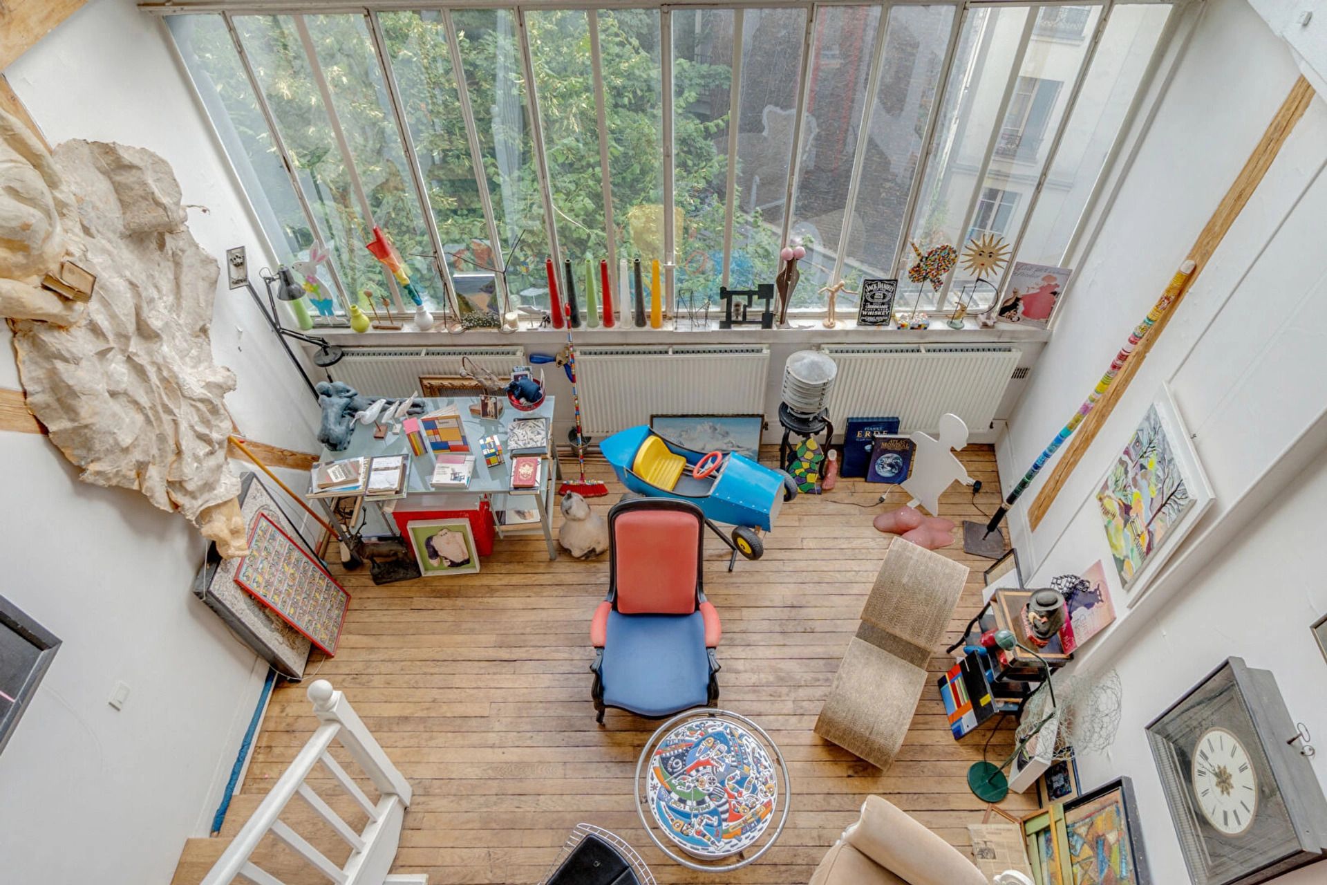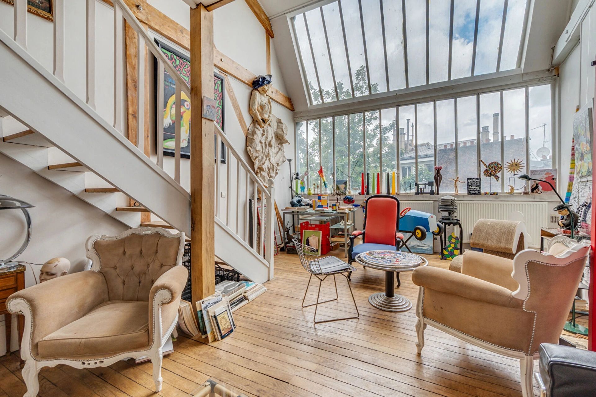 Ideally located in Montmartre, in the Pavillon de Bavière built for the Universal Exhibition, one of the Cat's Cottage artist's studios in a duplex with glass roof.