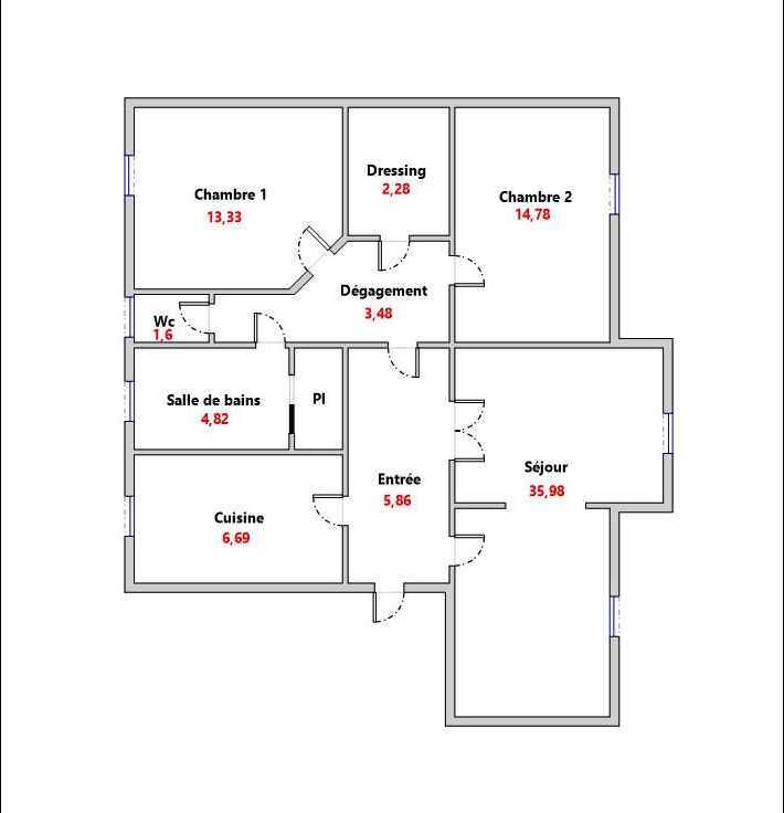 89.46 m²2 roomsFees charged to the sellerDPE: E (267 kWh/m².y) / GES: D (48kg CO2/m².y)No ongoing procedureFloor plan (PDF)