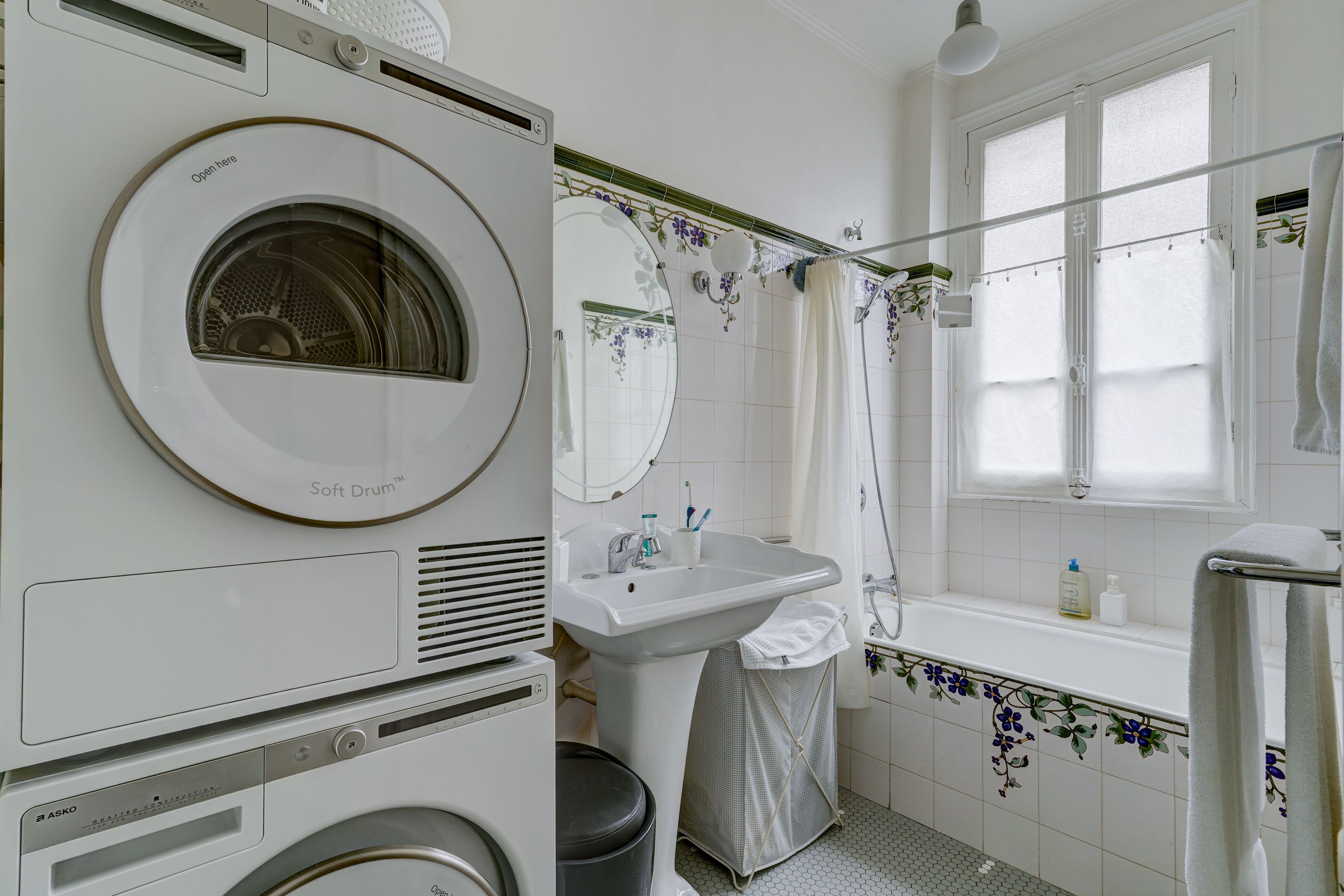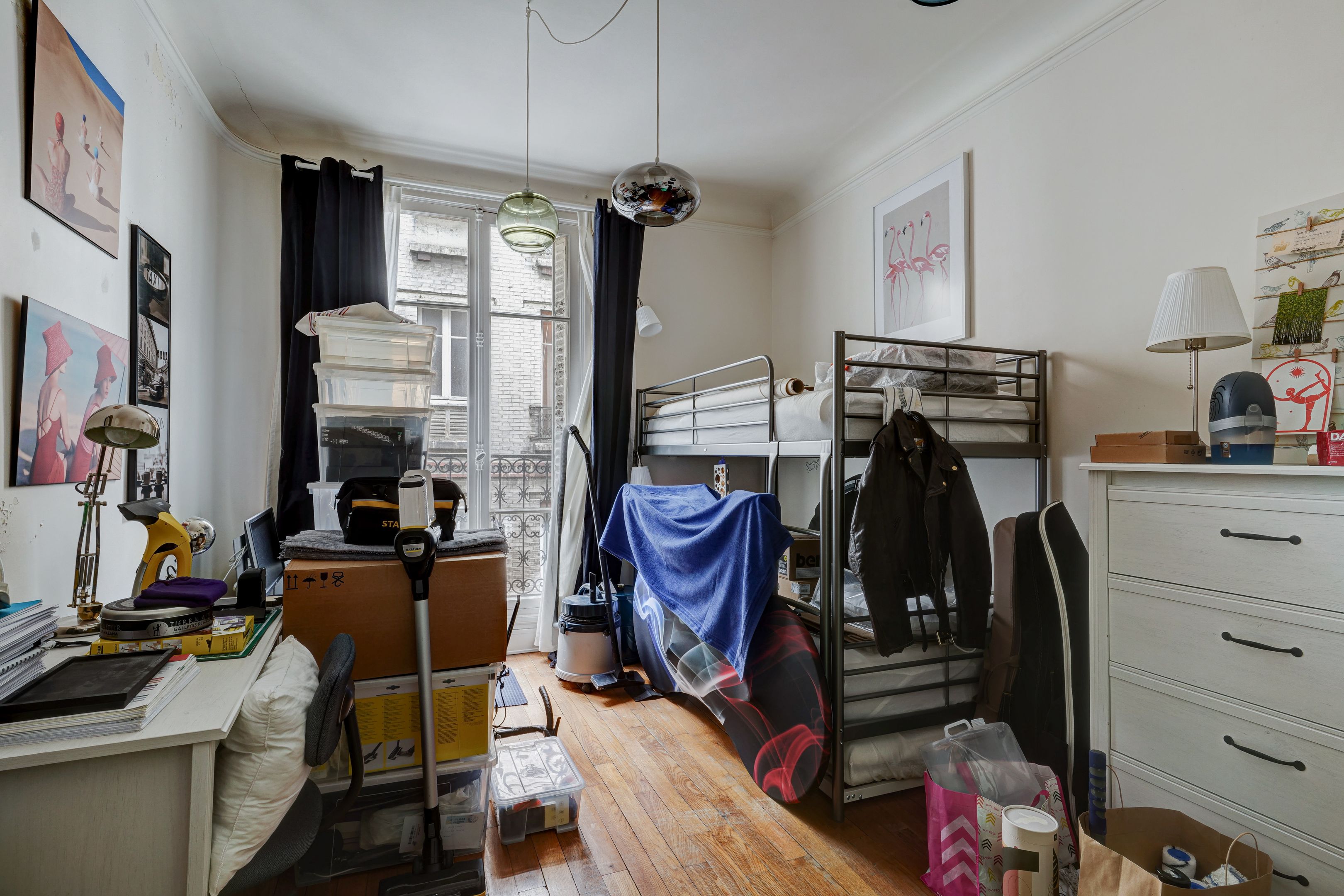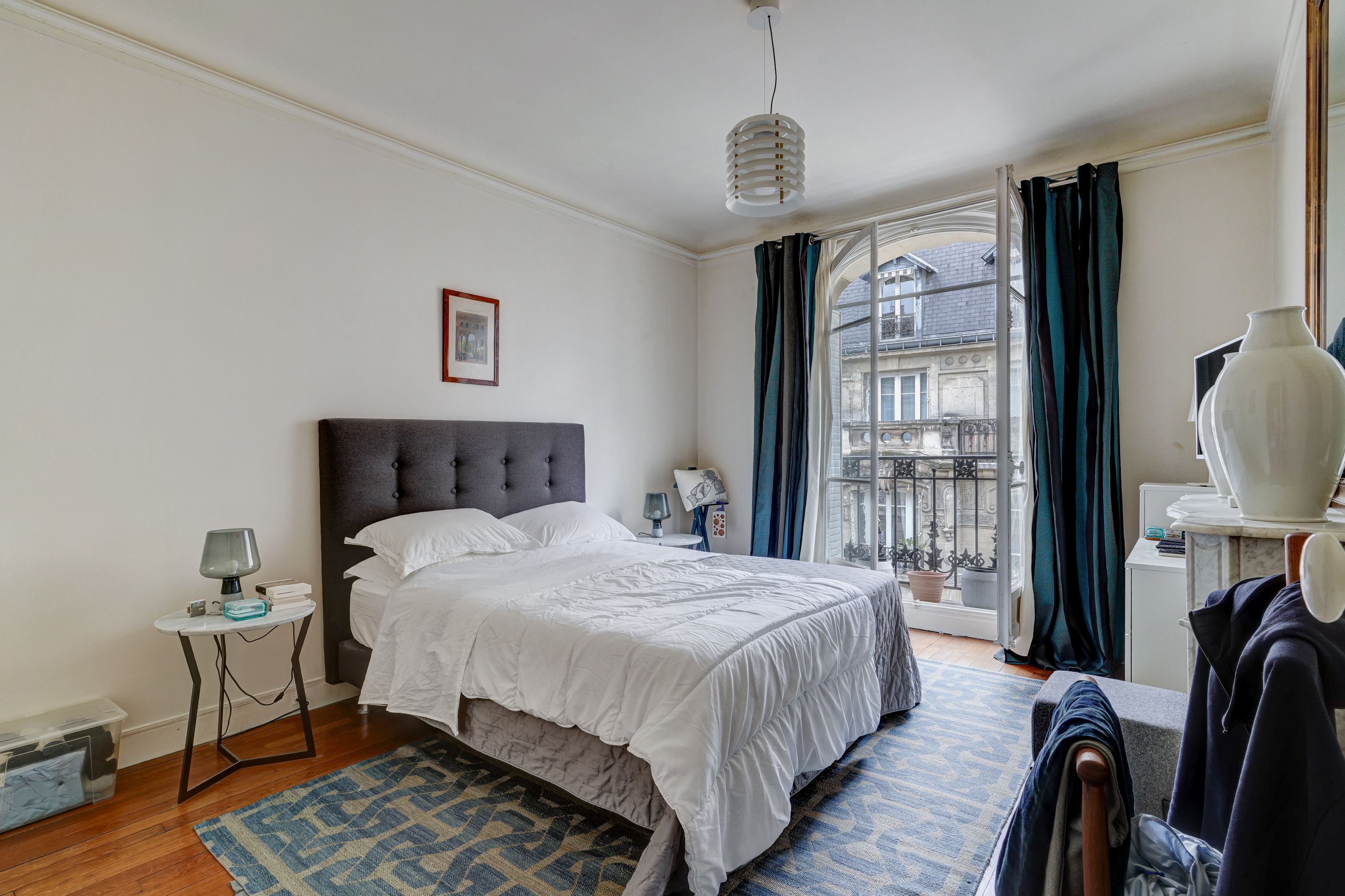 Lamarck district, on the fourth floor of a beautiful Haussmann building dating from 1900, served by elevator. Family apartment with 89.46 m² floor area (88.82 m² Loi Carrez) sold and rented. Entrance hall, double living room, separate kitchen, two bedrooms, dressing room, bathroom, separate toilet. Parquet flooring, moldings and functional fireplace. Possibility of acquiring a spare 10.17 m² utility room. Cellar.