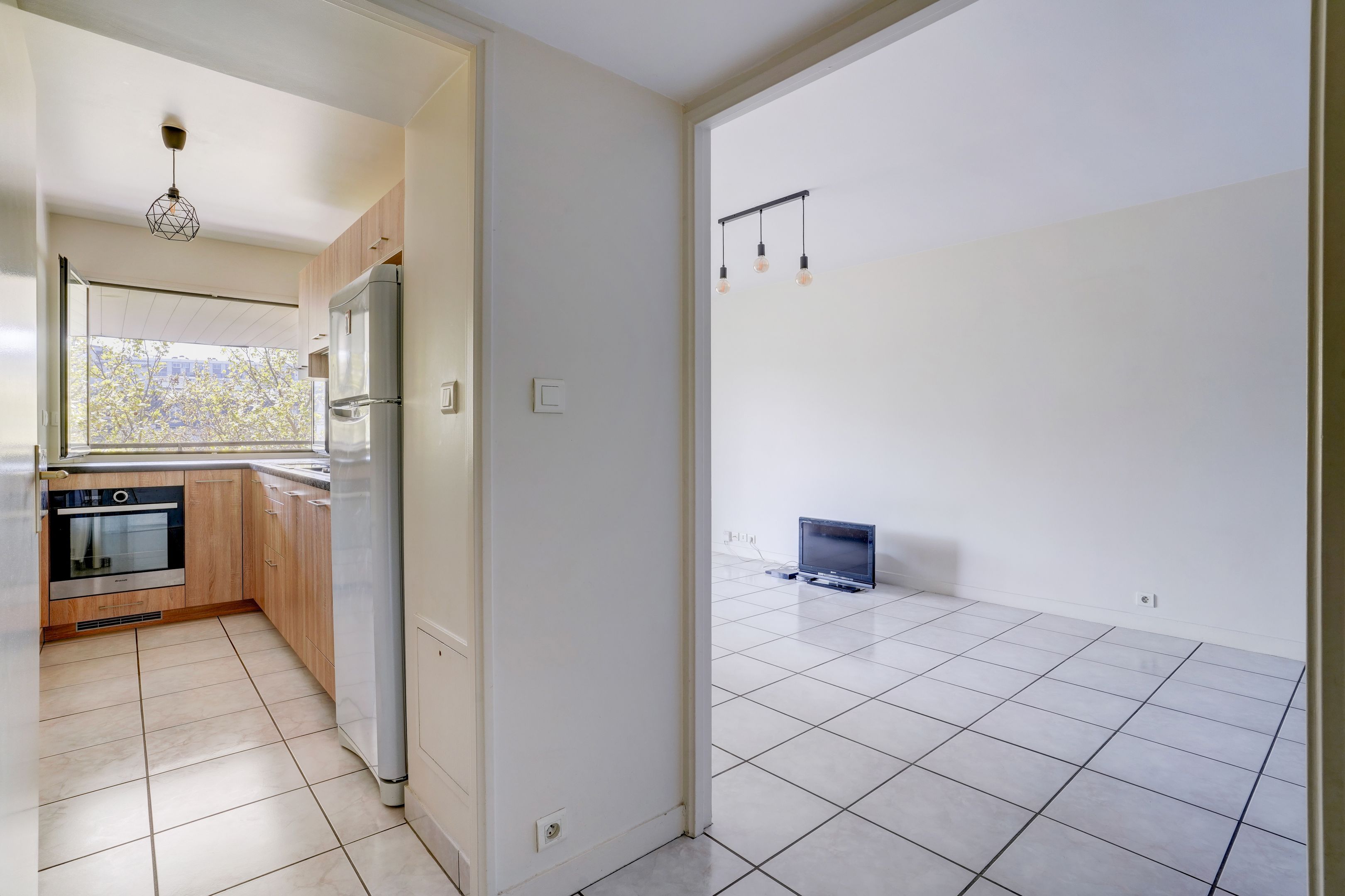 Close to transport and shops, this recent building is perfectly maintained and benefits from the services of a janitor. On the 6th floor, served by elevator, 57.70 m2 carrez apartment in excellent condition, south-facing. Entrance with cupboards, living room with access to a 9 m2 terrace overlooking the greenery, separate fitted kitchen (opening onto the living room), two bedrooms with built-in cupboards, shower room, separate toilet. Cellar space. Parking space in the building extra.