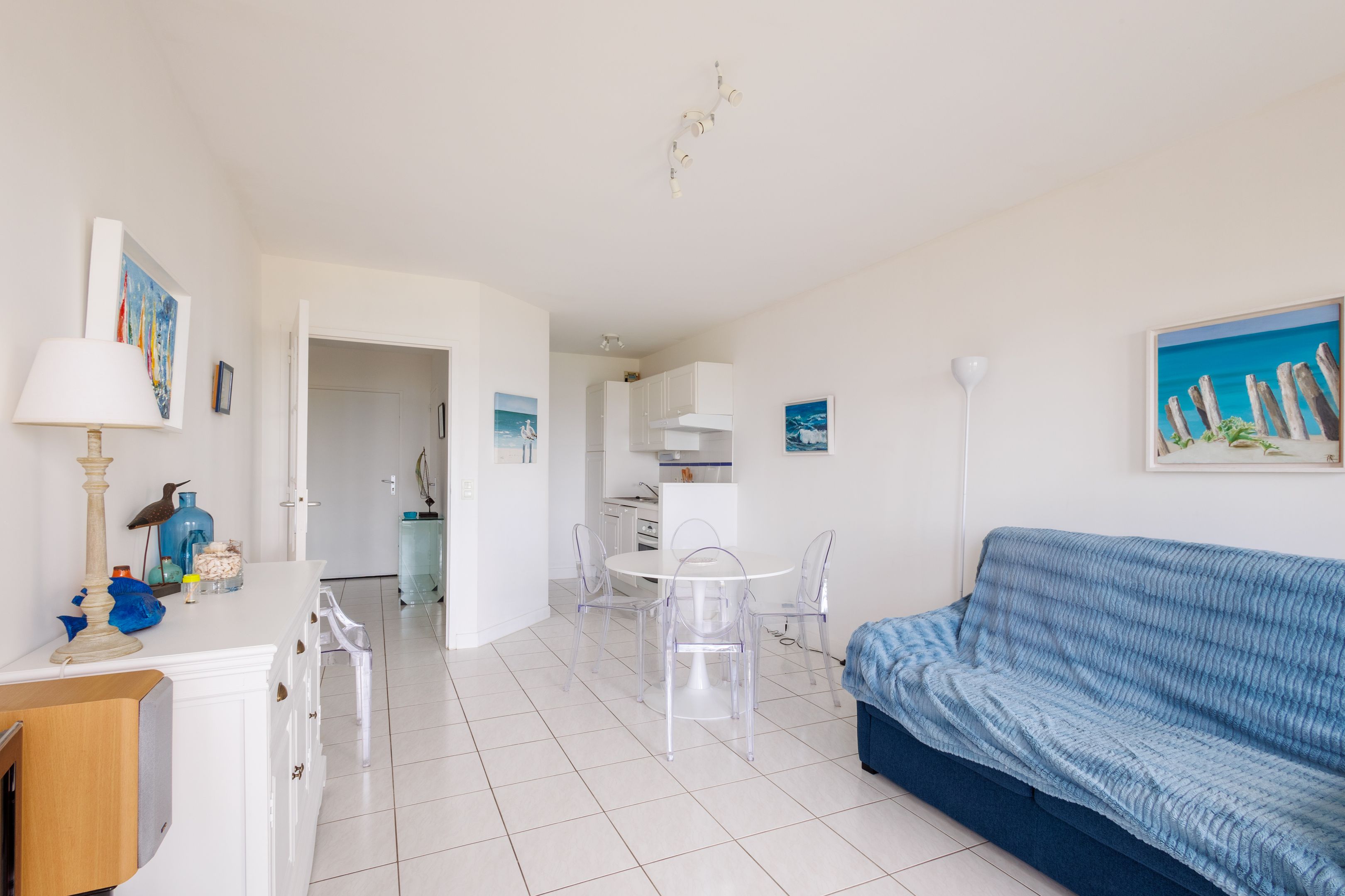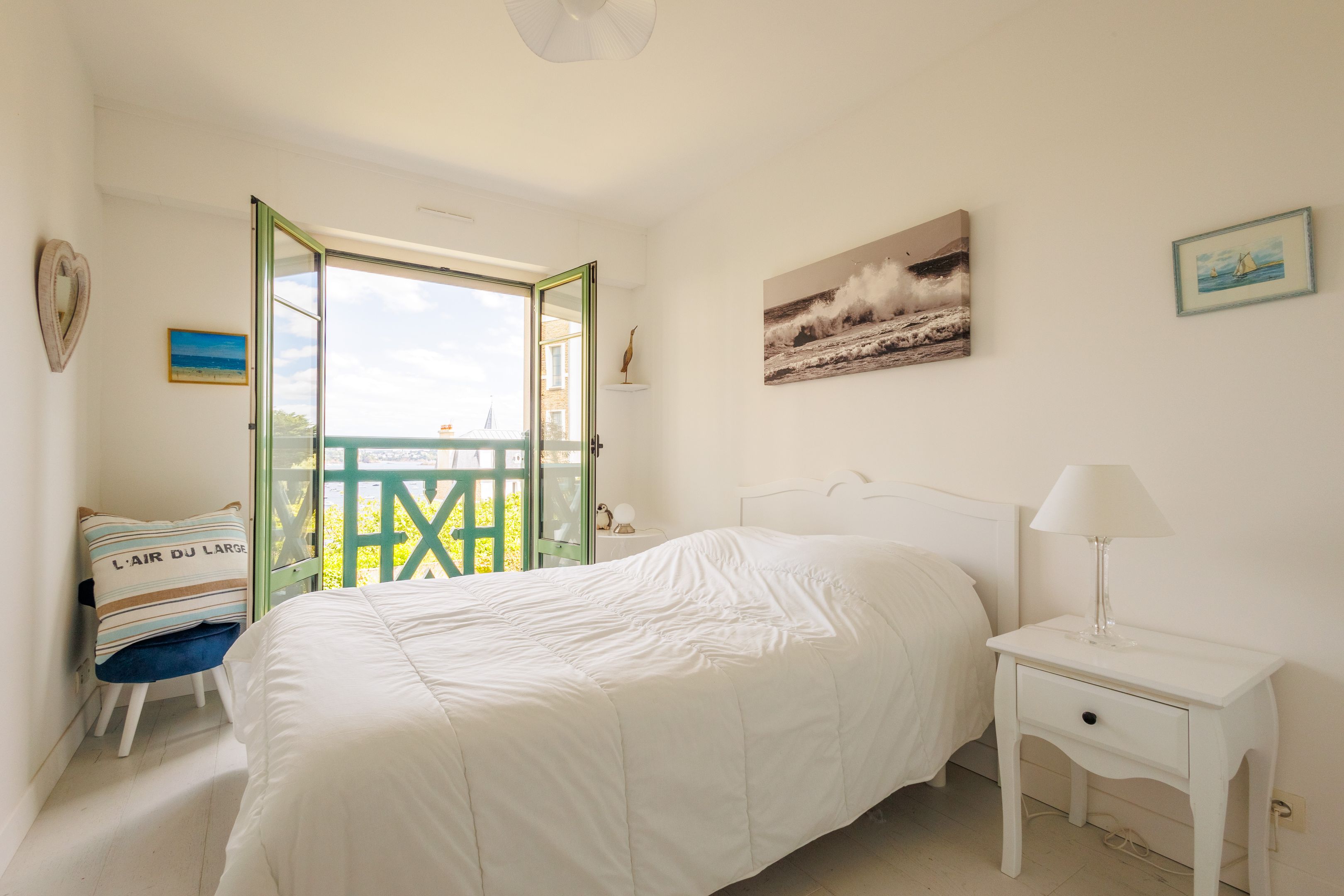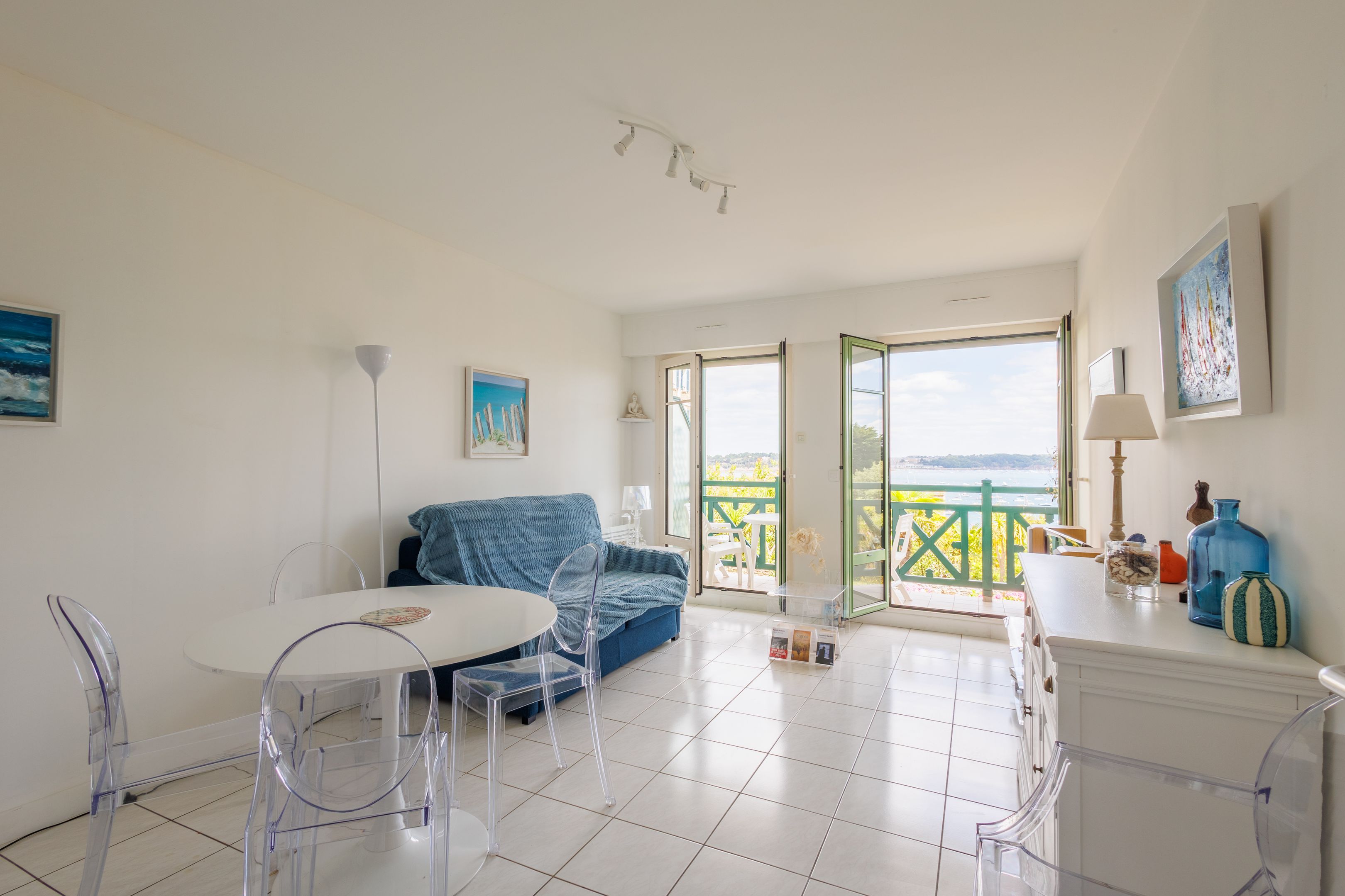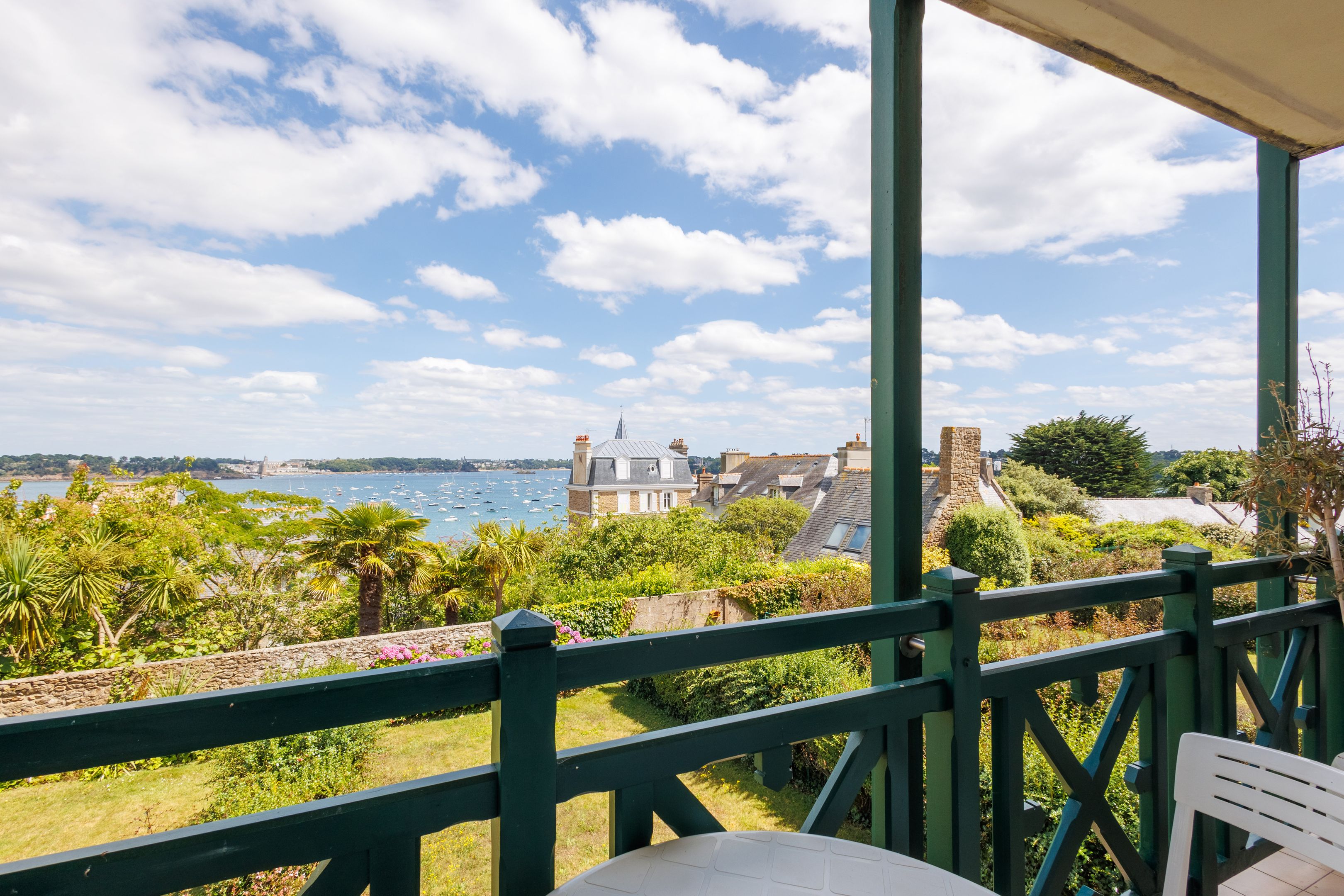 "Les Jardins du Tennis Club" - In the heart of Dinard, close to shops, beach and marina, in a quiet, well-maintained 2000s residence. Beautiful seafront apartment of 48m² Carrez, benefiting from a prime location, superb views and good general condition. Entrance hall, pleasant living room opening onto the 7m² balcony facing the Priory Bay and Tour Solidor, open-plan fitted kitchen, bedroom, study, shower room, separate toilet. Cellar of 3㎥ and closed box of 40㎥ (valued alone 50.000€). Bicycle garage and tennis court for shared use. Daily janitor services.