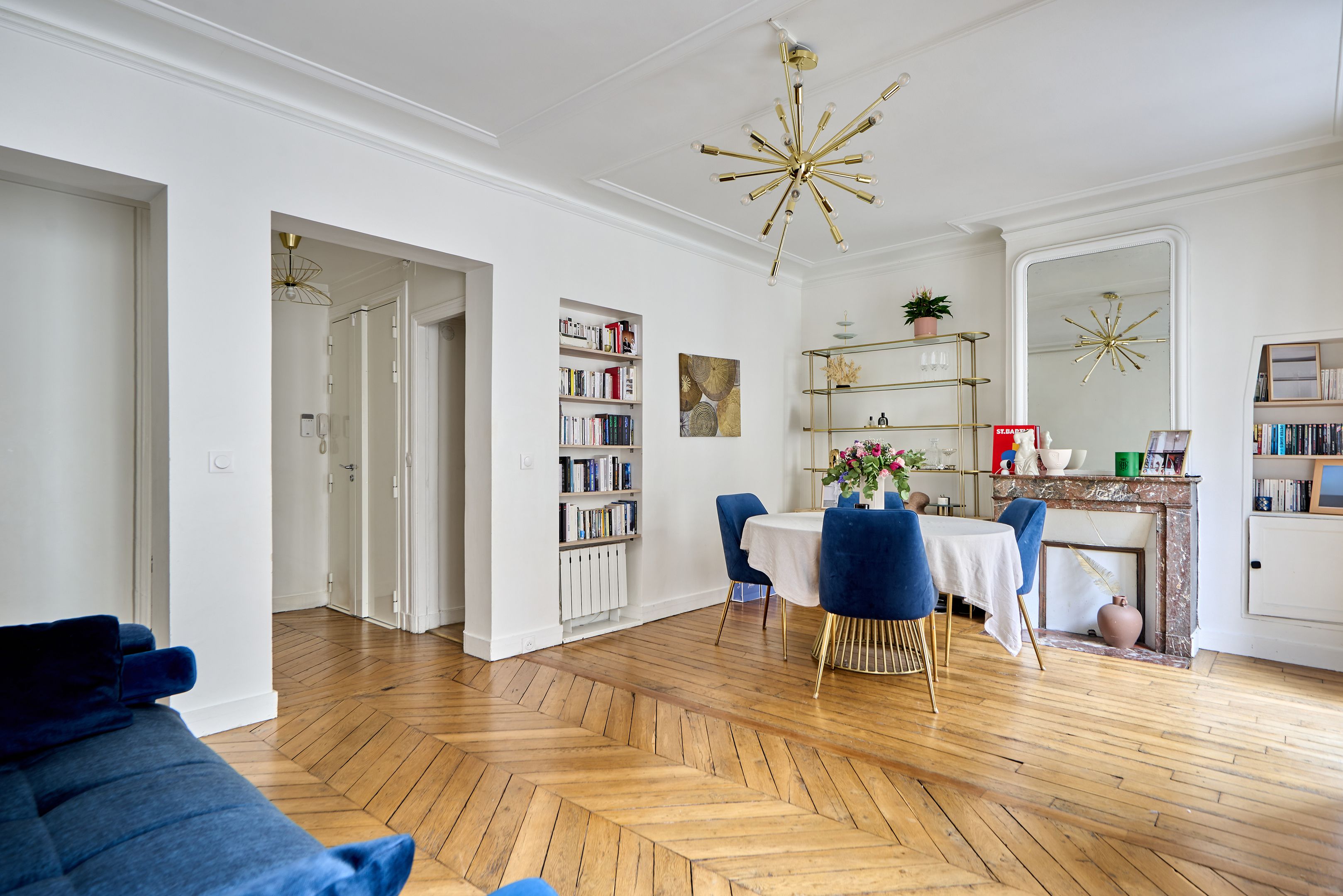 Stone building ideally located close to Villiers metro station, rue de Lévis shops and renowned schools. South-facing, walk-through apartment on the 2nd floor, 60 m² Loi Carrez, offering old-world charm: parquet floors, moldings and fireplaces. Optimized layout. Entrance hall, living room with balcony, separate kitchen, two bedrooms, shower room, toilet. Cellar.