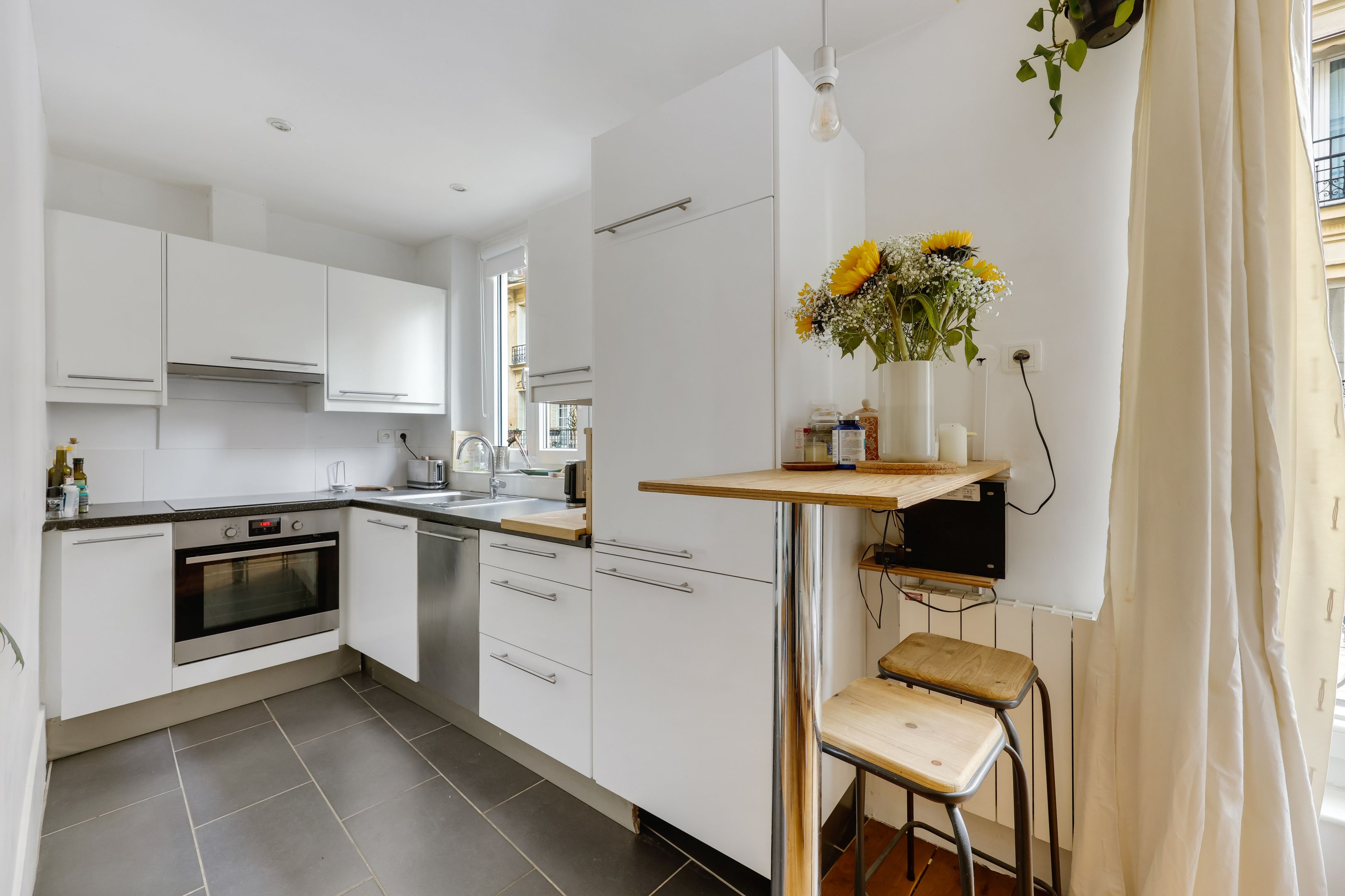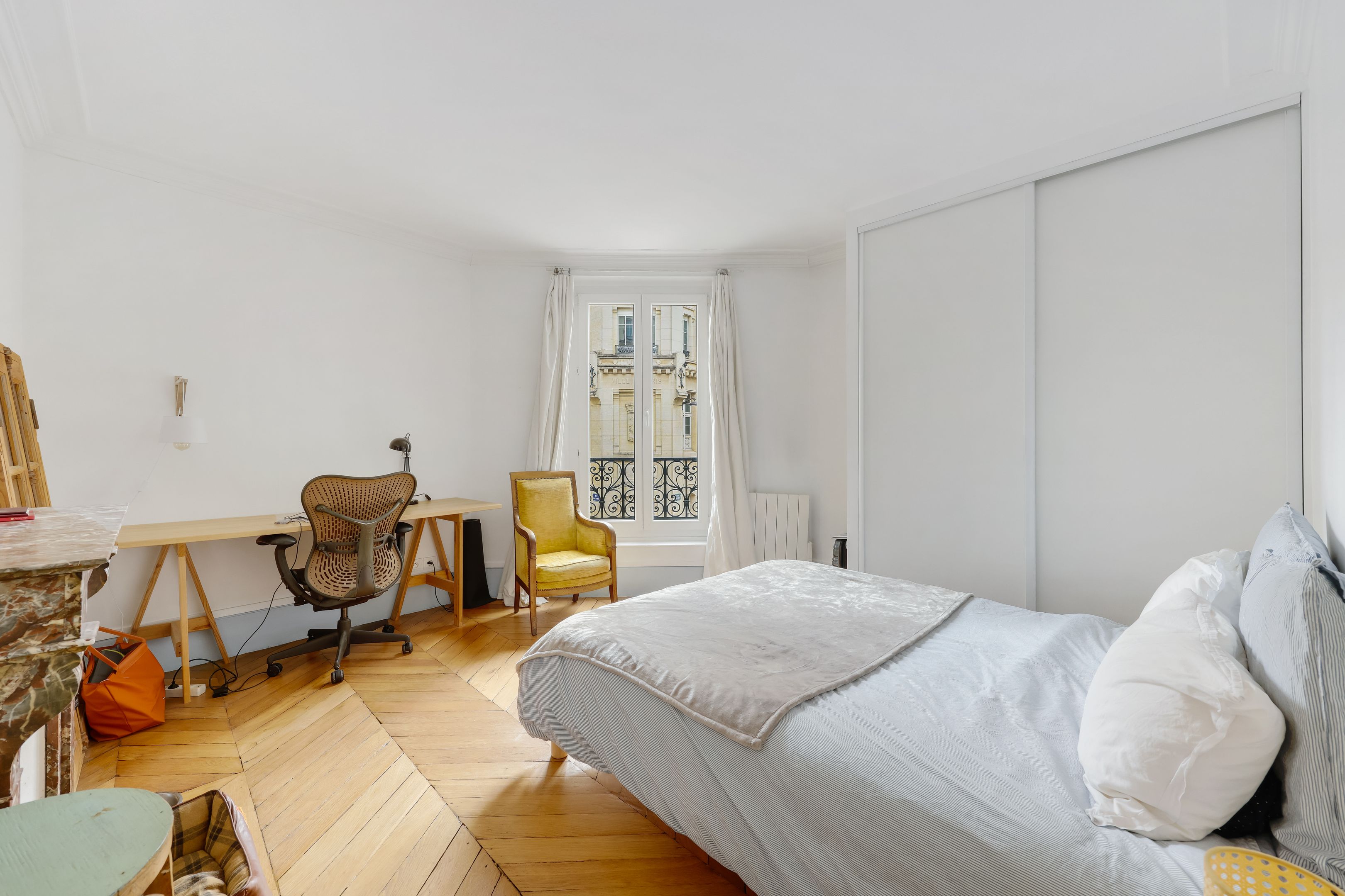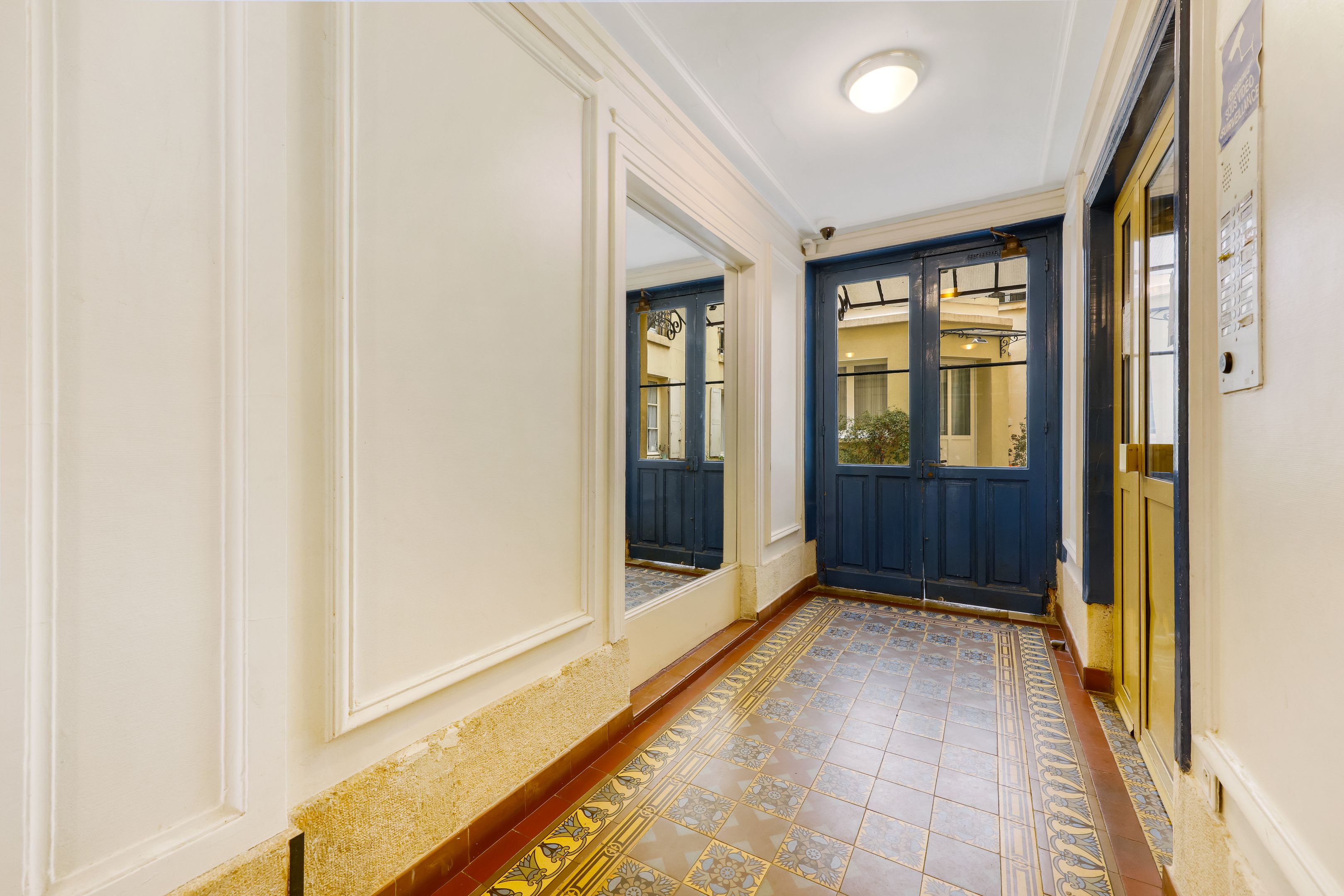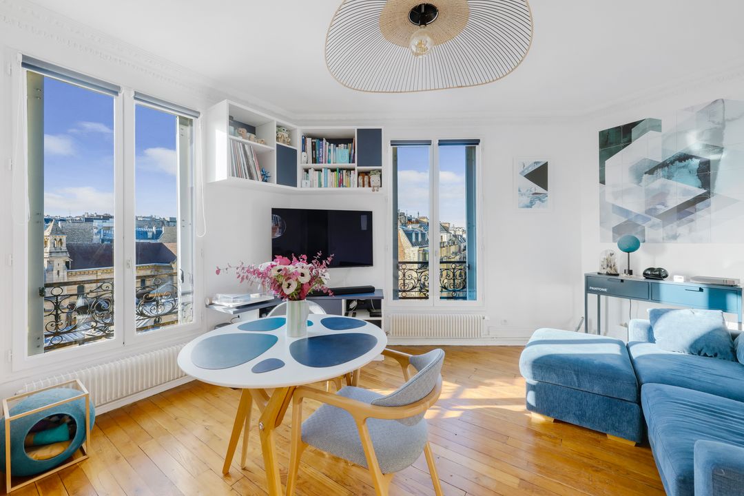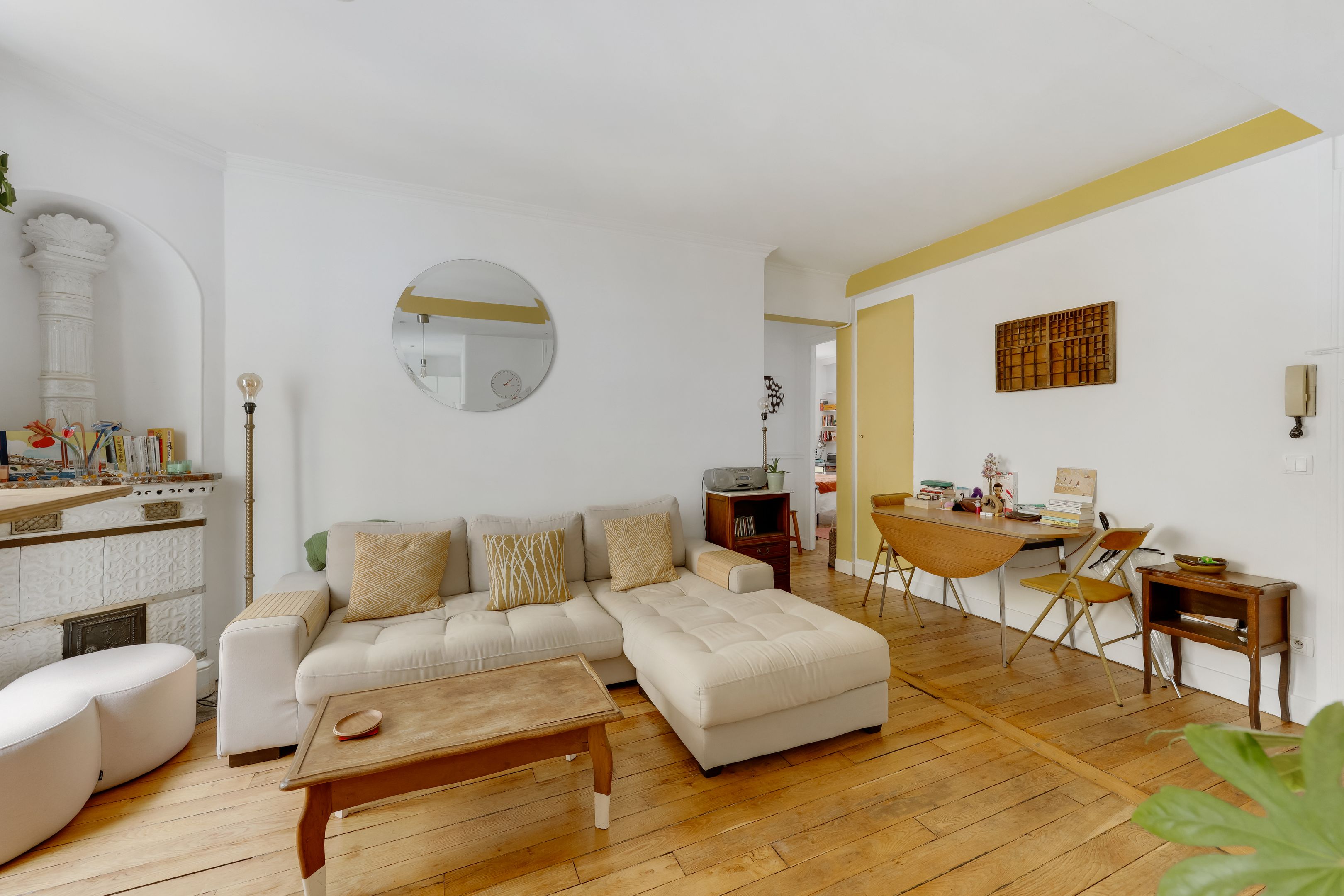 Ideally located near the Poncelet market, on the 2nd floor of a perfectly maintained old building, served by elevator, charming corner apartment with optimized layout and in good condition. Entrance hall, large living room with open kitchen and fireplace, two bedrooms with ample storage space, bathroom, laundry room and separate toilet. Large cellar.
