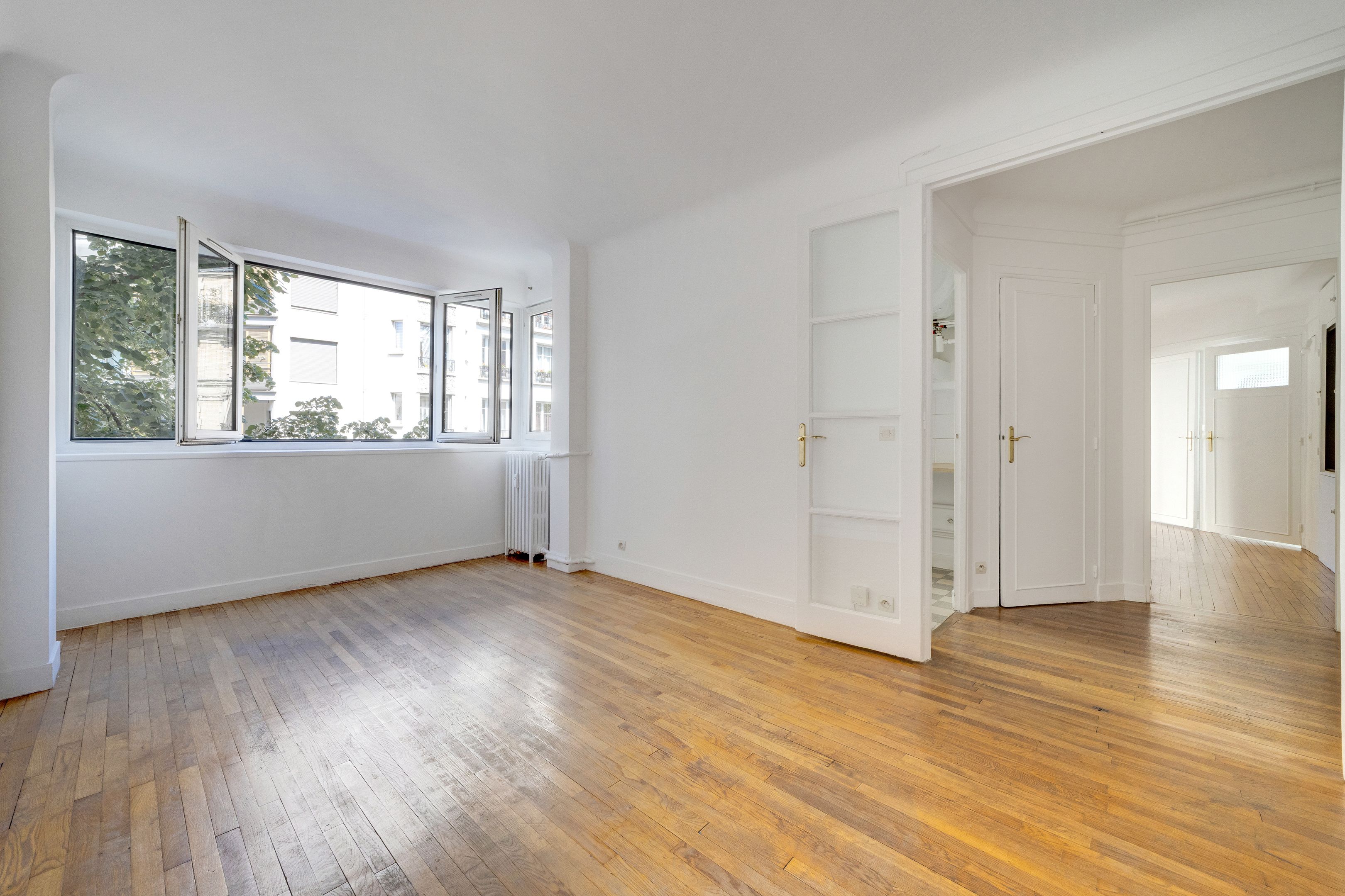 Gambetta - At the foot of the Saint-Fargeau metro station. Close to shops and transport links, attractive, recently refurbished, secure corner building dating from the 1930s. On the 3rd floor, served by elevator, bright 57.76m2 apartment with optimal layout. Entrance hall, bright living room with balcony, separate kitchen (opening onto the living room), 2 bedrooms with their own balcony, bathroom and separate toilet.