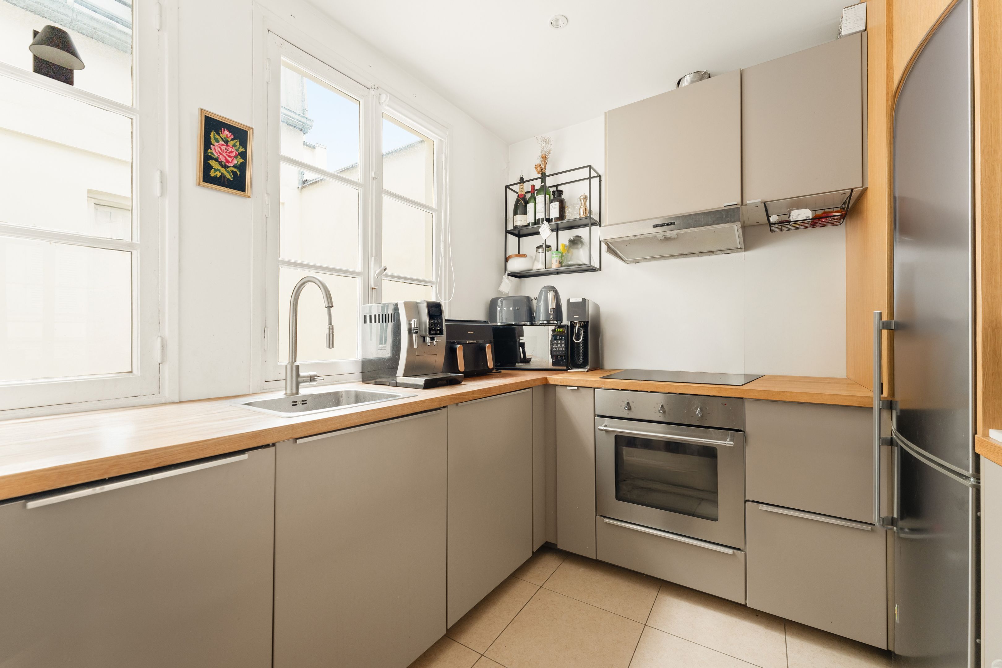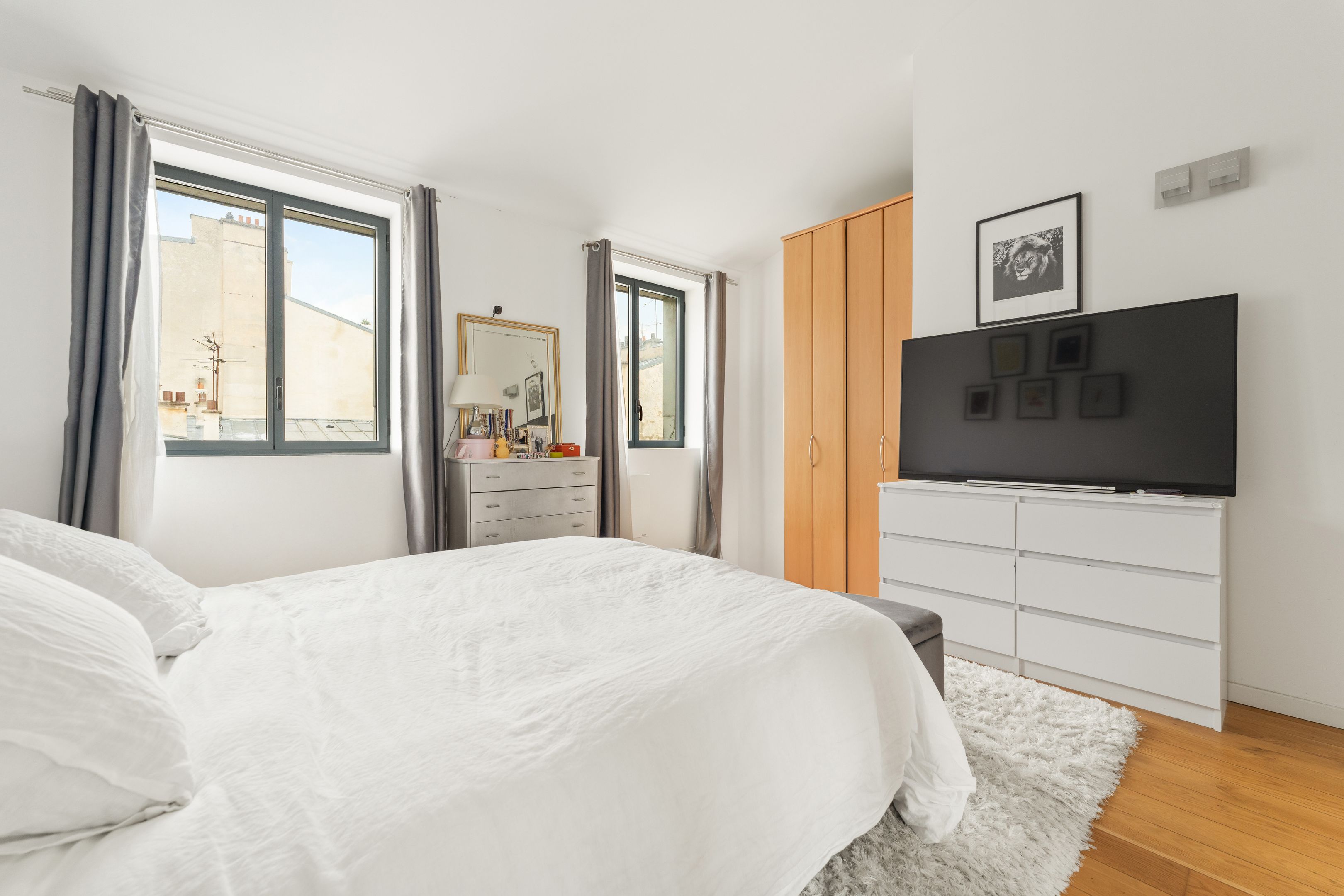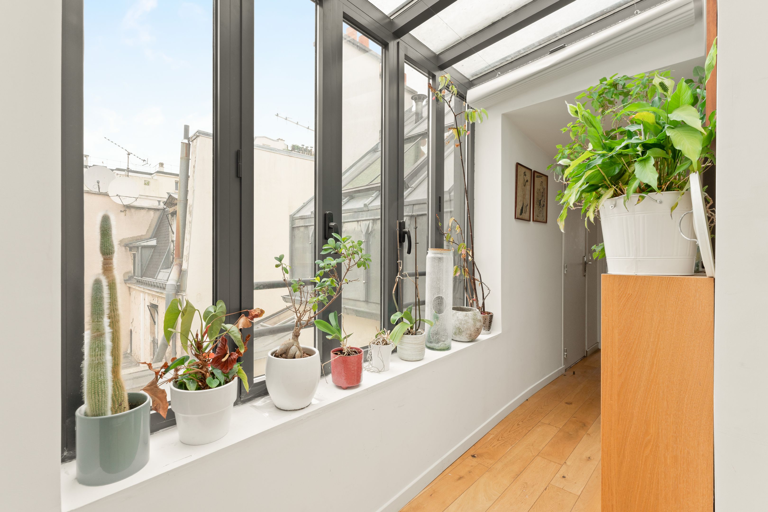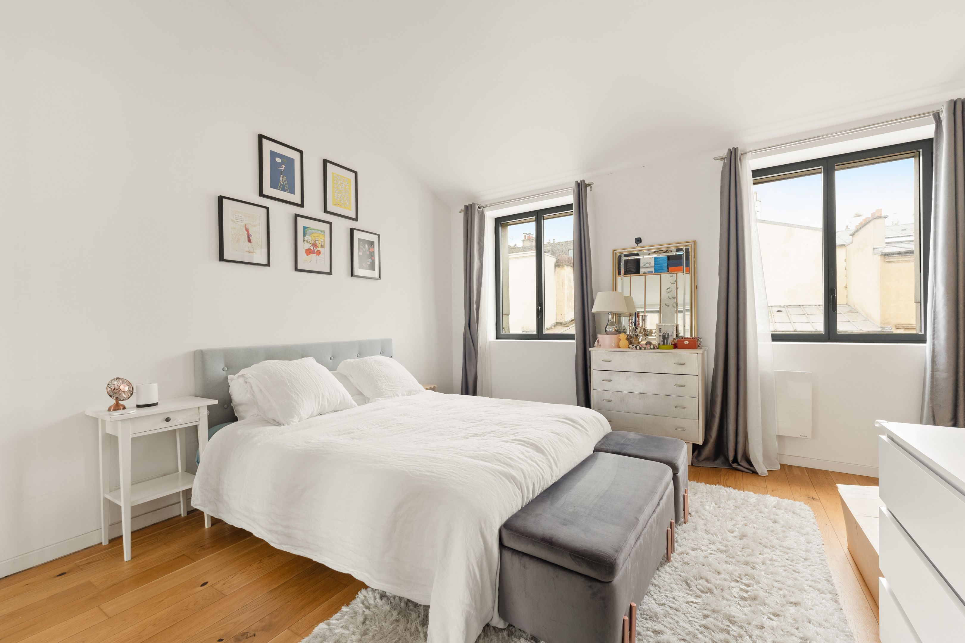 In the heart of the Gros Caillou district, in a perfectly quiet, old building with well-kept communal areas, duplex apartment, like a "house on the roofs", on the 3rd and last floor served by a staircase, in perfect condition, with excellent fittings, particularly bright and with an excellent floor plan. Second floor: entrance hall, large living room with open-plan kitchen. Second level: 2 good-sized bedrooms with remarkable volumes, bathroom with toilet, space under glass roof overlooking the Eiffel Tower. Cellar.