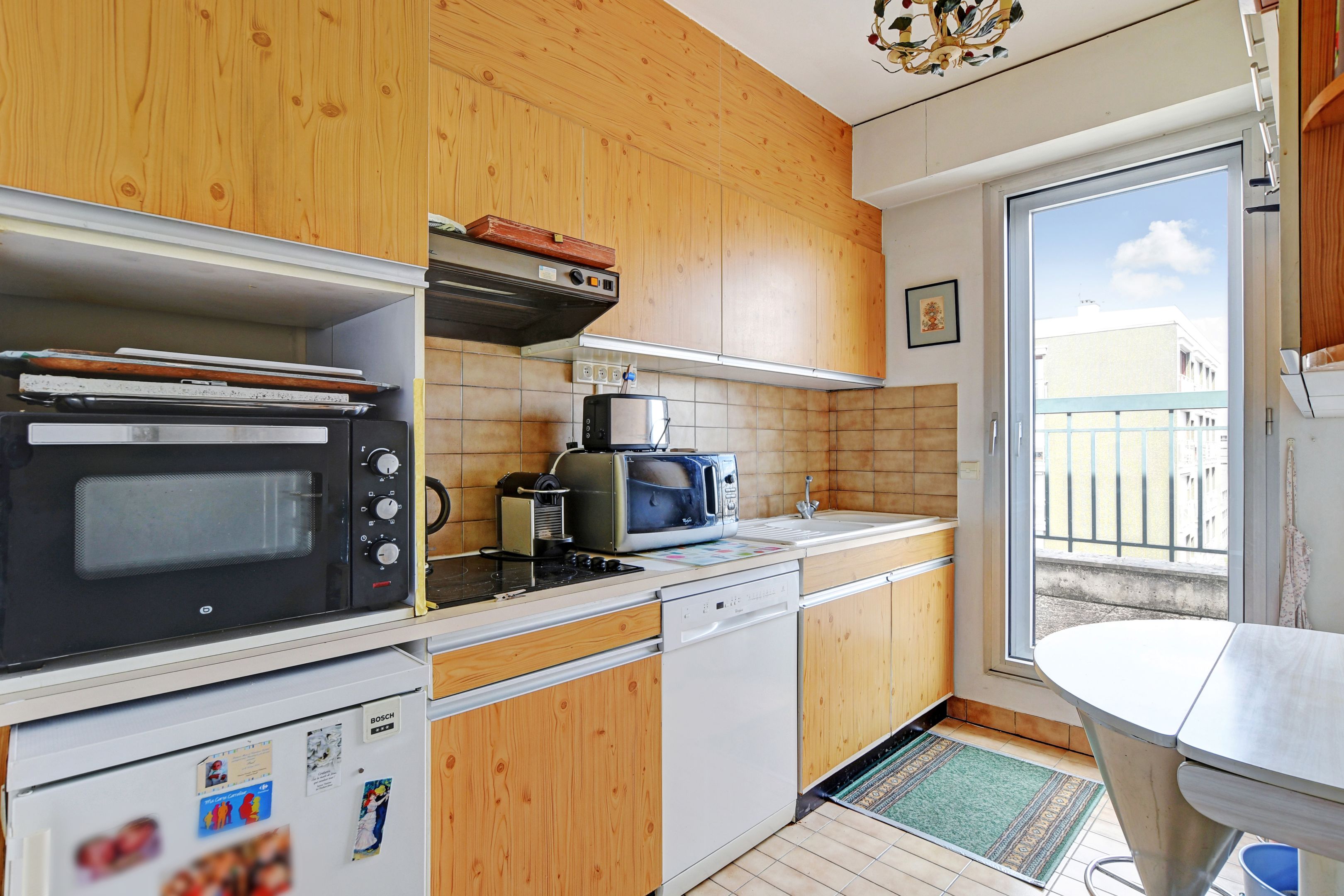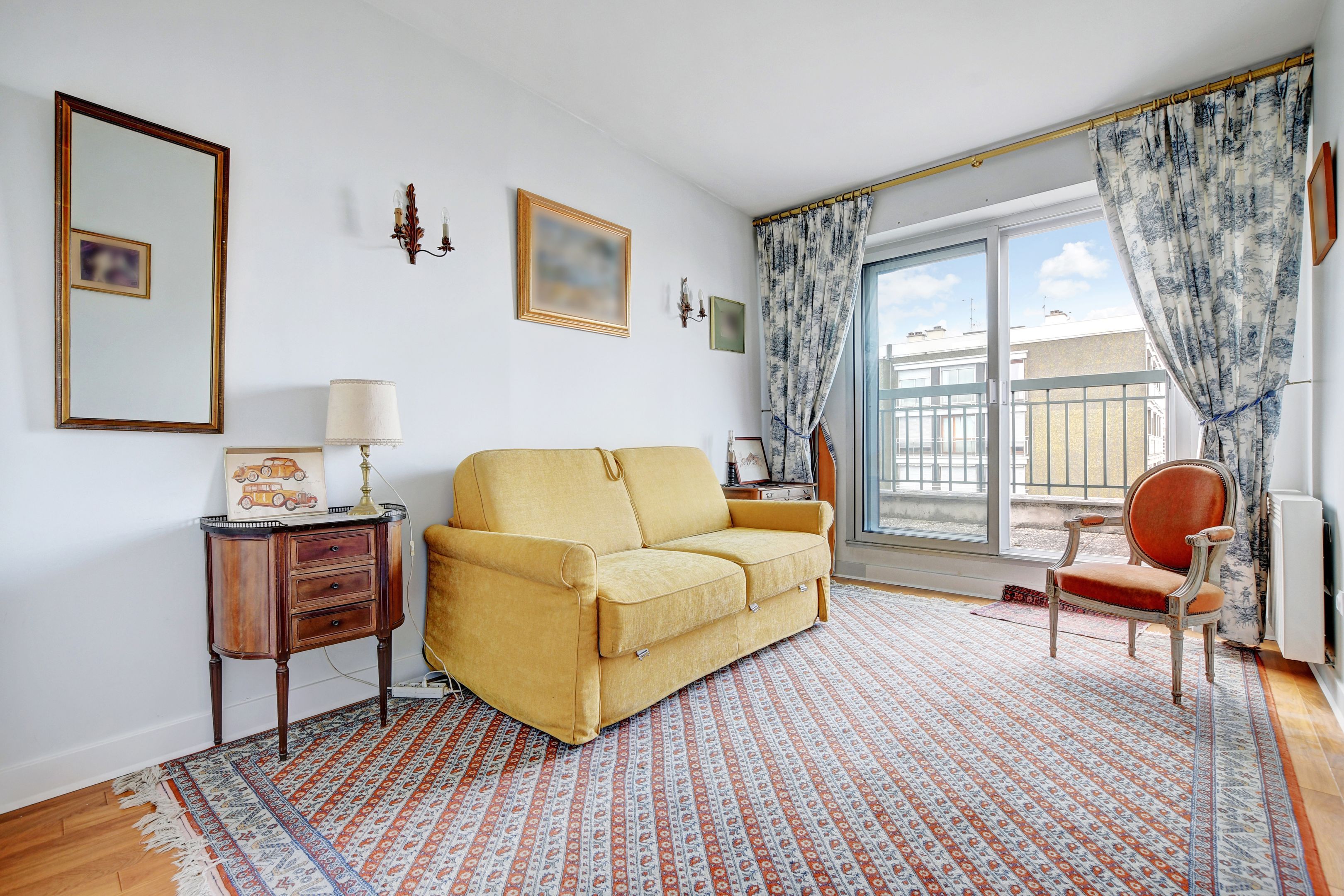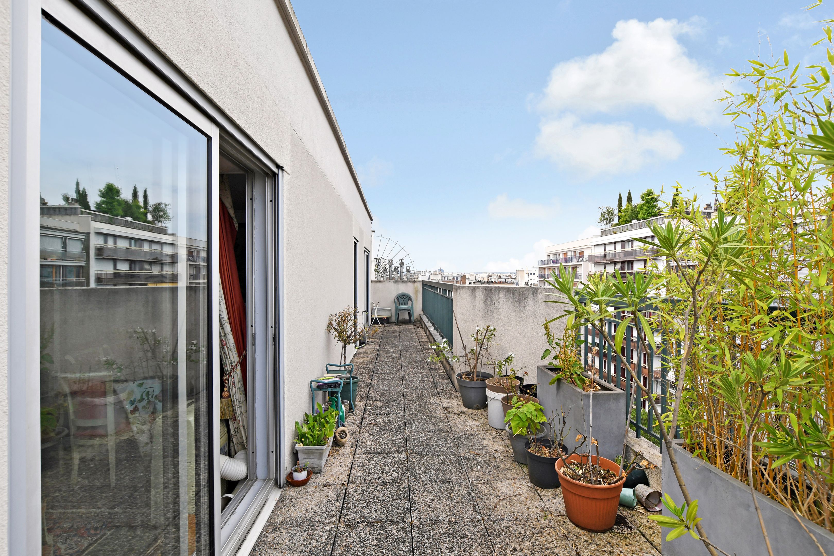 In a secure service residence (Hespérides), M° Volontaires, beautiful apartment on the 9th and top floor, with a 19m² terrace, a 4m² balcony and a panoramic view of Paris and its monuments. Entrance hall, sizeable corner living room, separate kitchen, 2 bedrooms (one on the street and opening onto the terrace, the other on the garden and opening onto the balcony), shower room, separate toilet, laundry room and storage space. Optional double boxed parking space (+40,000€).