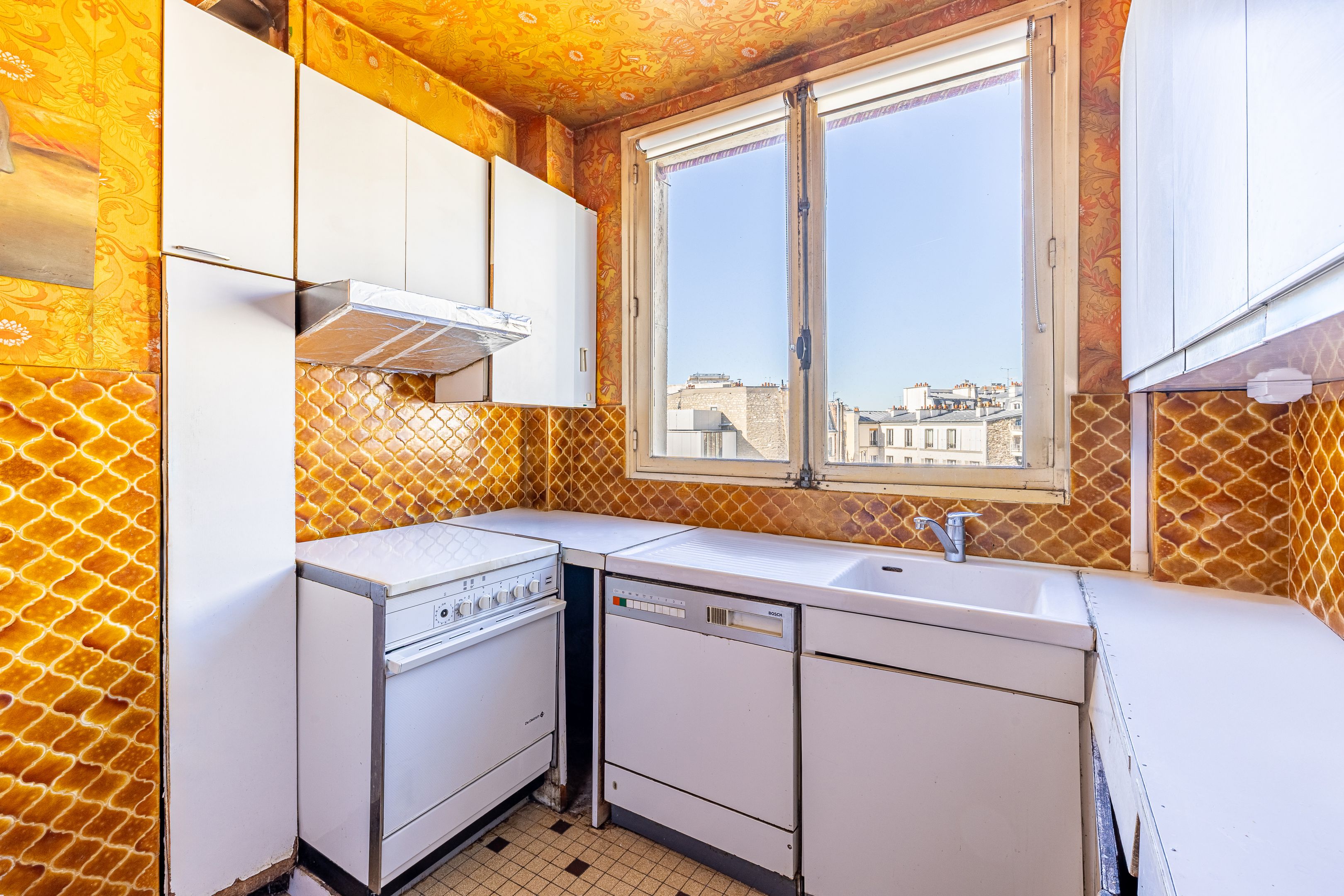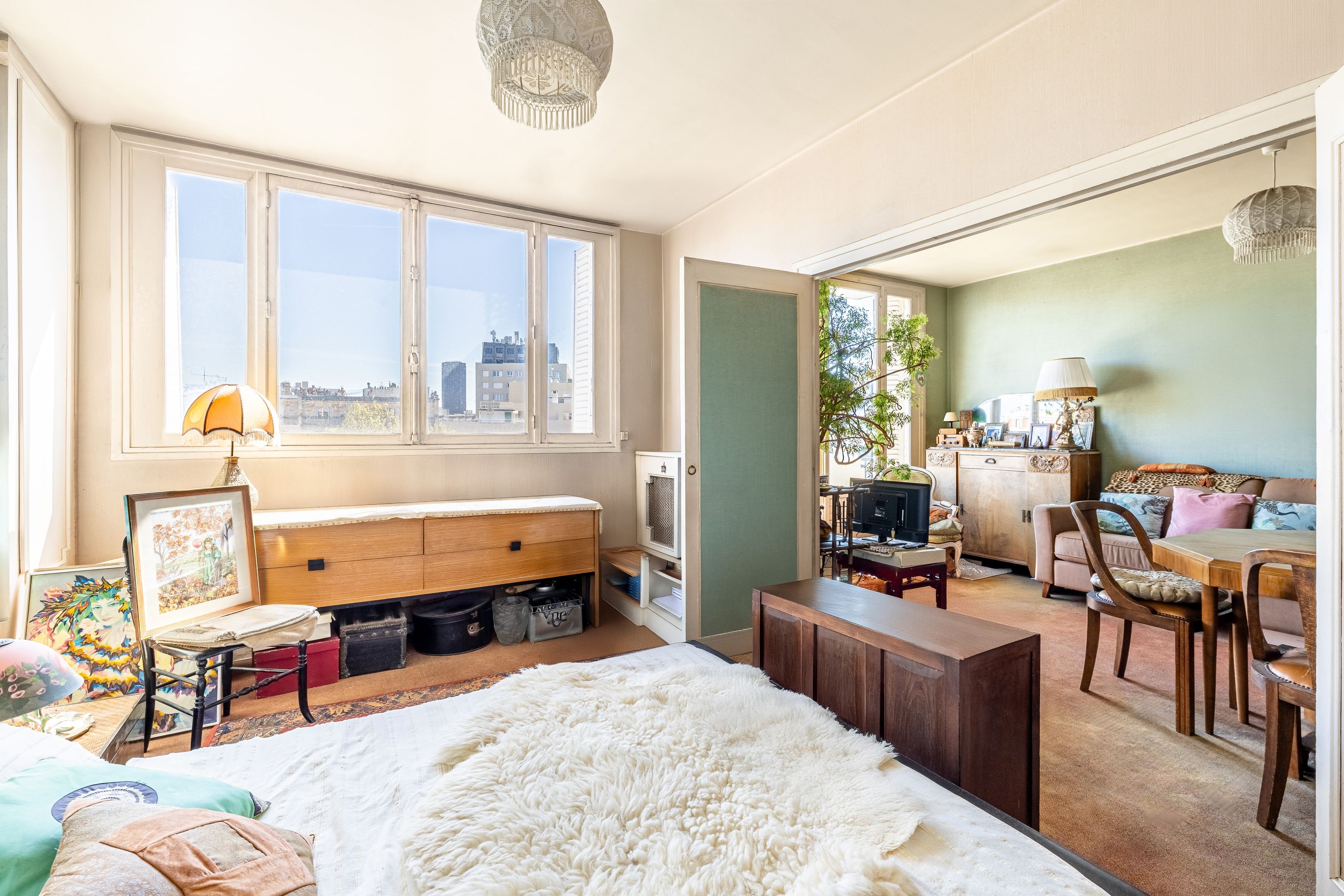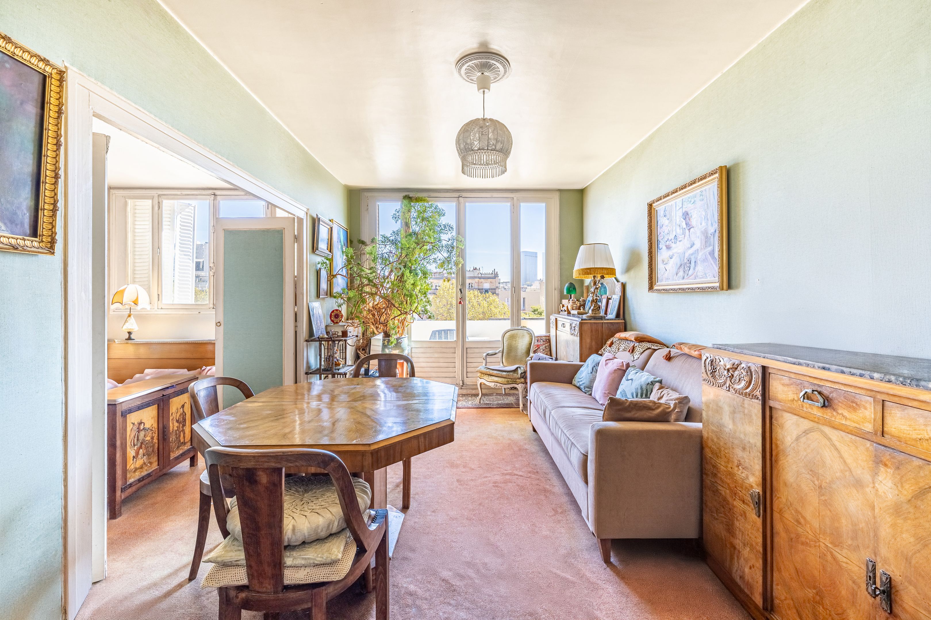 Recent building of good standing, with janitor services and close to Rue du Commerce. 58.72 m² through-apartment, in need of complete renovation, on the 6th floor served by elevator, with balcony, bright thanks to its exposure. Entrance hall, living room, separate kitchen, 2 bedrooms, bathroom, separate toilet, plenty of storage space. Cellar.