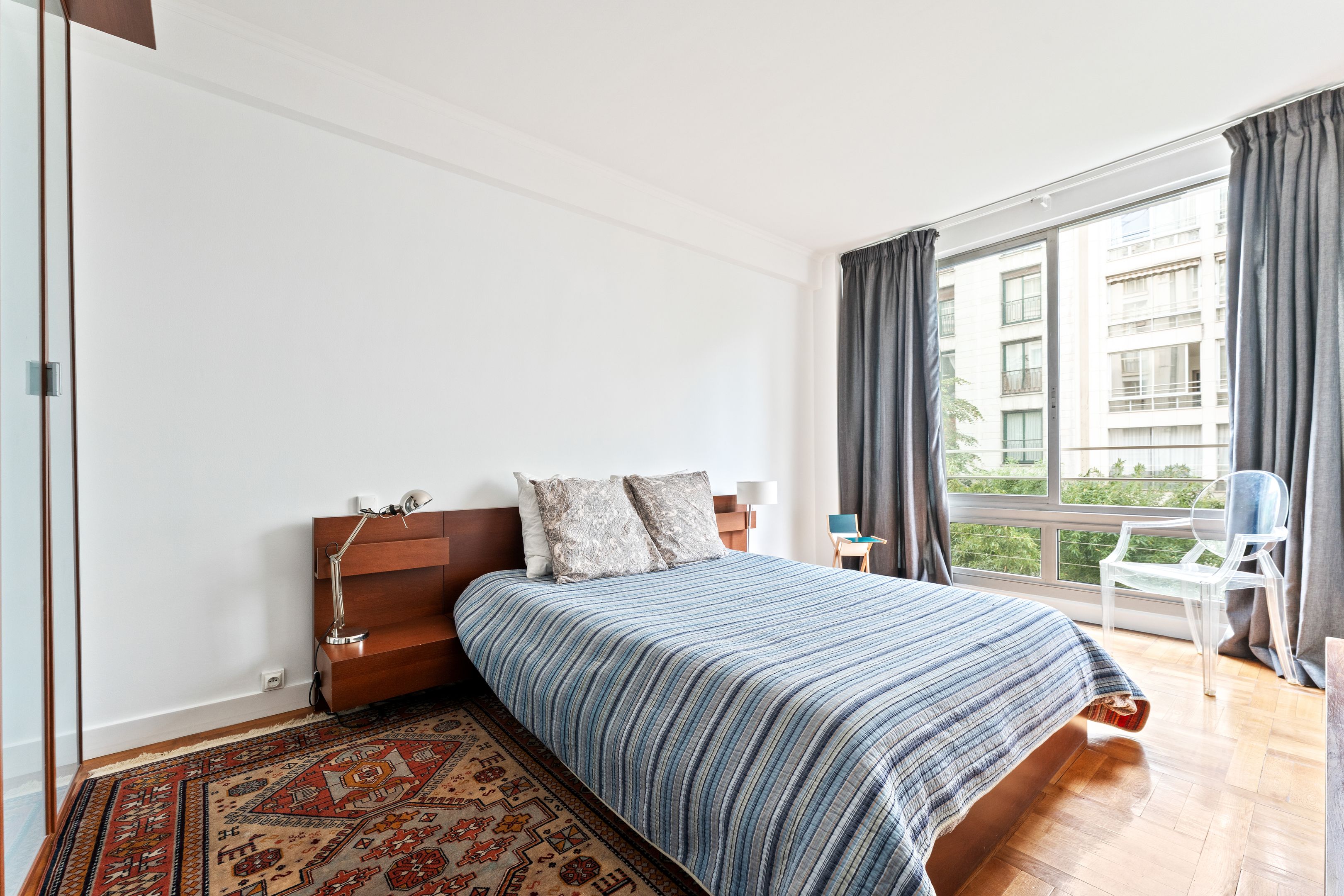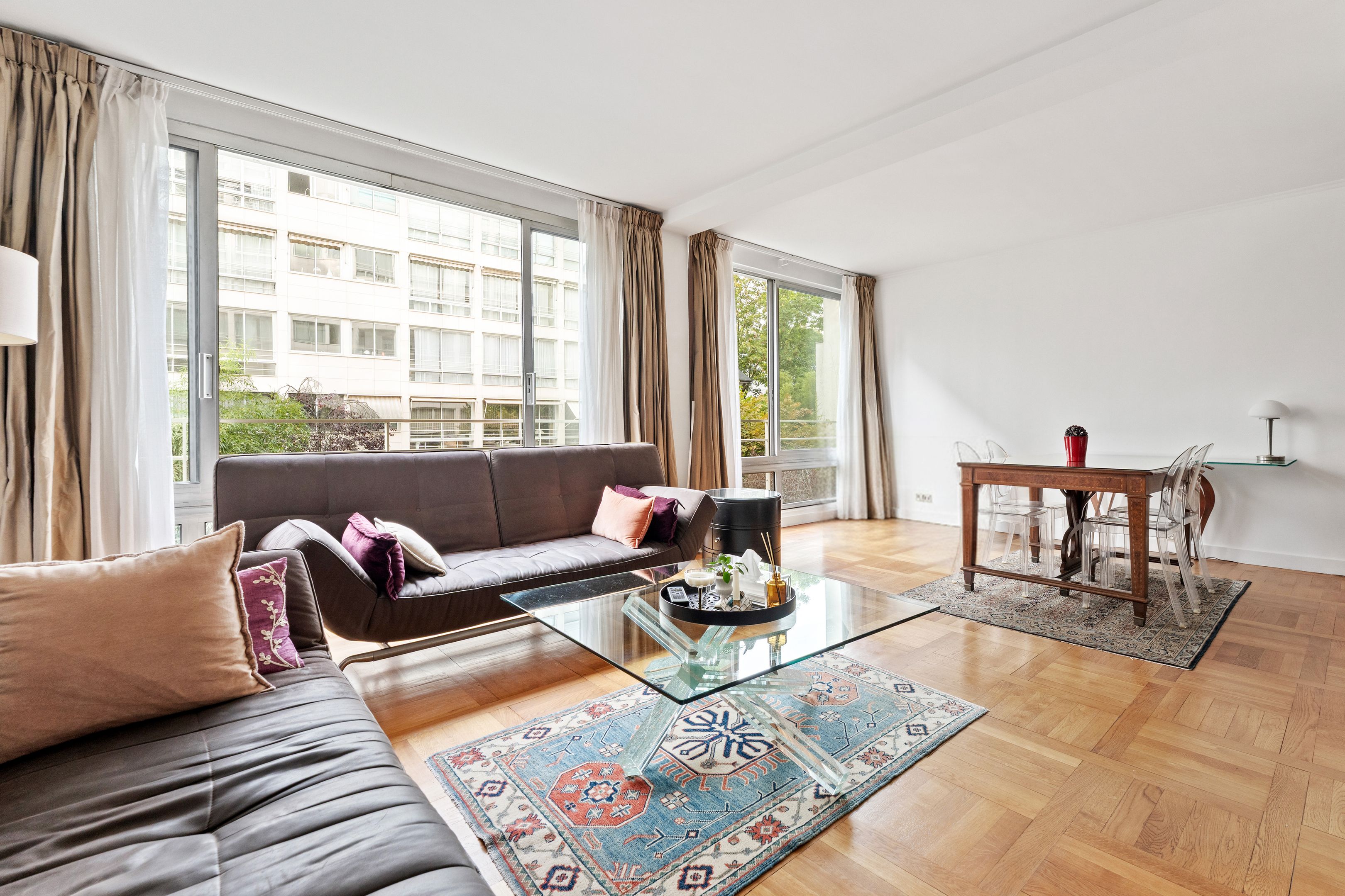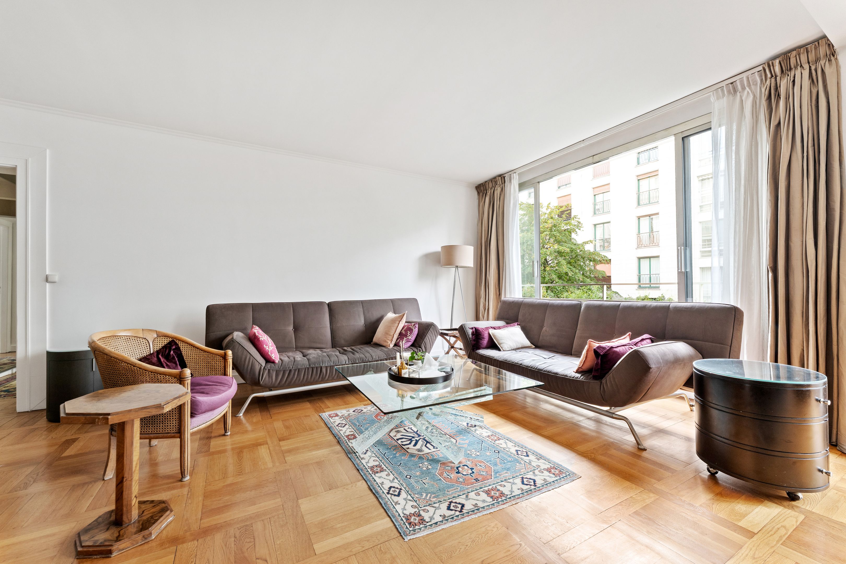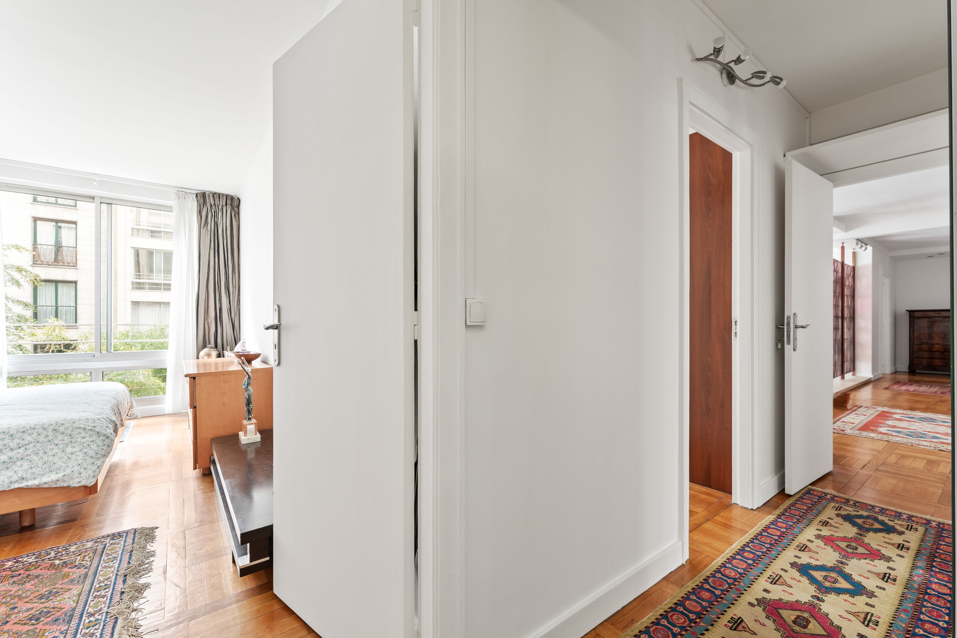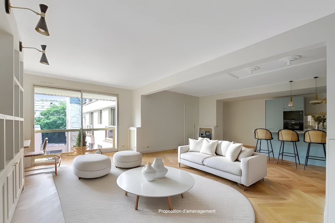Ideally located at the heart of Passy's many shops, transport facilities and good schools. On the second floor, served by elevator, of a pleasant mid-twentieth century luxury residence, secure and planted with trees, a lovely, bright family apartment with a surface area of 105.86 m² loi Carrez, benefiting from a perfect layout with no loss of space, absolute calm, and plenty of sunlight thanks to its south-west orientation. Entrance hall, large living room, separate fitted kitchen (3rd bedroom possible), hallway, two large bedrooms, shower room with toilet, bathroom with toilet, plenty of storage space. Cellar. Possibility of acquiring a parking space in a neighboring building for €55,000. Exclusive to Breteuil.