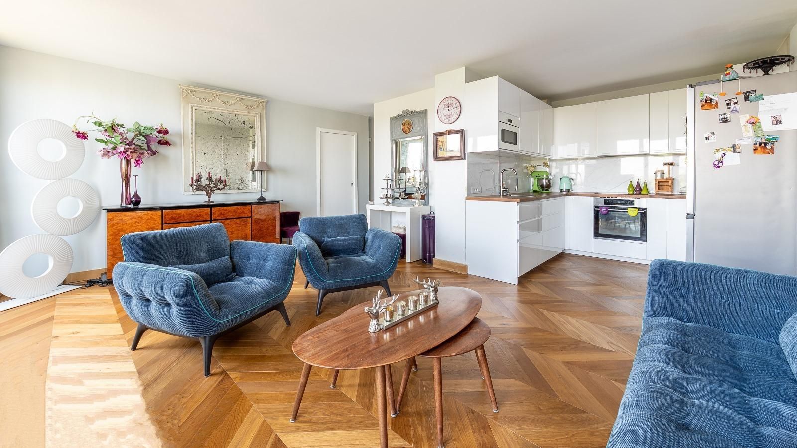 Recent luxury building ideally located close to the metro, renowned schools, Batignolles village and Lévis market. A "coup de coeur", modern-style apartment with a surface area of 70.62 m2 loi Carrez, located on the 10th floor with elevator access. Perfect layout with no loss of space: entrance hall, pleasant, sunny living room with bay windows opening onto a panoramic balcony overlooking Montmartre, vast, fully-equipped kitchen opposite, 2 large bedrooms including the master suite, 2 bathroom areas, separate toilet, dressing rooms. Cellar in basement.