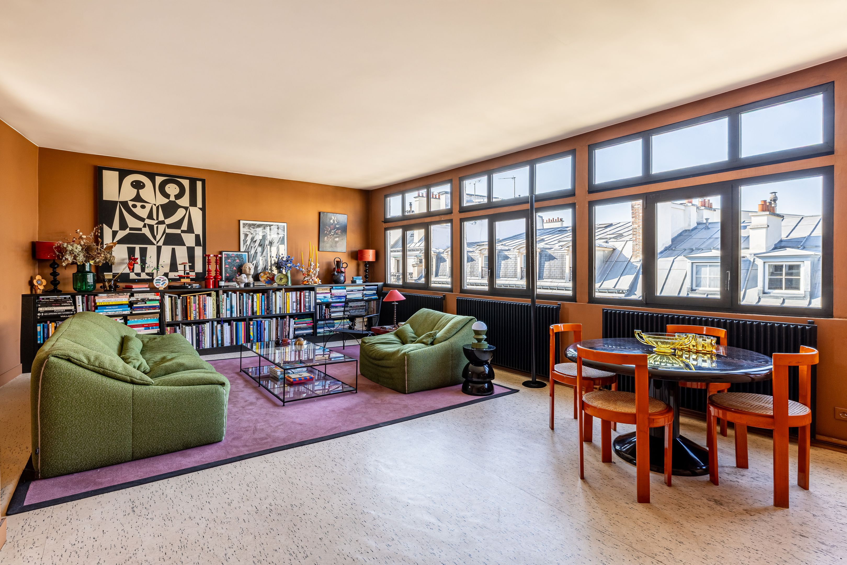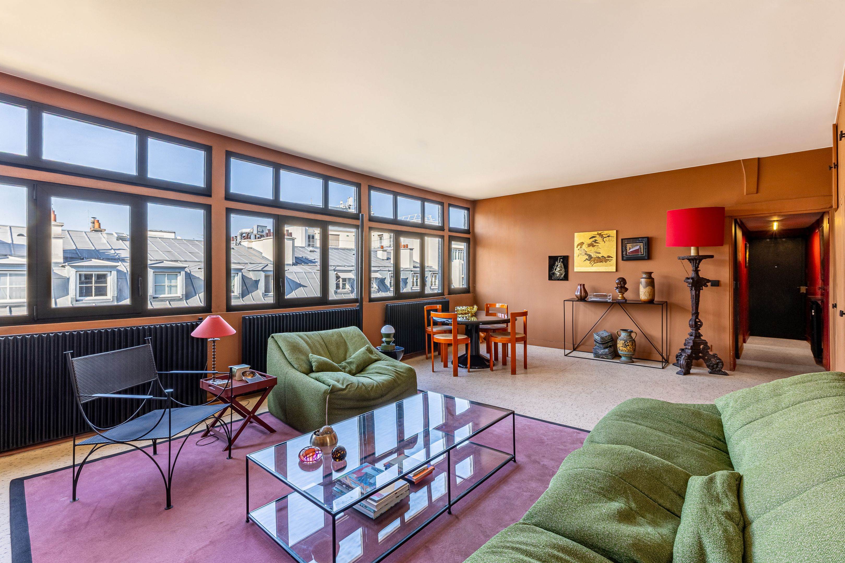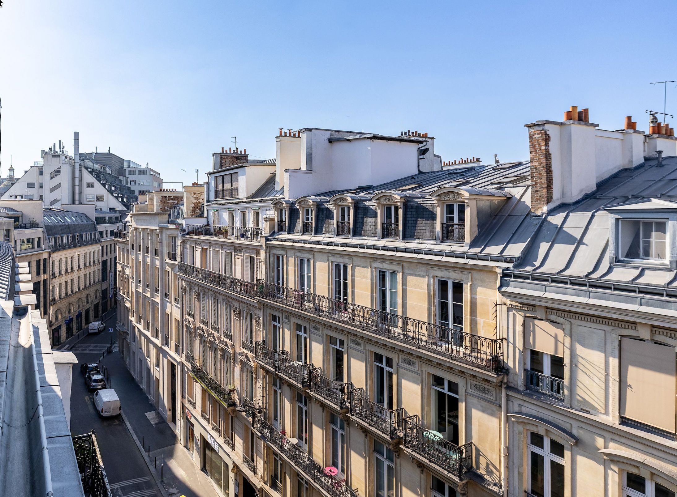 Rue de la Victoire, close to department stores, theaters and transport links, attractive early 19th-century building. On the top floor and only on the landing (by staircase), bright and quiet artist's studio of 64 m² (56 m² loi Carrez). Entrance hall, attractive 33 m² living room with view of the sky and Paris rooftops, adjoining fitted kitchen, bedroom with large dressing room, shower room, separate toilet, plenty of storage space, cellar.