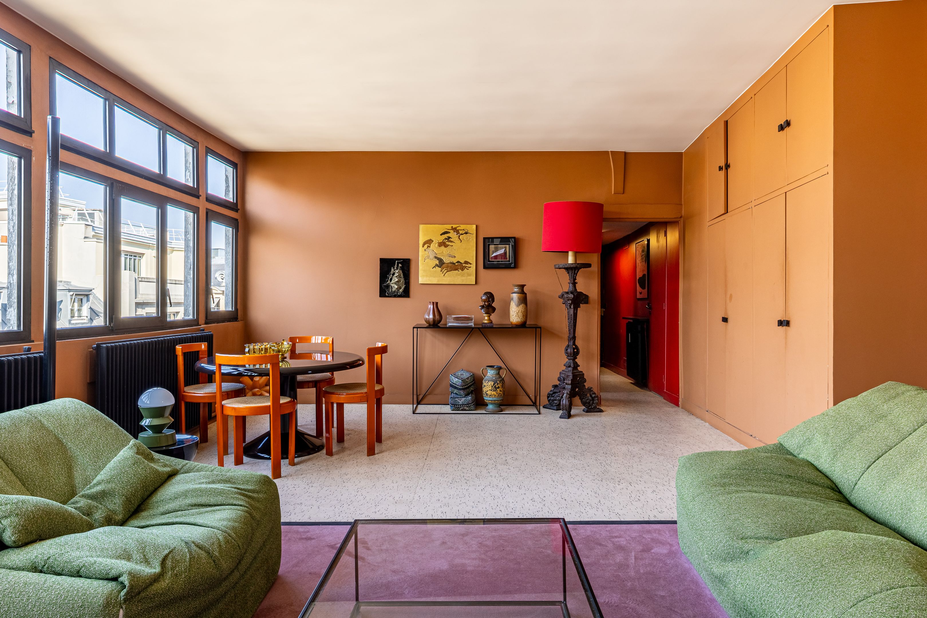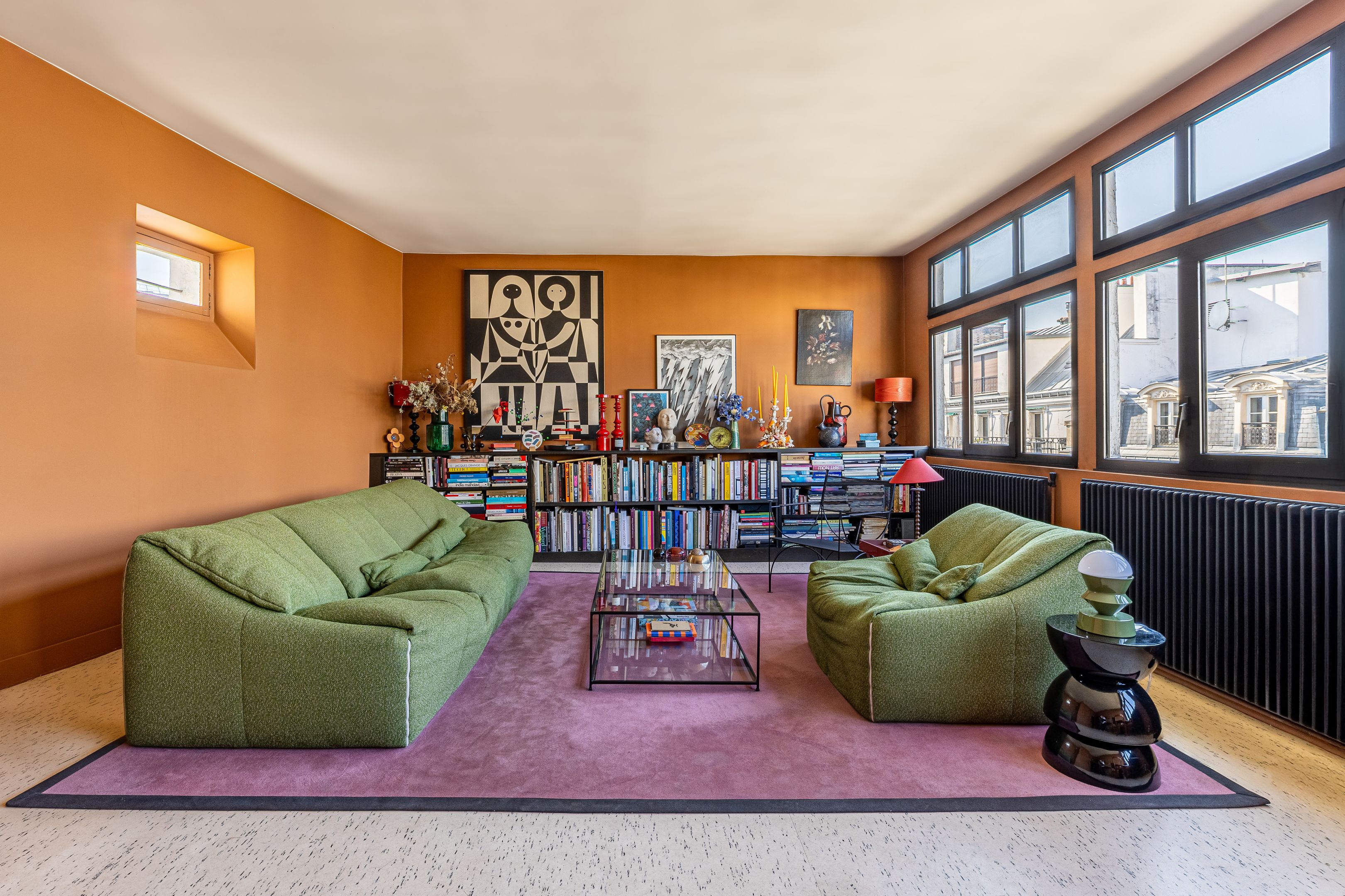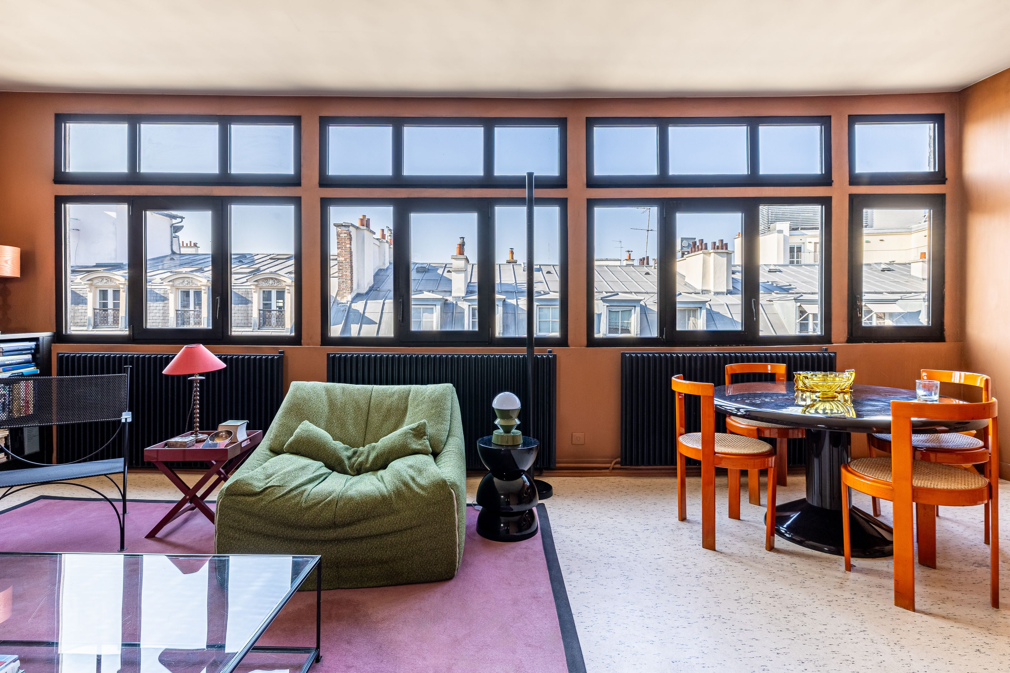 Rue de la Victoire, close to department stores, theaters and transport links, attractive early 19th-century building. On the top floor and only on the landing (by staircase), bright and quiet artist's studio of 64 m² (56 m² loi Carrez). Entrance hall, attractive 33 m² living room with view of the sky and Paris rooftops, adjoining fitted kitchen, bedroom with large dressing room, shower room, separate toilet, plenty of storage space, cellar.