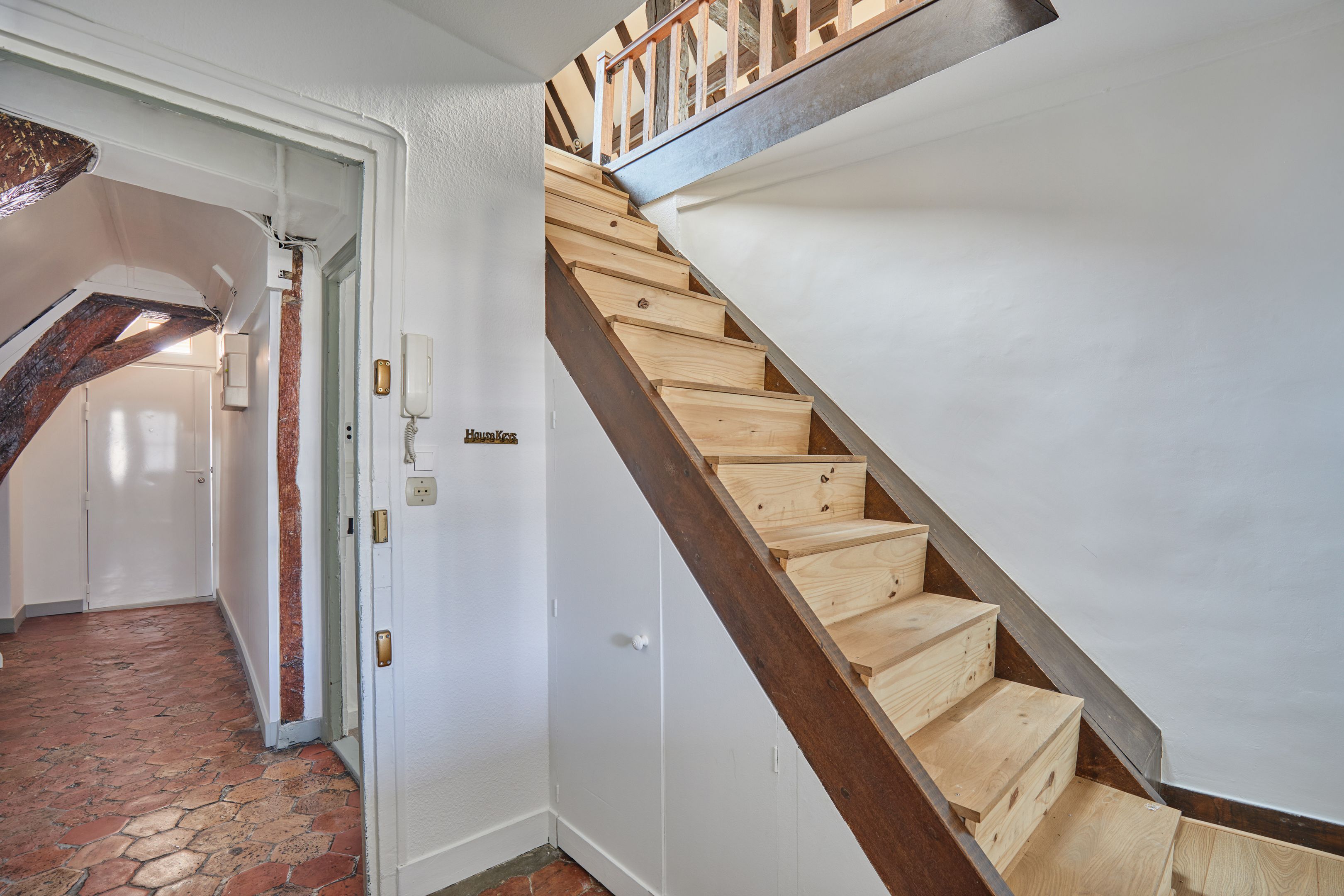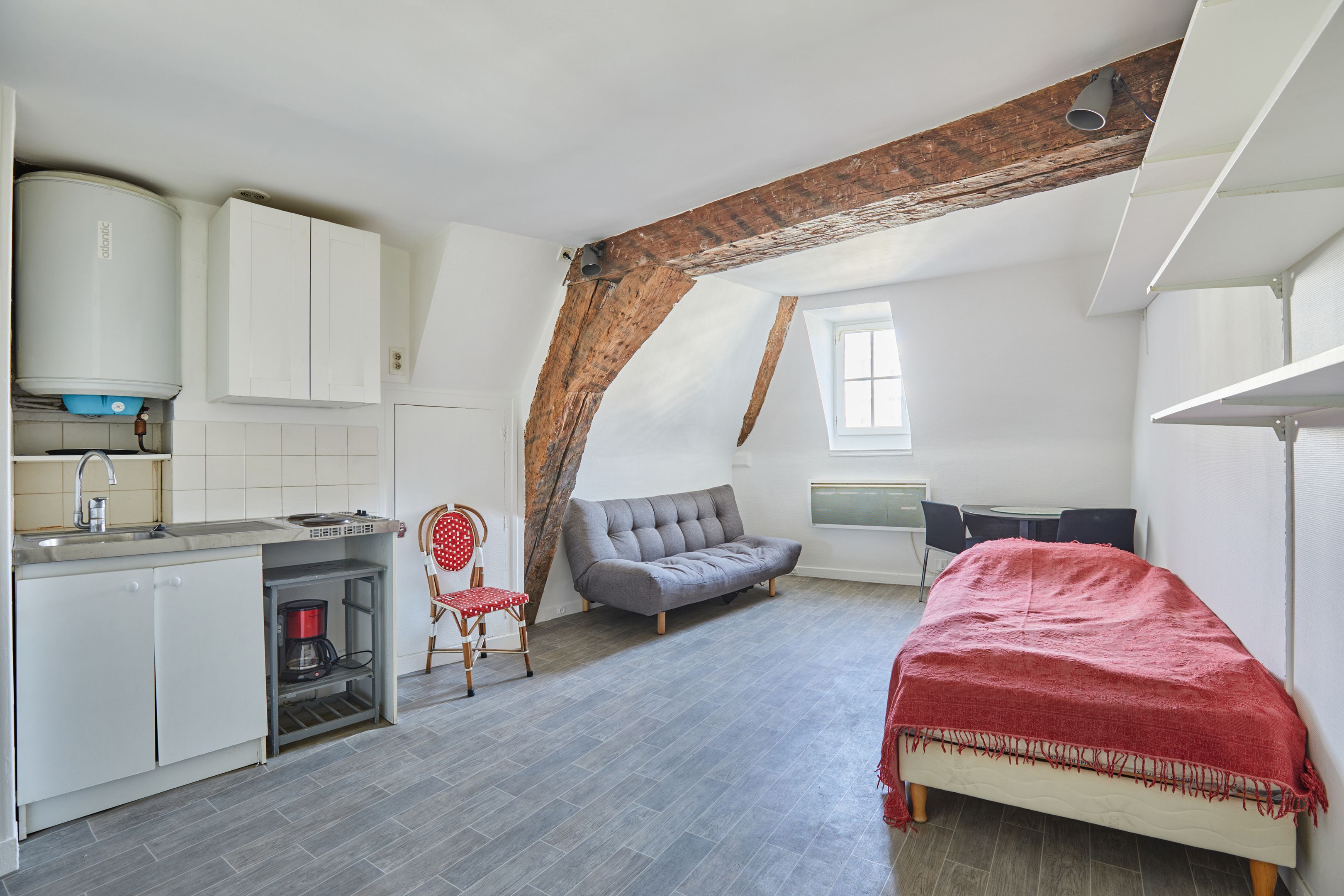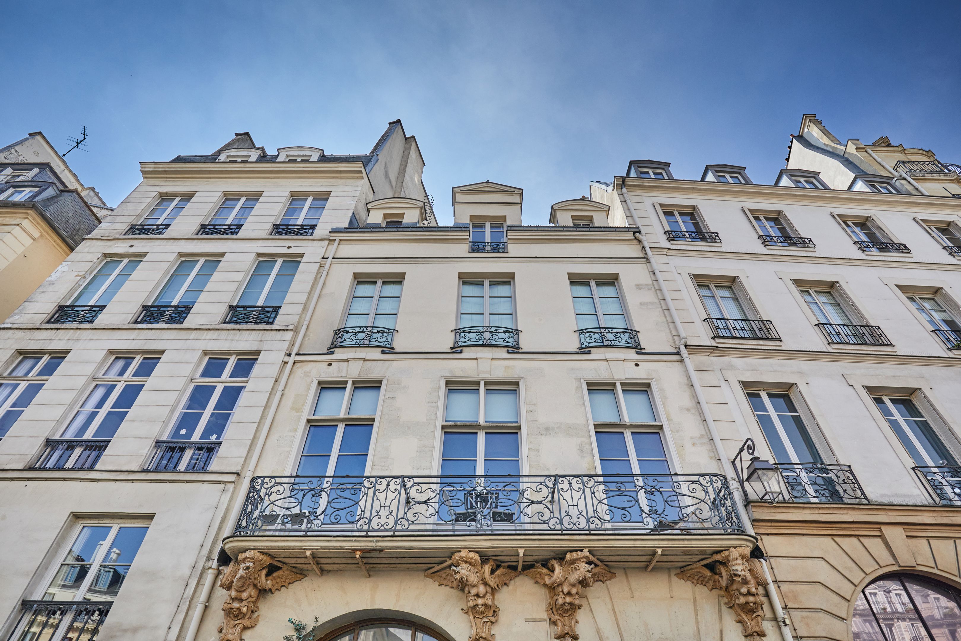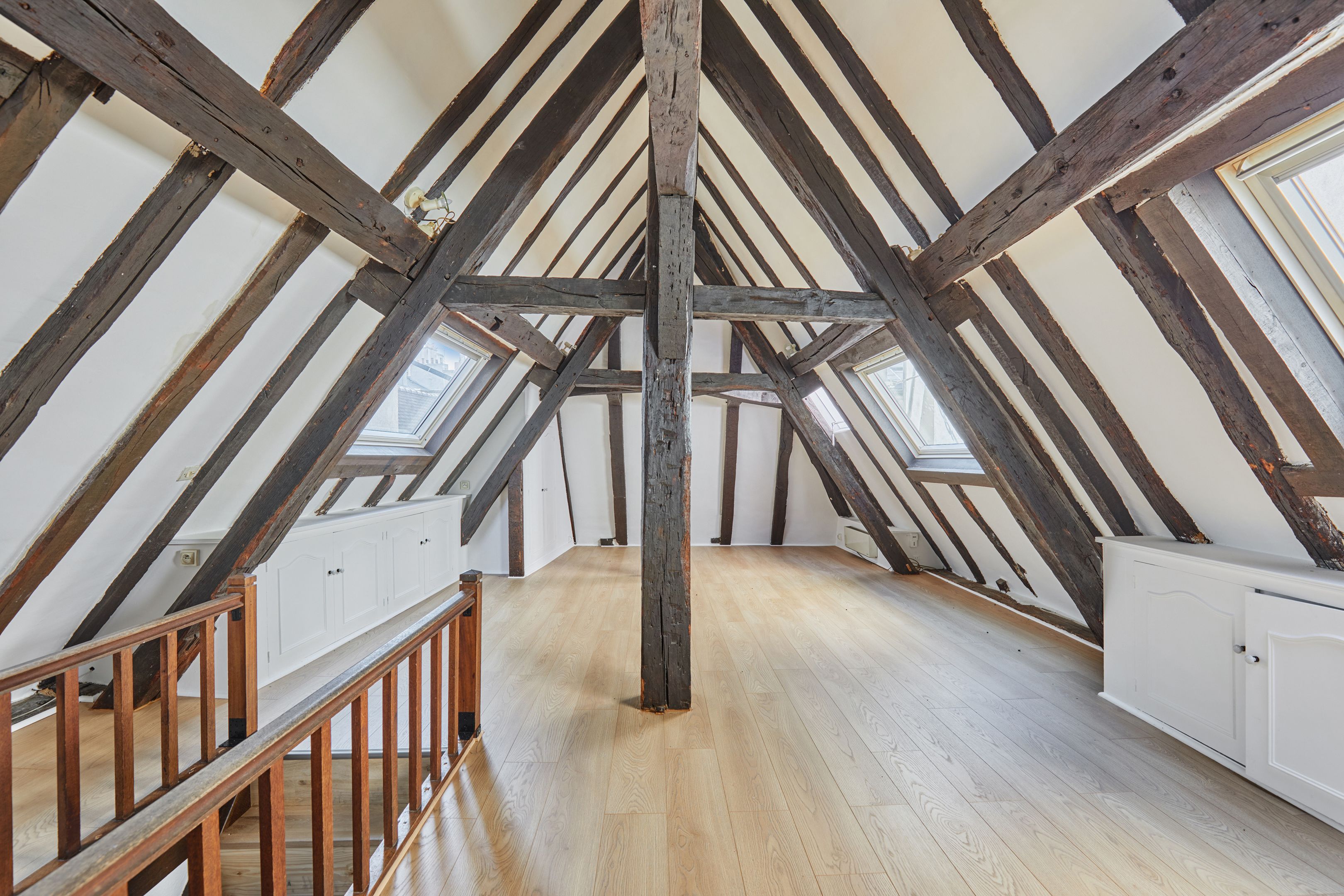 Building dating from 1650. Fully-renovated duplex apartment in Saint-Paul, 104.95 m² floor area, including 73.76 m² Loi Carrez, on 3rd and 4th floors with staircase and unobstructed view. On the 3rd floor, first level, master bedroom with kitchenette, shower room and separate toilet, bedroom with unobstructed view, additional shower room. 4th floor, second level, lovely living room with exposed beams, separate kitchen, bathroom with toilet. Cellar.