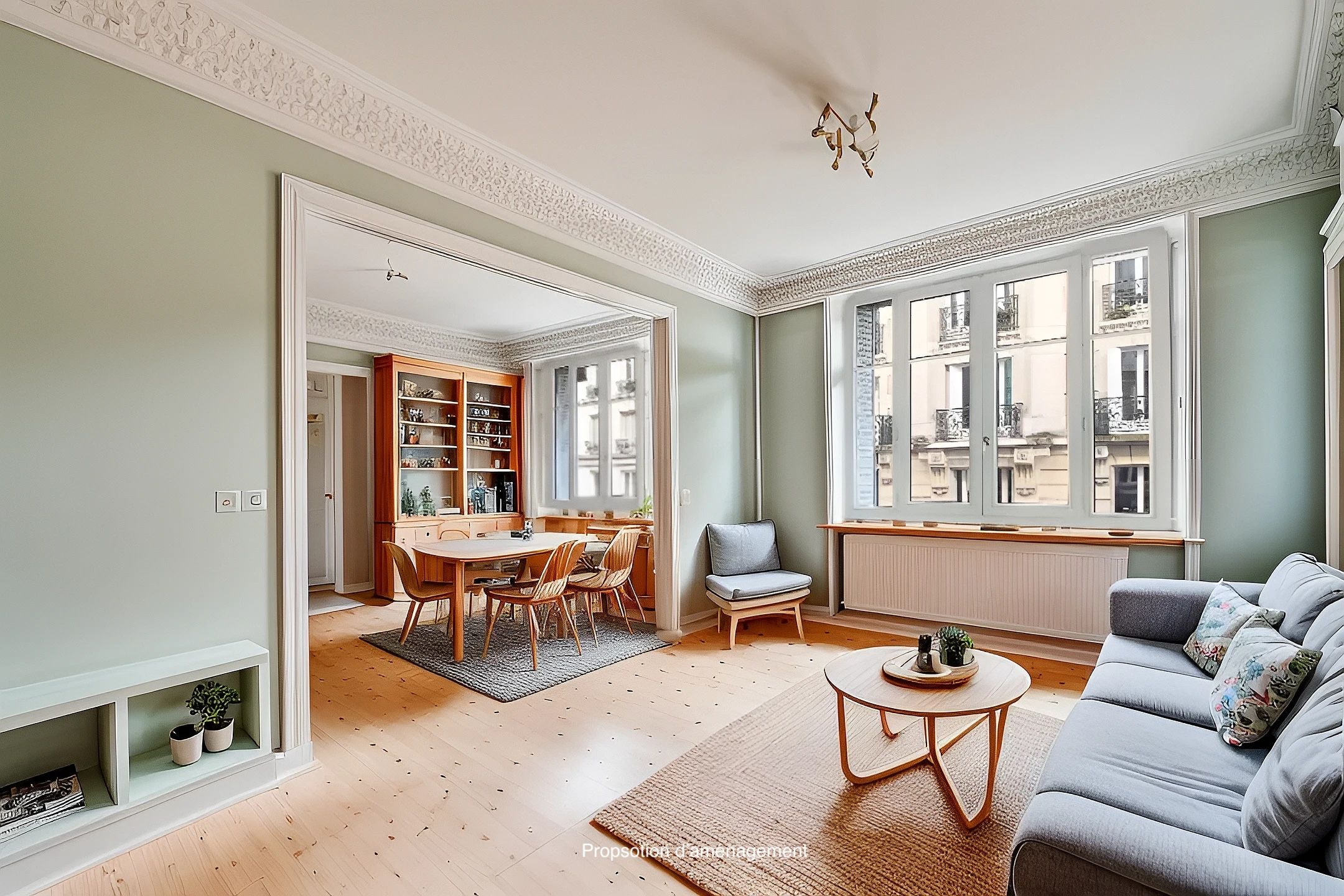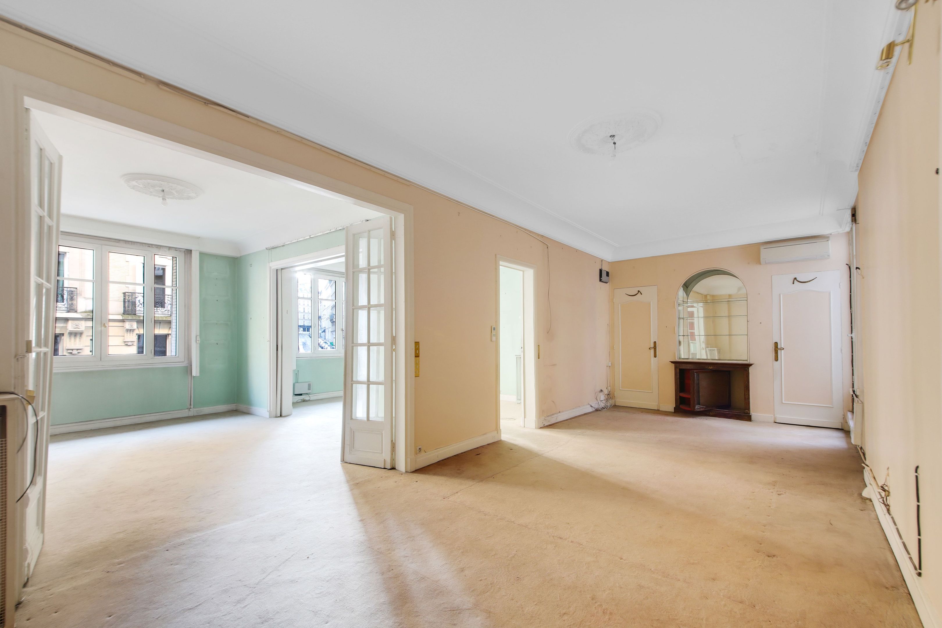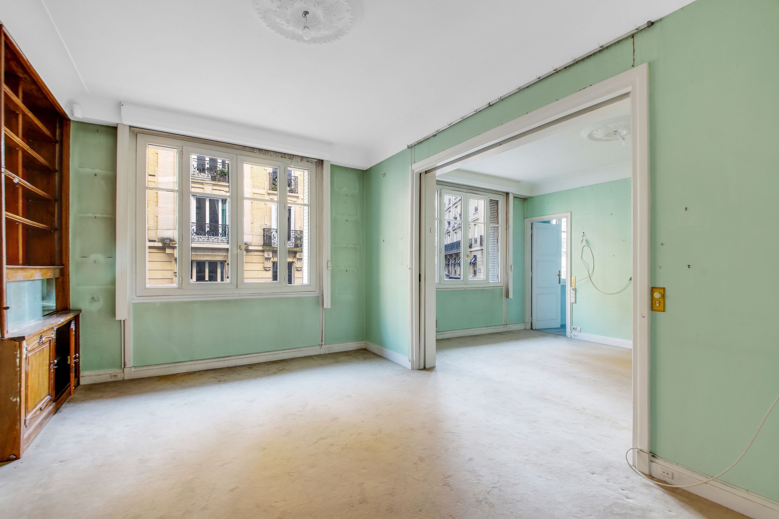 Rue des Accacias (metro Charles de Gaulle Etoile or Ternes) - On the 1st floor of a beautiful 1930s building, 113 m2 apartment for complete renovation, sold with a garage and cellar. The apartment currently comprises a large entrance hall, 3 large front rooms, kitchen and bathroom. Large volumes and high ceilings. Great potential after renovation. Quick visit.