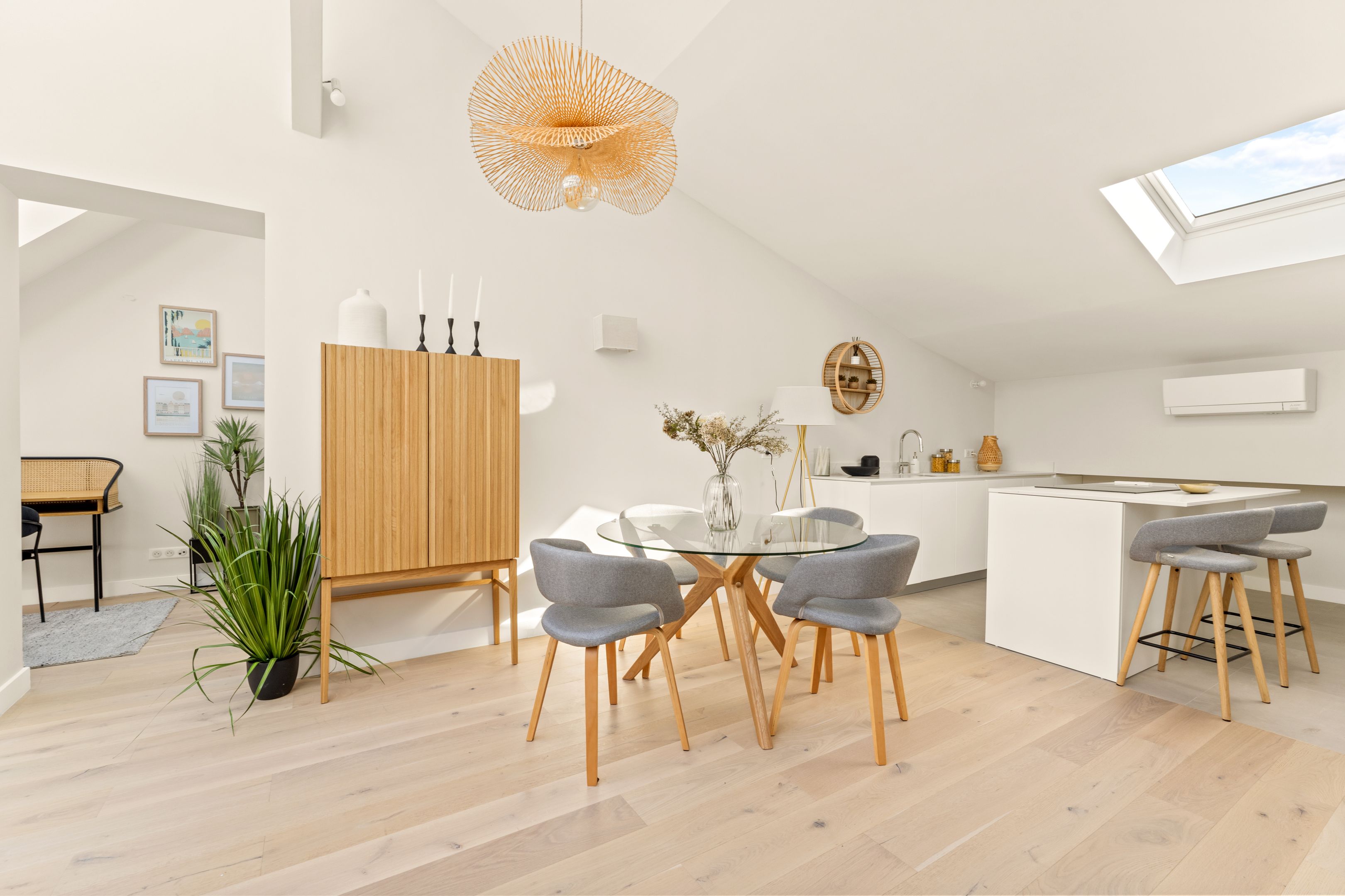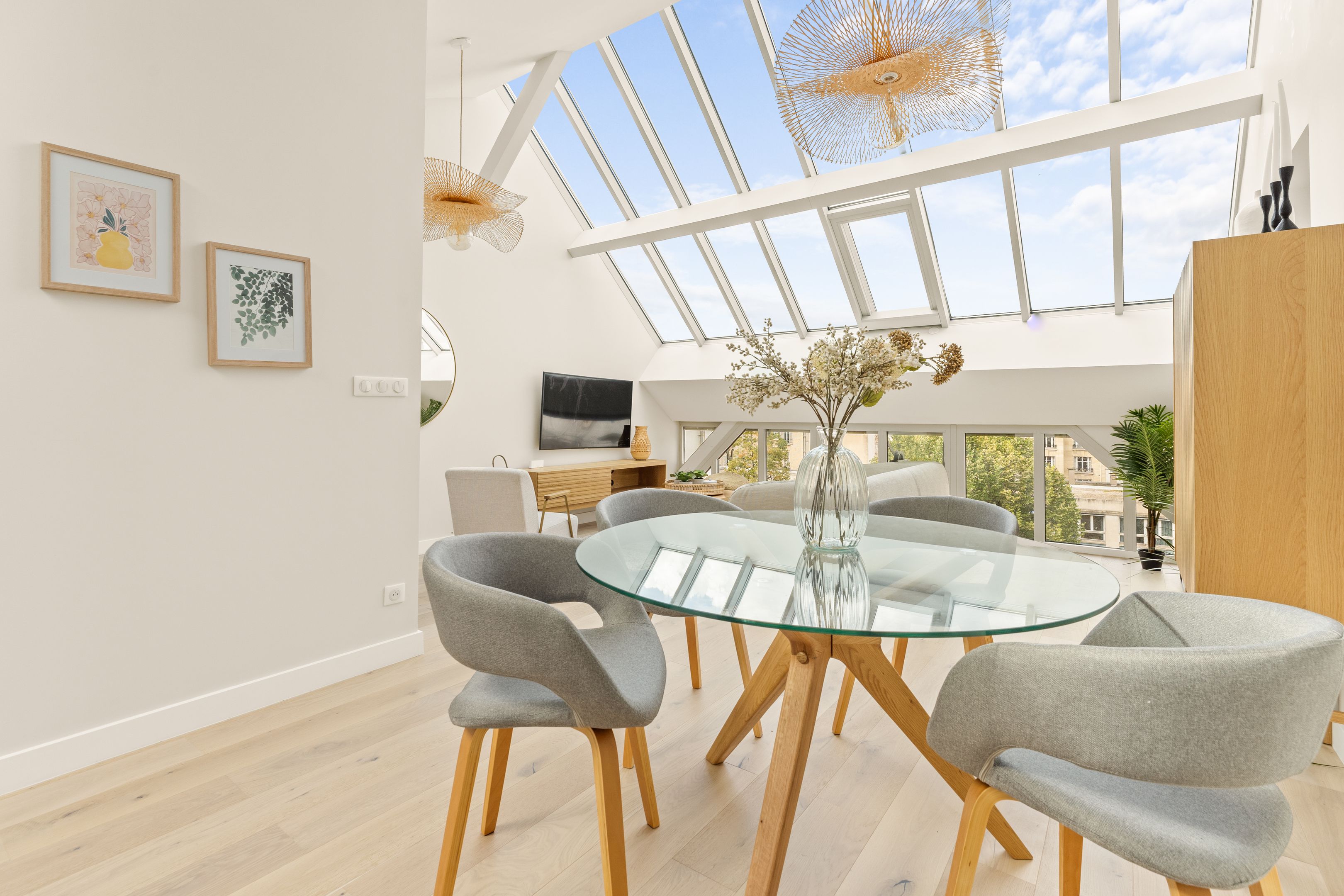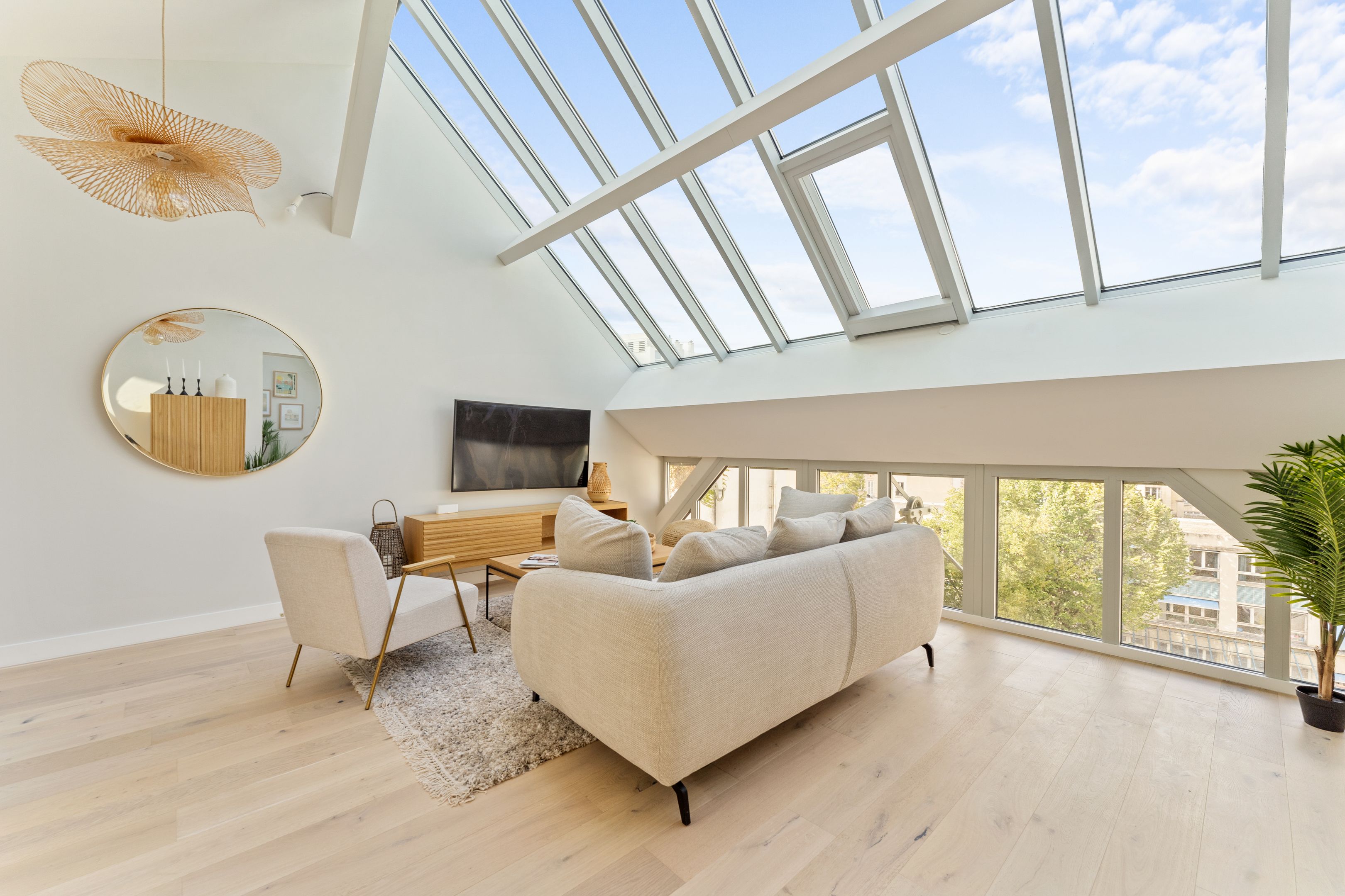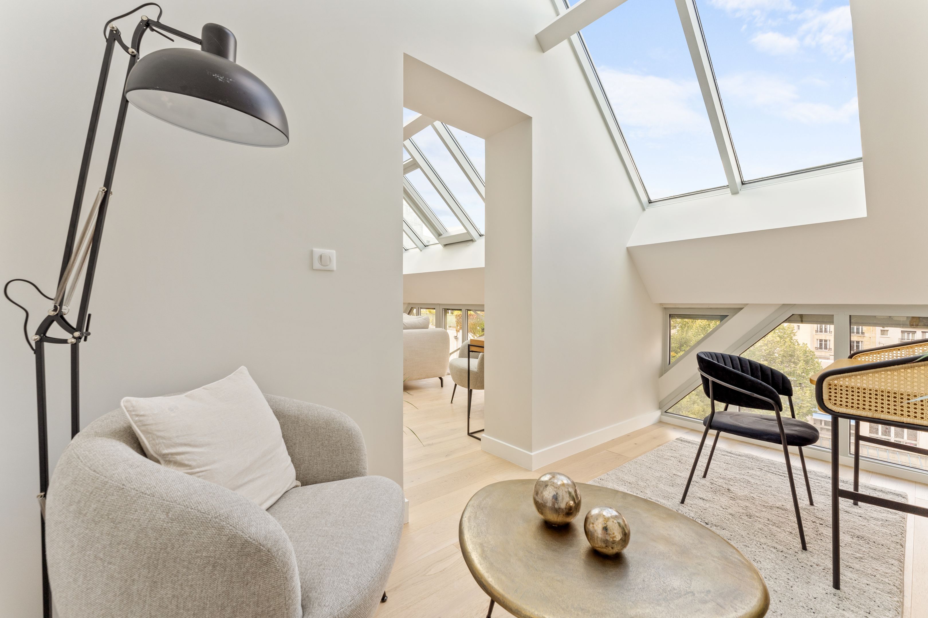 Ideally located between Place du Trocadéro and Place Victor Hugo, this fully renovated 95 m² (85 m² Loi Carrez) artist's studio boasts spacious, bright rooms. On the first level (second floor, equivalent to a fourth floor): two air-conditioned bedrooms with ample storage space, two shower rooms, separate toilet and laundry room. On the second level (equivalent to a 5th floor): loft-style living room, fully fitted and equipped open kitchen and separate toilet.