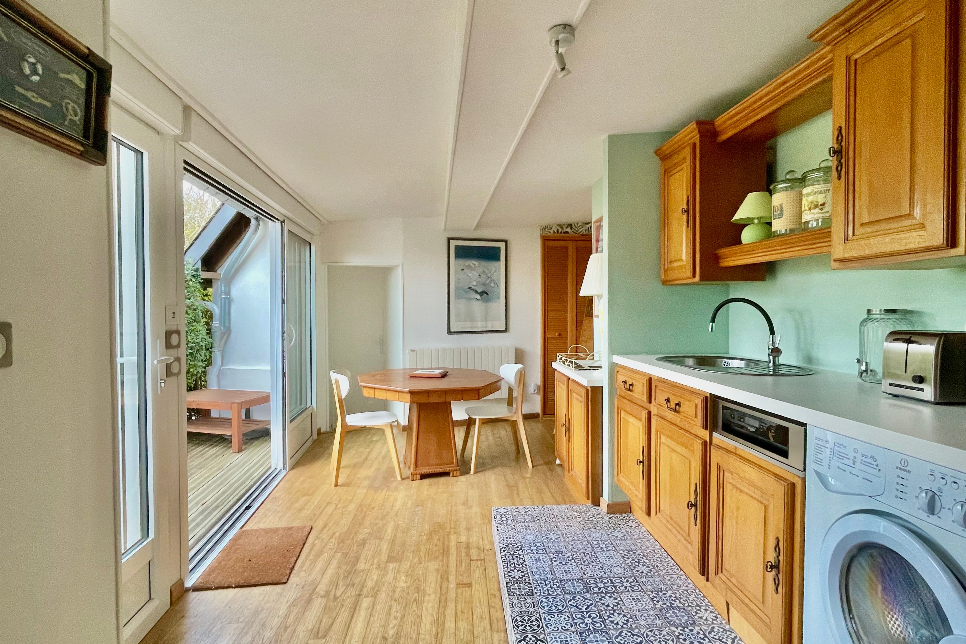 Exclusive Breteuil - On the heights of Trouville, charming semi-detached house with 42m2 living space and terrace. Living room, dining room, fitted and equipped kitchen, shower room with toilet, children's bedroom. Upstairs: bedroom. Public parking nearby.
