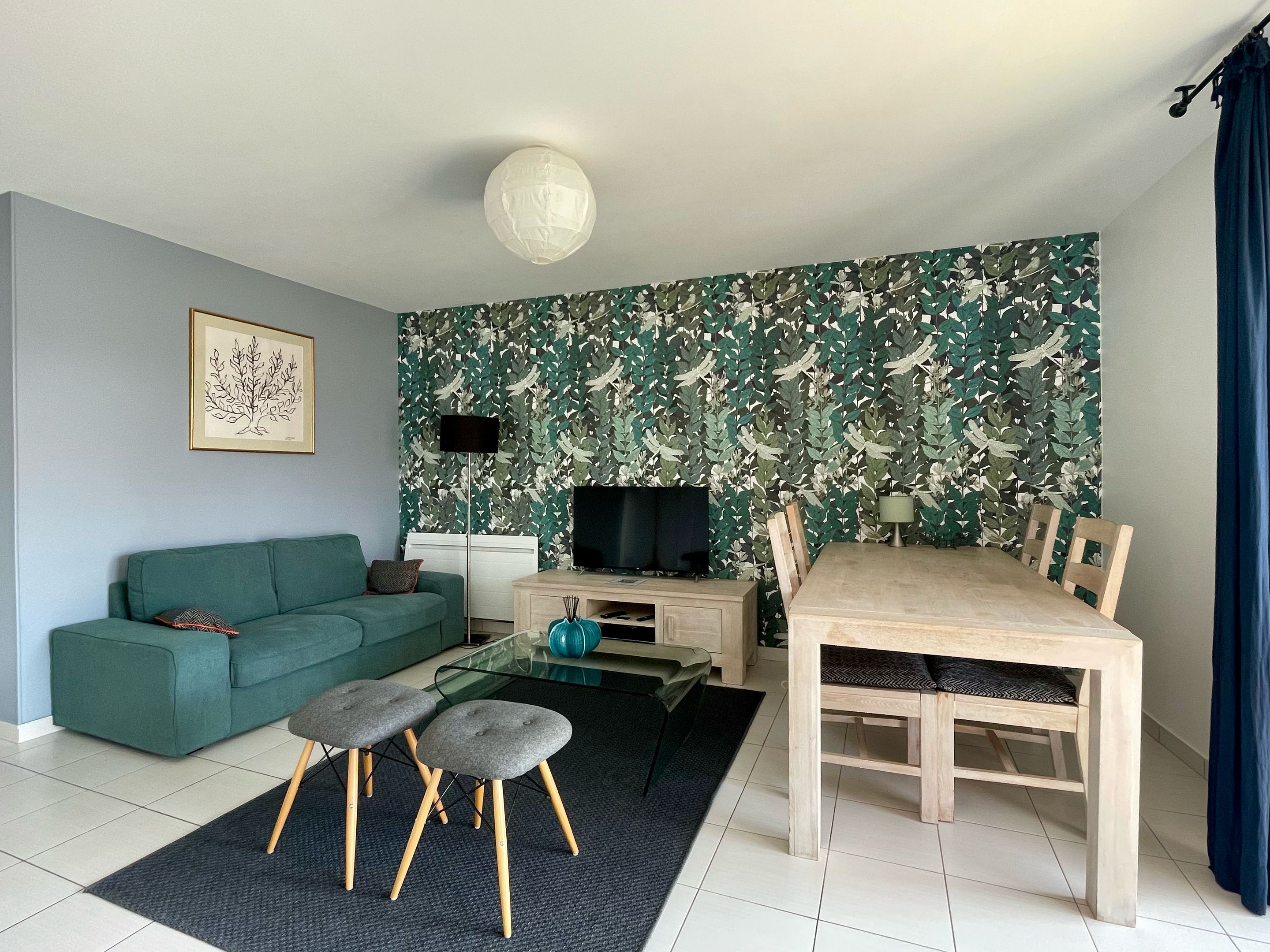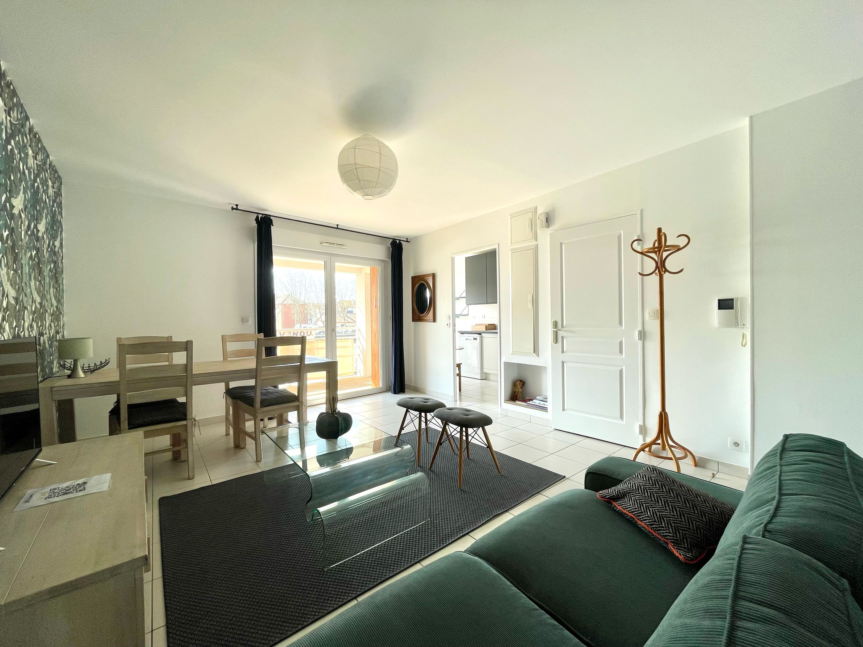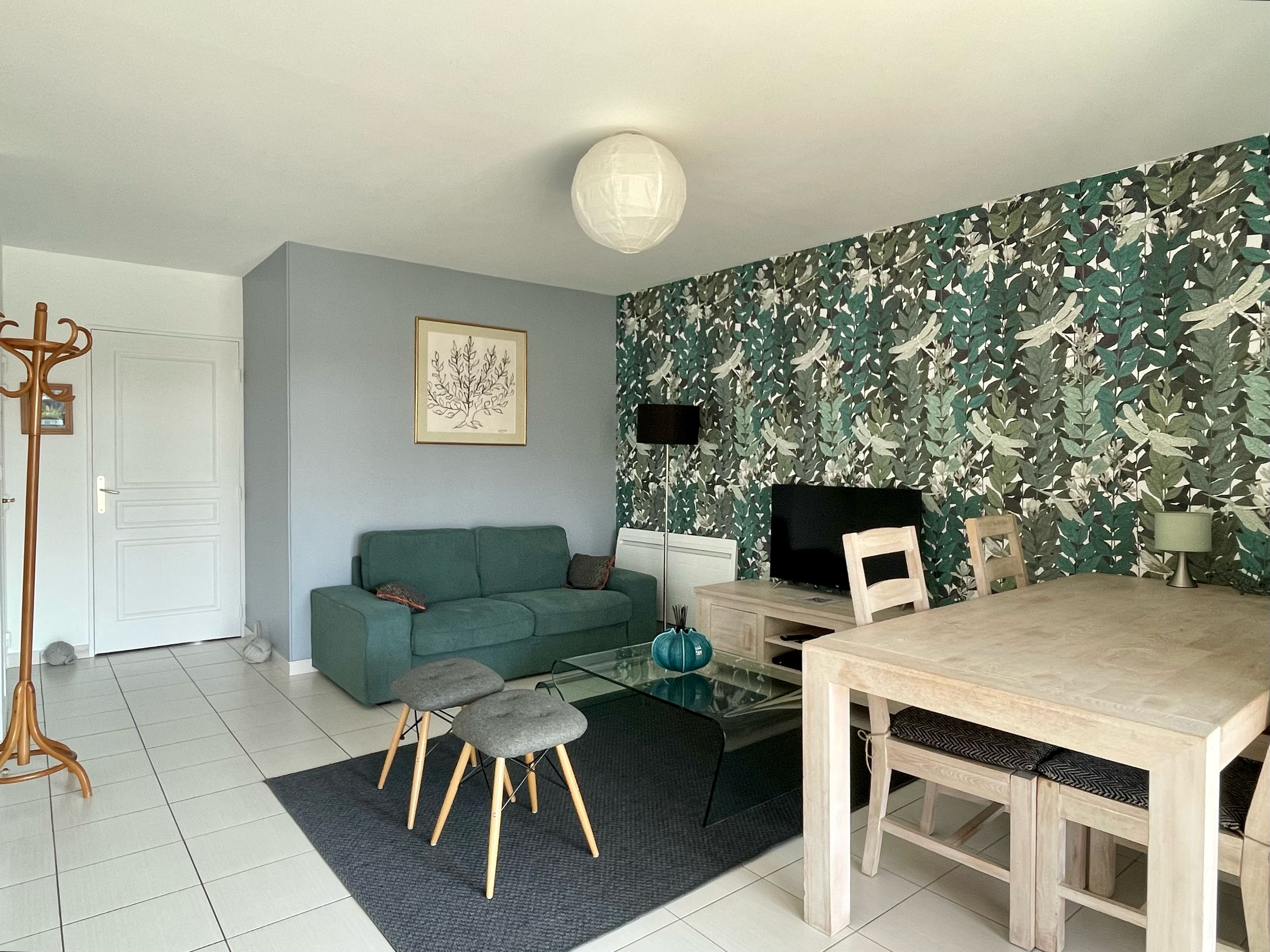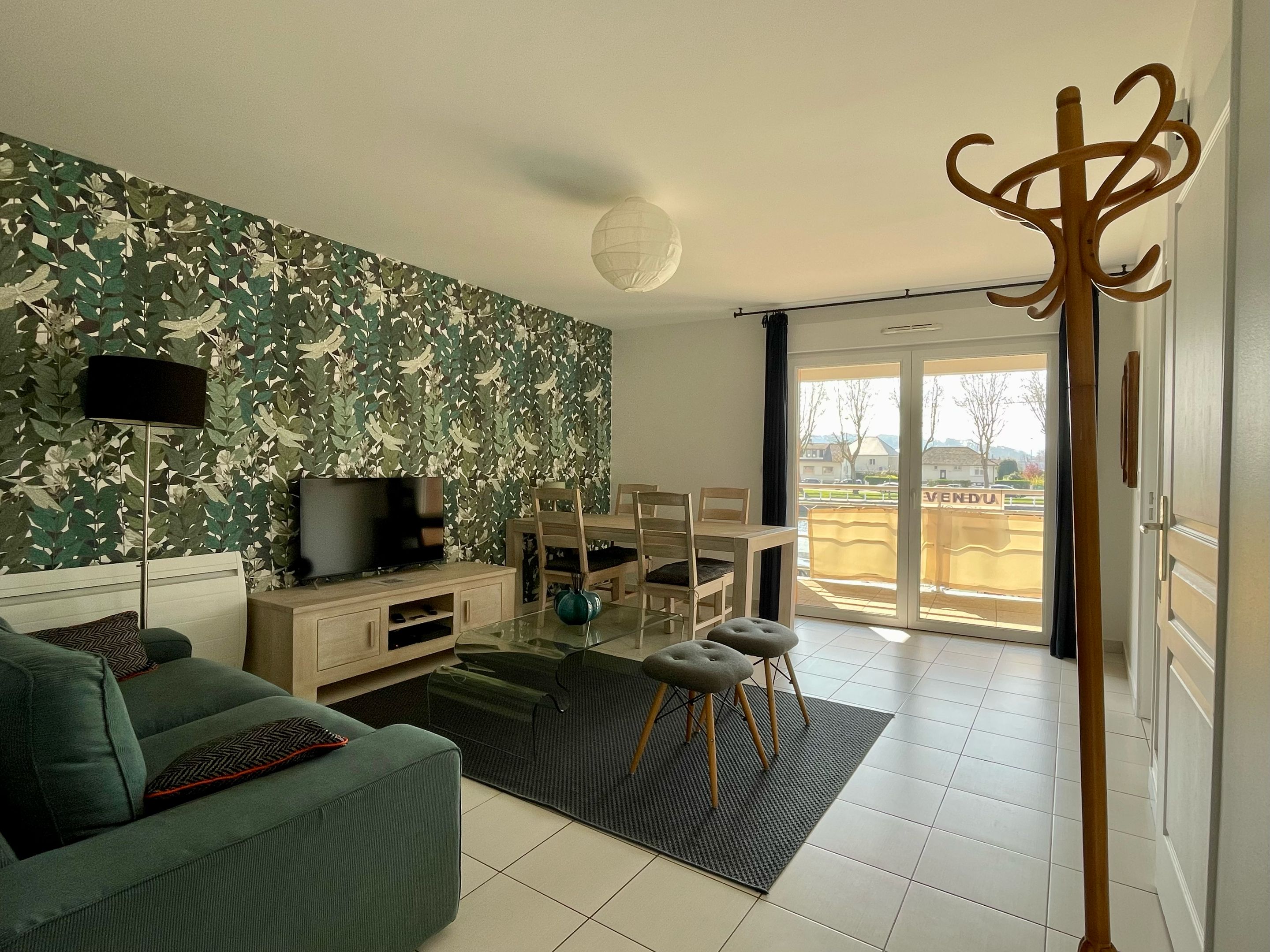 On the 1st floor of a recent residence on quai Kennedy, served by elevator, attractive 62m2 apartment with PMR access. Entrance hall, living room opening onto a beautiful south-west-facing loggia overlooking the Touques river, independent fitted kitchen with loggia access, two bedrooms, bathroom with toilet, independent toilet. Private garage. Bicycle room.
