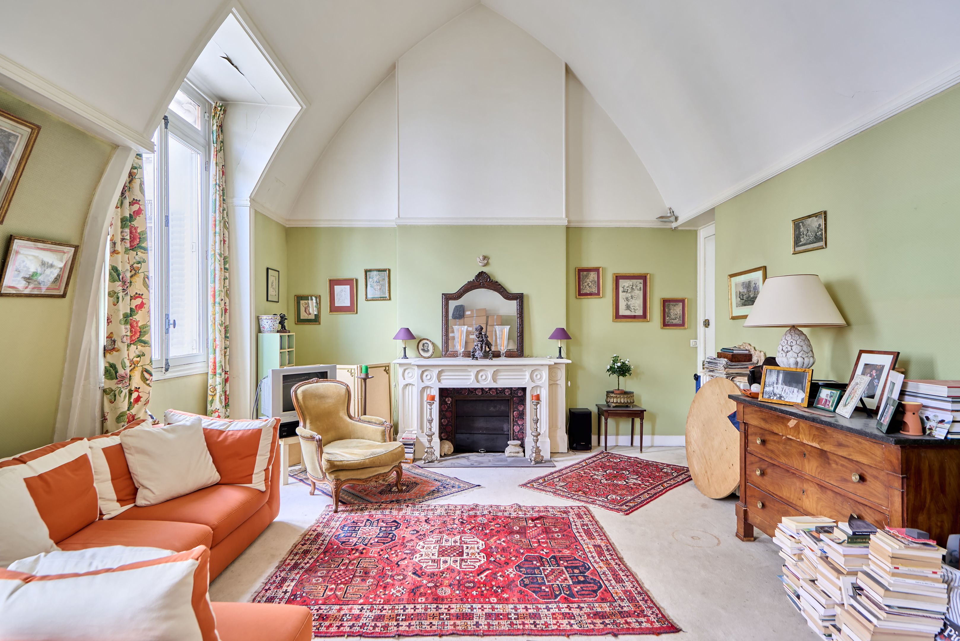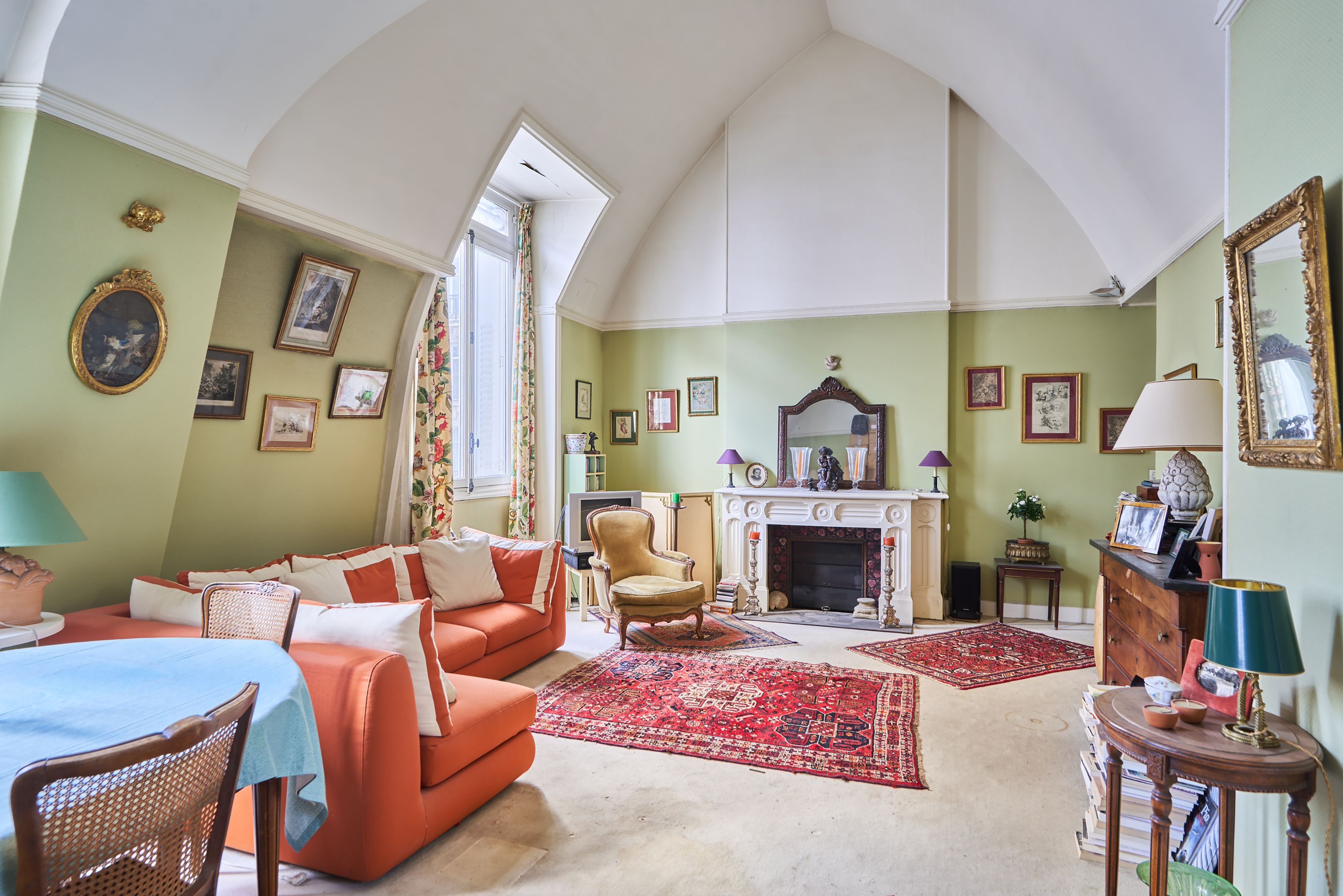 Prime address in the heart of a private, secure lane. On the 2nd and top floor, via staircase, of a former private mansion, this charming apartment boasts exceptional volumes thanks to its 5 m high ceilings. Entrance hall, superb reception room, kitchen, bedroom, bathroom, separate toilet. Cellar. Rare property in absolute calm. Non-fixed parking space in front of the house.