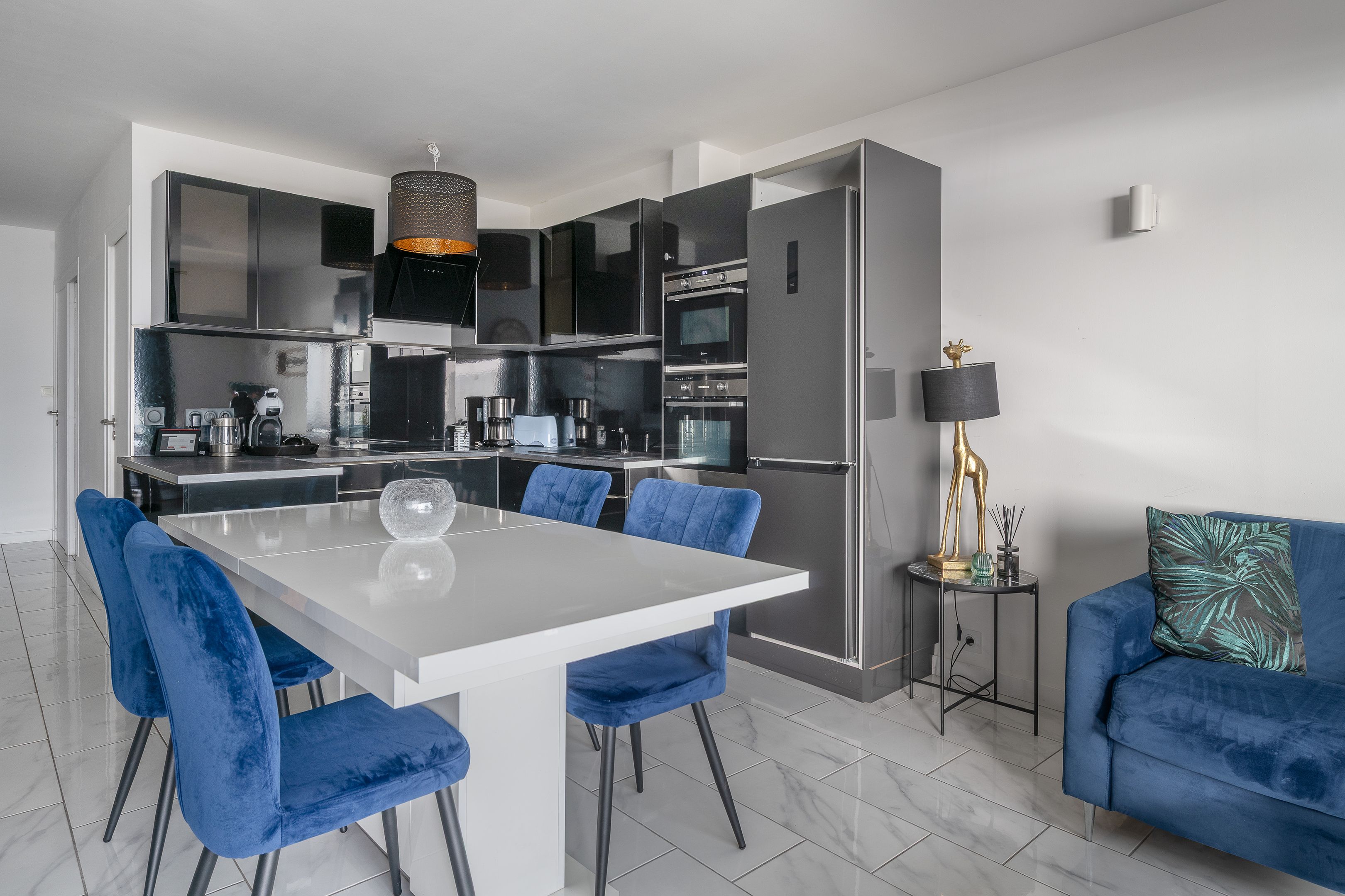 Quartier des Oiseaux, sea-facing apartment in a secure residence close to the market and major hotels. This apartment features an entrance hall, dressing room, living room, fitted and equipped kitchen opening onto a sea-facing terrace. Three bedrooms to the rear, one with private shower and water point. Shower room. Separate toilet.