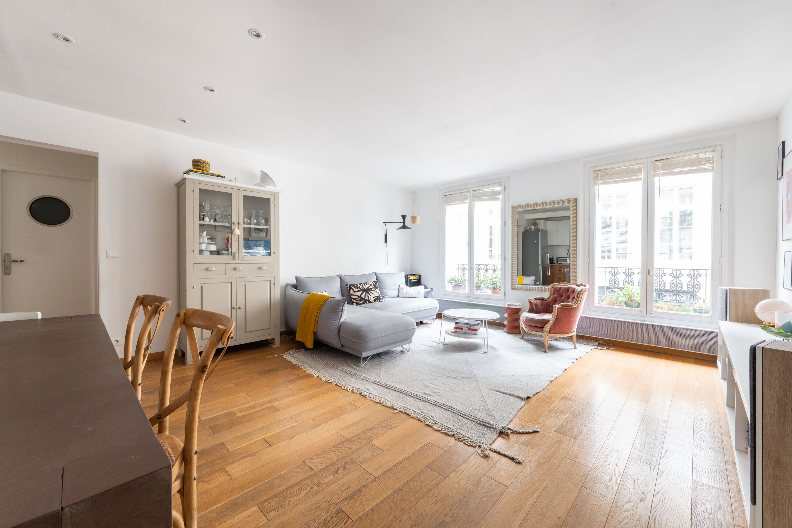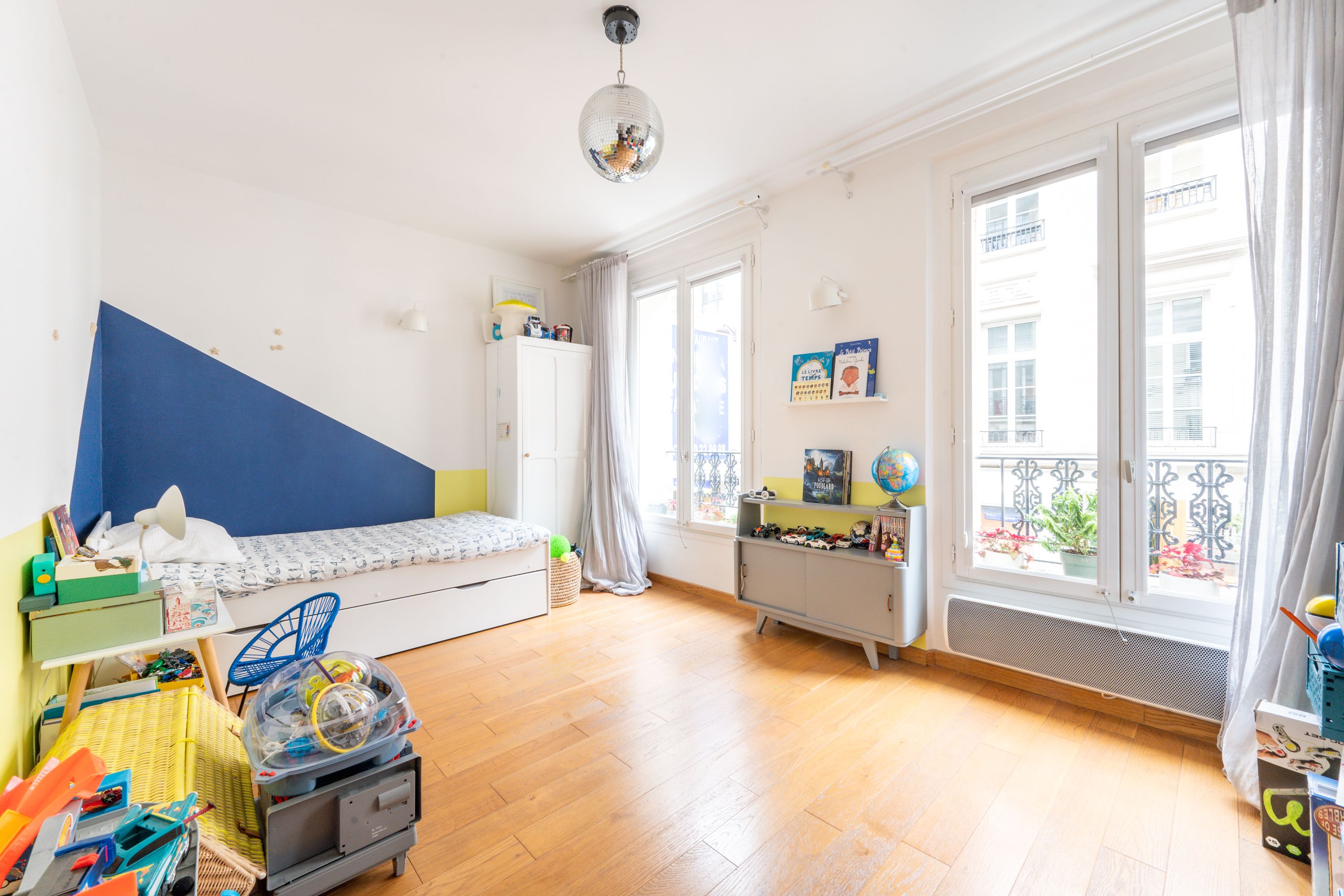 In a superb freestone building with fully refurbished communal areas, ideally located right next to Bonne Nouvelle metro station, dual-aspect family apartment on the 1st floor (with a lift) overlooking a large and beautiful courtyard, appointed to a high standard. Living room with fully equipped open-plan kitchen, 2 spacious bedrooms, small bedroom or office, family bathroom with walk-in shower, separate toilet. Cellar.