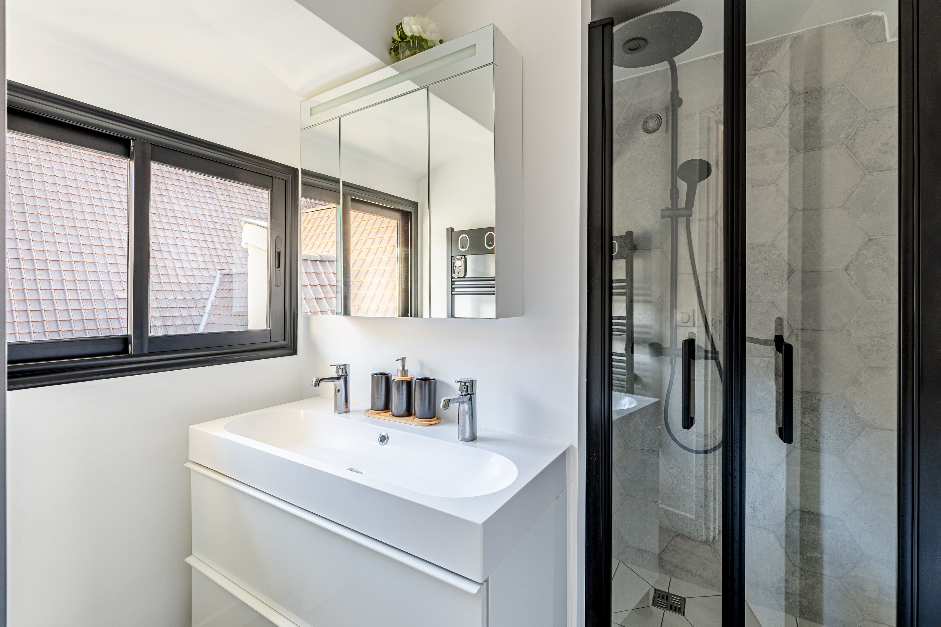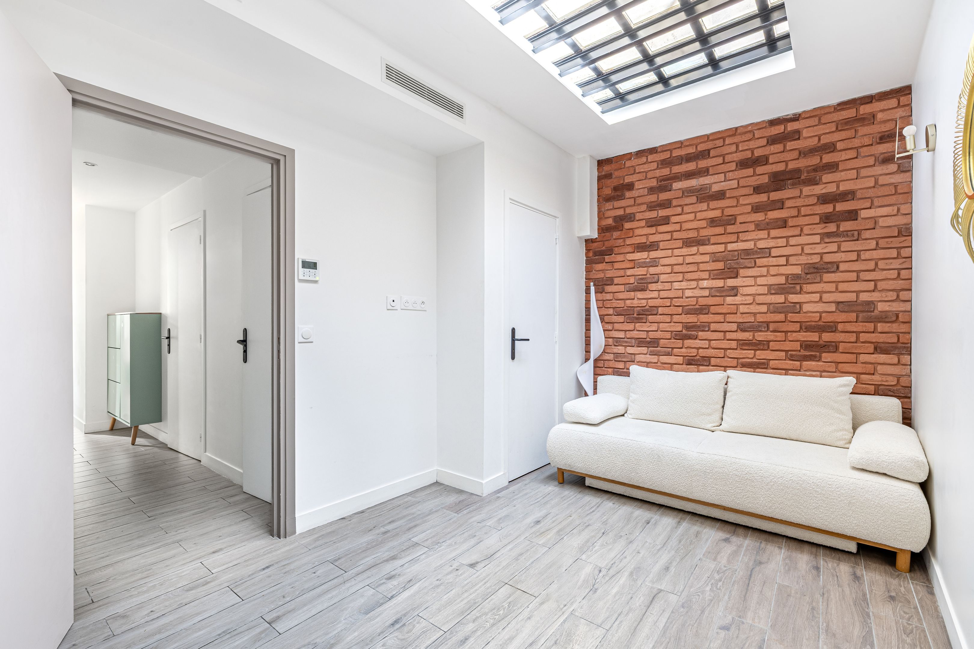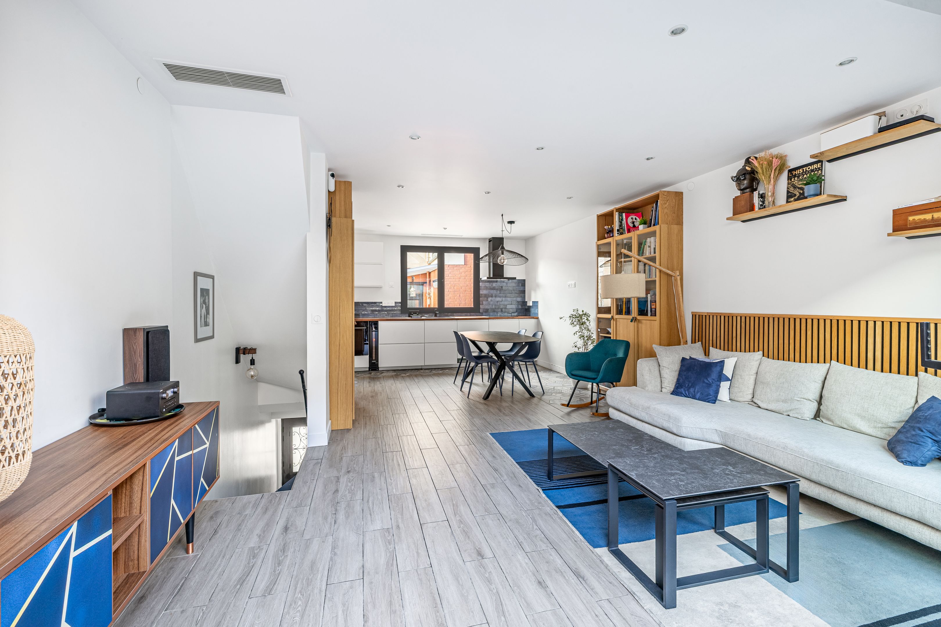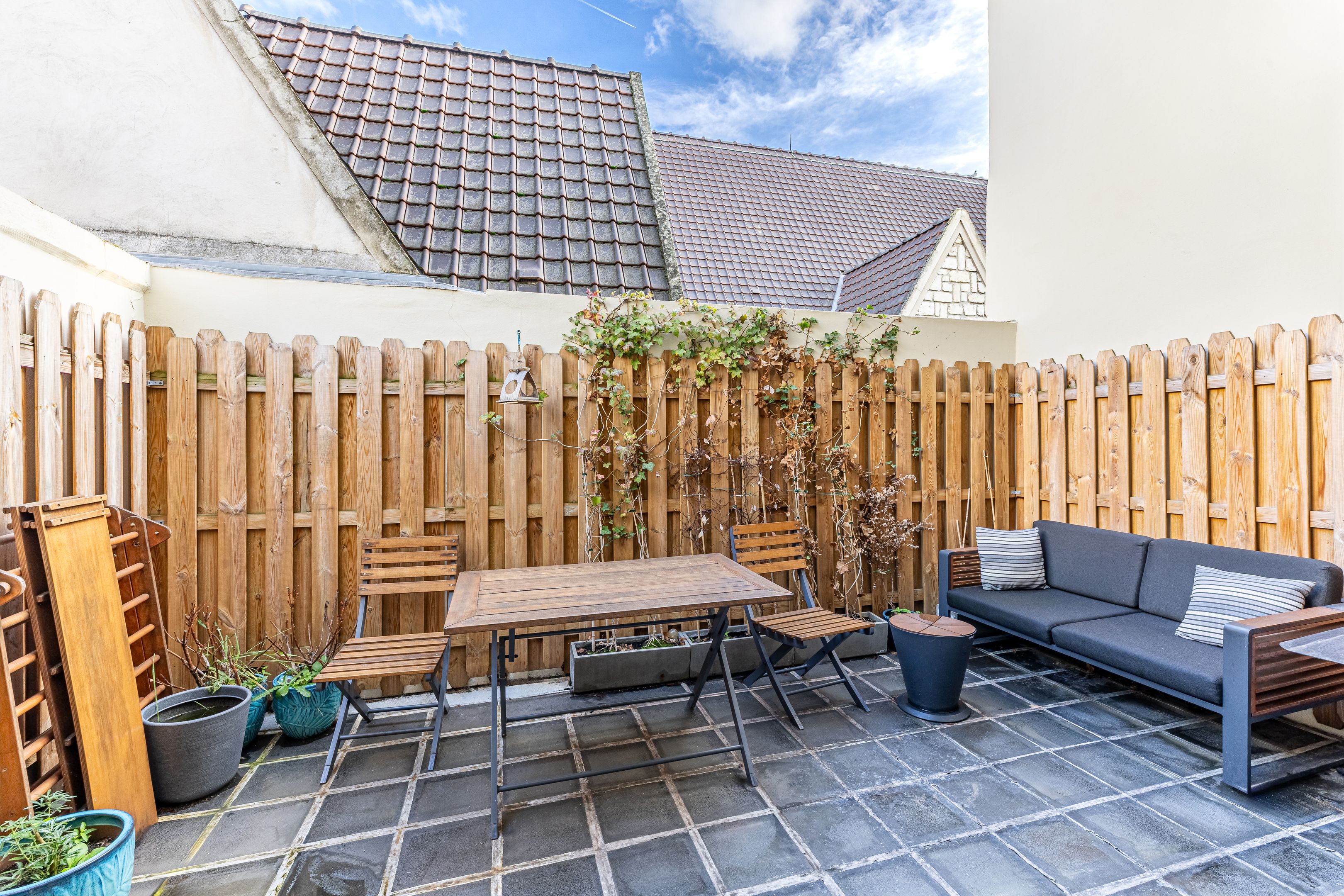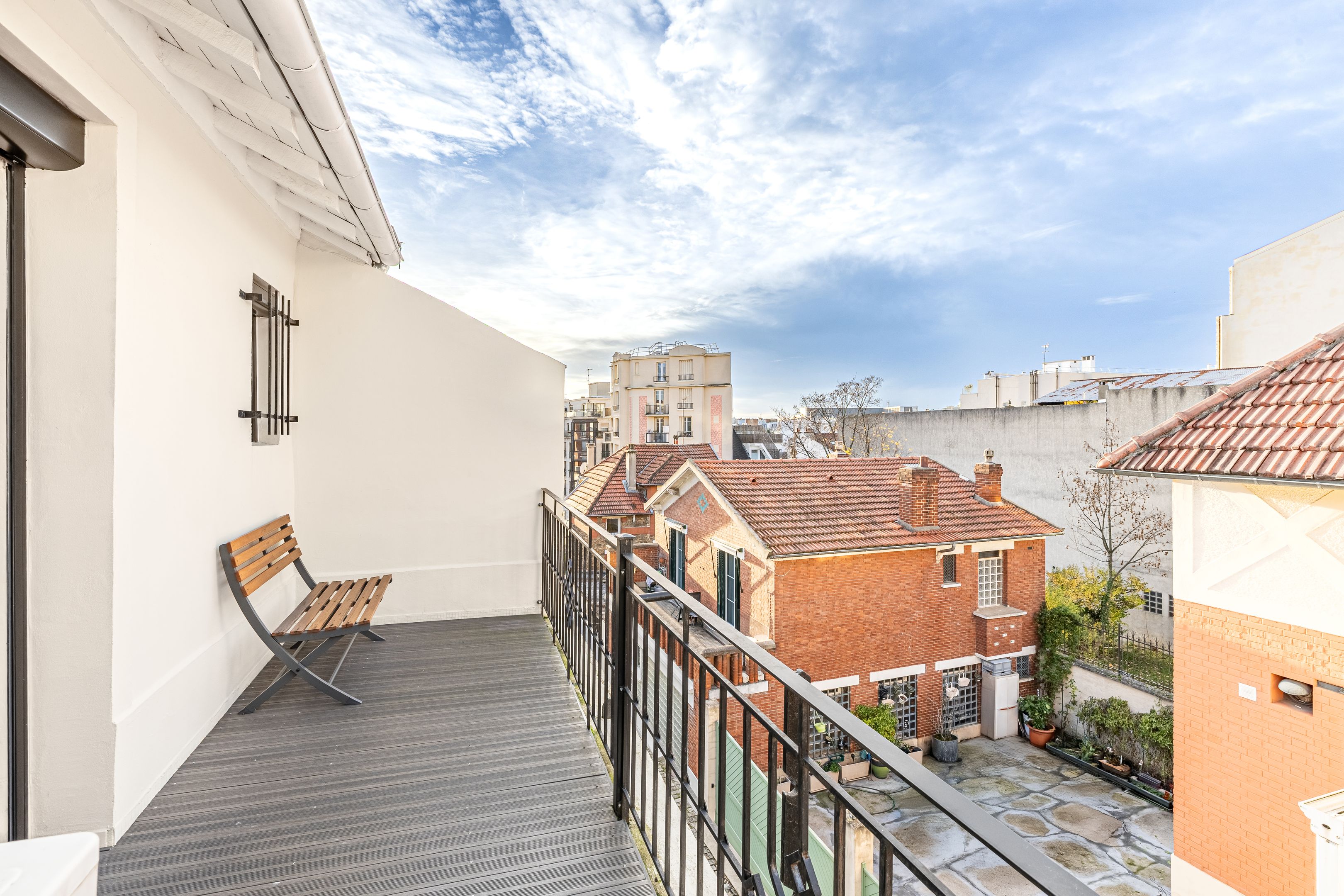 Close to Place Gambetta, shops and transport, "Campagne à Paris" is a quiet, bright, freehold family home of approx. 100 m², benefiting from pleasant outdoor spaces and quality renovation. Elevated first floor: entrance, 2 bedrooms, bathroom, separate toilet, laundry room, storage space. 1st floor: living room, open kitchen, terrace. 2nd floor: master bedroom, shower room, toilet, terrace, plenty of storage space.