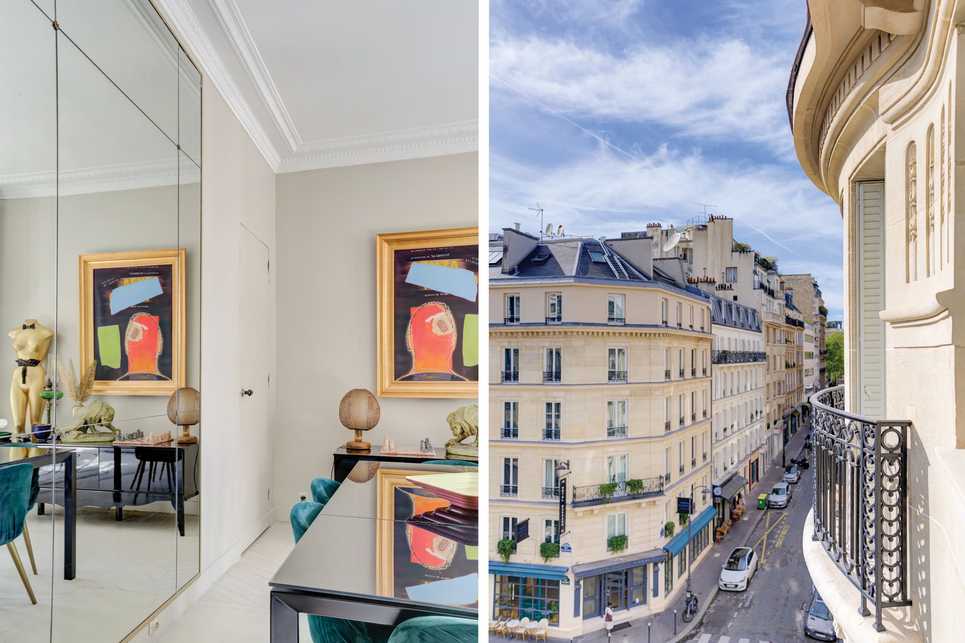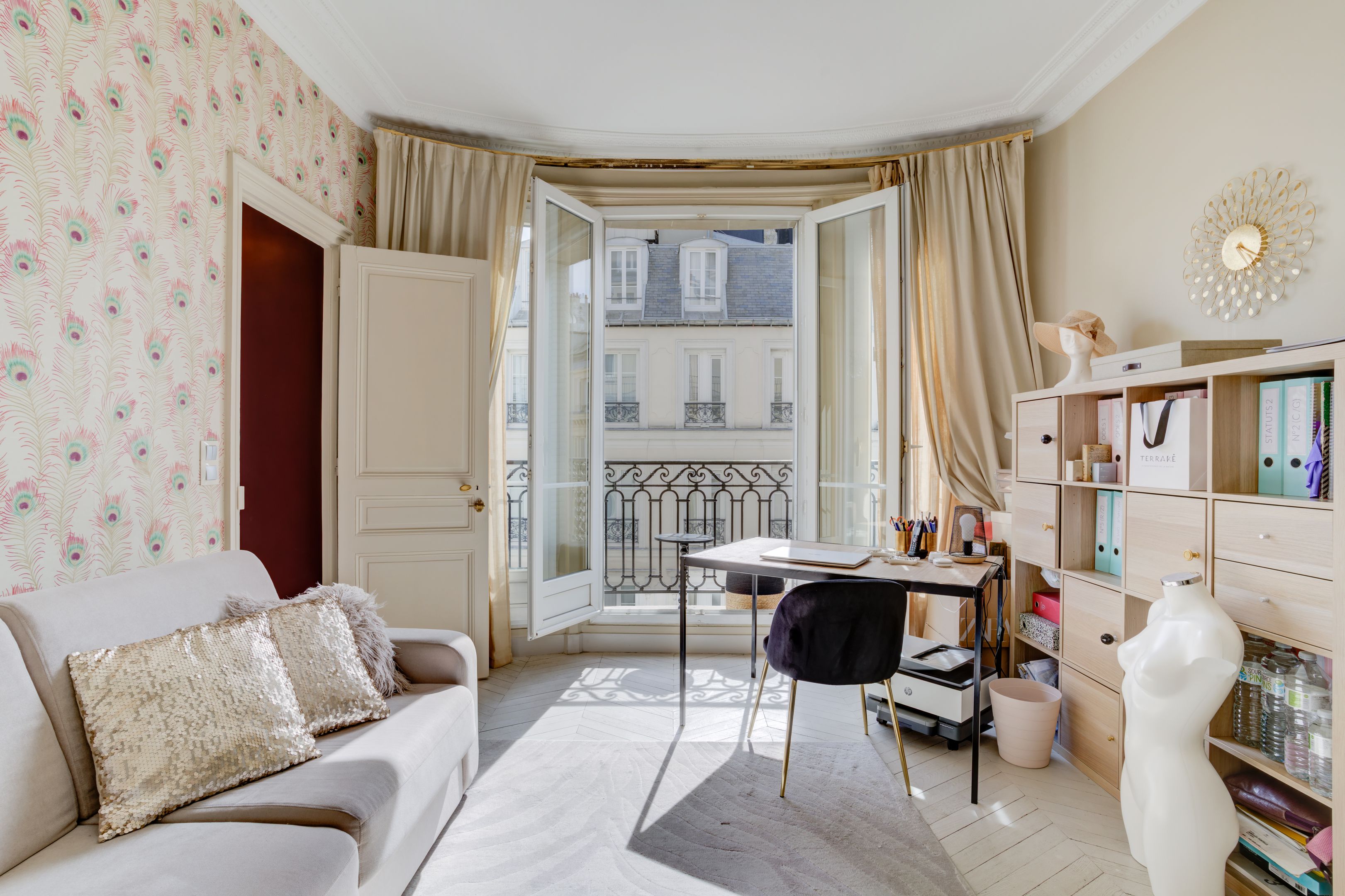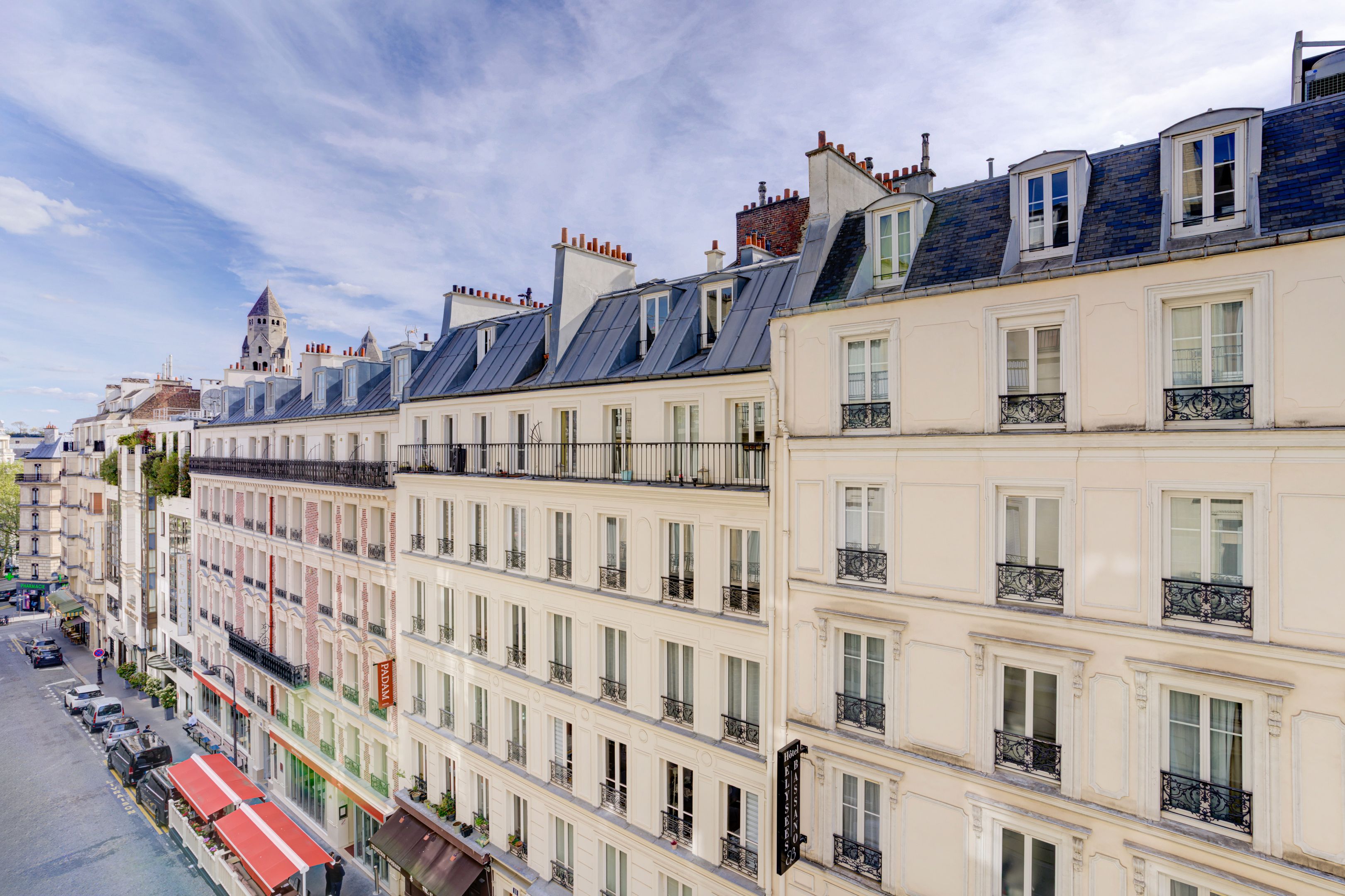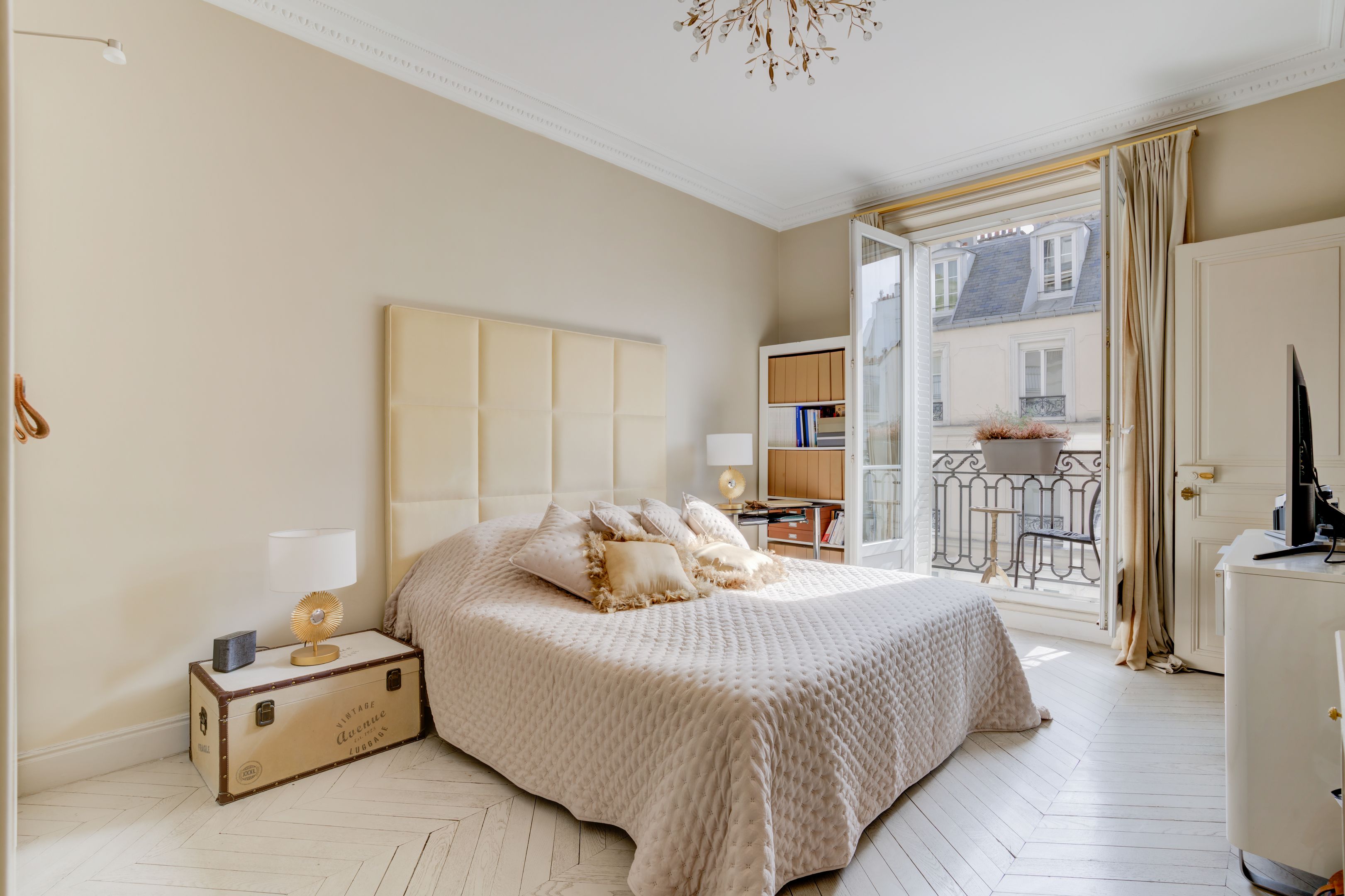 Ideally located between avenues d'Iéna and Marceau, in a quiet street just a stone's throw from shops, on the 4th floor of an elegant freestone building dating from 1890, magnificent sunny 83.06 m² apartment benefiting from the charm of the past and an optimized floor plan. Entrance hall, corner living room, separate fitted and equipped kitchen, two good-sized bedrooms, each with access to the bathroom, guest toilet, plenty of storage space, balconies. Cellar.