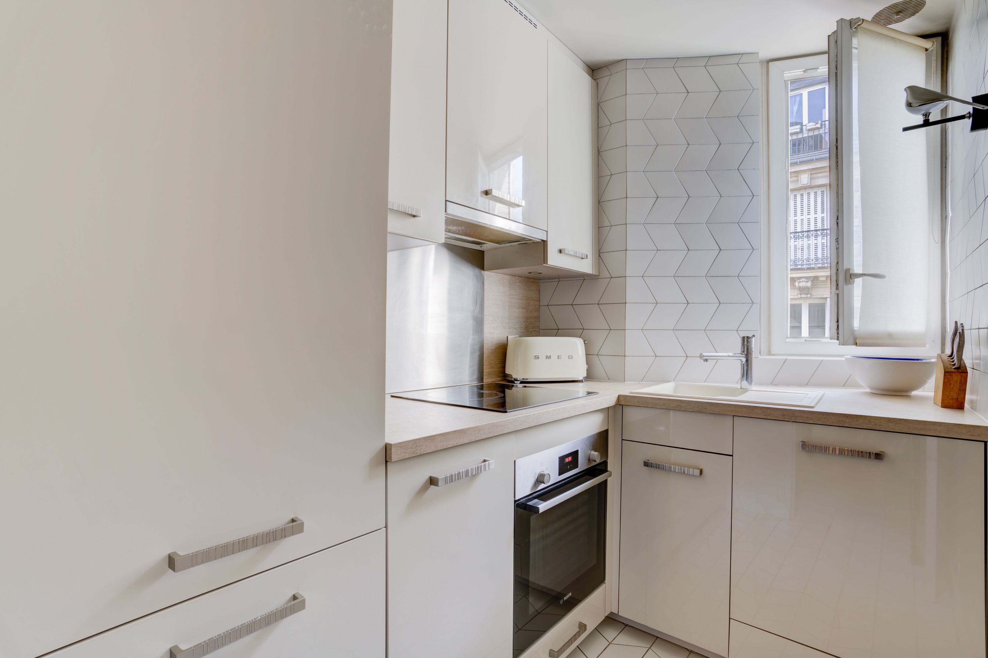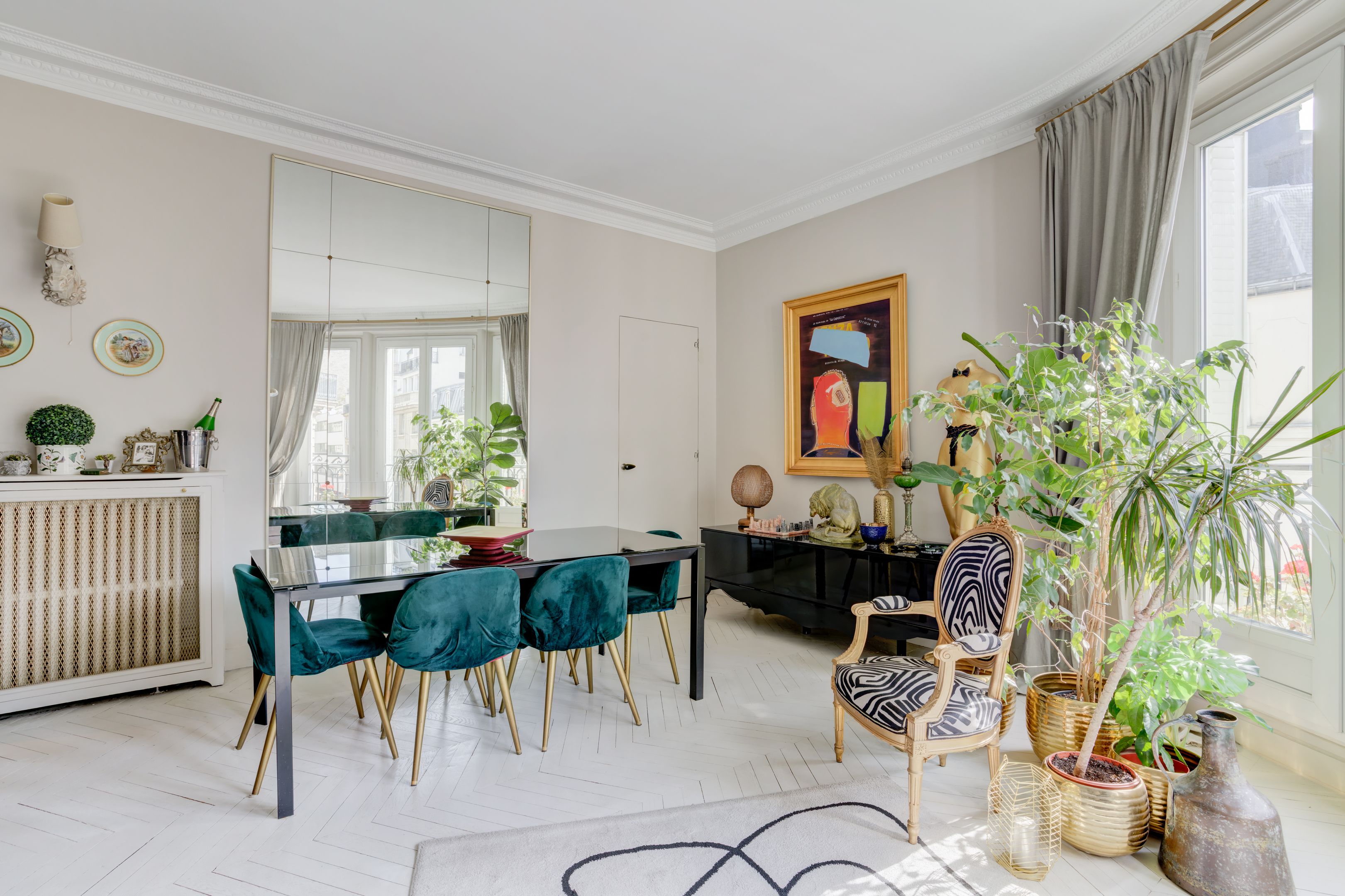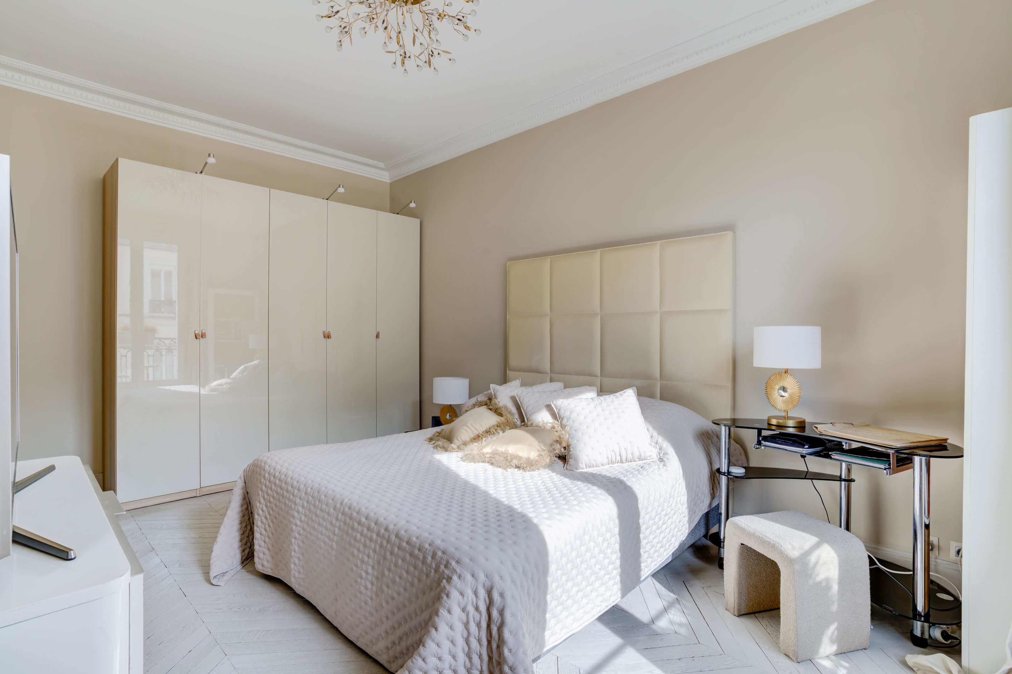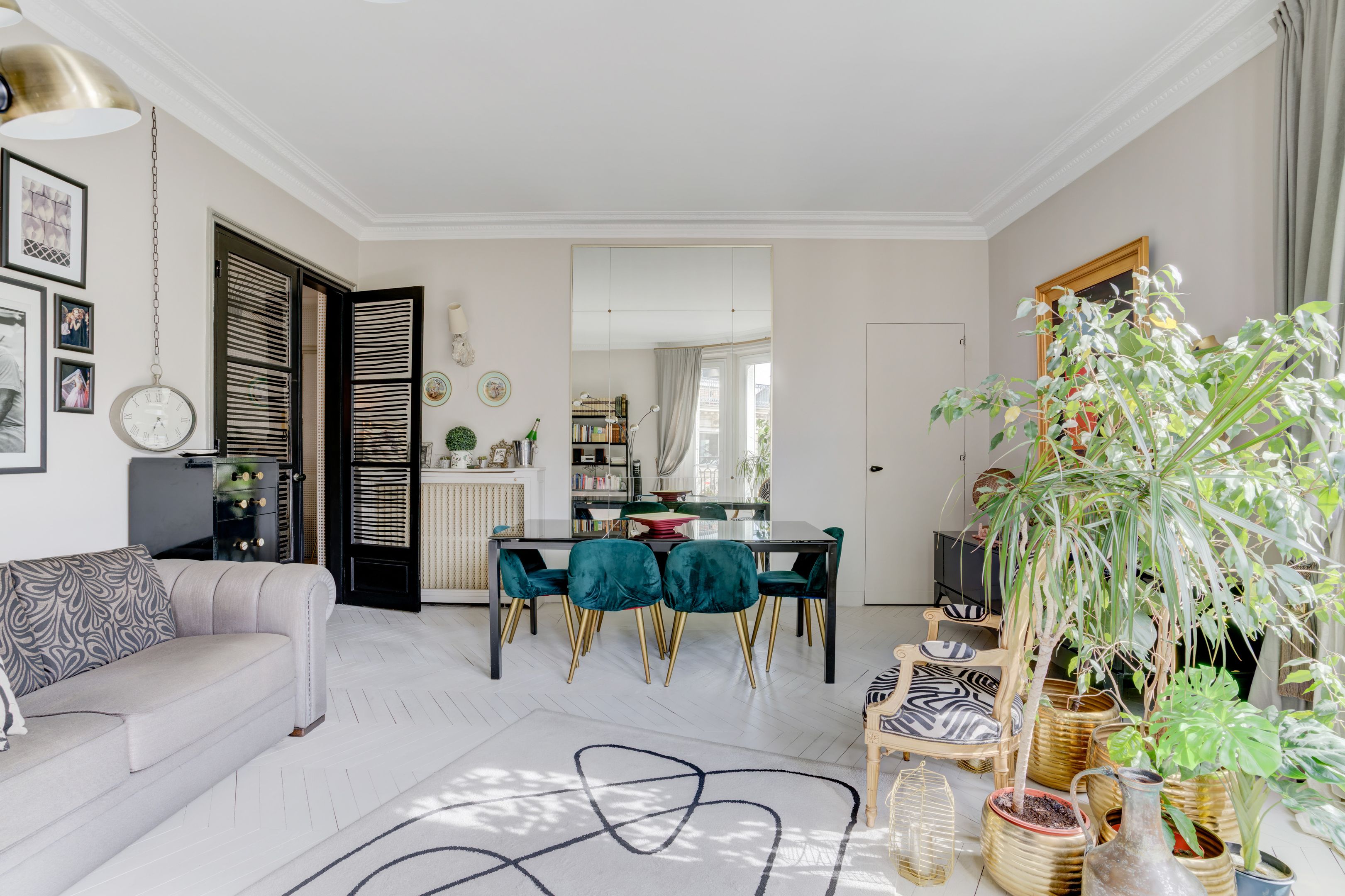 Ideally located between avenues d'Iéna and Marceau, in a quiet street just a stone's throw from shops, on the 4th floor of an elegant freestone building dating from 1890, magnificent sunny 83.06 m² apartment benefiting from the charm of the past and an optimized floor plan. Entrance hall, corner living room, separate fitted and equipped kitchen, two good-sized bedrooms, each with access to the bathroom, guest toilet, plenty of storage space, balconies. Cellar.