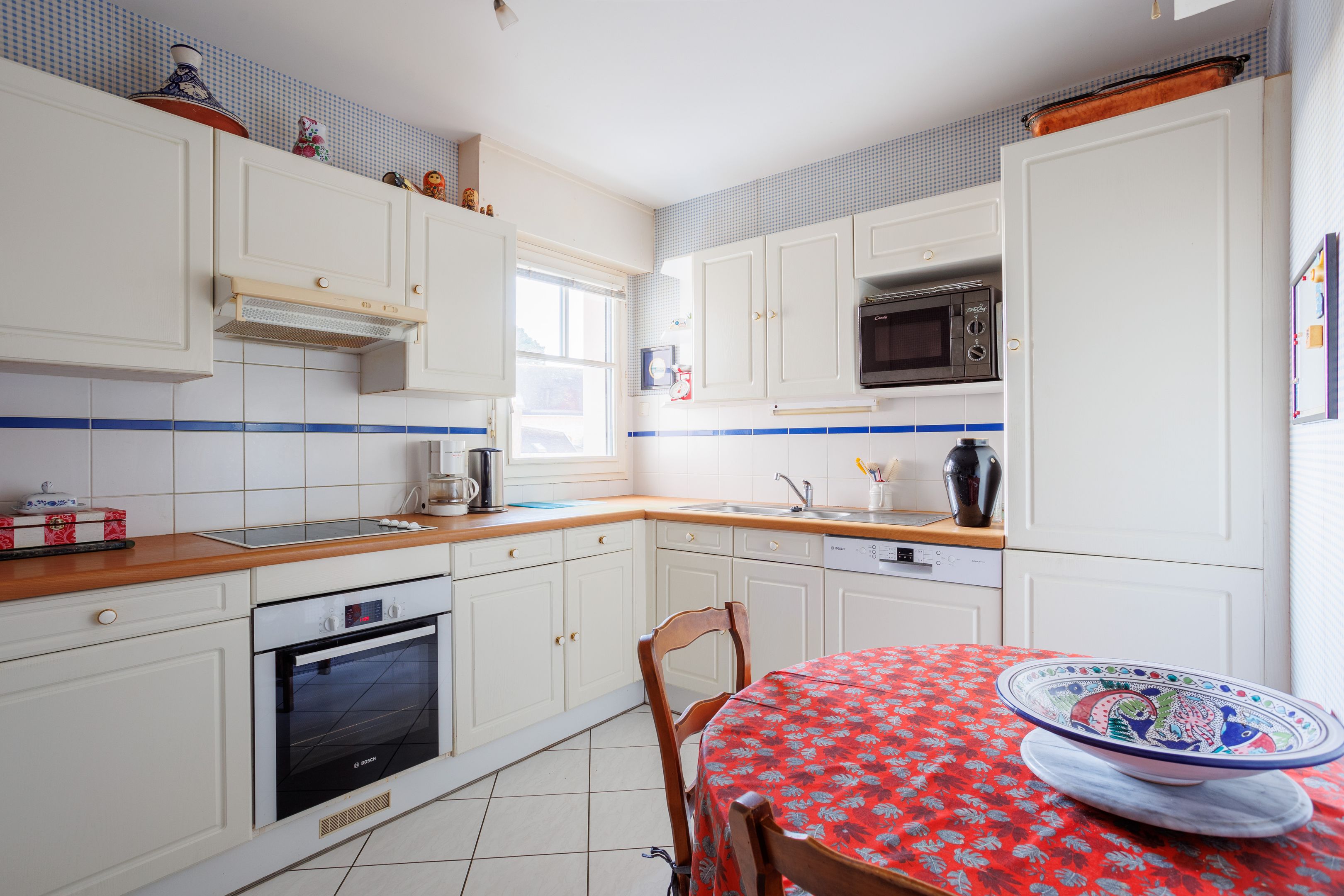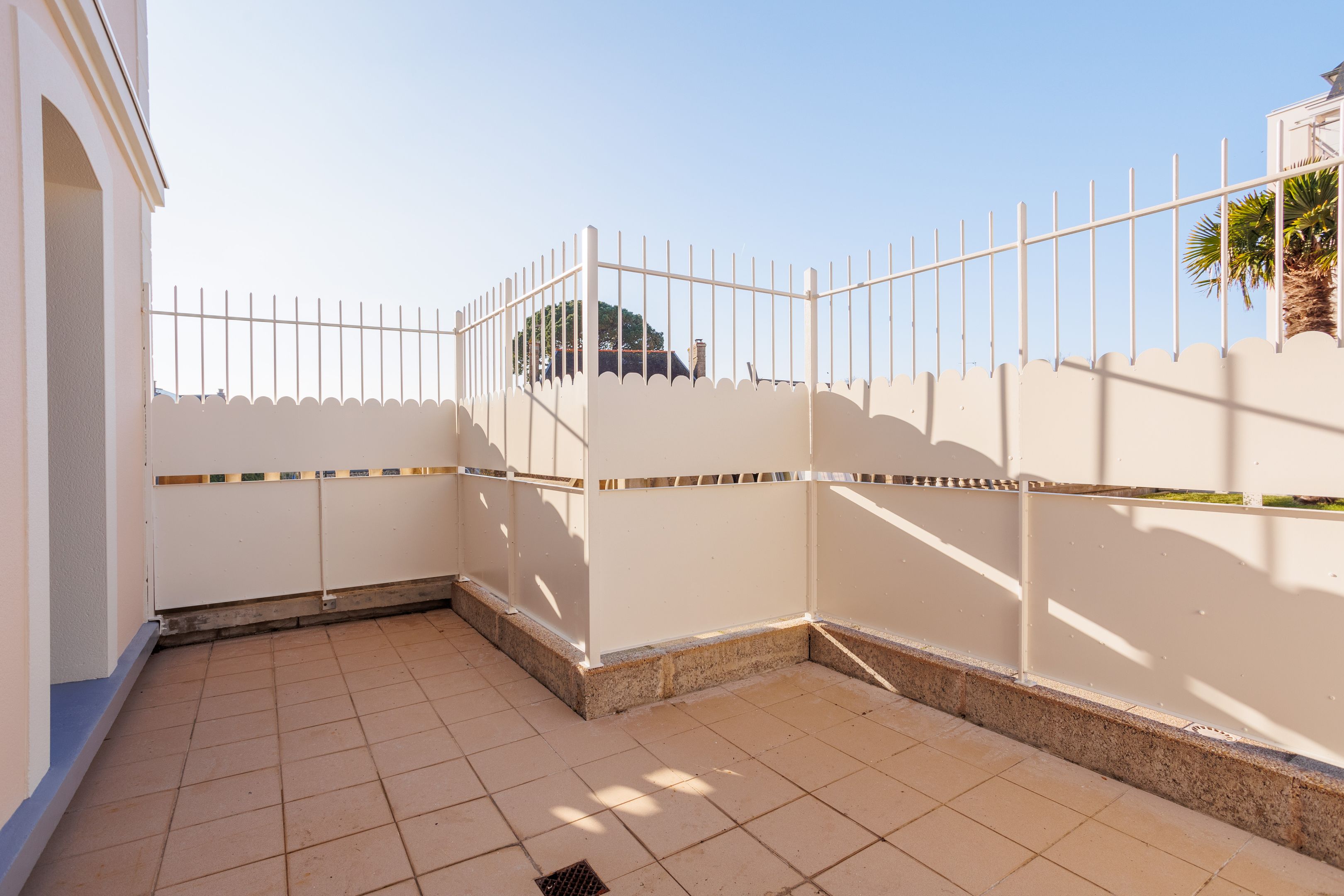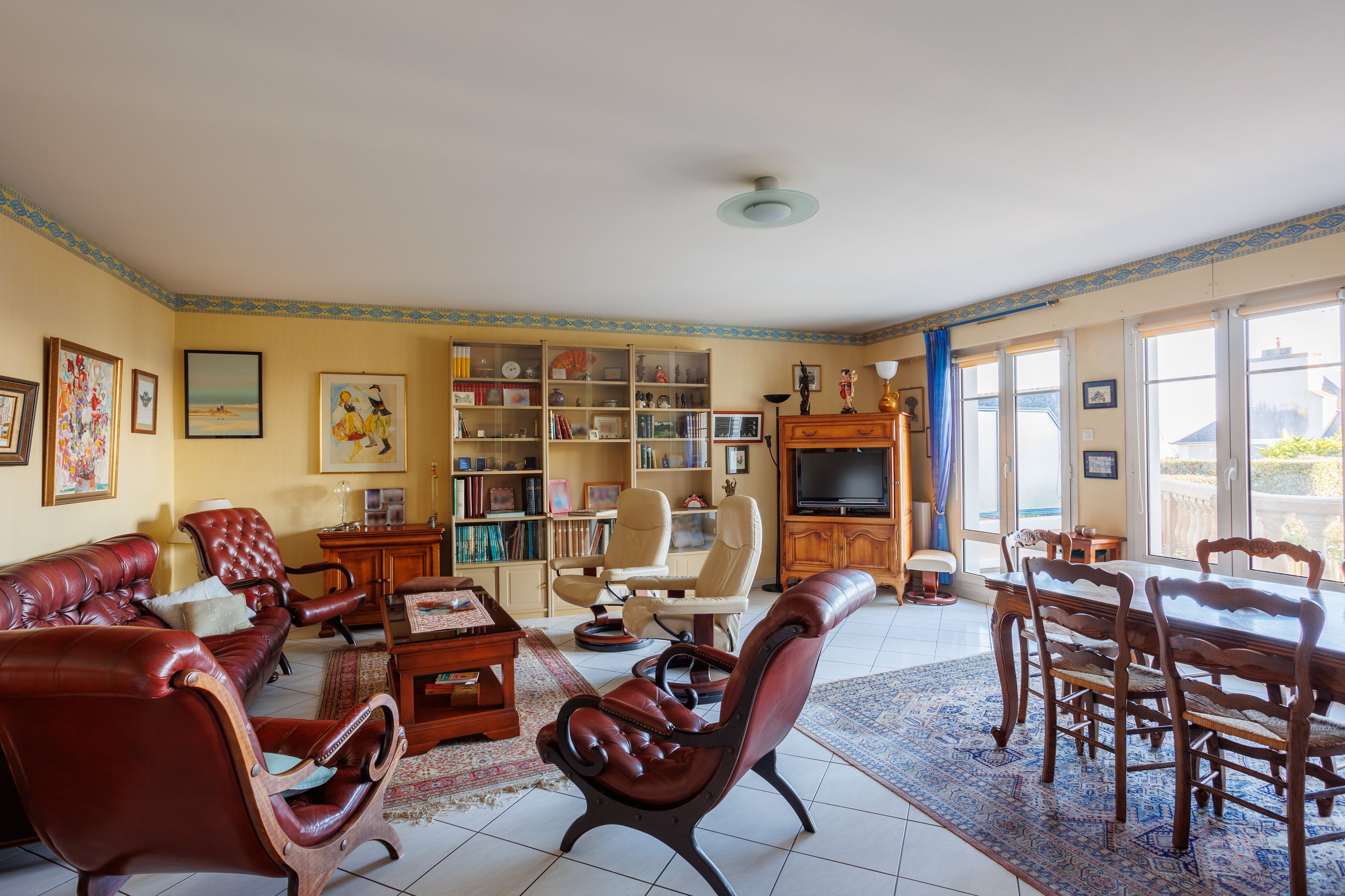 Résidence "Les Jardins du Tennis Club" - In the heart of Dinard, close to shops, beach and marina, in a quiet, well-kept residence. Very pleasant 115m² apartment benefiting from a sought-after location, excellent layout and pleasant exteriors. Entrance hall, large living room offering a sea view extended by a balcony, dining kitchen, large master suite, two other bedrooms, one of which opens onto a west-facing terrace, bathroom, separate toilet. 3㎥ cellar. Two indoor parking spaces. Bicycle garage and tennis court for shared use. Daily janitor services.