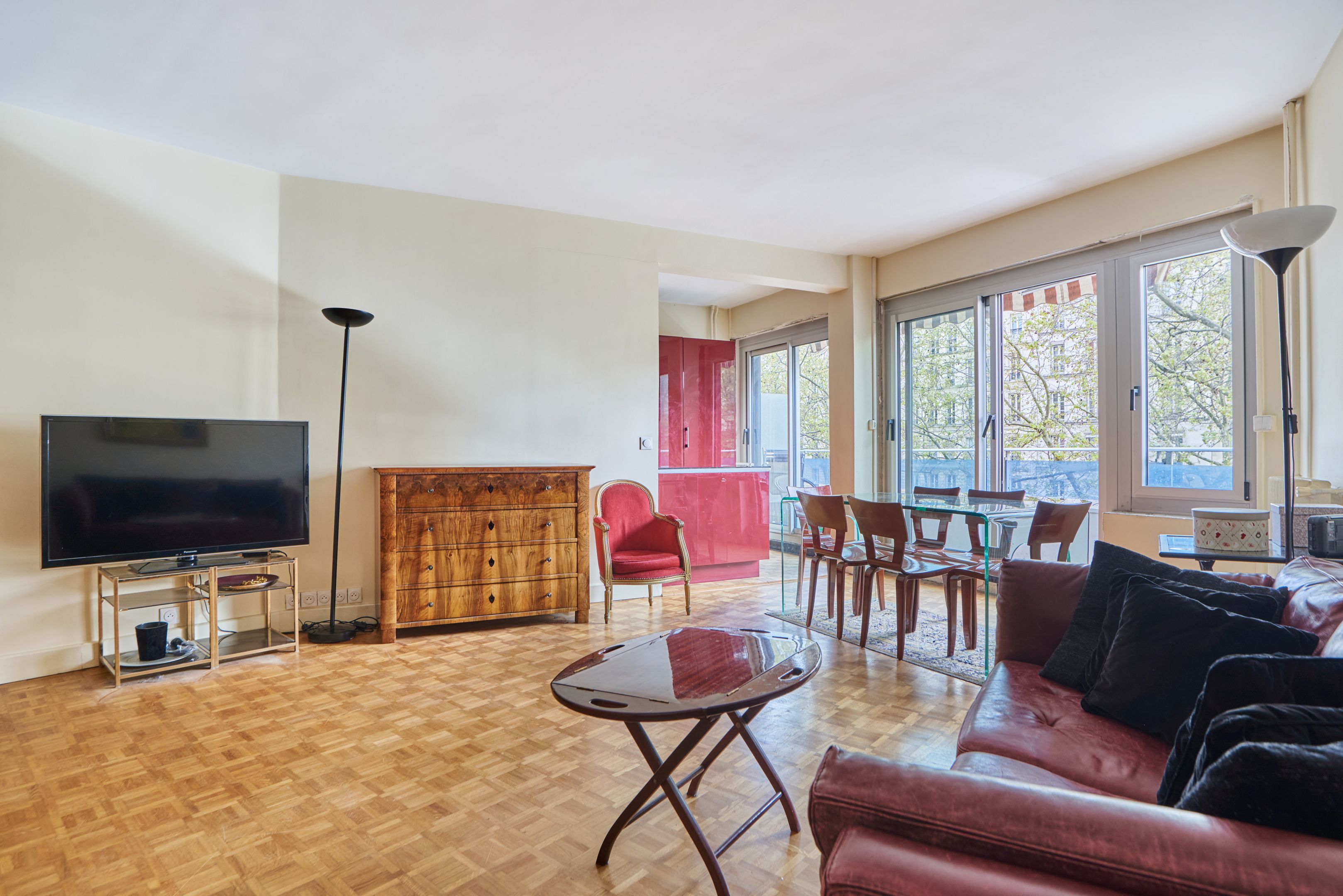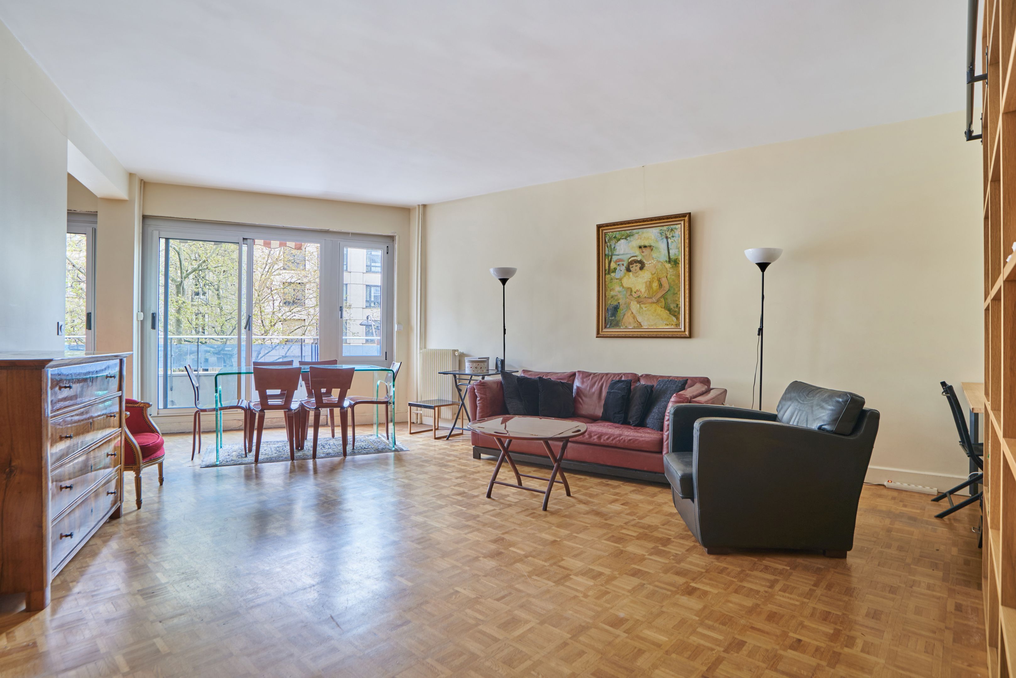 Between Duroc and Montparnasse, recent building of good standing benefiting from the services of a janitor. On 2nd floor, served by elevator, 91 m² apartment to refresh, south - south/west facing, pleasant floor plan with balconies. Entrance hall, spacious living room, semi-open kitchen opening onto sunny balcony, two bedrooms with balcony overlooking garden, large shower room, laundry room and separate toilet. Cellar. Garage available at extra cost.
