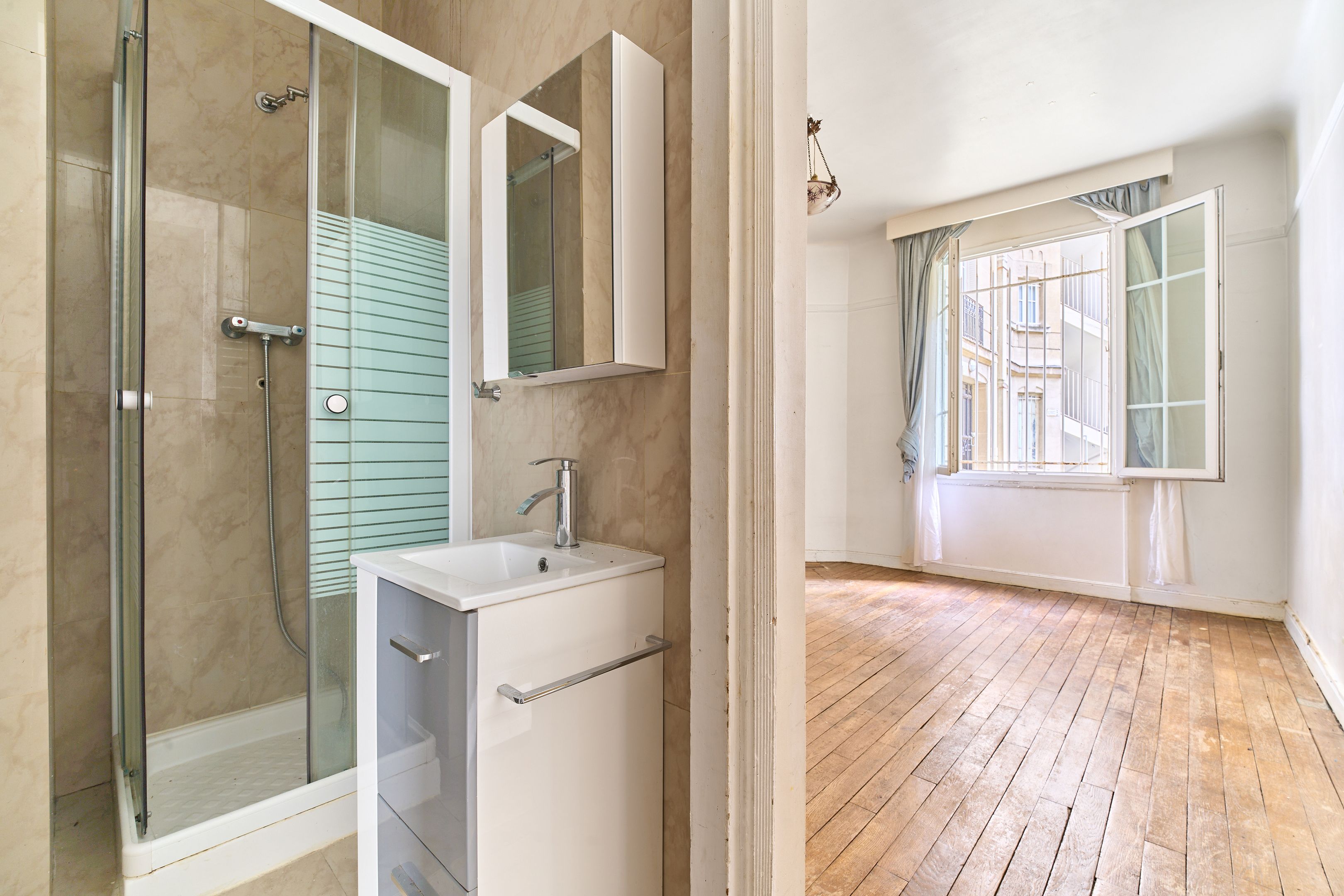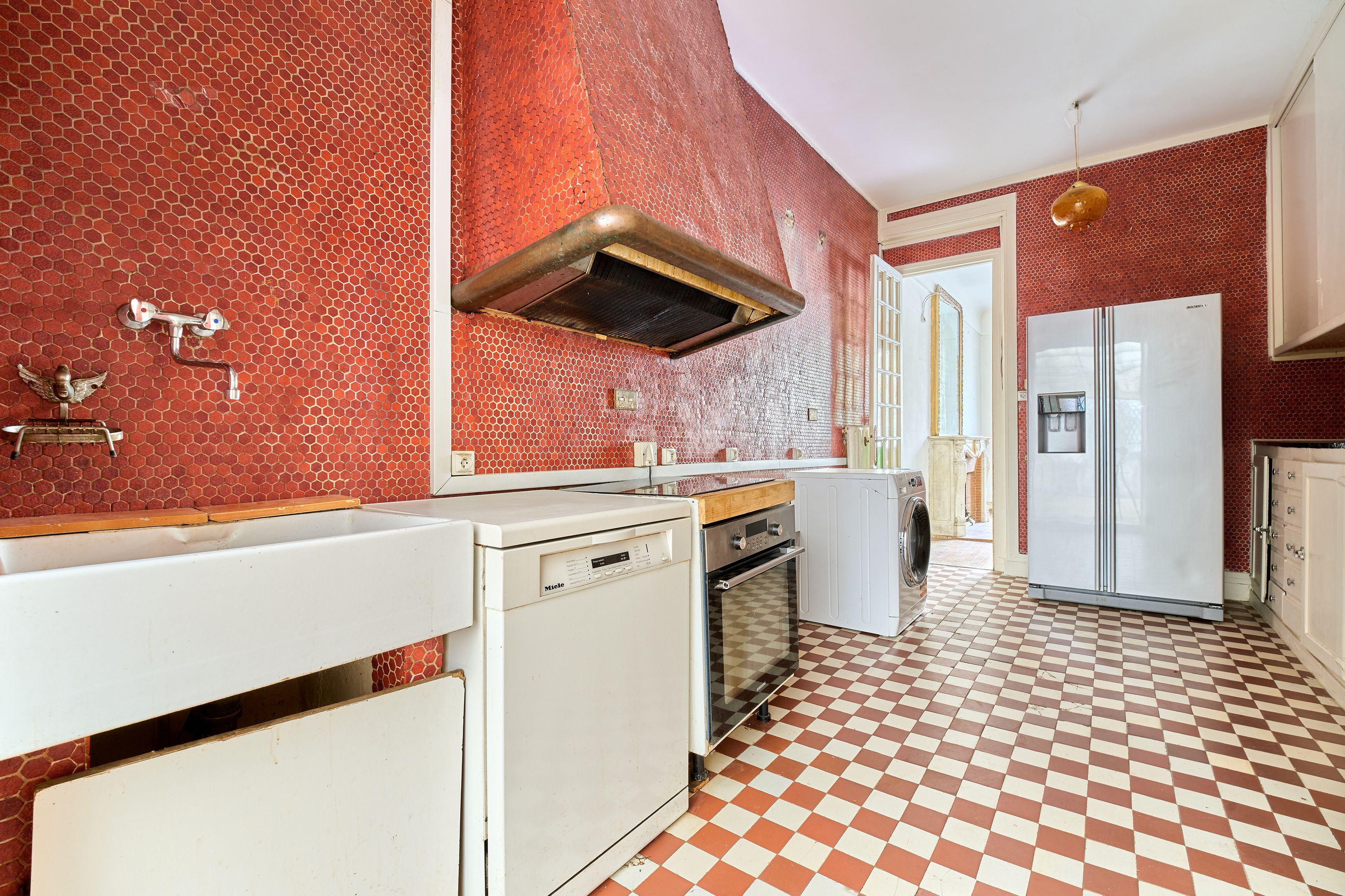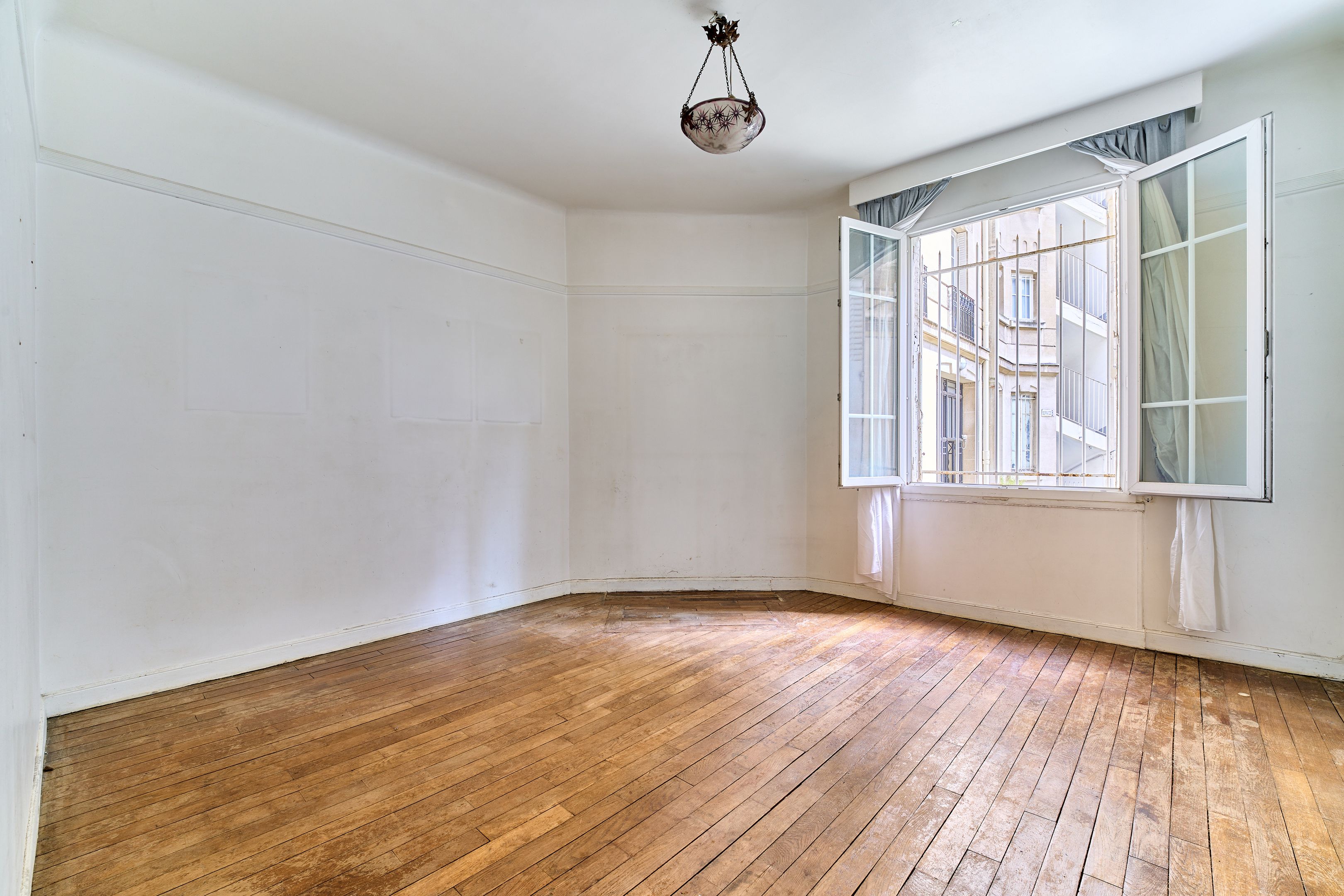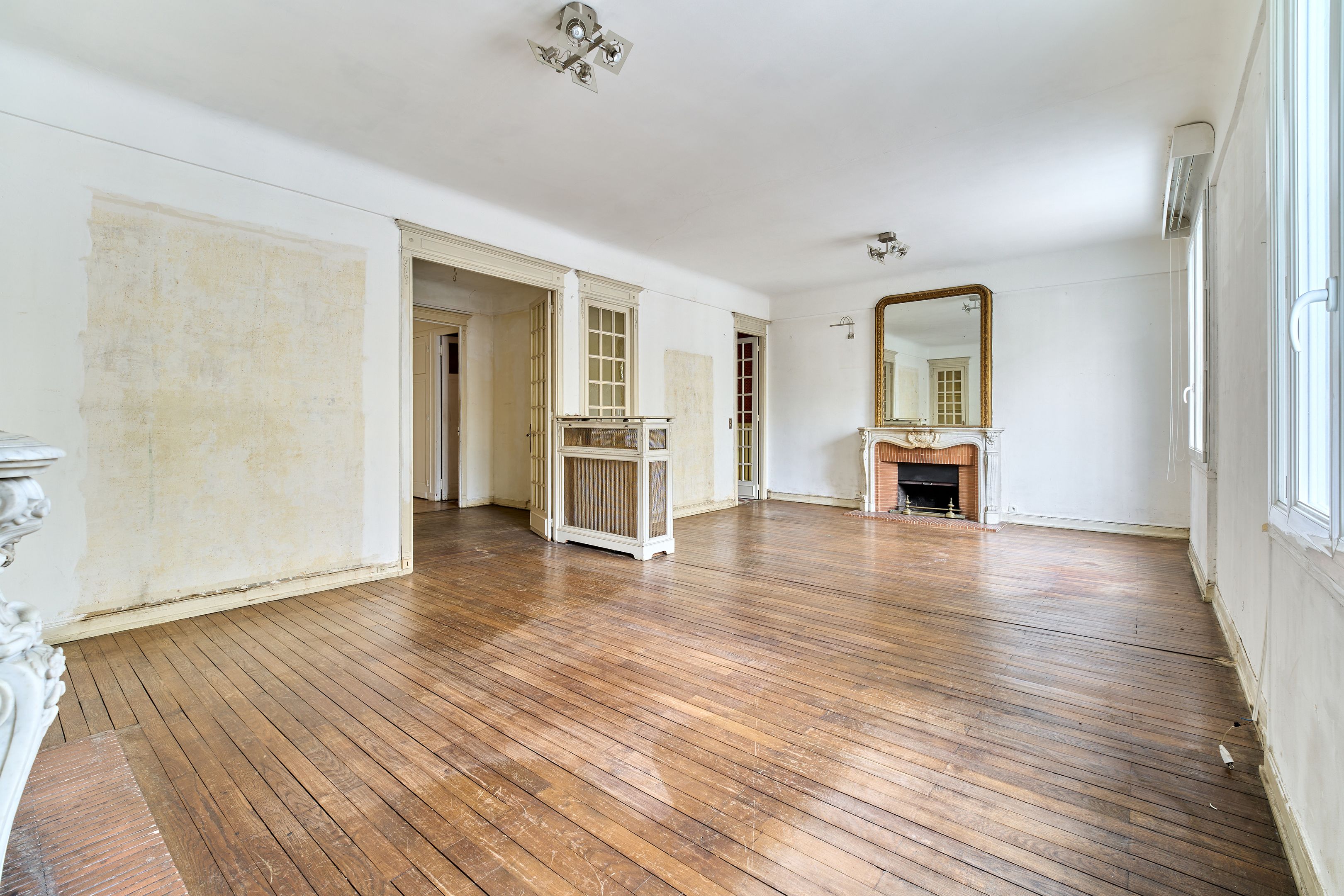 Exelmans.30's luxury building close to all amenities. On the first floor, 112m² apartment to renovate with compact floor plan and spacious rooms. Entrance hall, double reception room, independent kitchen with access to a veranda that can be used as a dining room, 8m² courtyard, two bedrooms, one with shower room, dressing room, storage space, bathroom, separate toilet.Cellar. Liberal profession authorized.