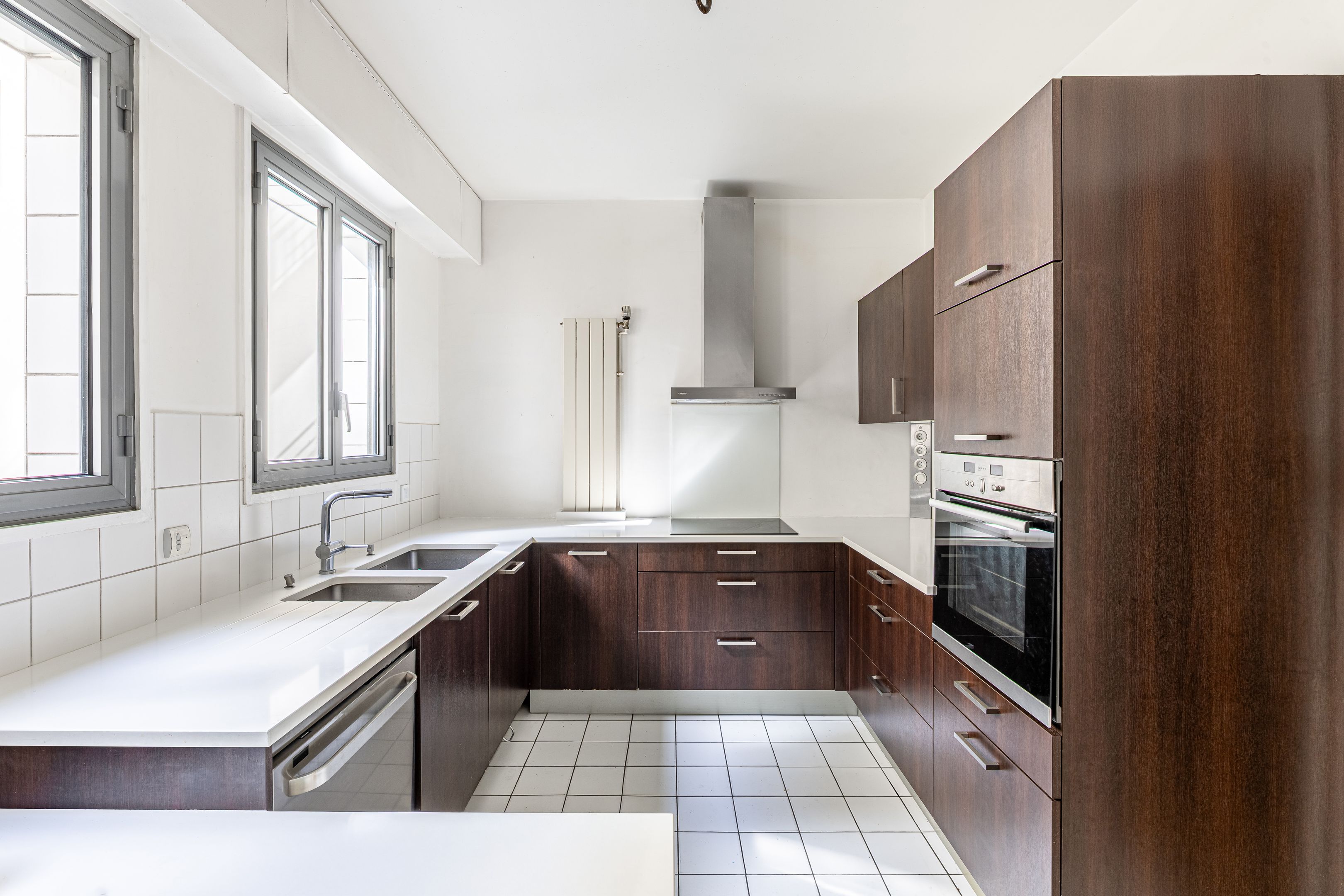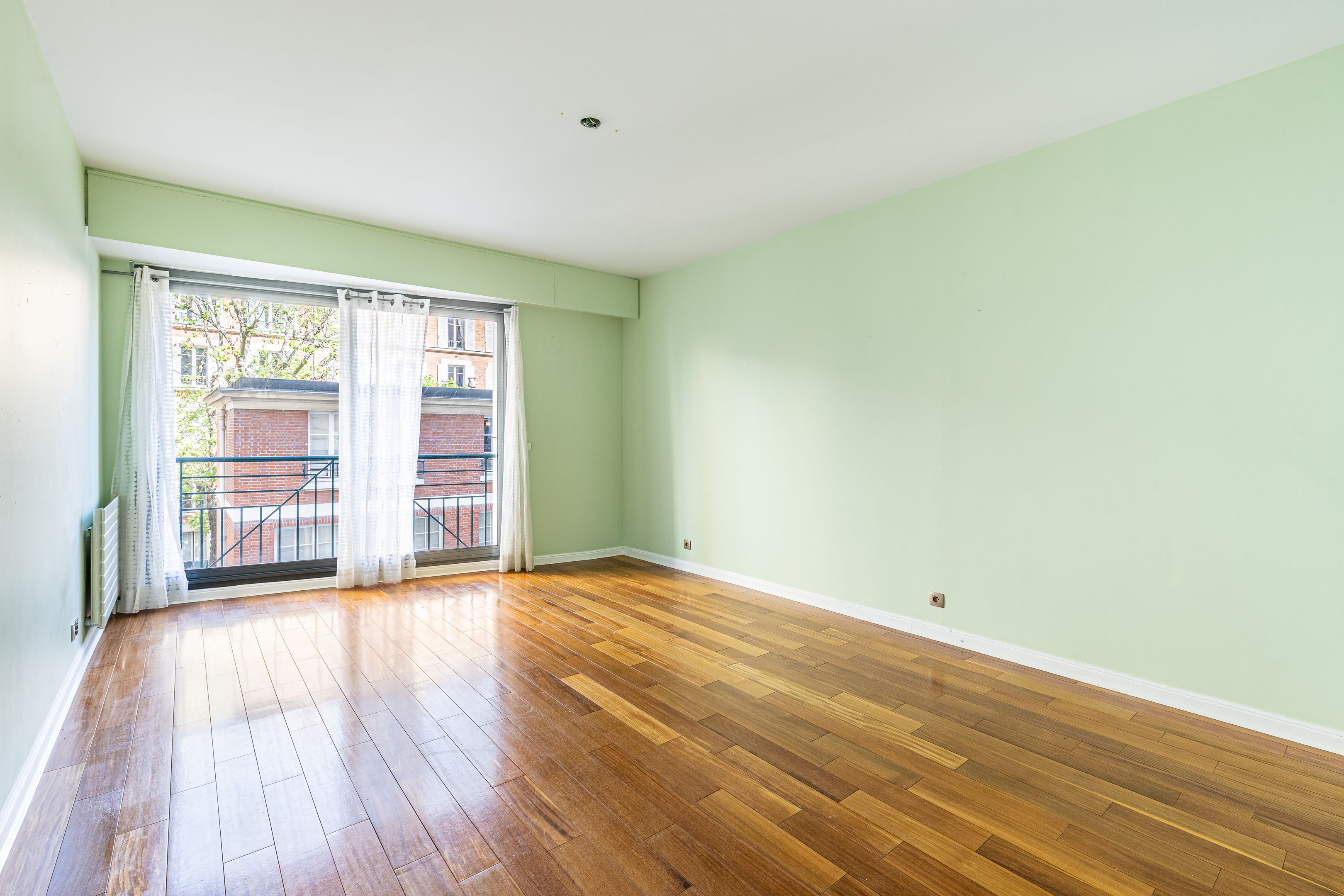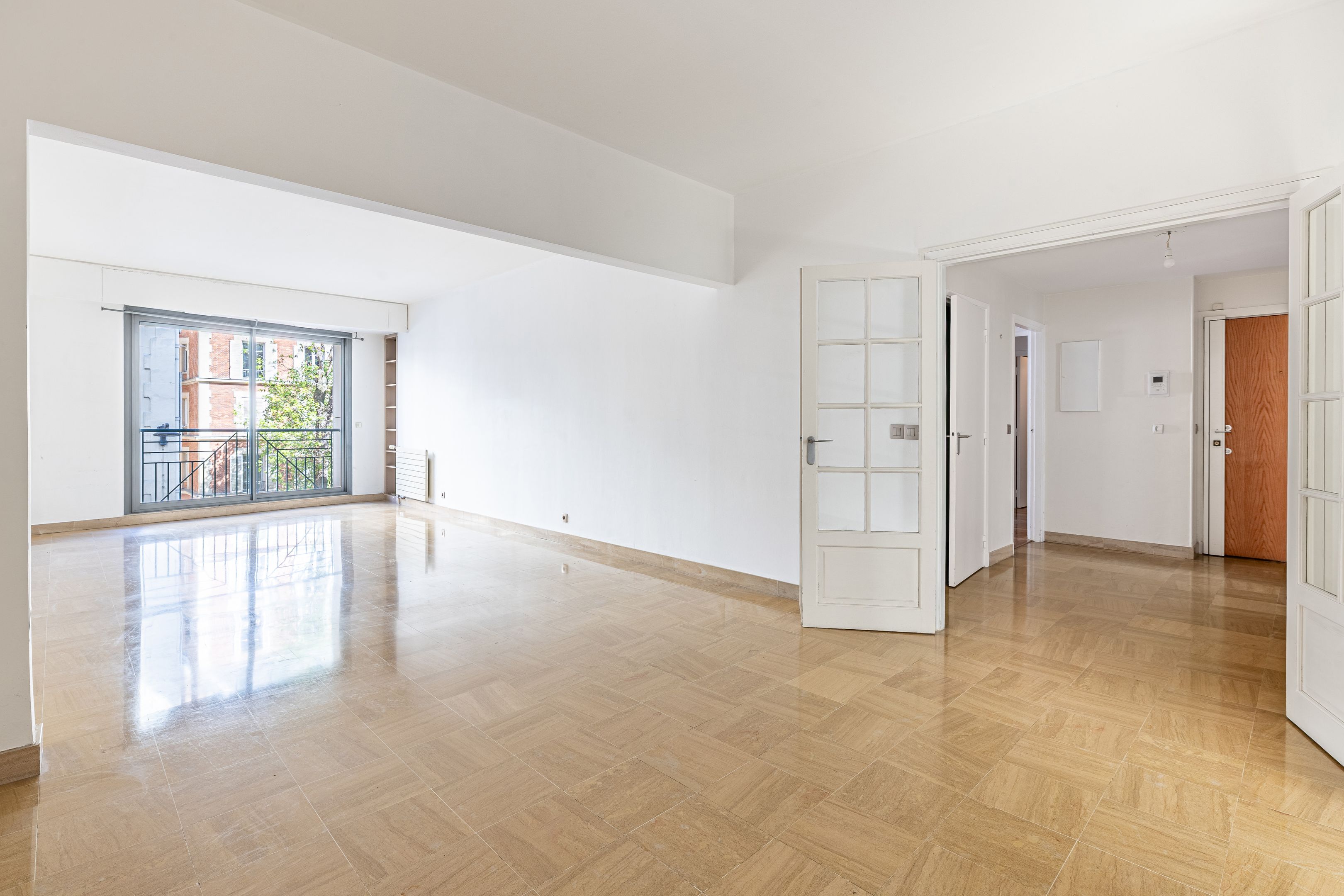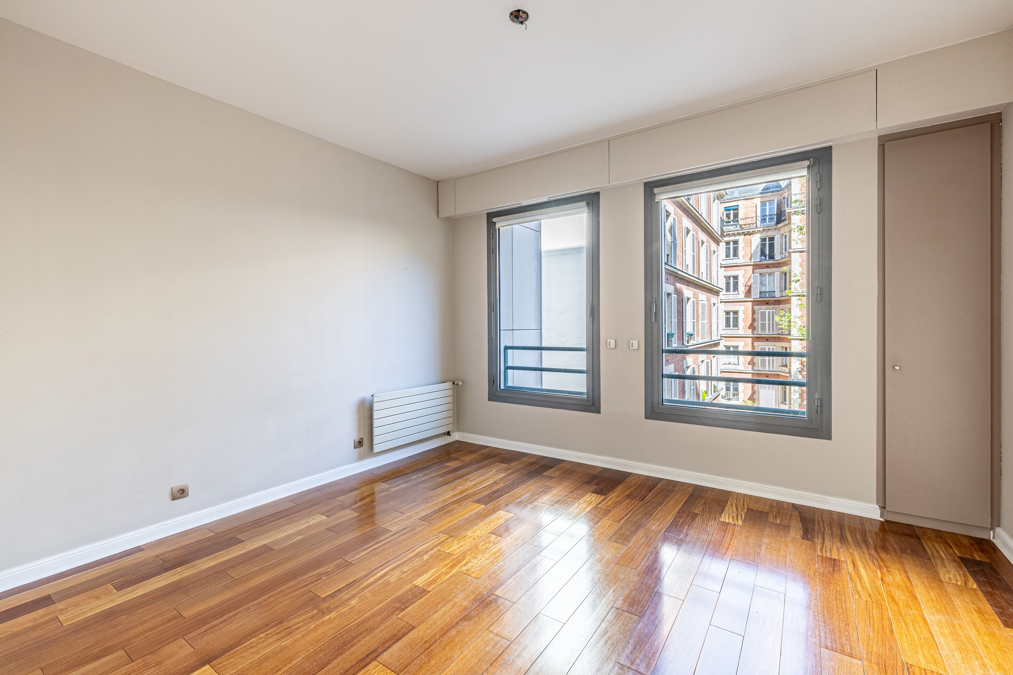 Modern building with well-maintained common areas, ideally located near the banks of the Seine and the Champ de Mars. A 127 m² apartment on the 2nd floor, served by elevator (only on the landing), with high ceilings and a space-saving layout. Entrance hall, large living room, separate kitchen, three bedrooms, bathroom with toilet, shower room, separate toilet. Cellar space. Possibility of acquiring a parking space in the building for €35,000.