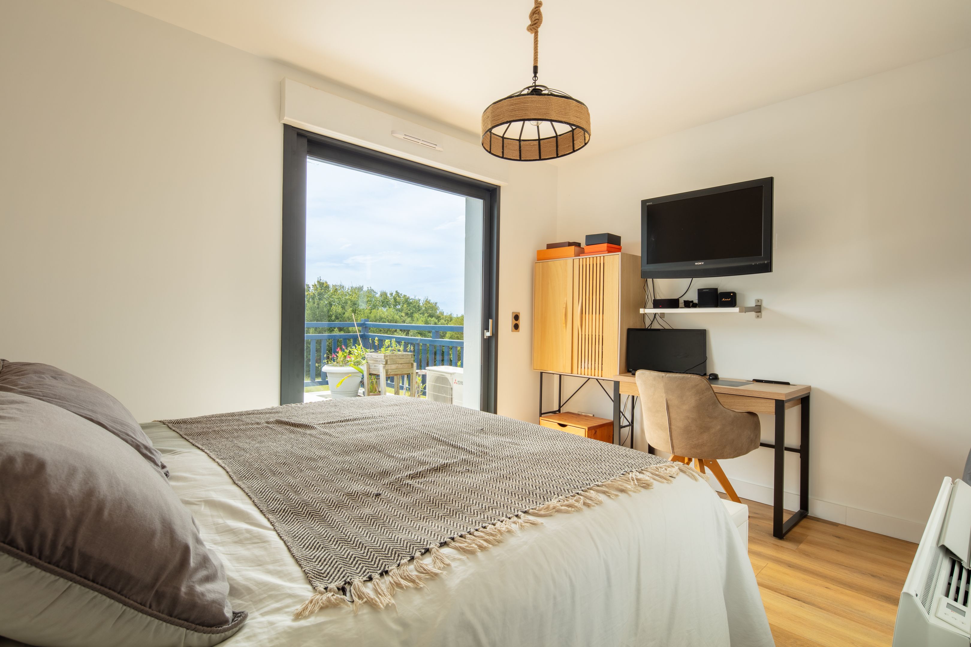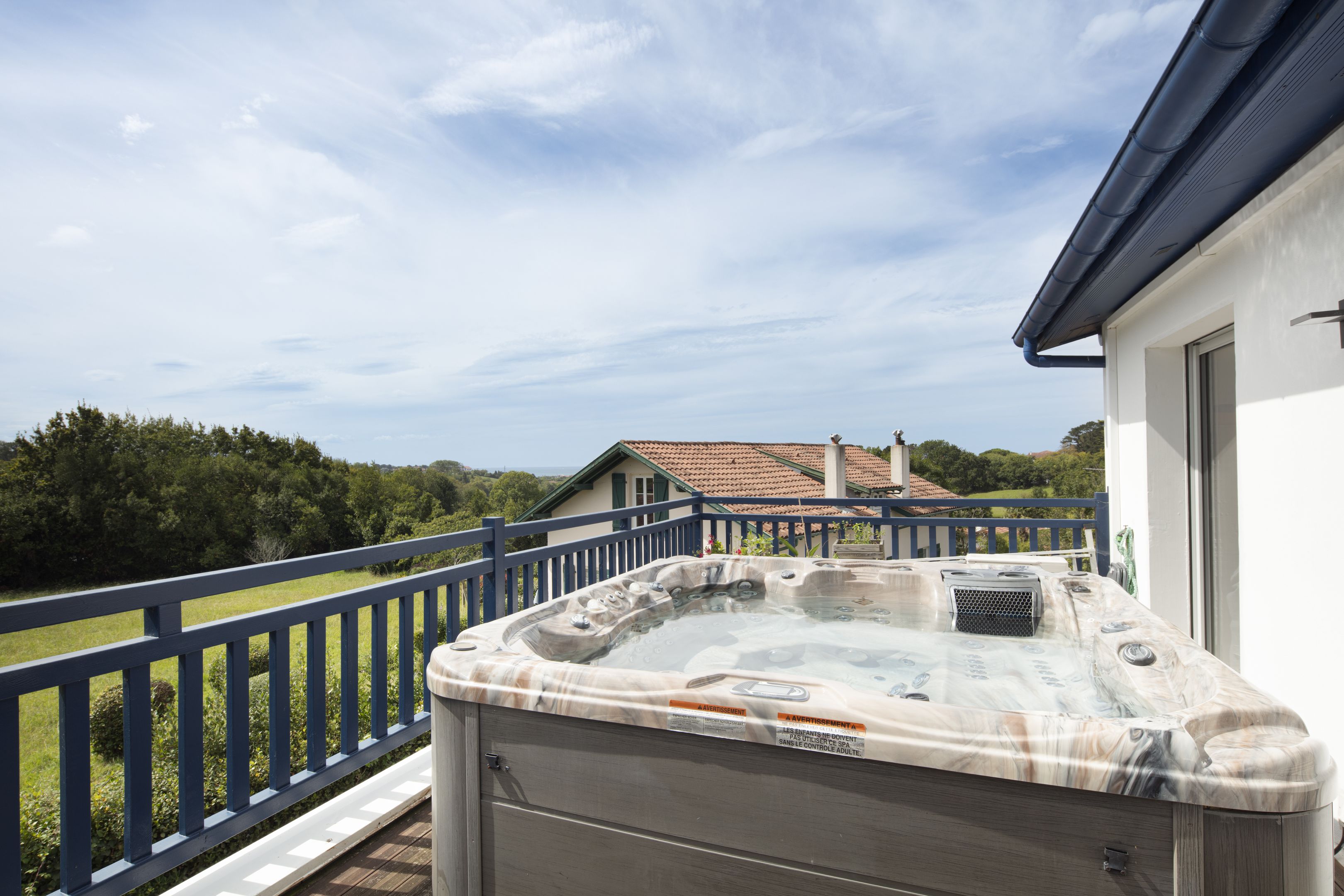Guéthary, apartment on the 1st and top floor of a 4-lot condominium. With a surface area of 133 m², it features an entrance hall, bright living room with open-plan fitted kitchen, lounge and dining room opening onto a 26 m² terrace with jacuzzi, offering unobstructed views of the ocean, the 3 Crowns and the Rhune. The night space features a 25 m² master suite with shower room and dressing room, 2 bedrooms with custom closets and bathroom. 2 parking spaces.