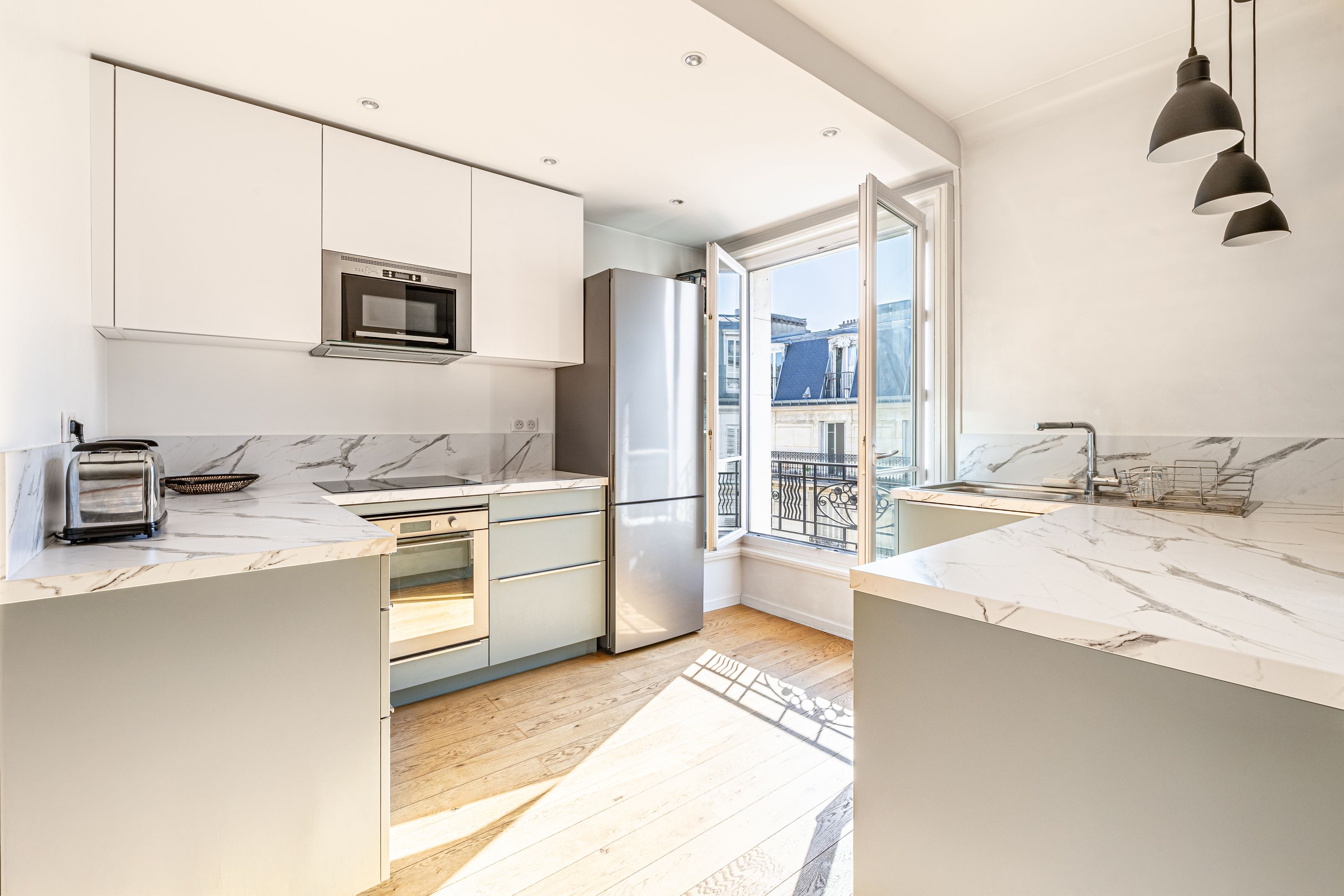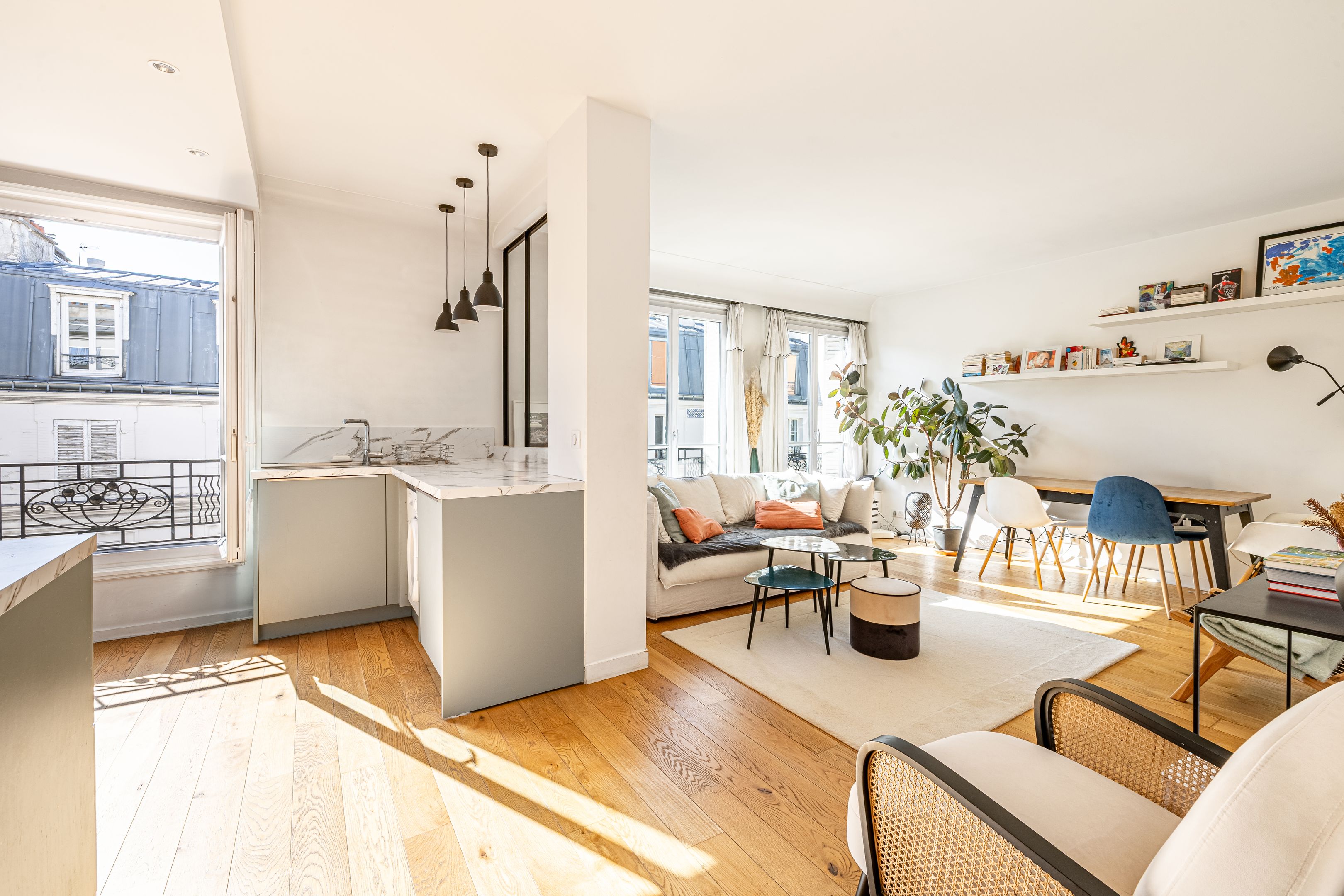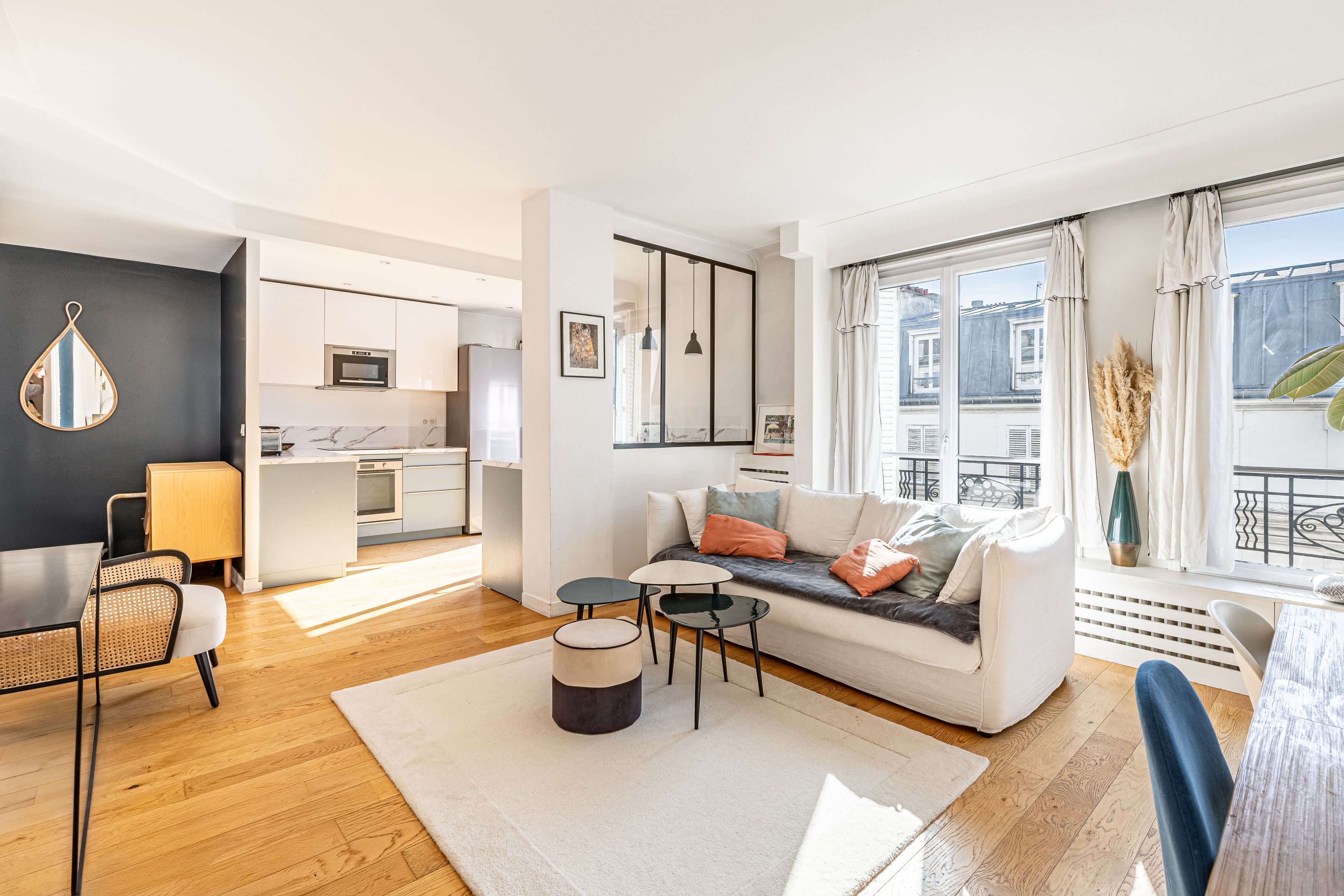 EXCLUSIVE BRETEUIL. High-quality building with well-maintained communal areas, through-plan apartment in perfect condition, 82m² (81.51m² Loi Carrez) located on the 5th floor, served by elevator, benefiting from exceptional brightness, unobstructed views and a perfectly optimized floor plan thanks to high-quality renovation work. Entrance hall, living room, semi-open kitchen separated by a workshop-style glass roof, three good-sized bedrooms including a master suite with shower room and toilet, shower room, toilet. Possibility of renting a parking space.