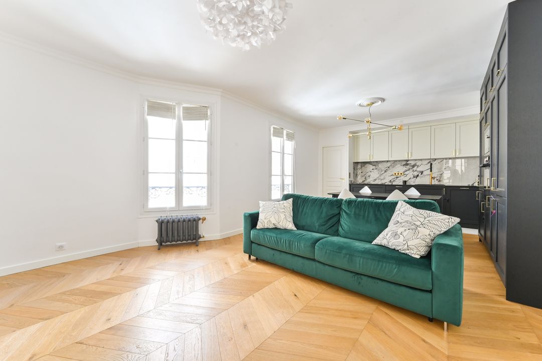 Stone building ideally located close to Villiers metro station, rue de Lévis shops and renowned schools. Renovated 76 m² Loi Carrez apartment on 1st floor overlooking courtyard, served by elevator, offering the charm of the past: parquet floors, moldings and fireplaces, in perfect condition and benefiting from an optimized floor plan. Entrance hall, living room, separate kitchen, three bedrooms (one for a child), shower room, two toilets. Cellar. Exclusive to Breteuil.