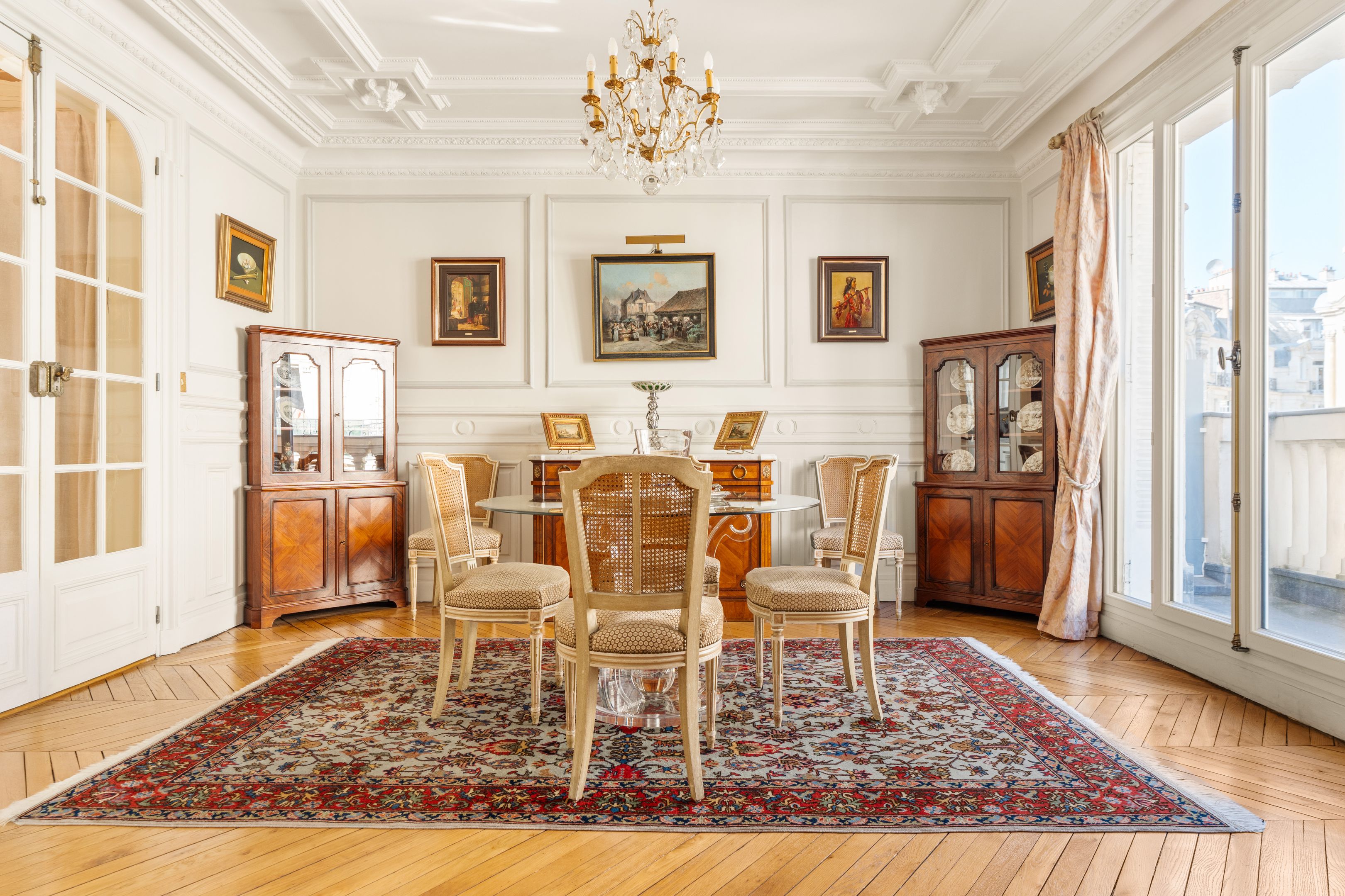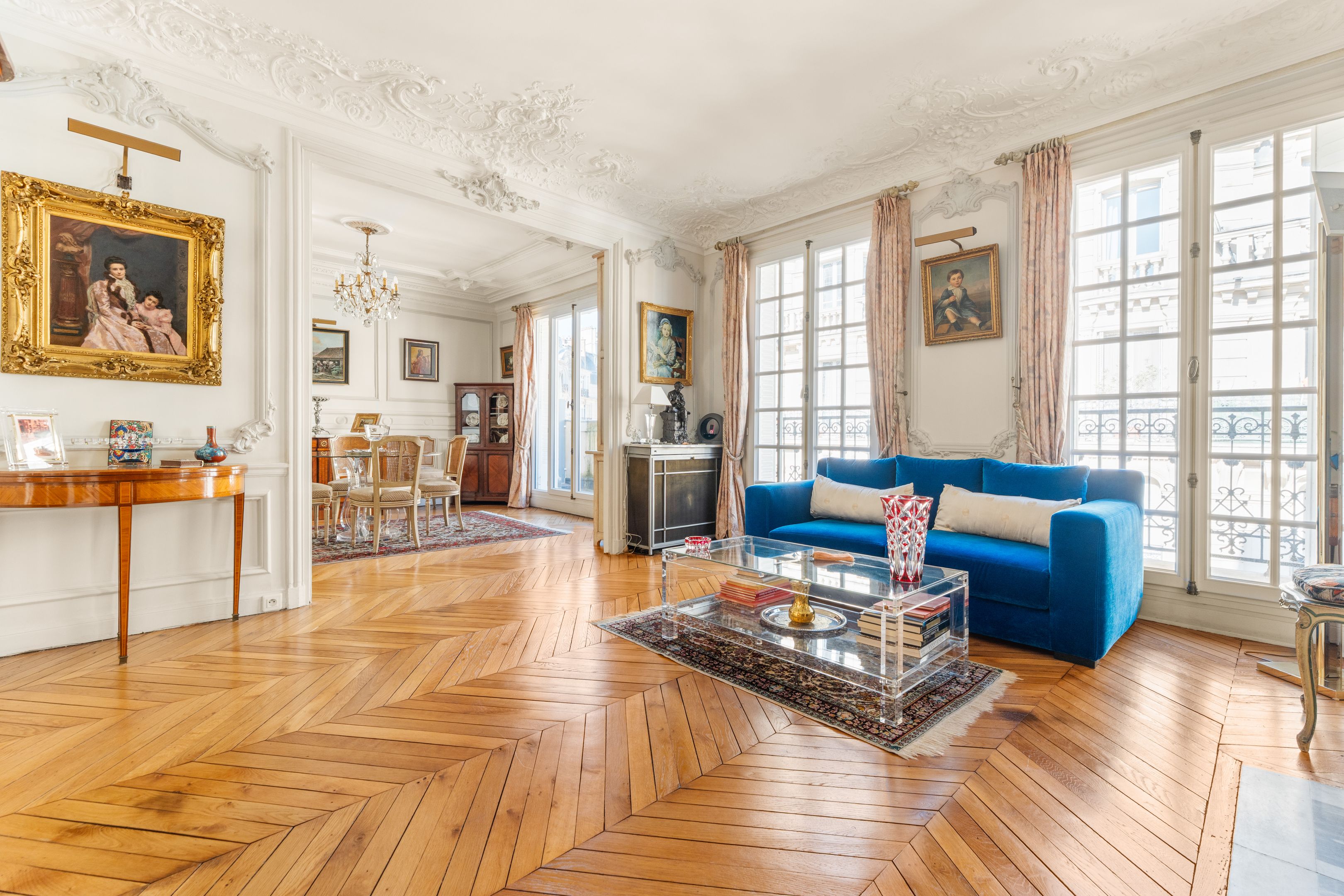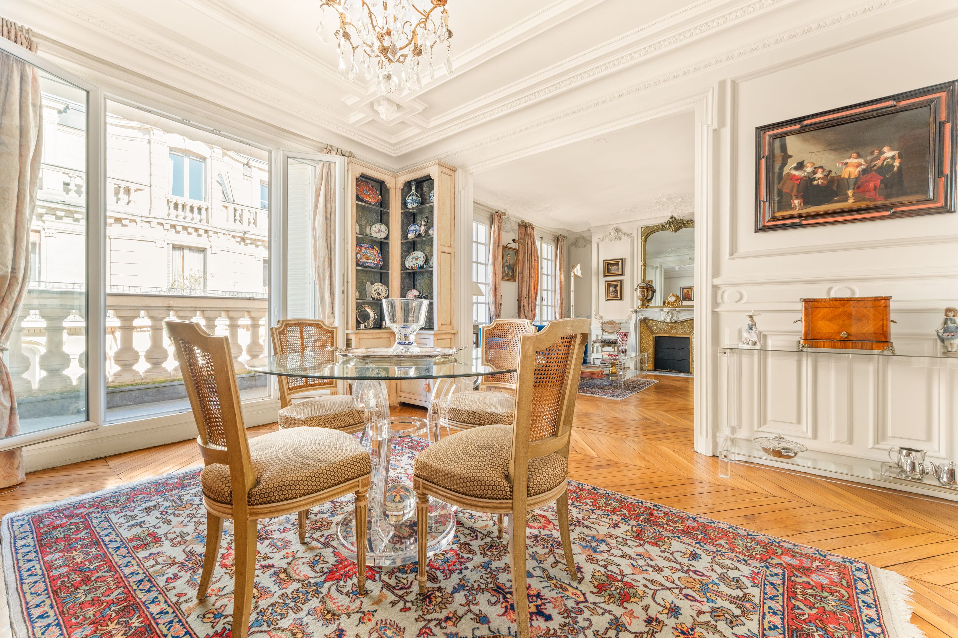 Ideally located near Avenue Niel, in a beautiful Haussmann-style building with well-kept communal areas, on the 5th floor, this 110 sq.m. apartment boasts generous volumes and a coherent layout: entrance gallery, large double reception room, balcony, separate kitchen and dining area, two large bedrooms (3 possible), spacious bathroom (former bedroom), separate toilet and plenty of storage space. Service room with shower, toilet and balcony (7.54m2 Carrez) inseparable from the apartment - 80,000 euros extra. Cellar.