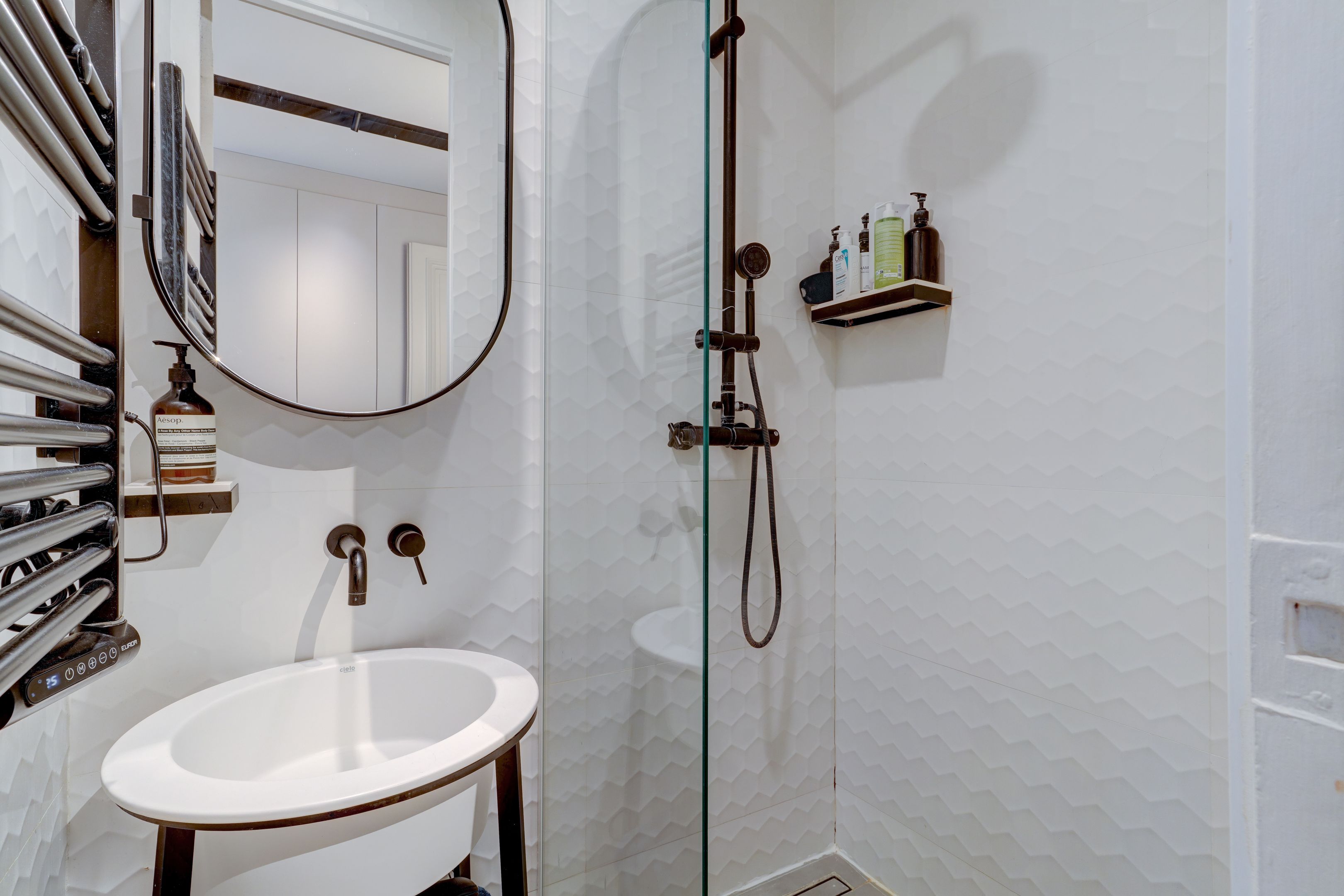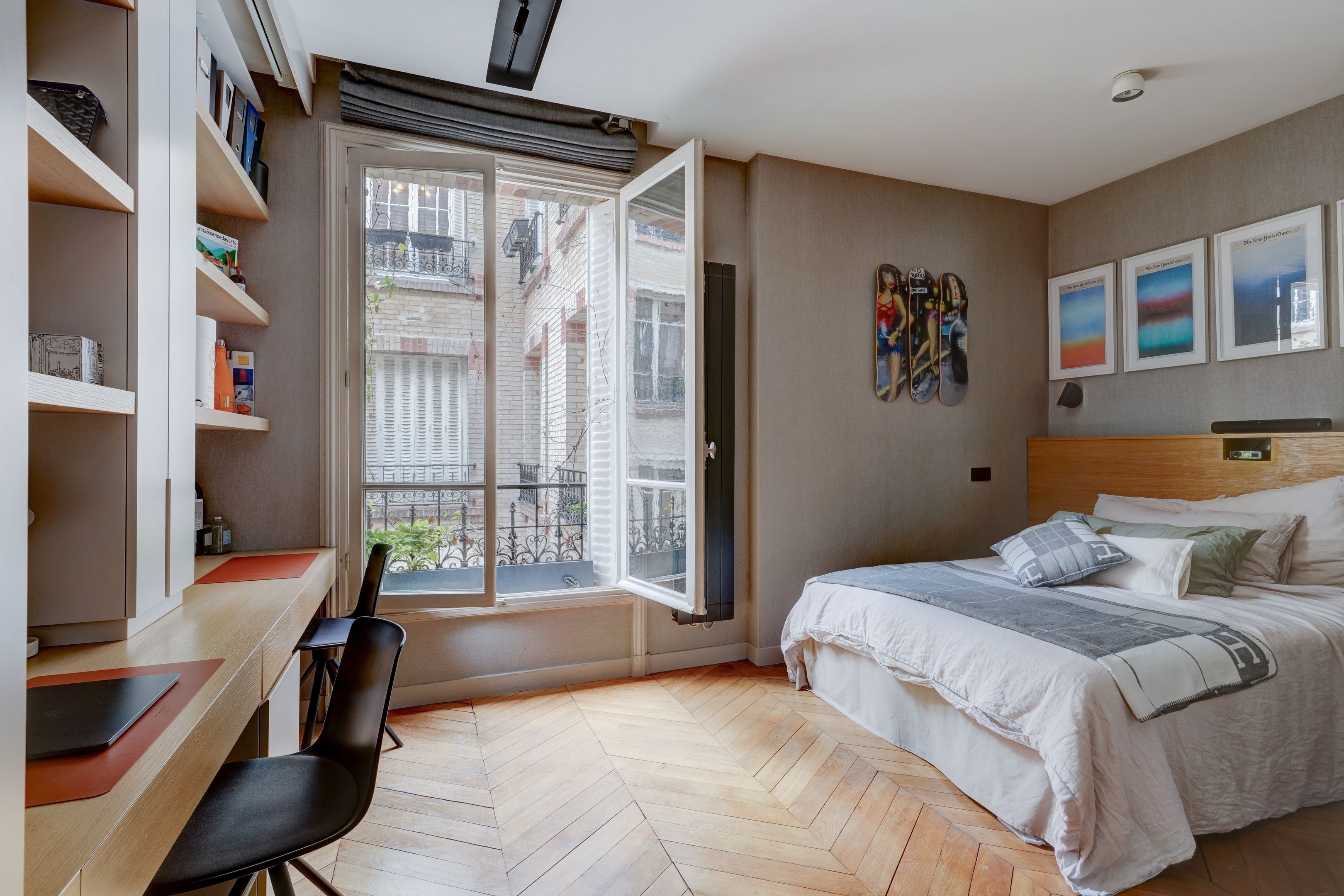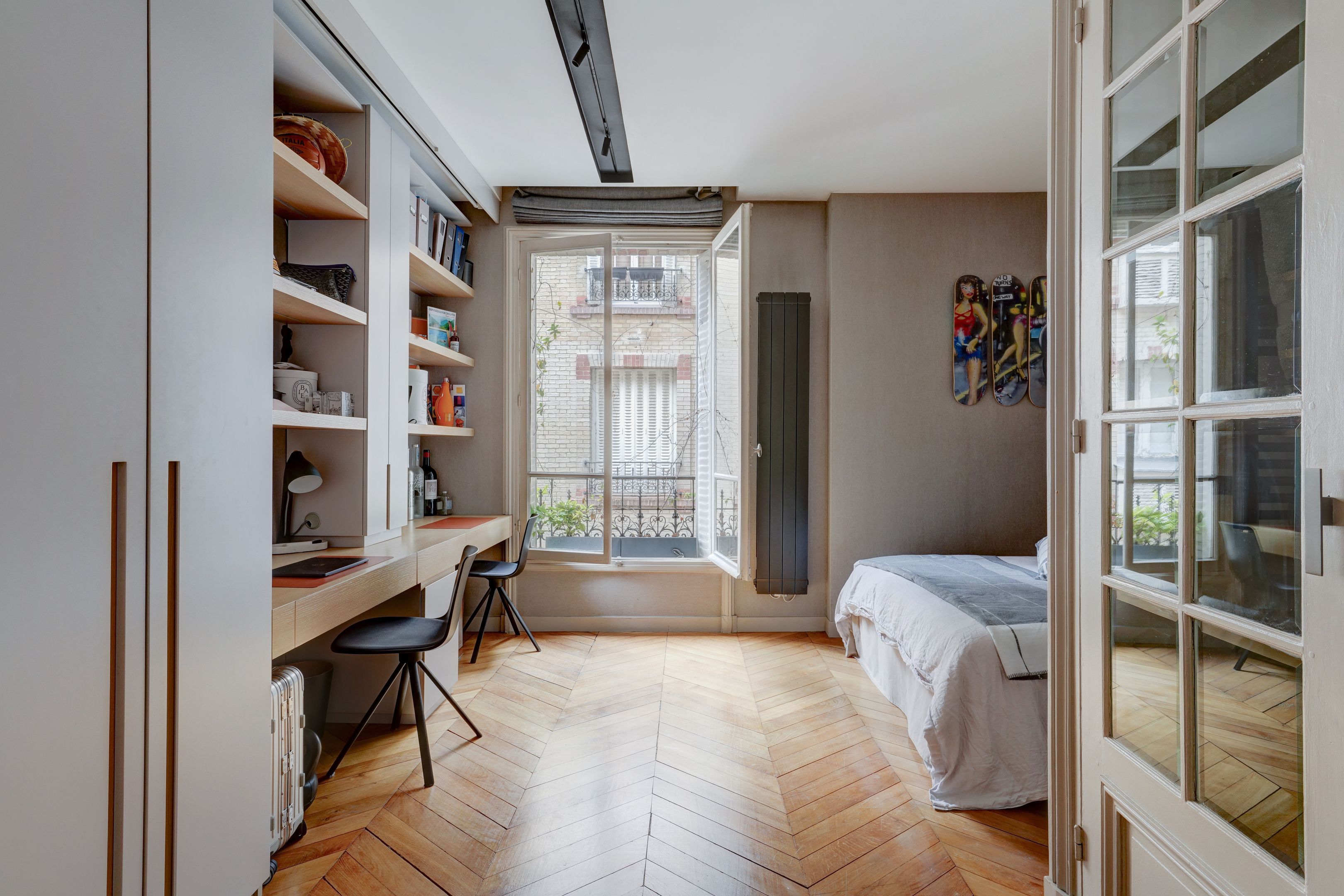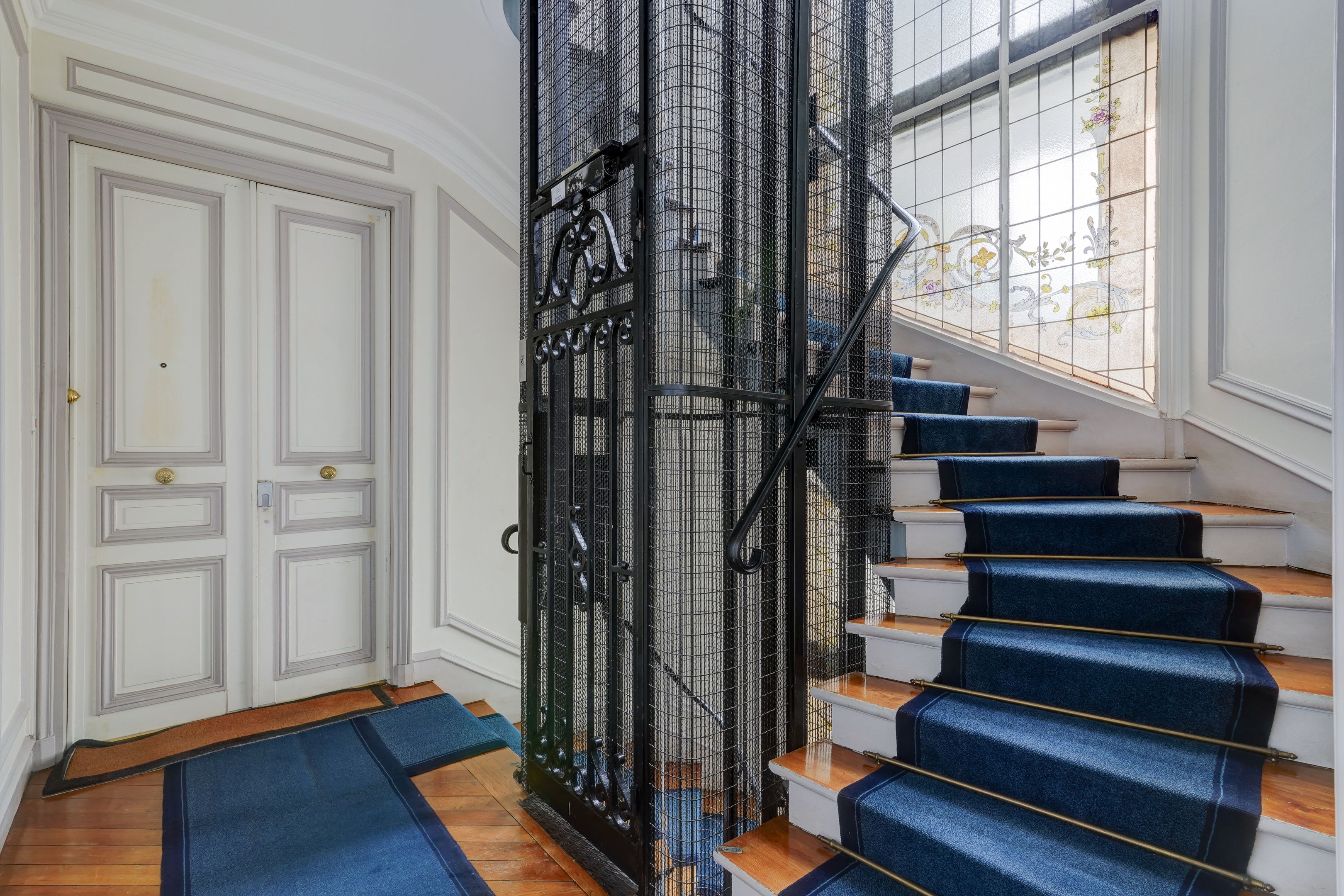 Ideally located in Passy, just a stone's throw from shops and schools, beautifully crafted Haussmann building, fourth floor, sunny 96m2 apartment entirely renovated and carefully decorated. Entrance hall, double reception room facing south-west, fully fitted and equipped kitchen, two bedrooms, two shower rooms, dressing room and guest toilet. Furnished sale possible. Cellar. Exclusive to Breteuil.