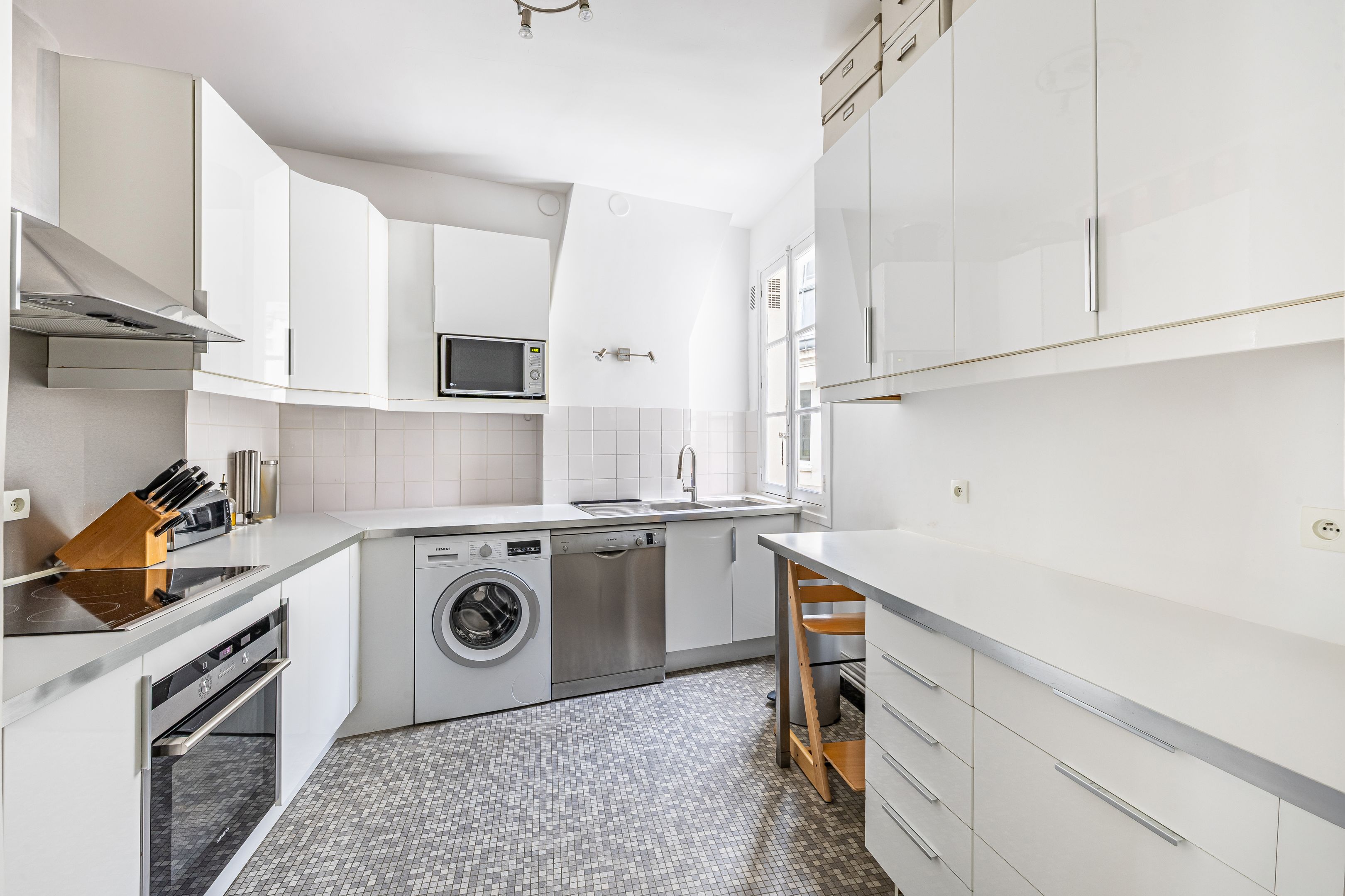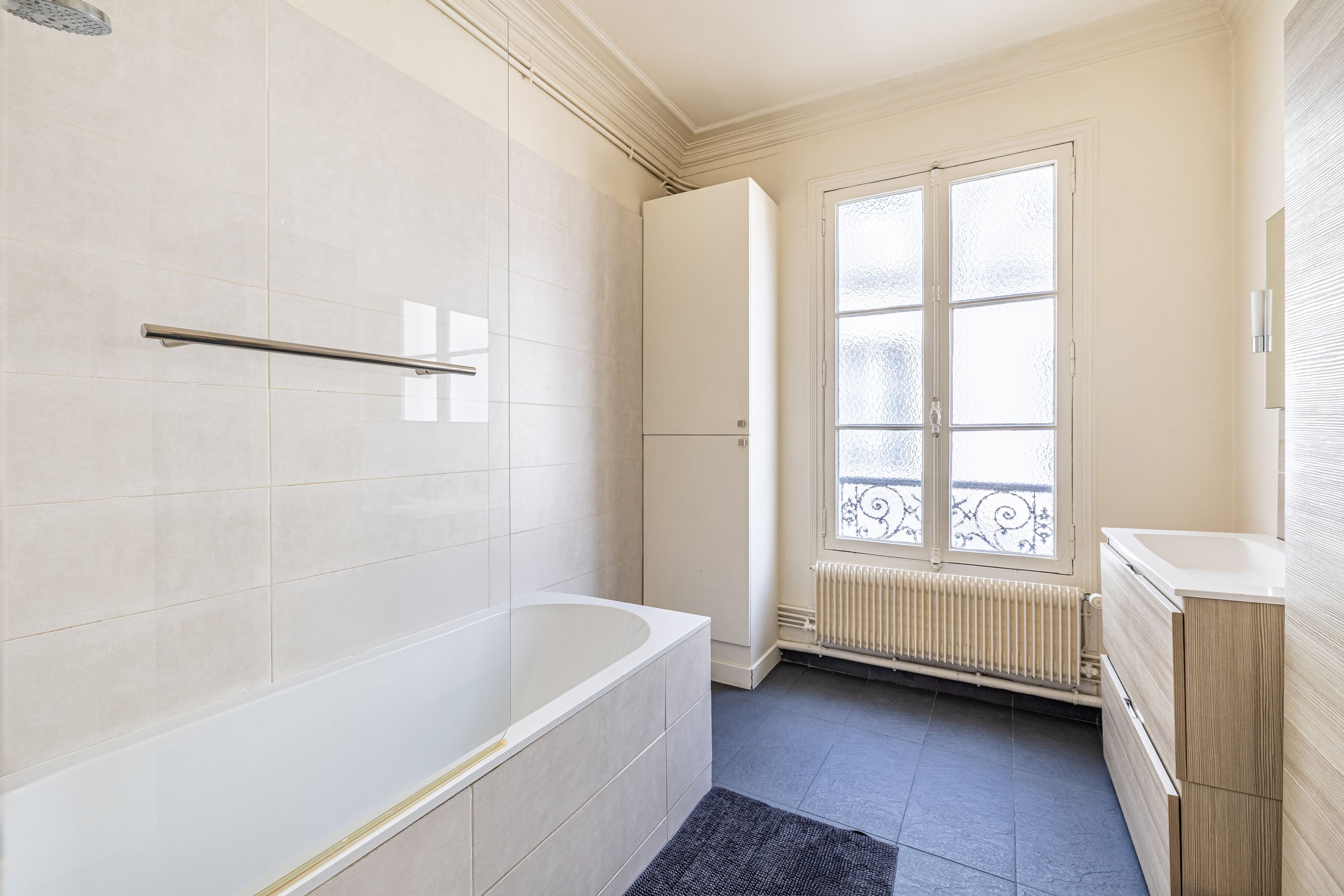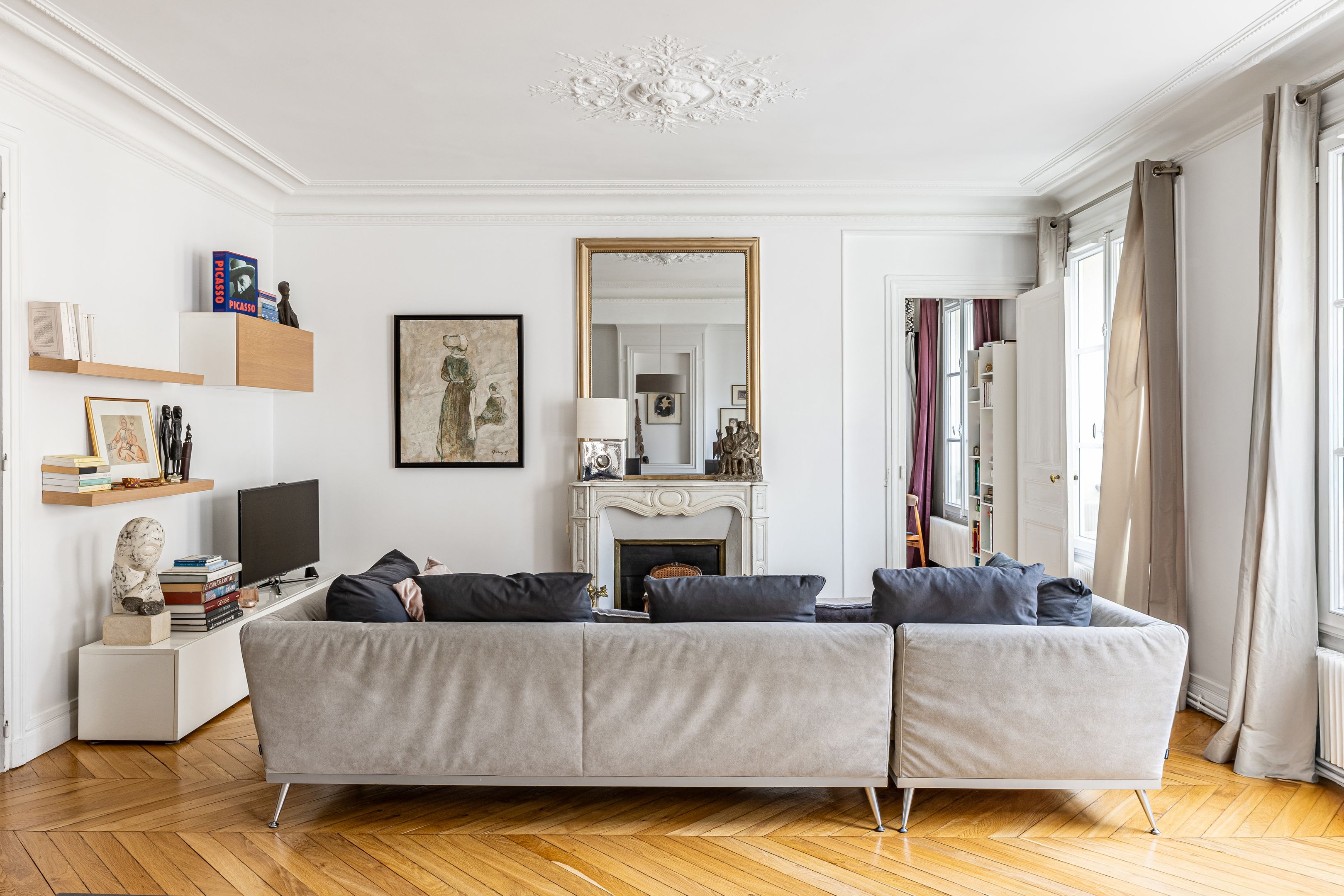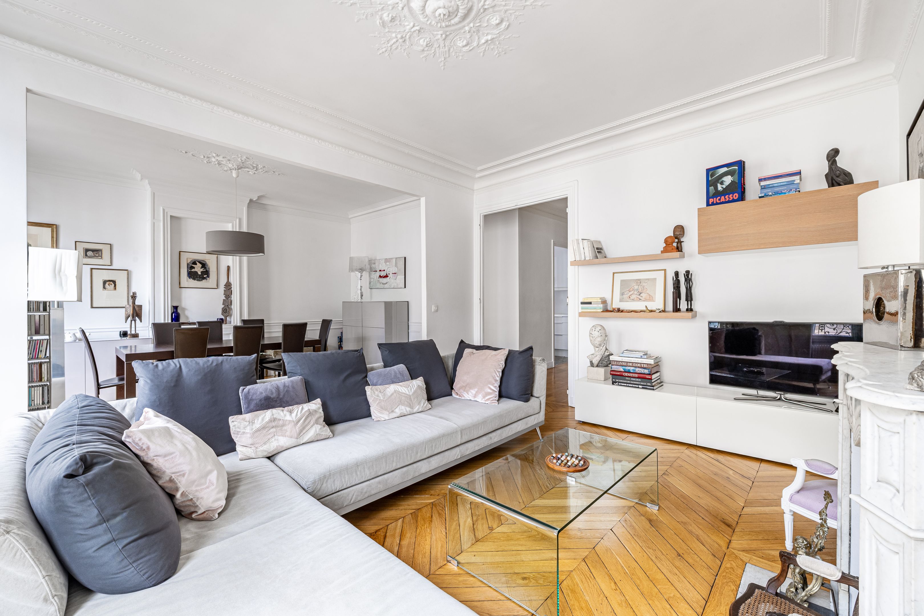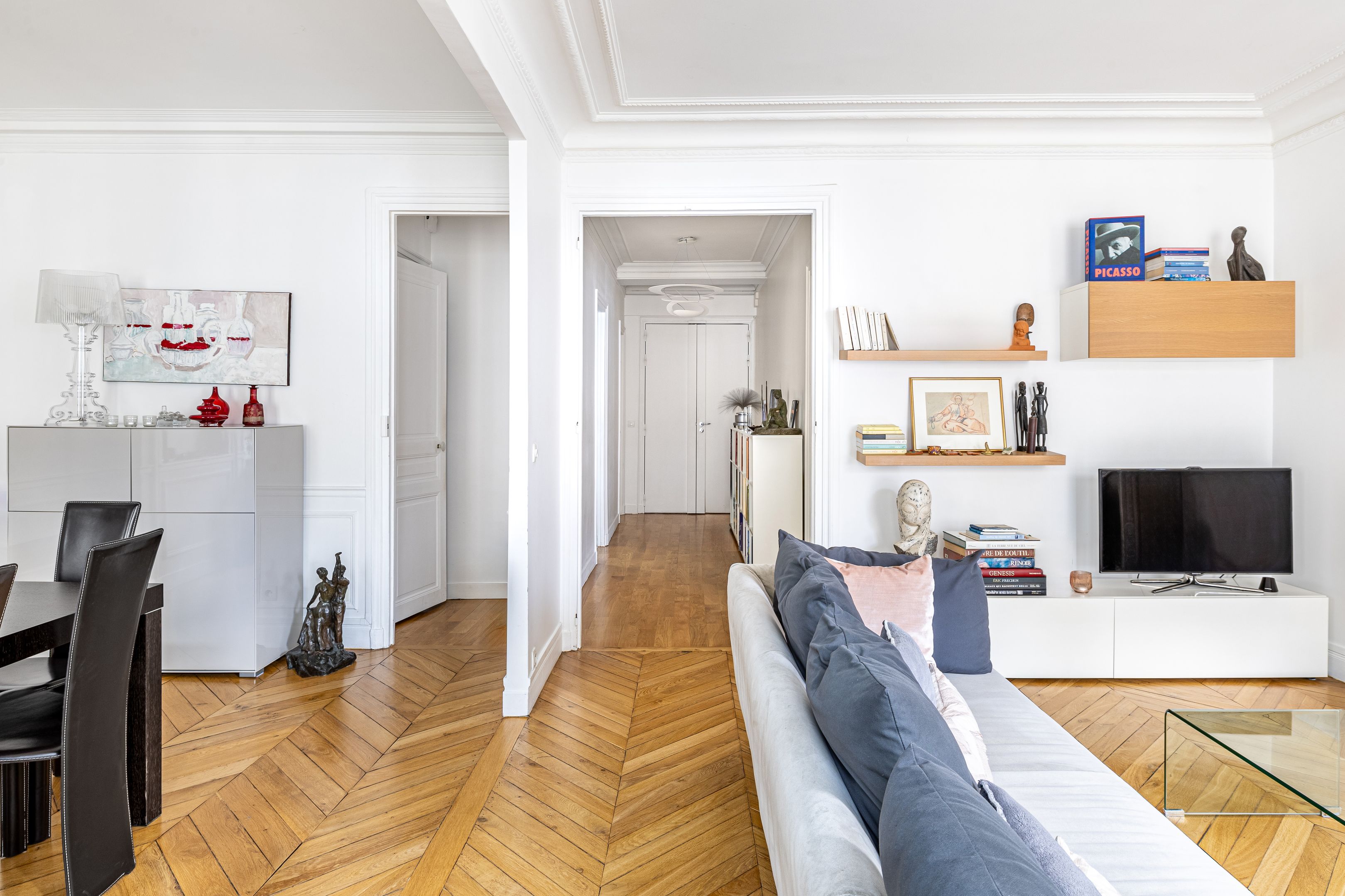 Ideally located near Place Pereire, in a prestigious stone building, on the 4th floor with elevator, this apartment is in good condition, sunny thanks to its south-western exposure, and benefits from an optimized floor plan. Entrance hall, double reception room with herringbone parquet flooring, separate fitted kitchen, two good-sized bedrooms (3 bedrooms possible), bathroom, separate toilet, two dressing rooms and plenty of storage space. Cellar.